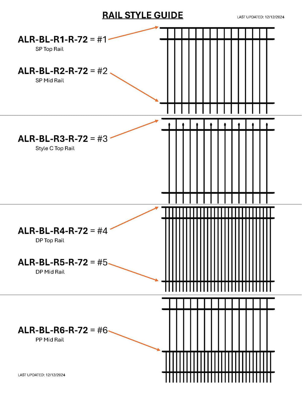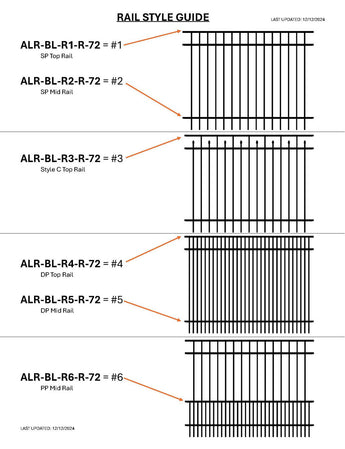 Styles: R1 - R6 (Choose corresponding rail based on fence style)