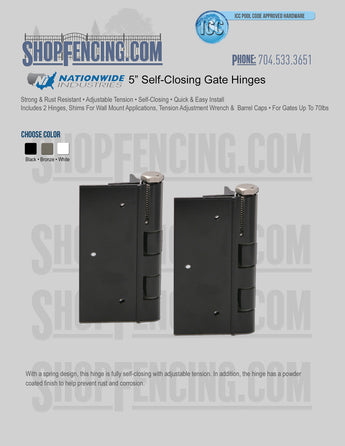 Nationwide Industries 5" Self-Closing Gate Hinges