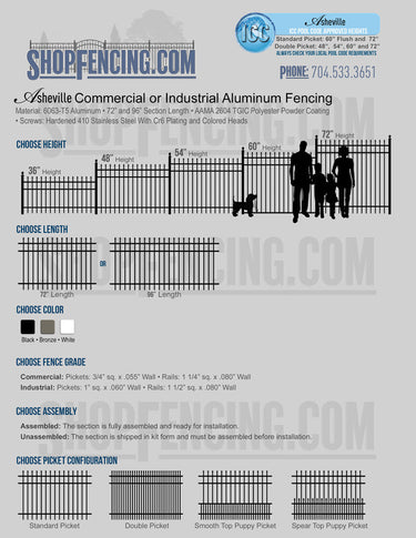 Shopfencing.com sells a variety of fence types, including residential and commercial aluminum, and vinyl. We also carry a wide selection of fence components and accessories to meet your specific project needs.