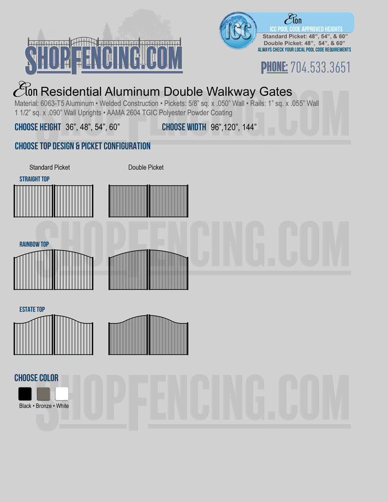 Standard Picket Design: 48", 54" and 60" Heights. Double Picket Design: 48", 54" and 60" Heights. Check your local pool codes before purchasing.
