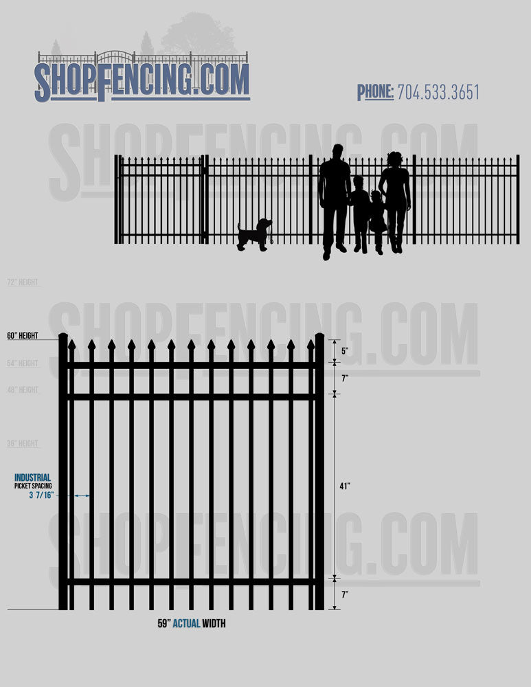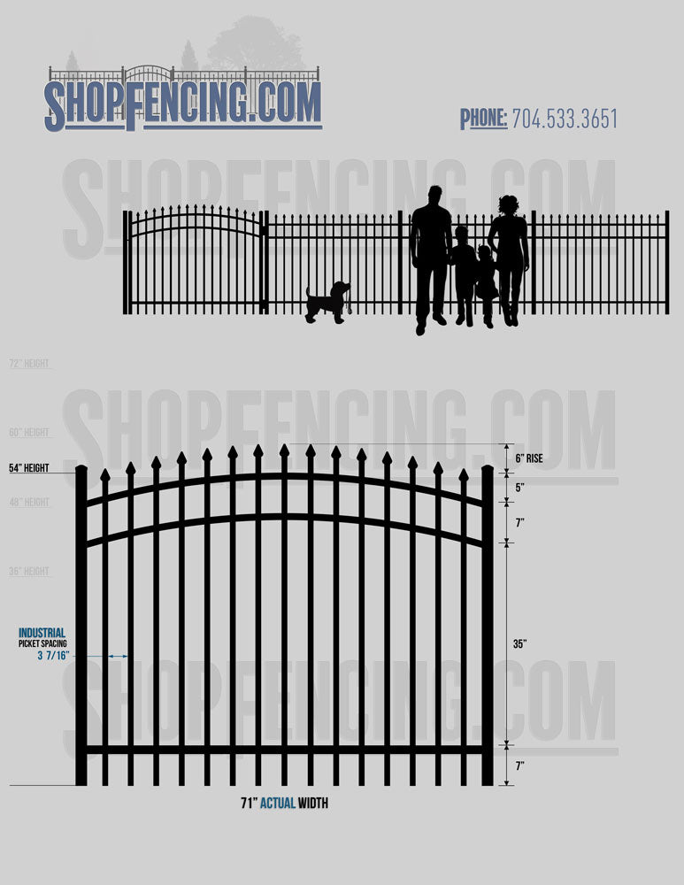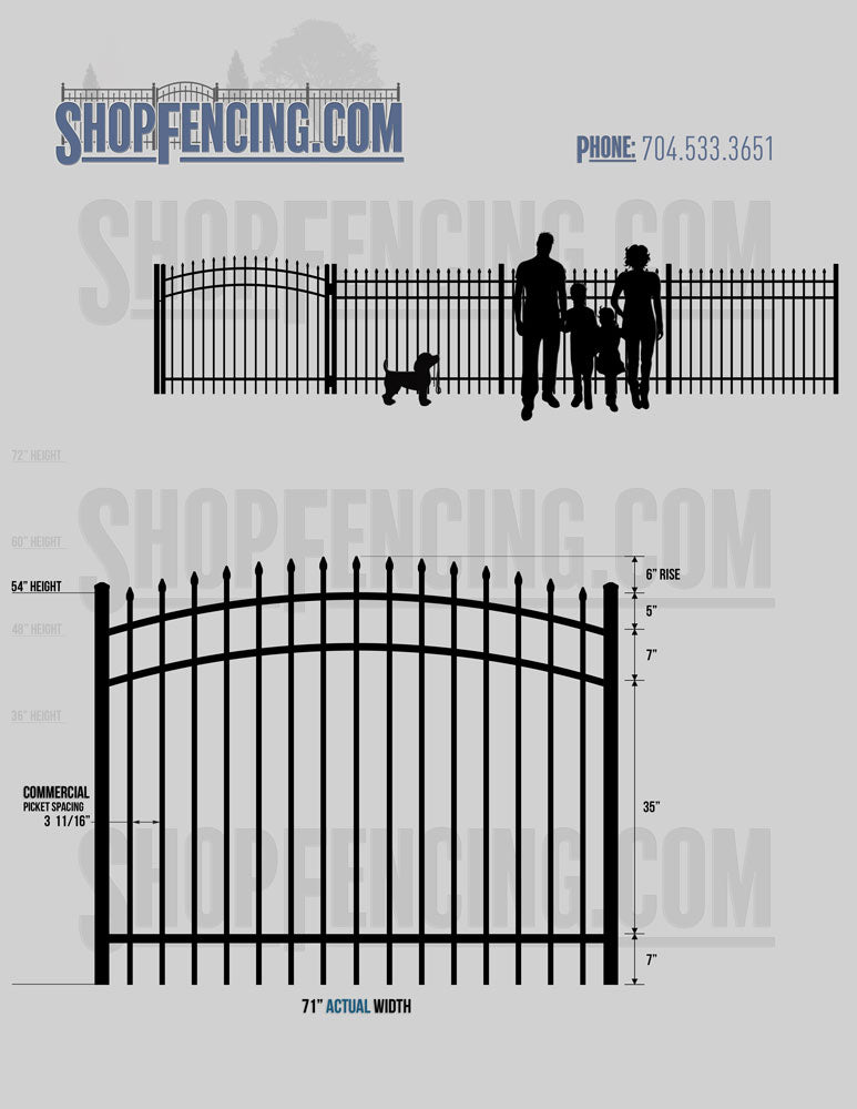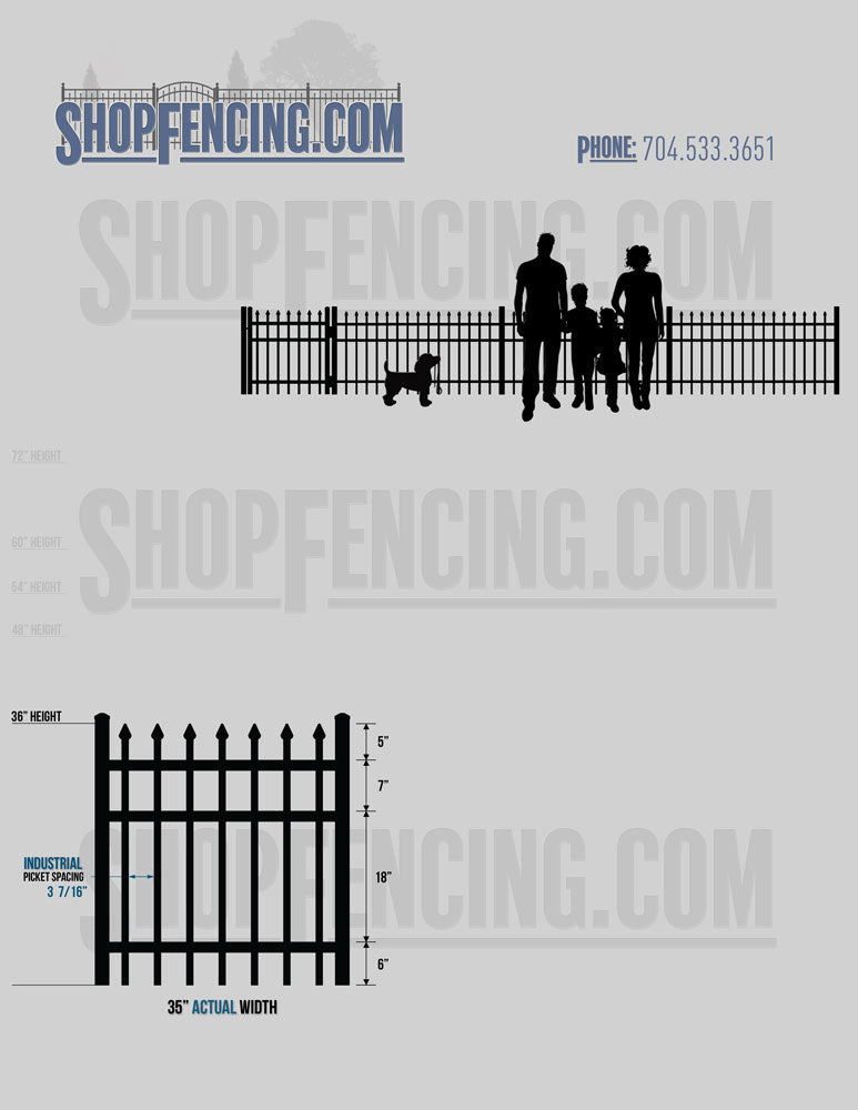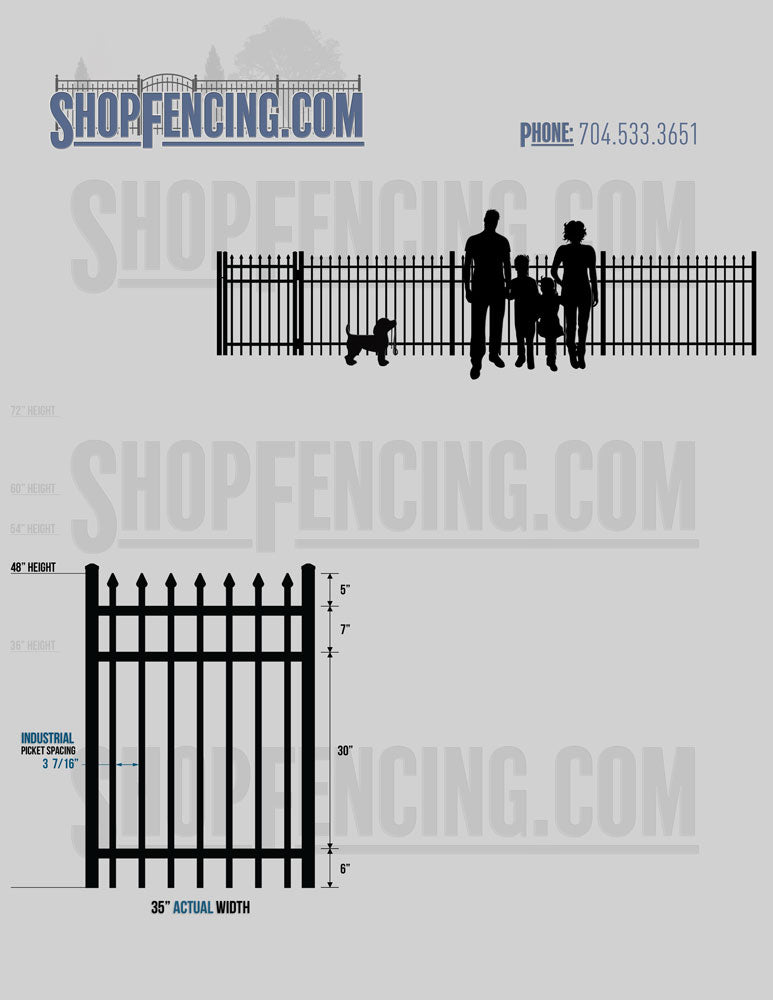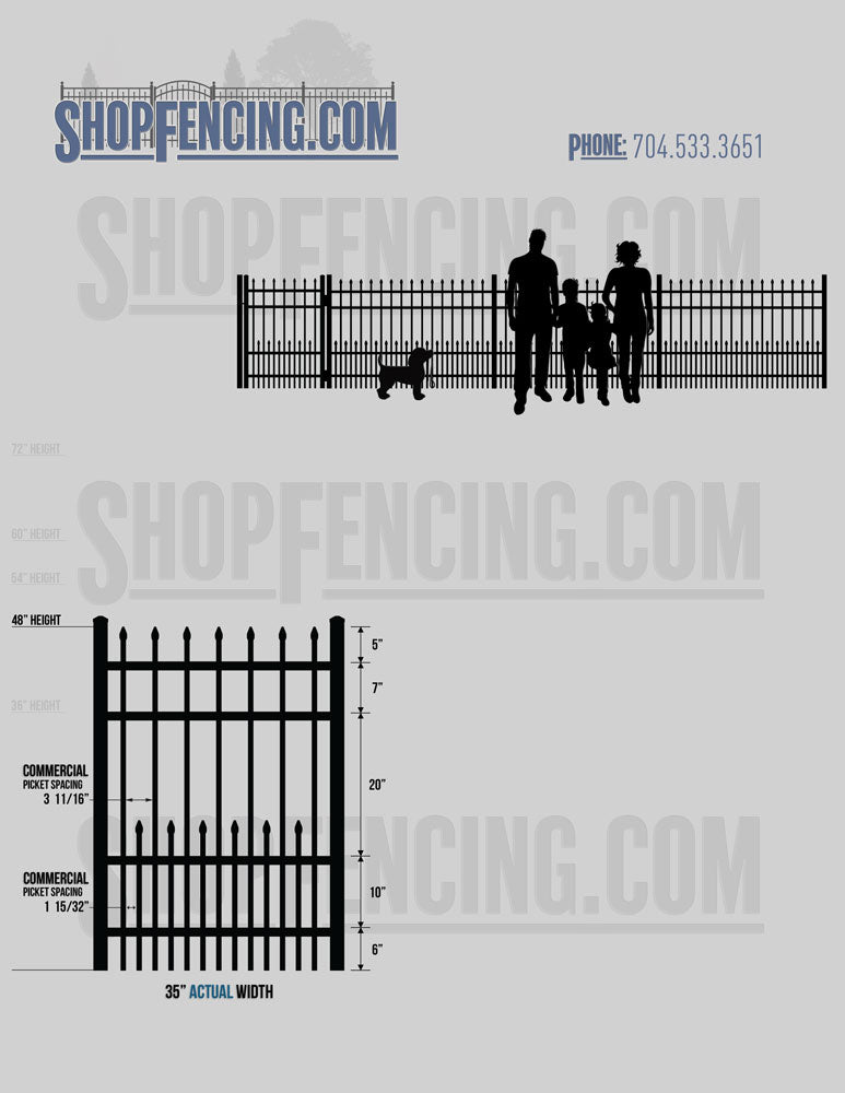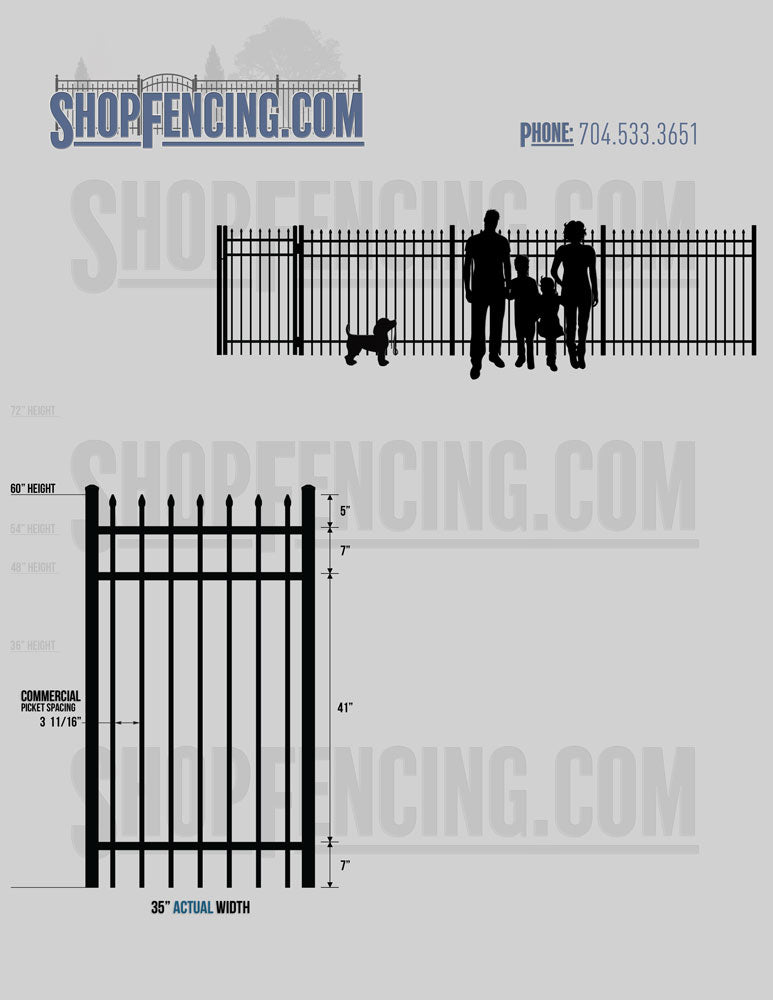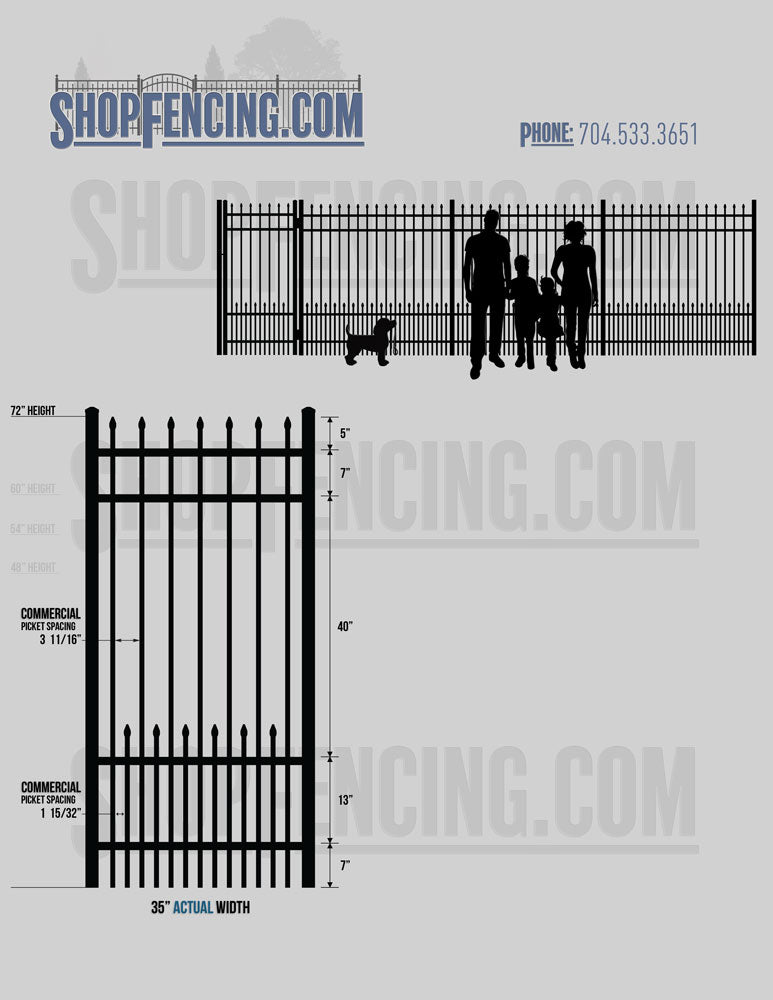 Asheville Commercial or Industrial Aluminum Walkway Gates - Spear Picket Top