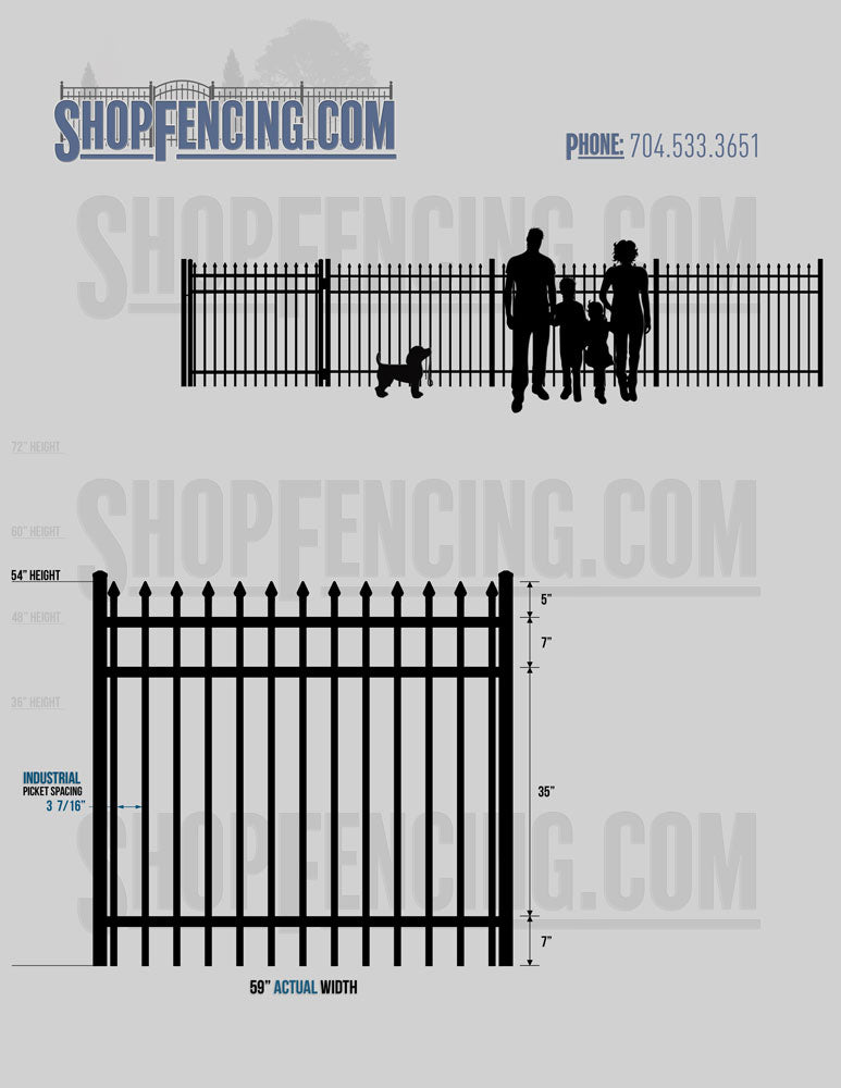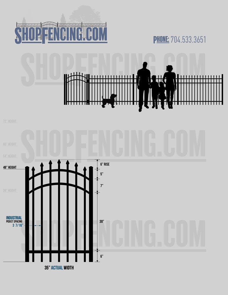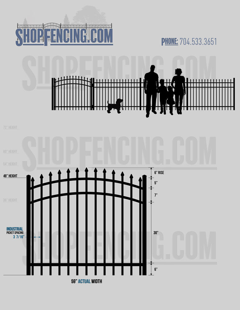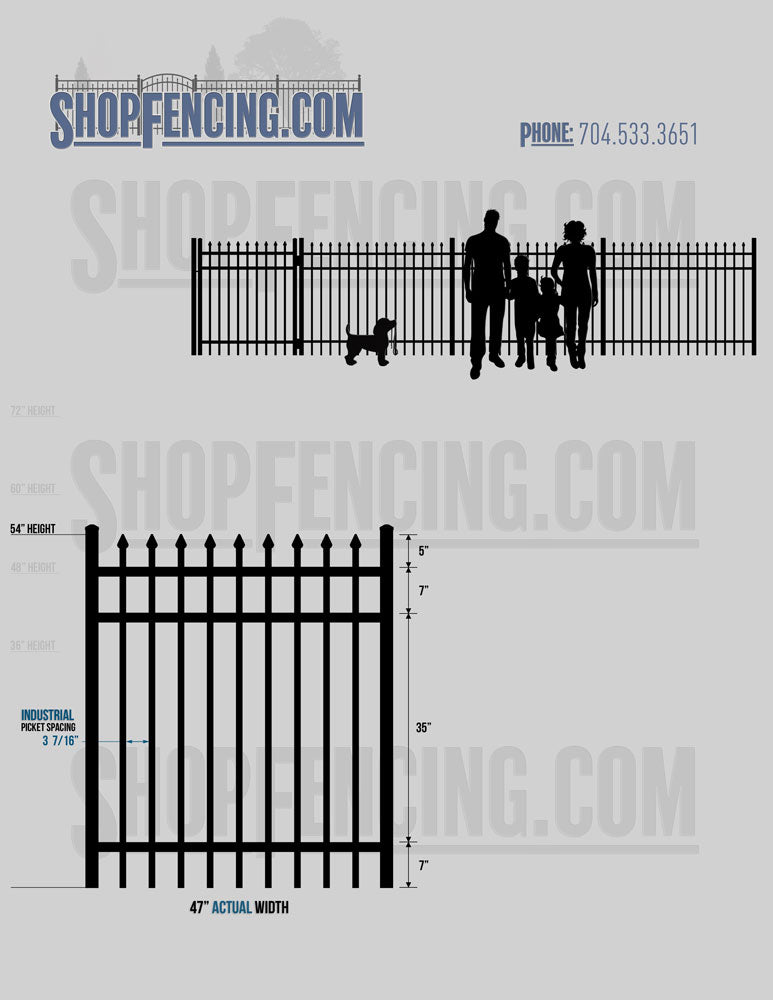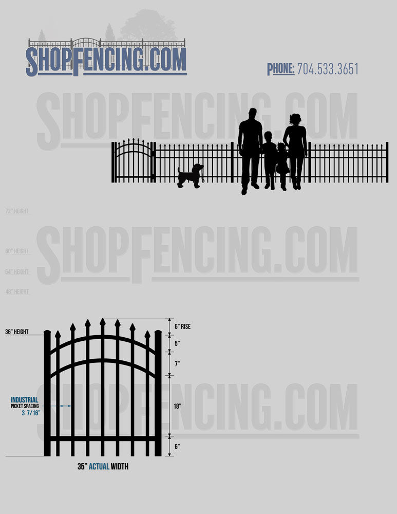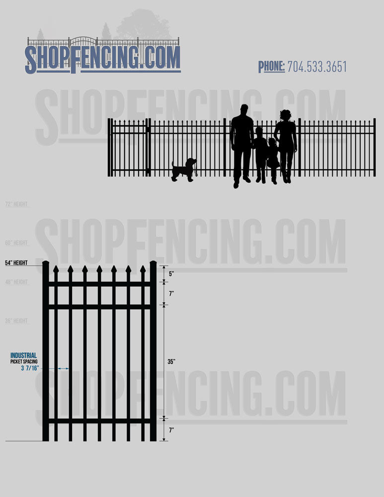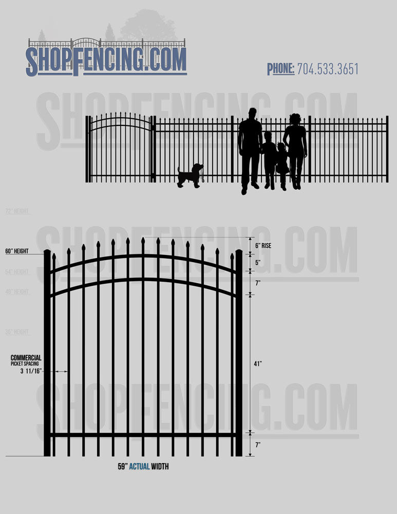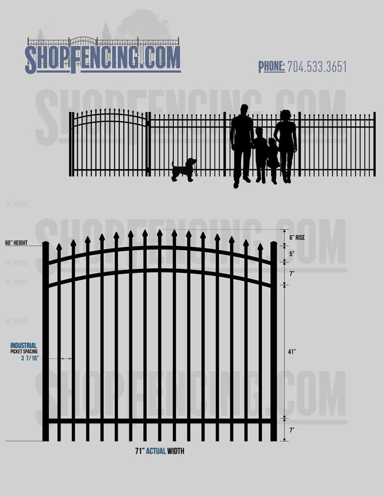 Asheville Commercial or Industrial Aluminum Walkway Gates - Spear Picket Top