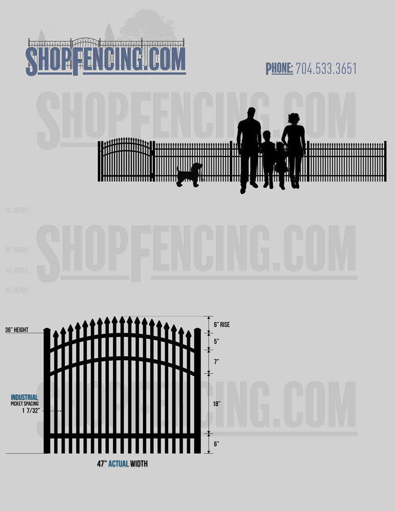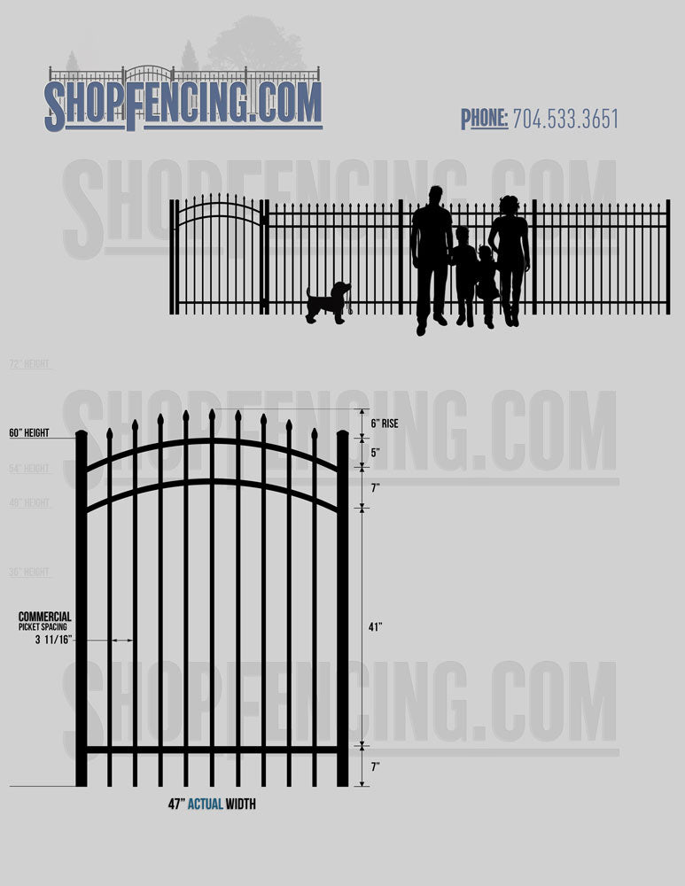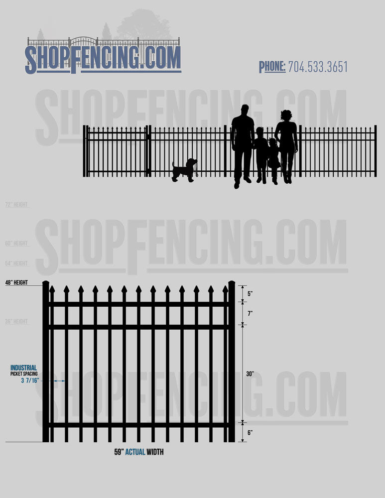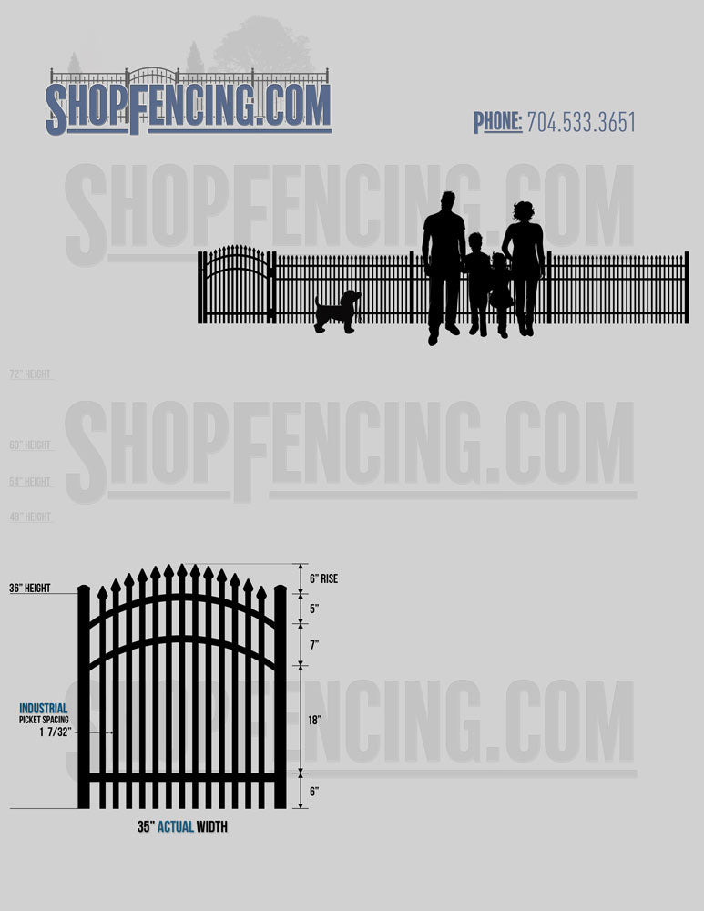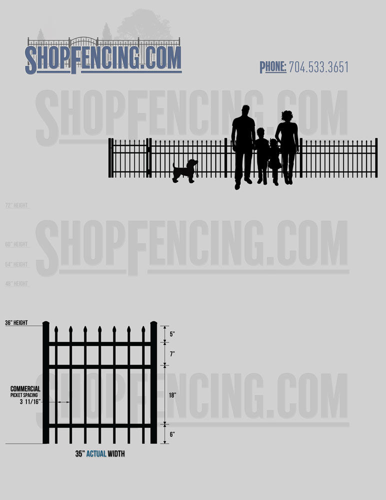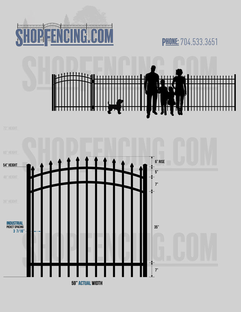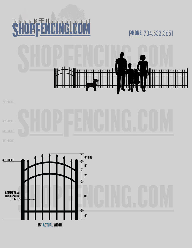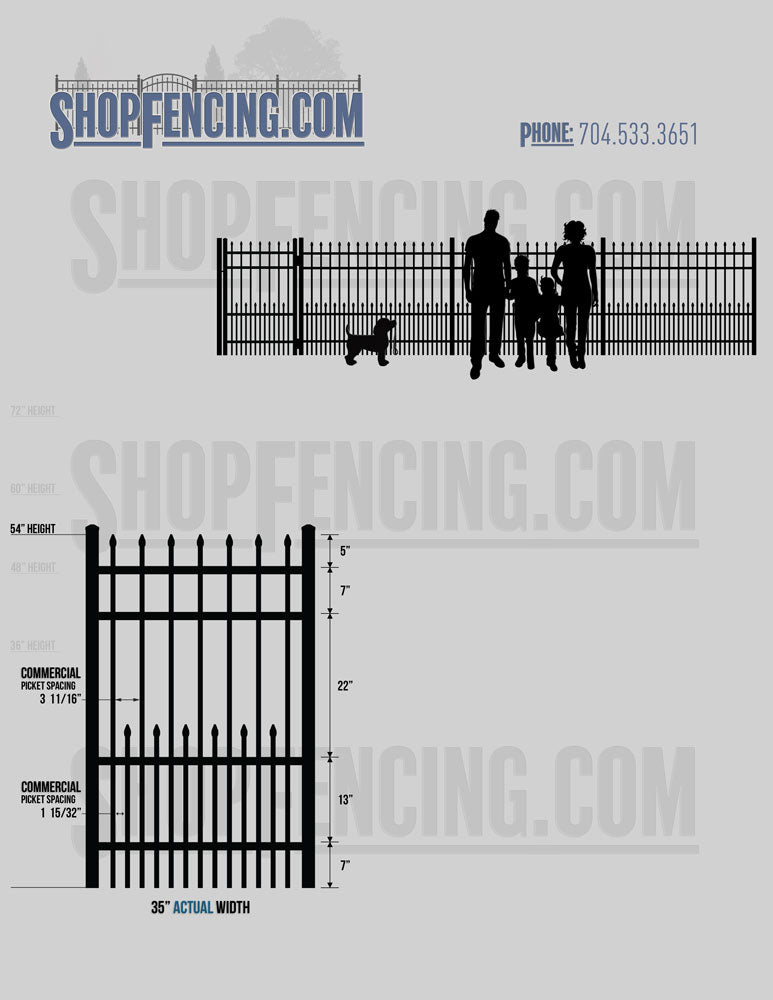 Asheville Commercial or Industrial Aluminum Walkway Gates - Spear Picket Top