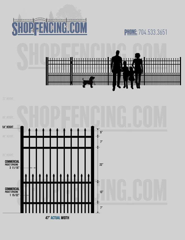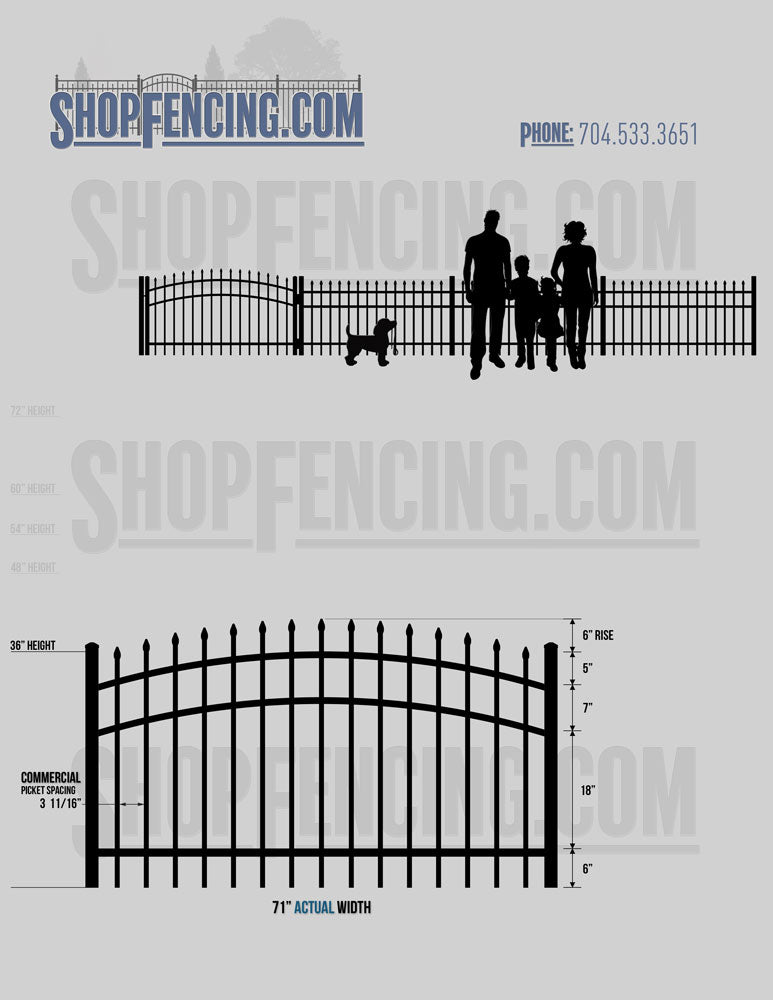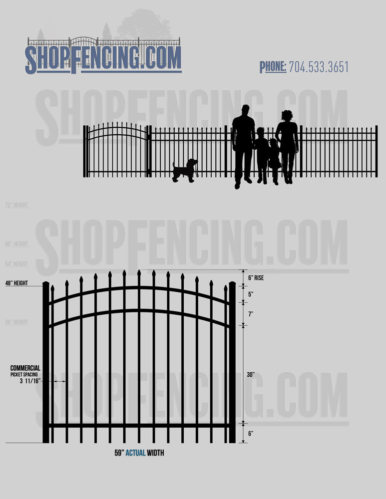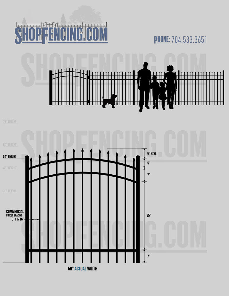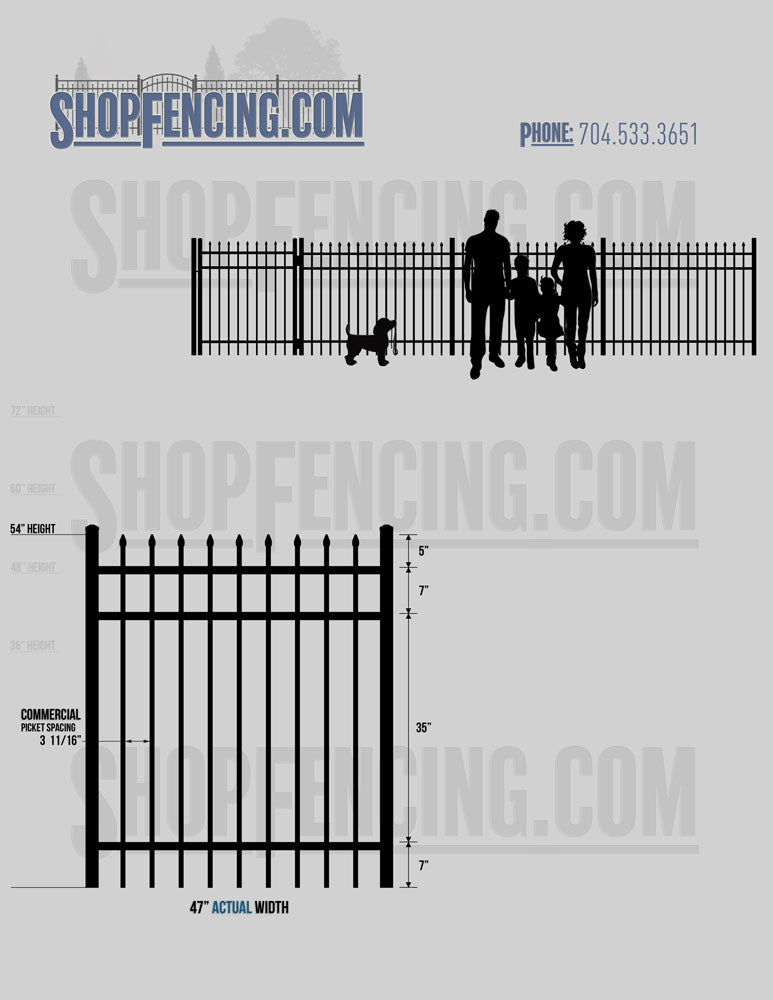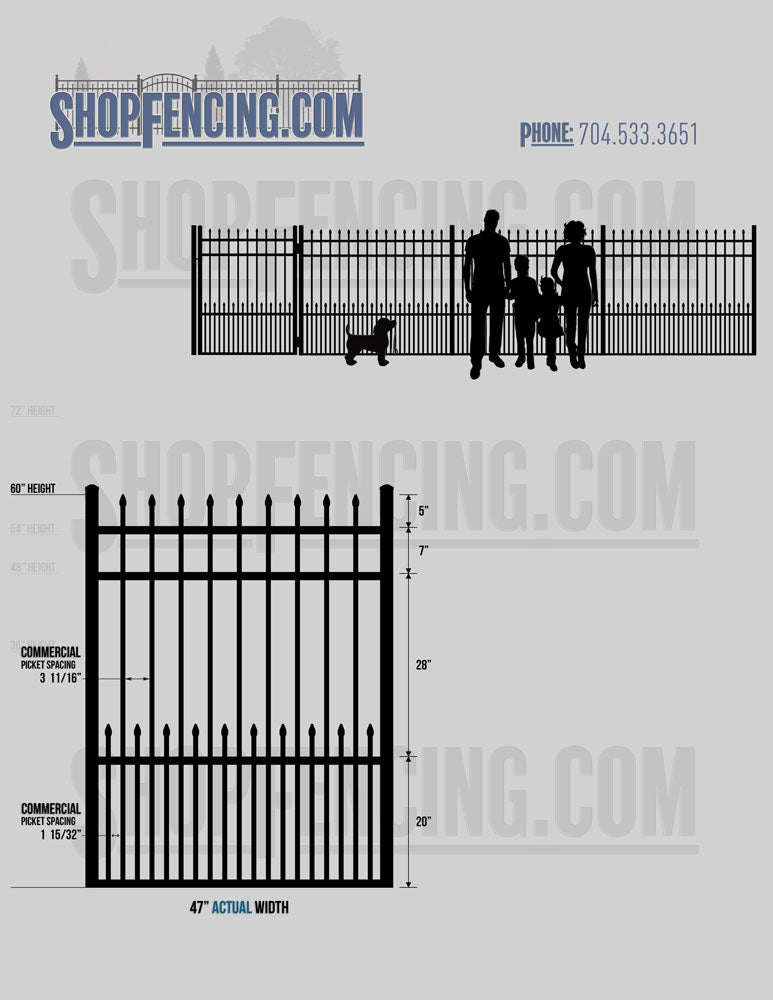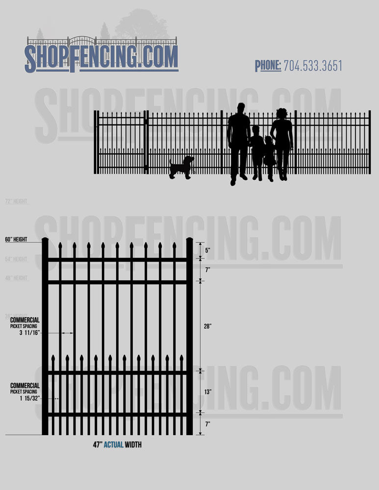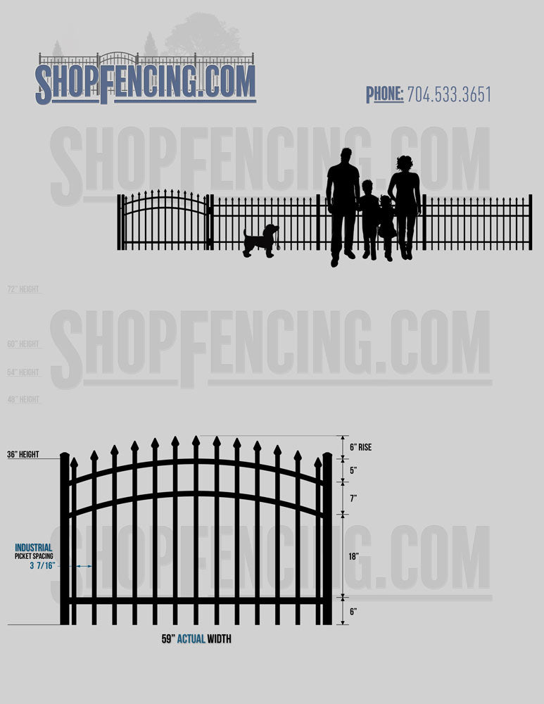 Asheville Commercial or Industrial Aluminum Walkway Gates - Spear Picket Top