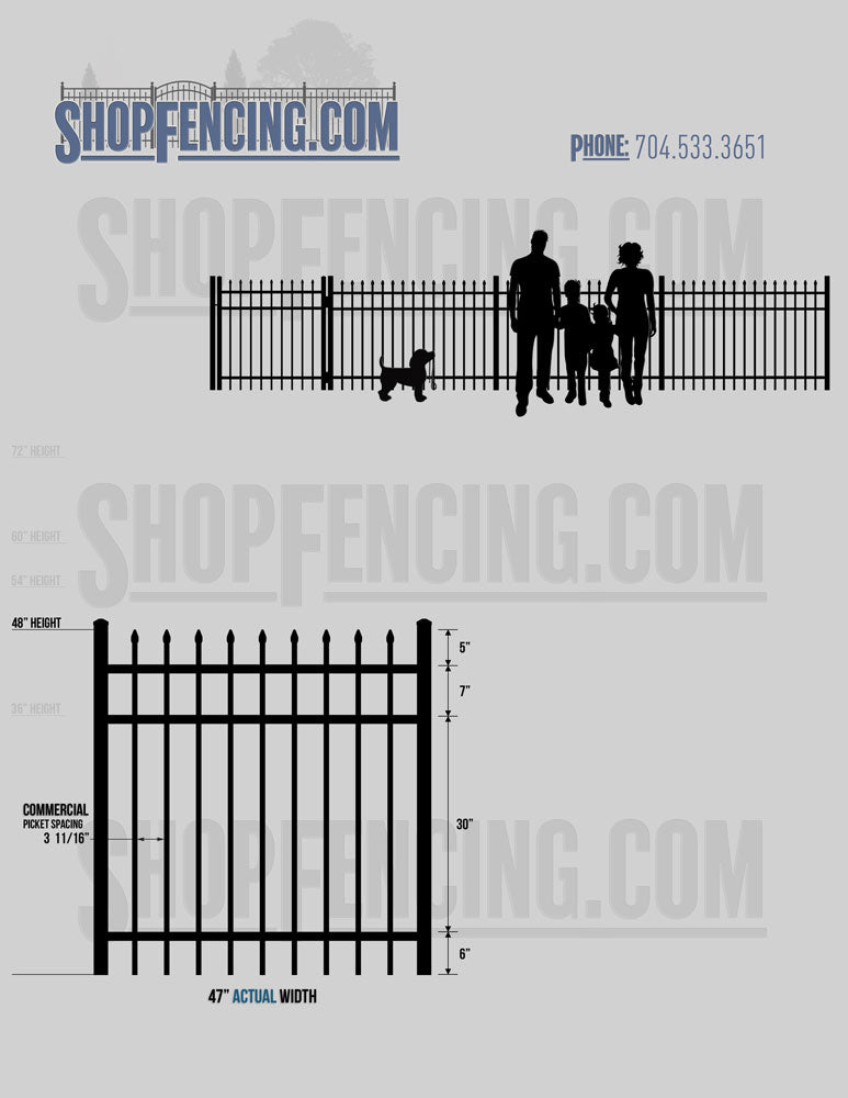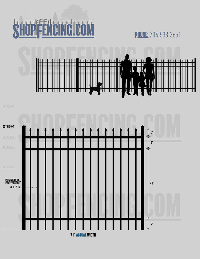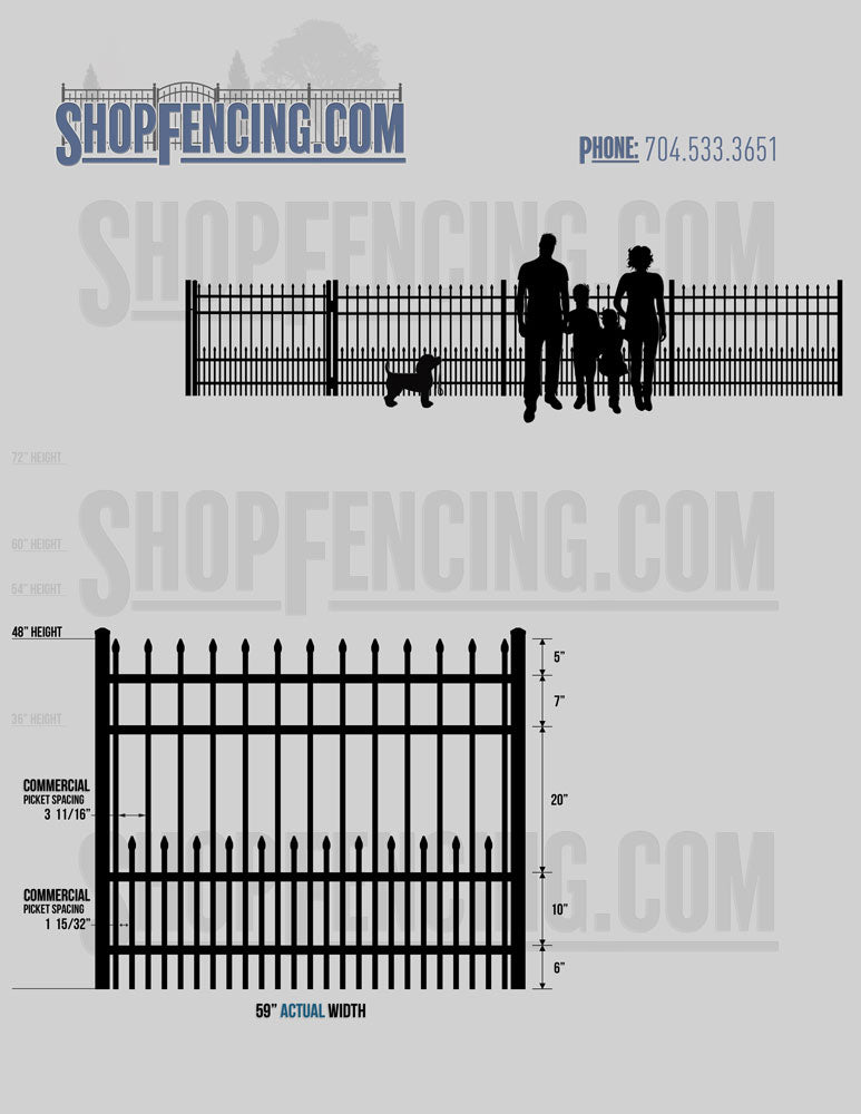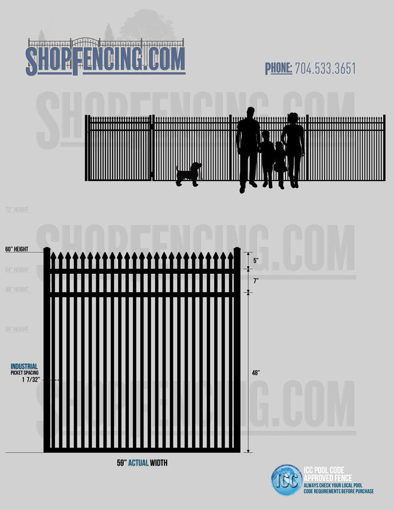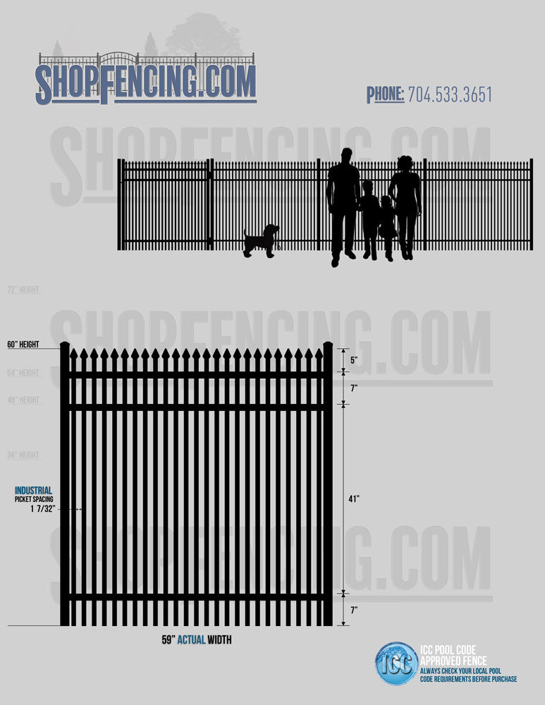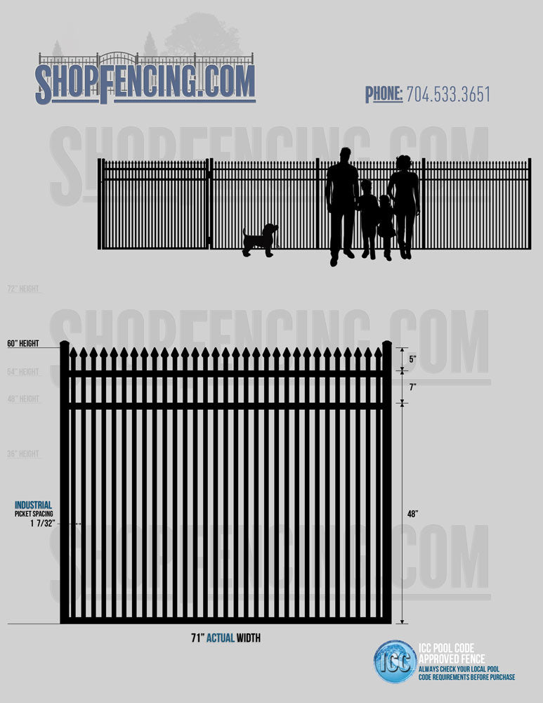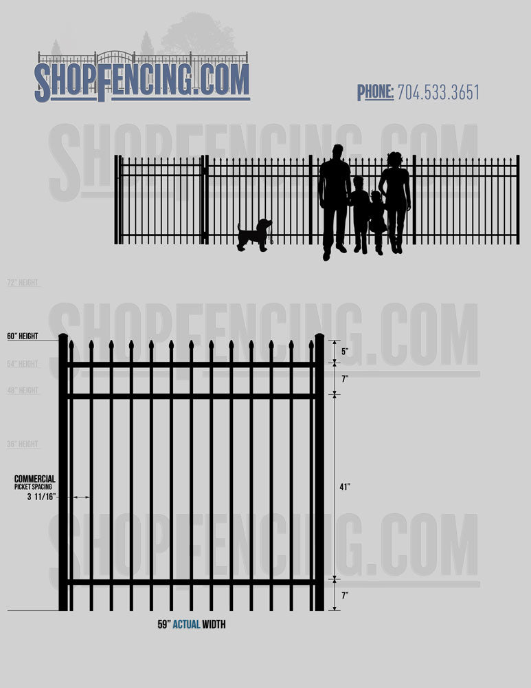 Standard Picket Design: 60" Flush Bottom and 72" Heights. Double Picket Design: 48", 54", 60" and 72" Heights. Check your local pool codes before purchasing.