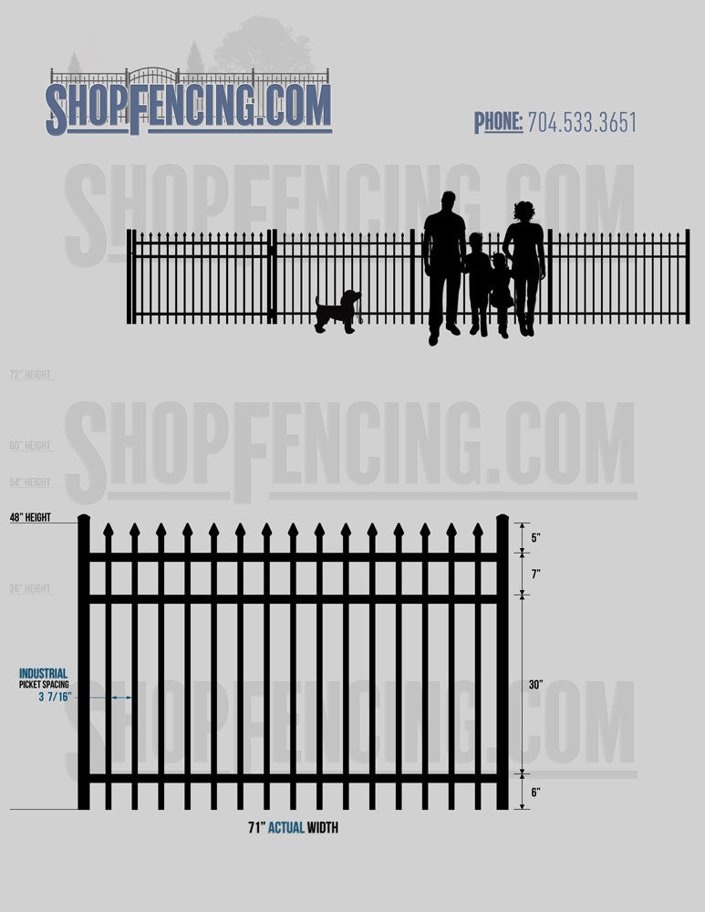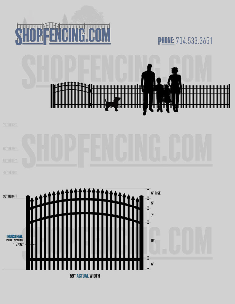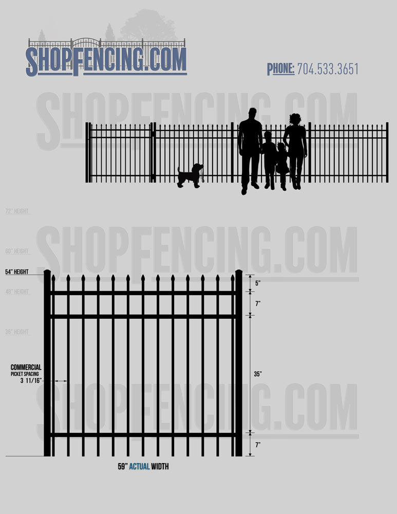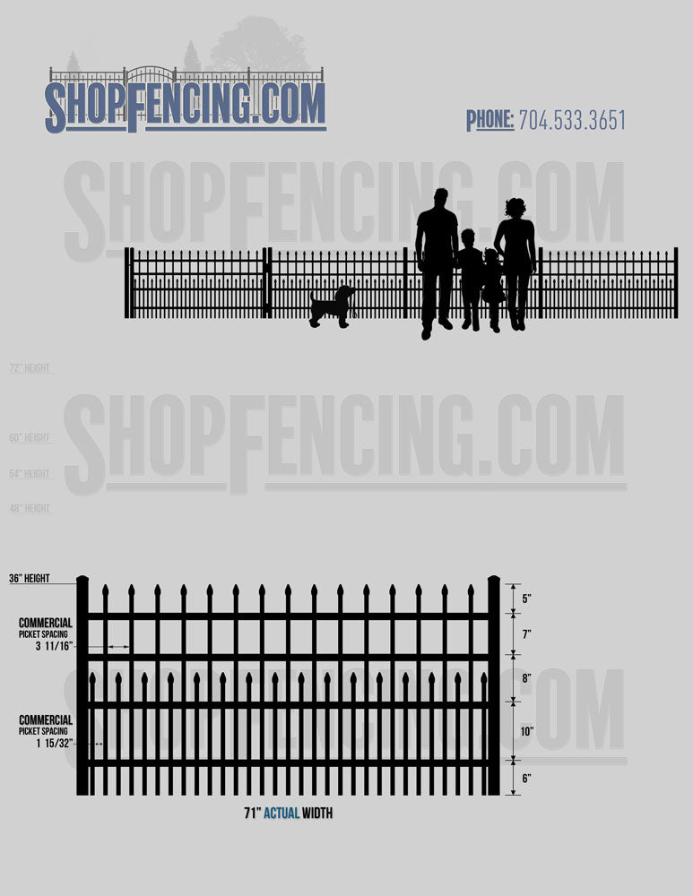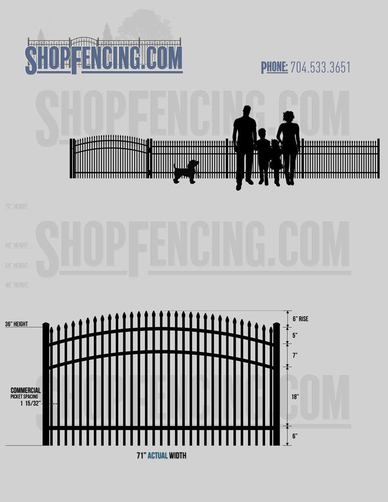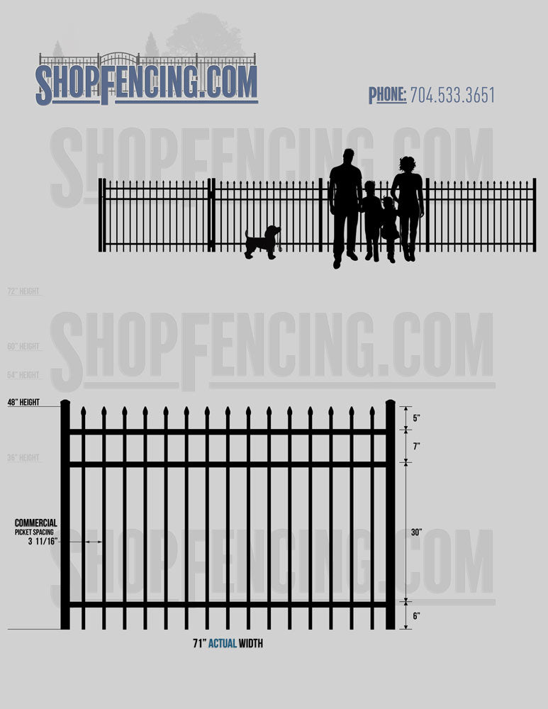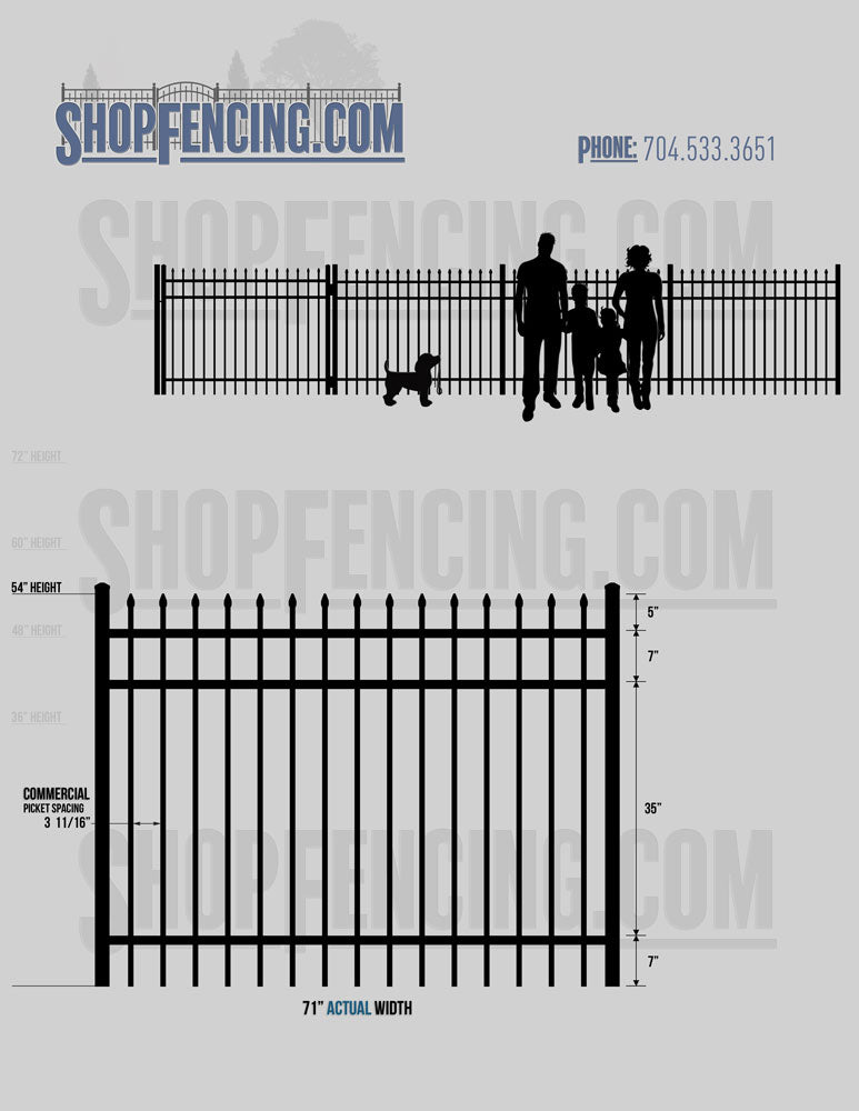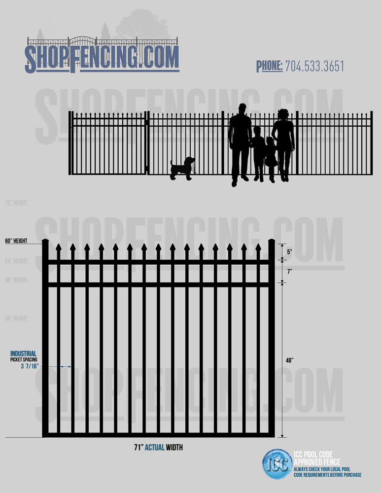 Standard Picket Design: 60" Flush Bottom and 72" Heights. Double Picket Design: 48", 54", 60" and 72" Heights. Check your local pool codes before purchasing.
