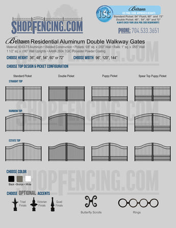 Belhaven Residential Aluminum Double Walkway Gates - Smooth Top