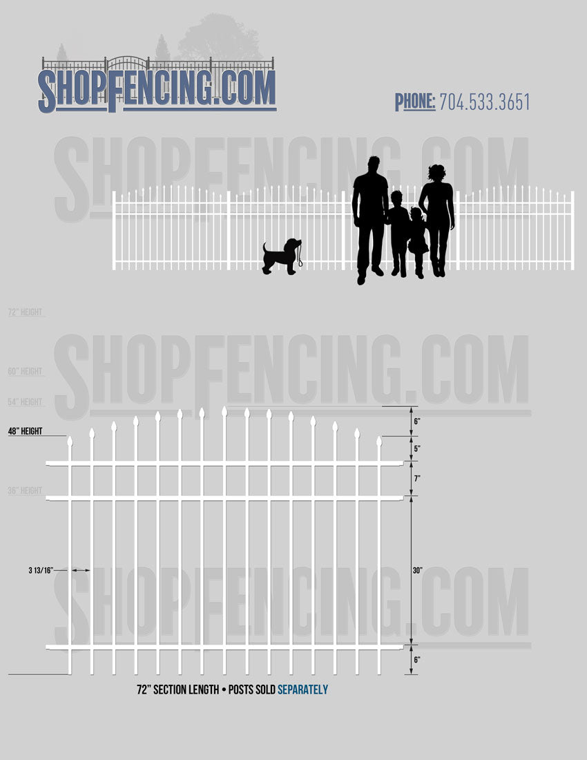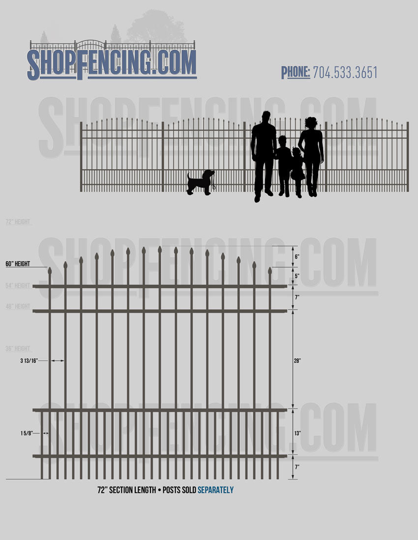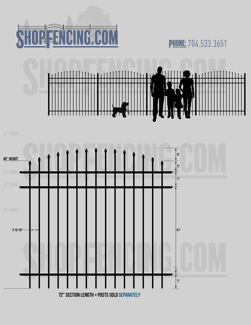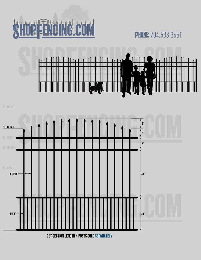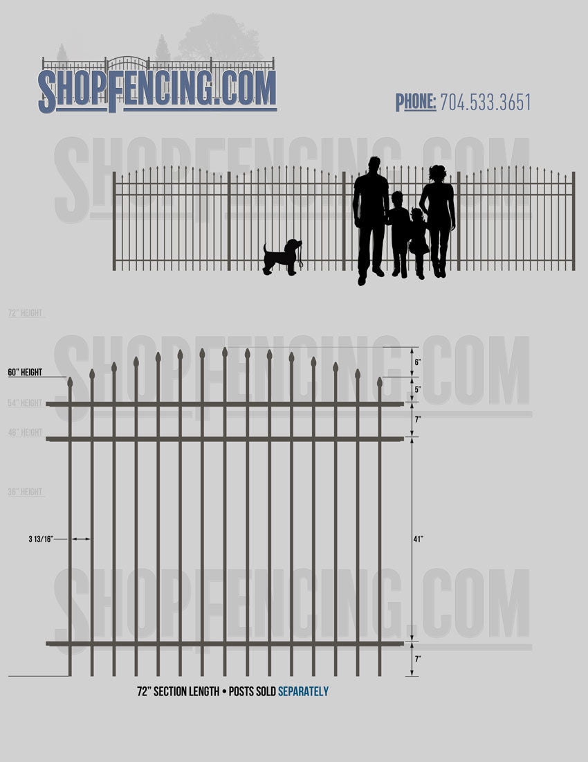 Standard Picket Design: 60" Flush Bottom Height. Check your local pool codes before purchasing.