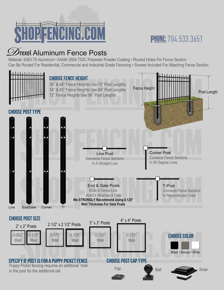 Post Types: Line, End, Gate, Corner, "T" Post Configurations - Please Choose .125" Wall Thickness For Gate Post Applications.