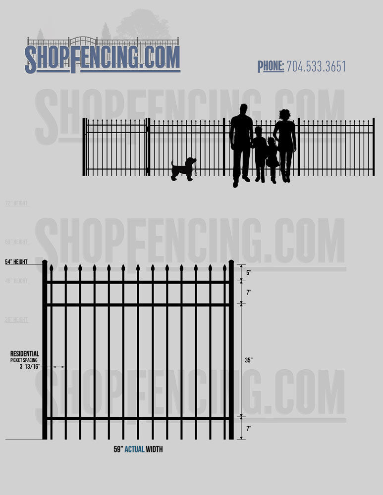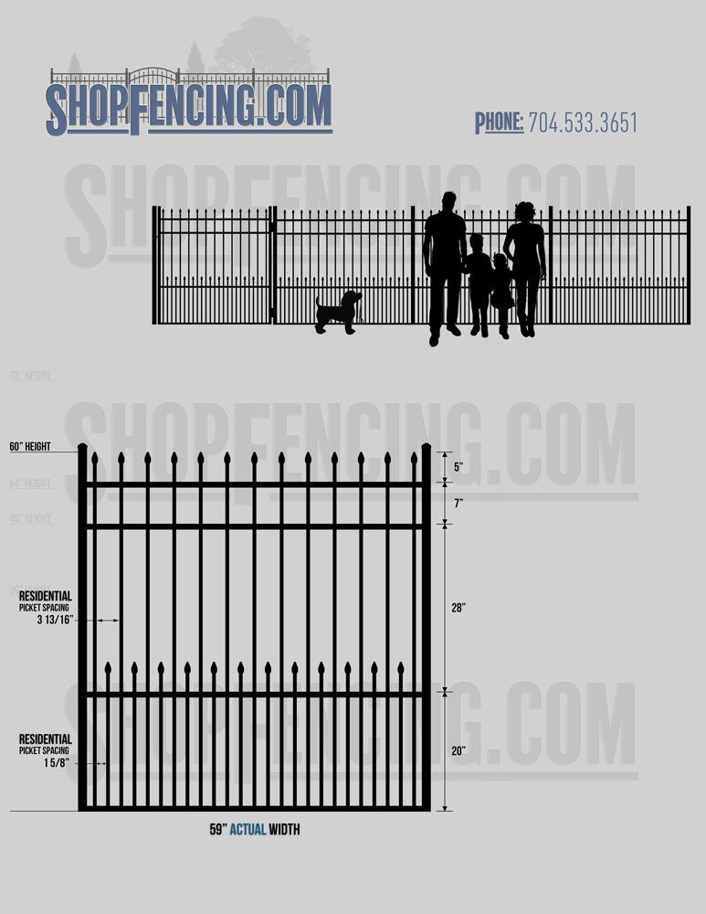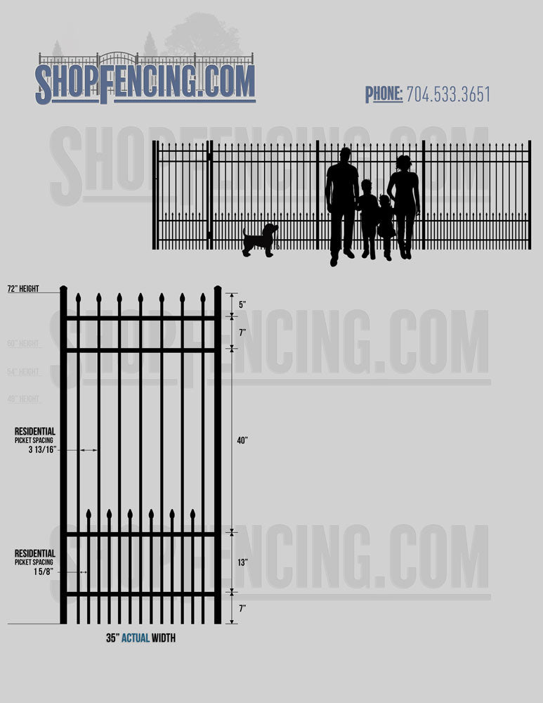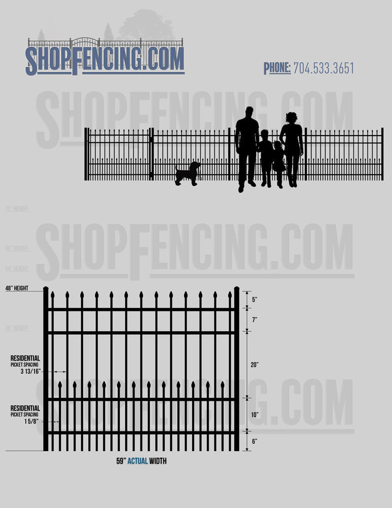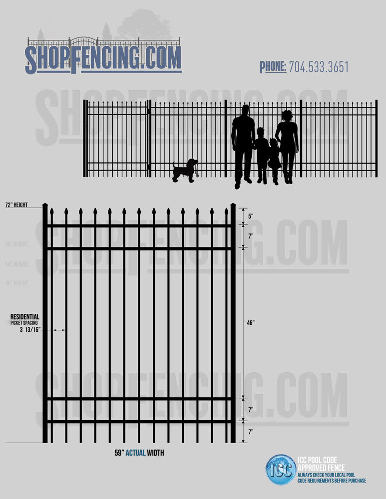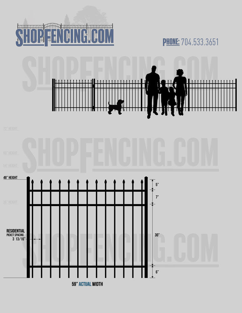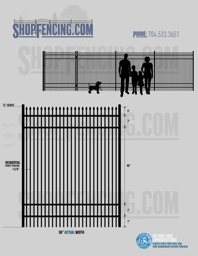 Standard Picket Design: 60" Flush Bottom and 72" Heights. Double Picket Design: 48", 54", 60" and 72" Heights. Check your local pool codes before purchasing.