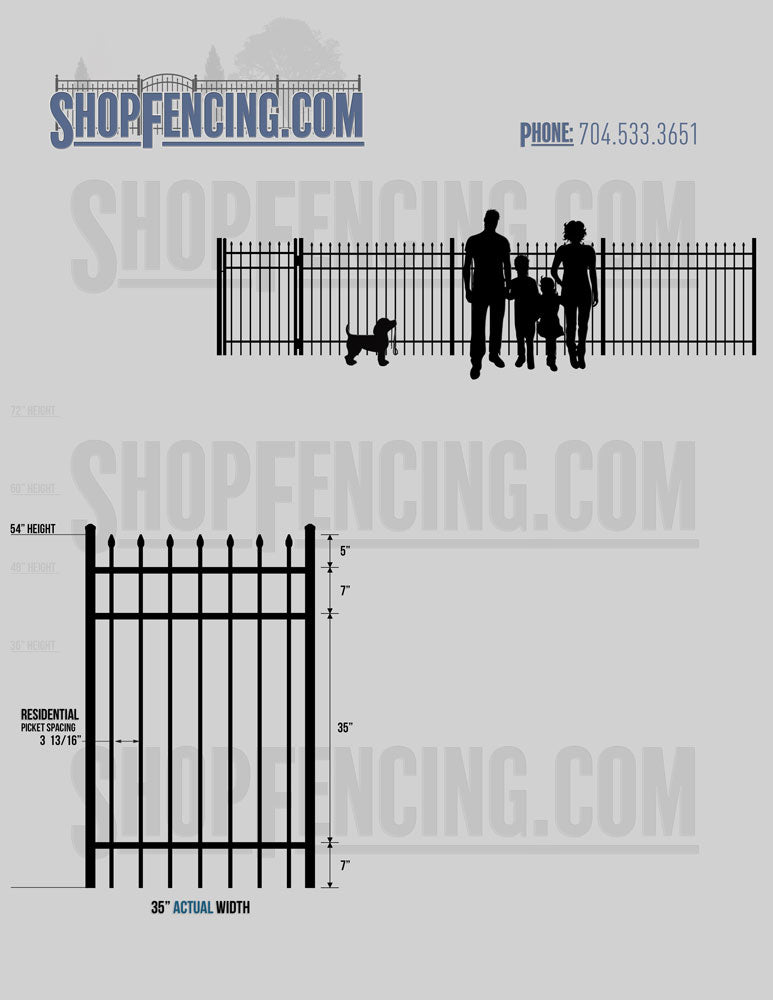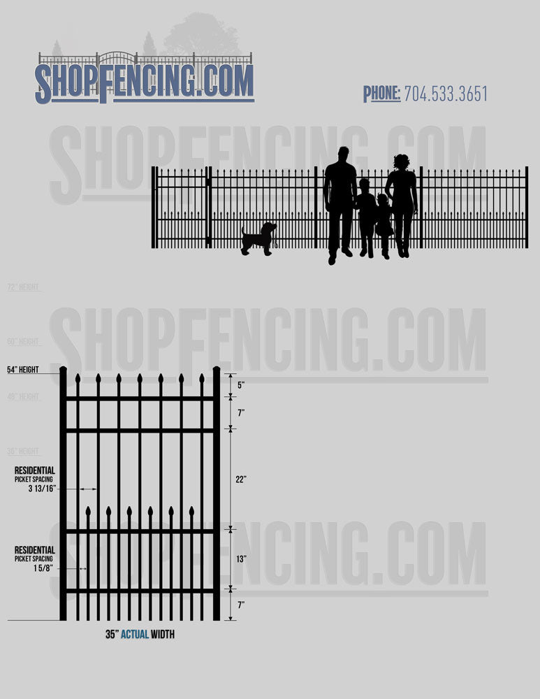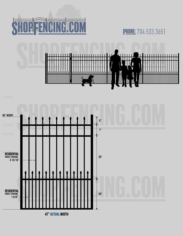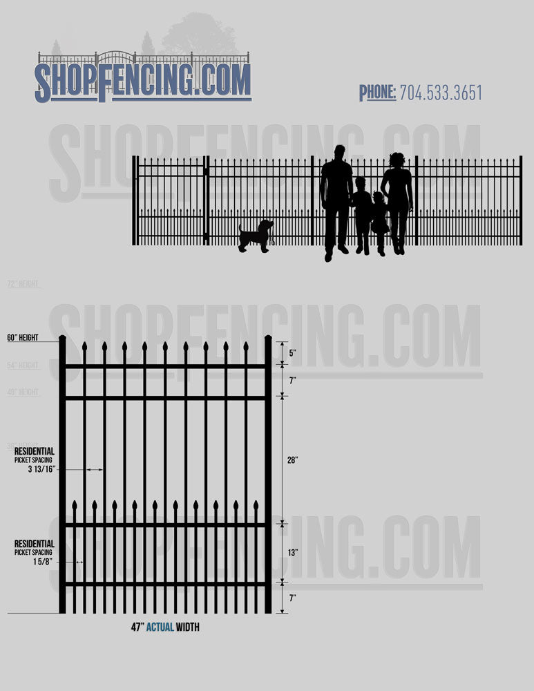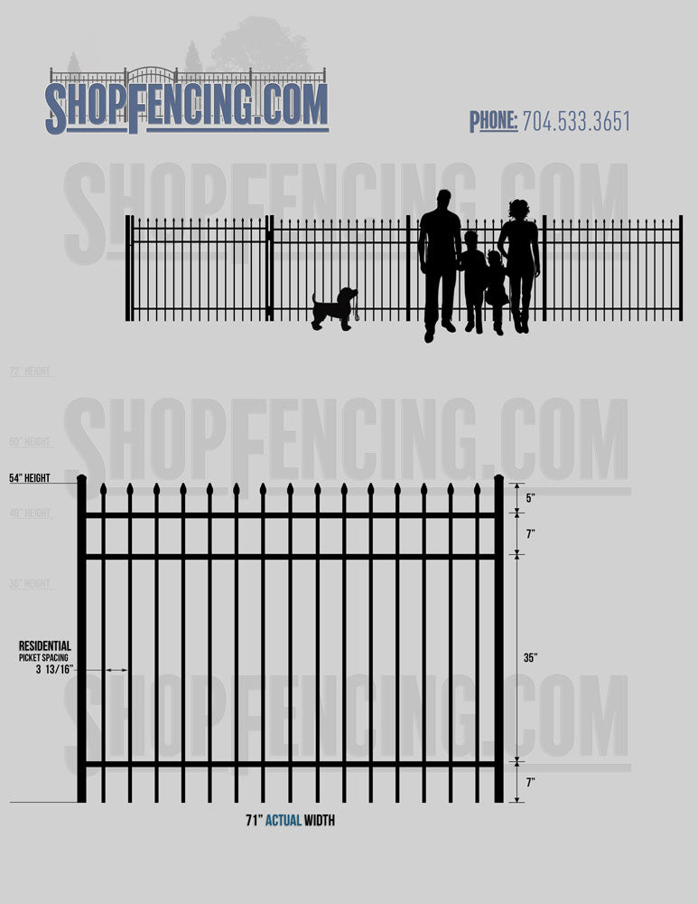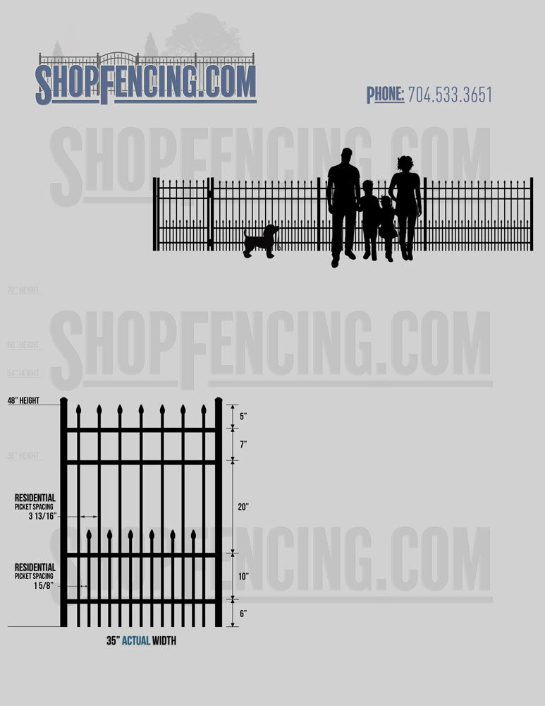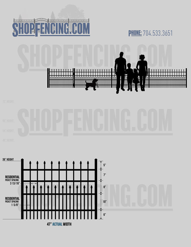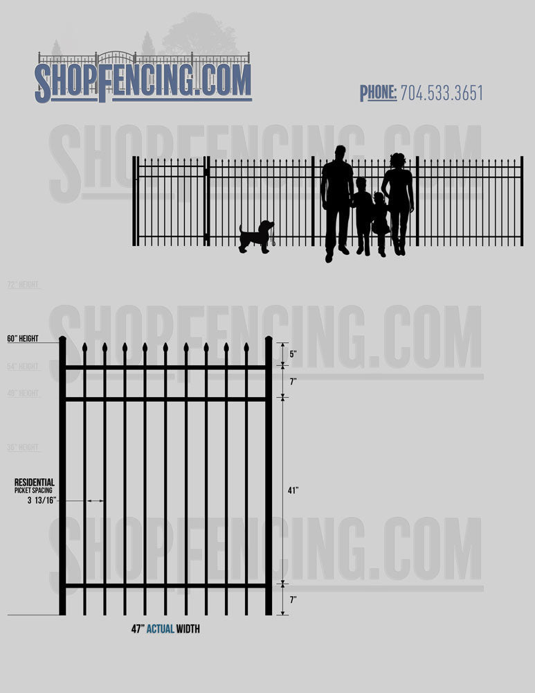 Standard Picket Design: 60" Flush Bottom and 72" Heights. Double Picket Design: 48", 54", 60" and 72" Heights. Check your local pool codes before purchasing.