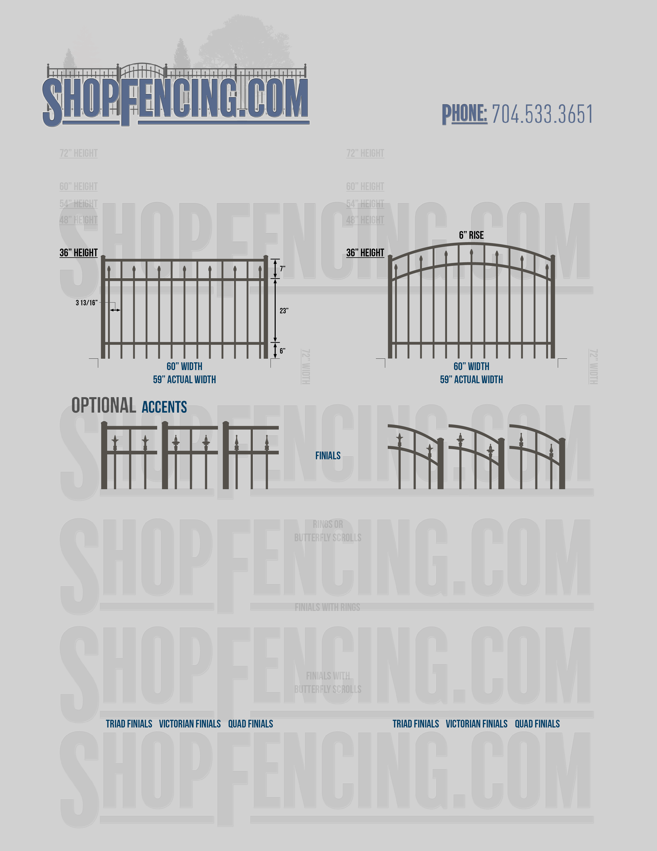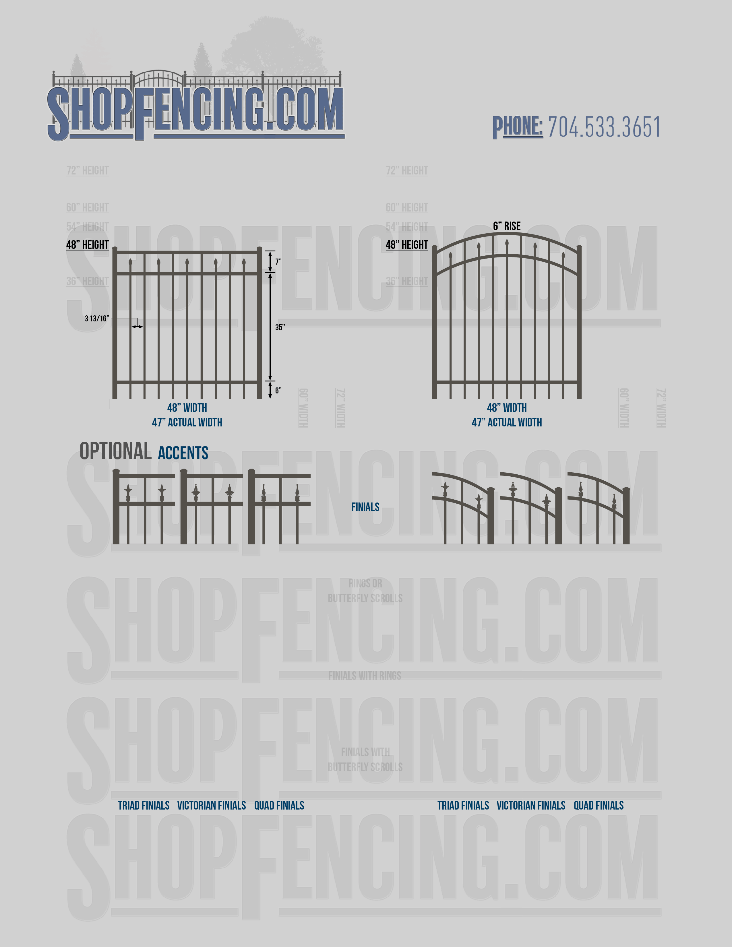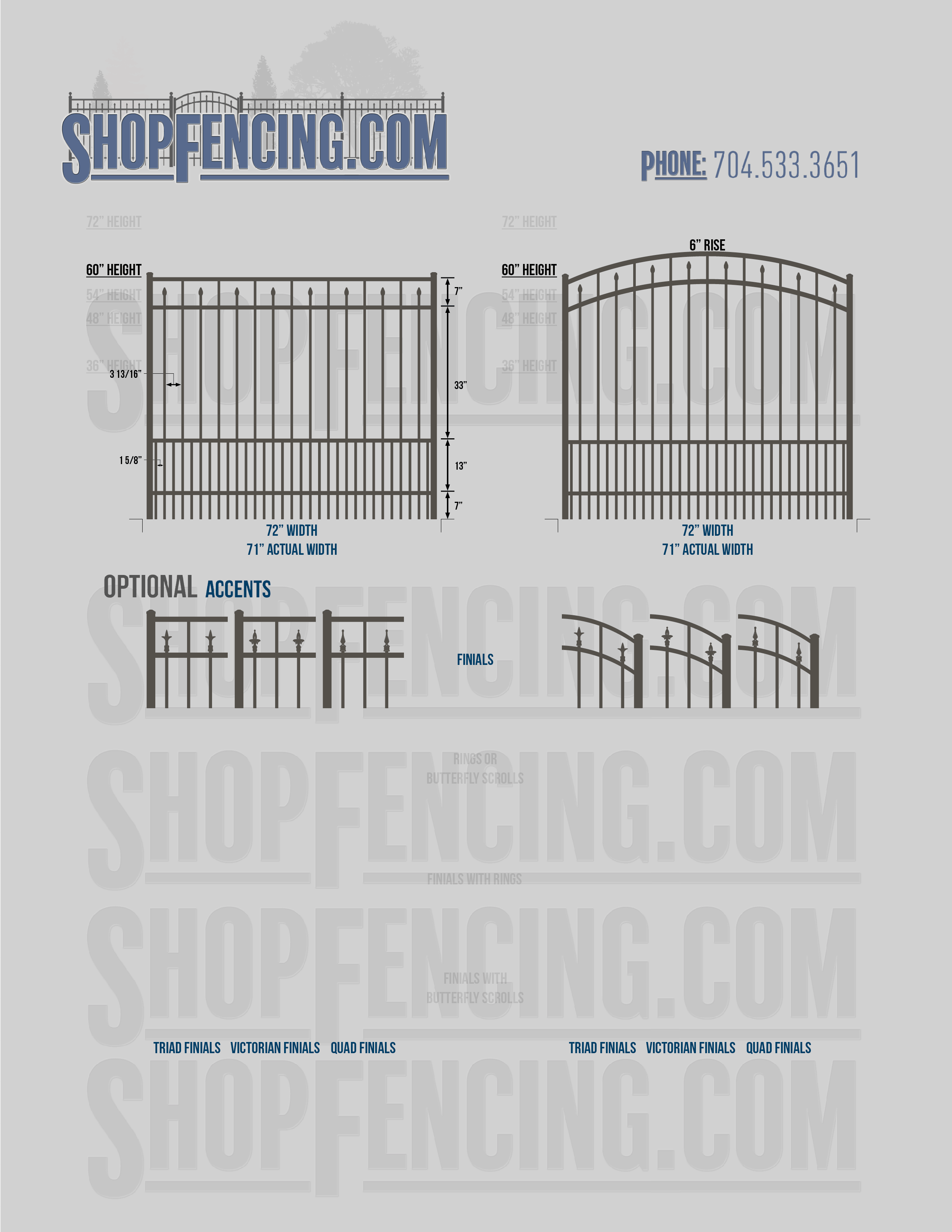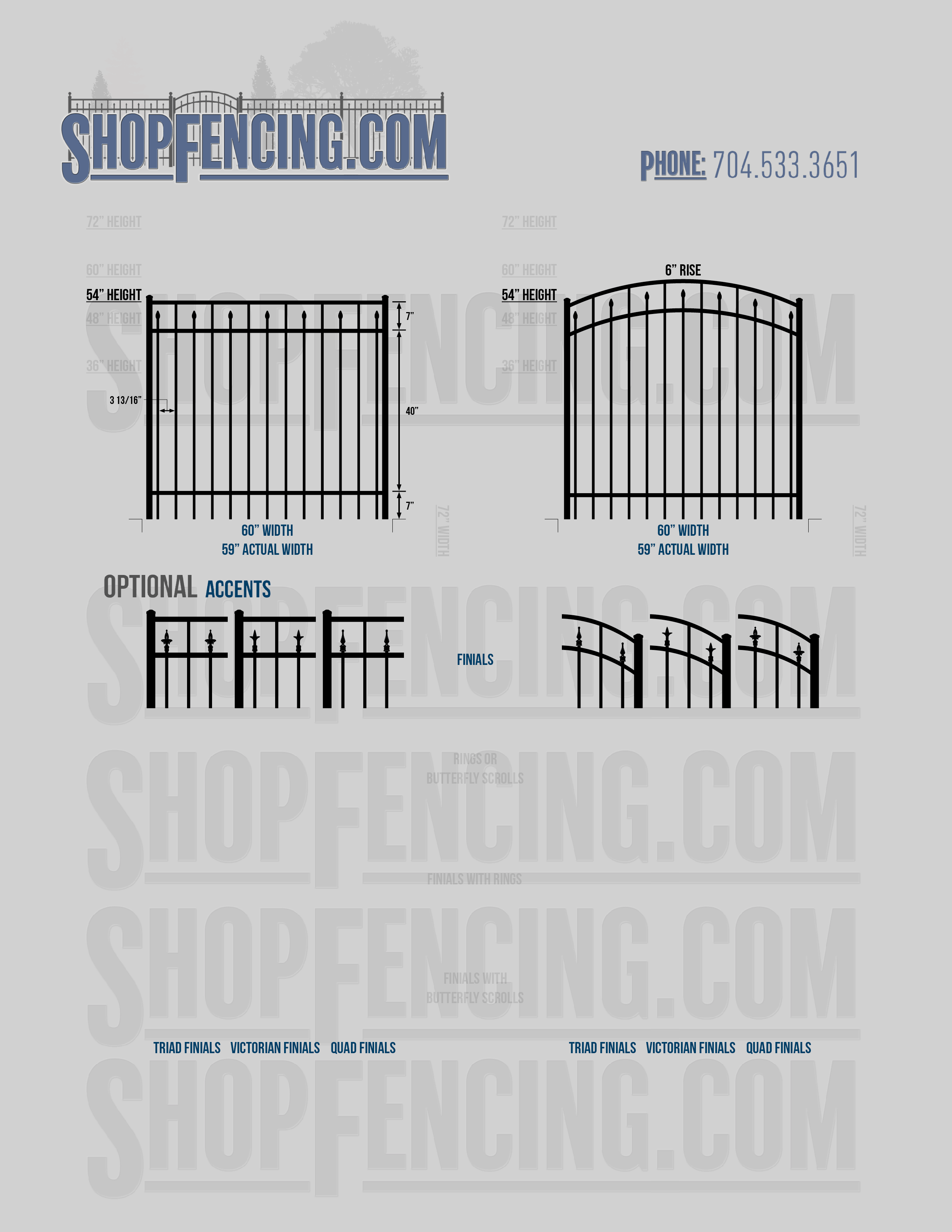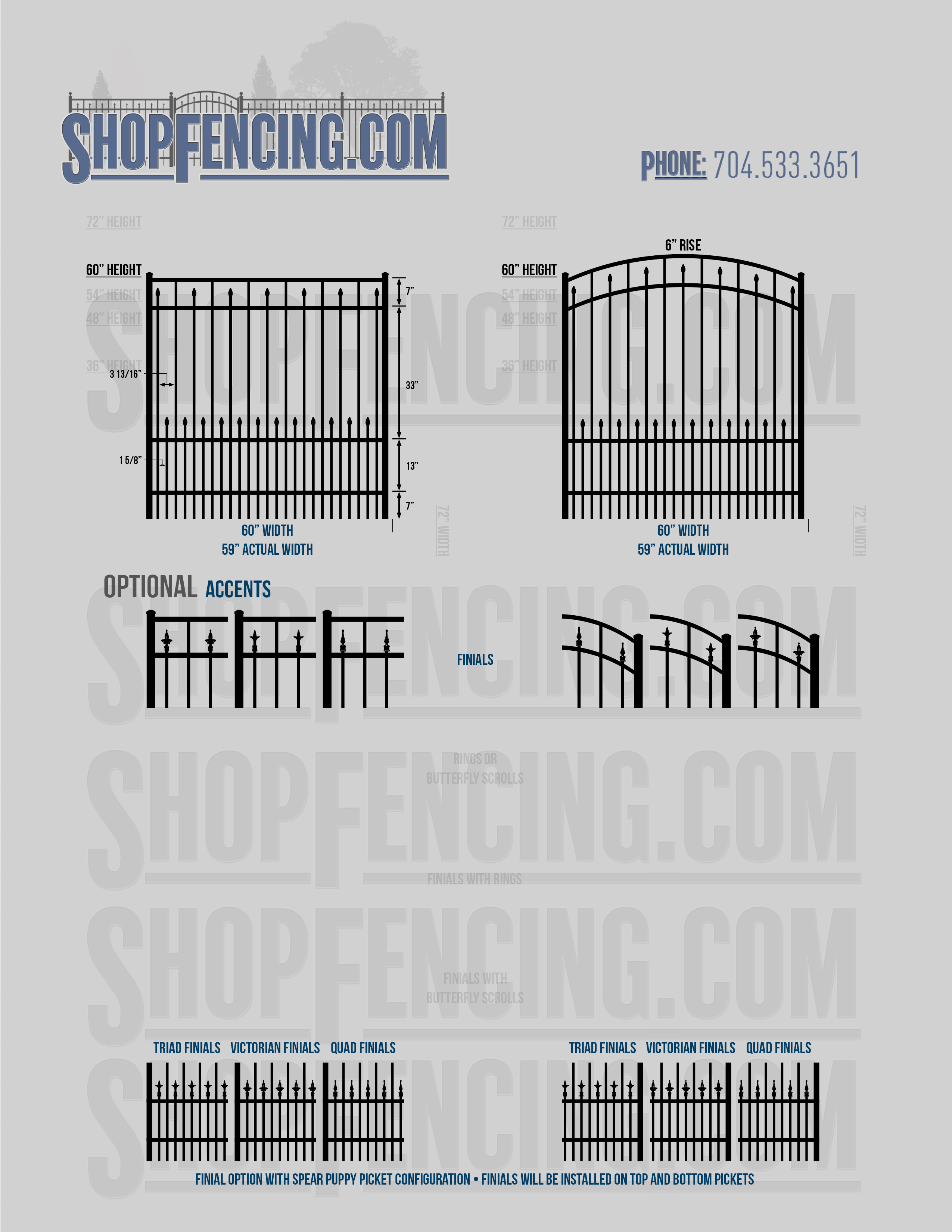 Accent Upgrades: When you add these options, gates will ship with the finials, rings or scrolls installed. PLEASE NOTE: Triad and Victorian finials cannot be installed on double picket fence sections and gates. Rings and scrolls cannot be installed on double picket fence sections and gates.