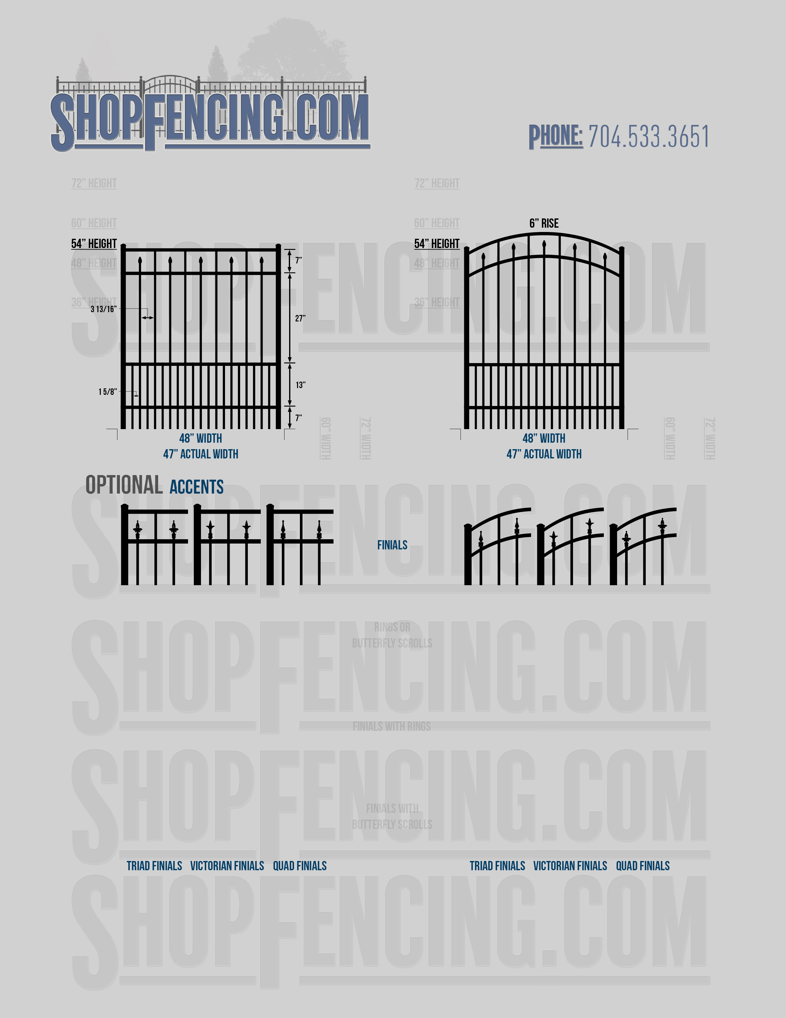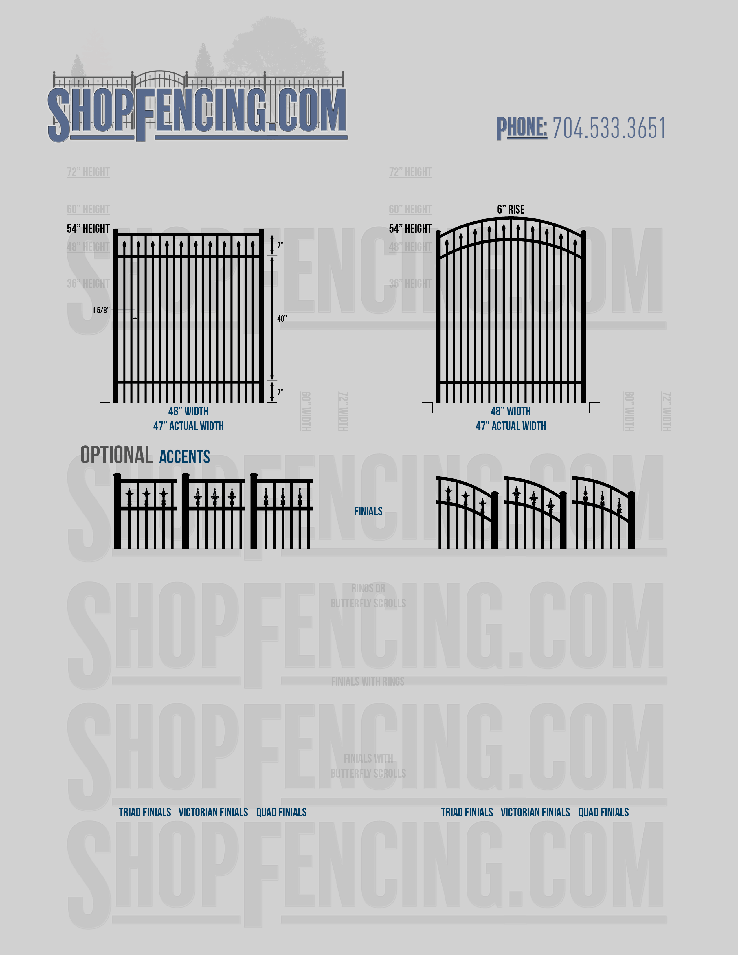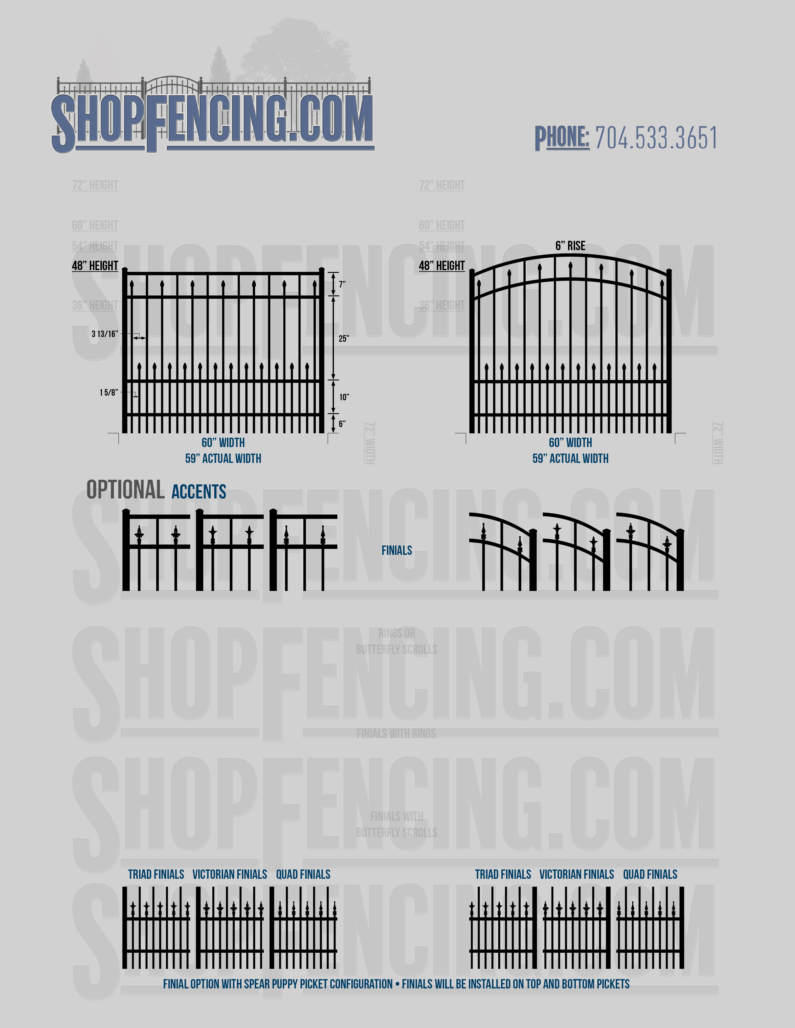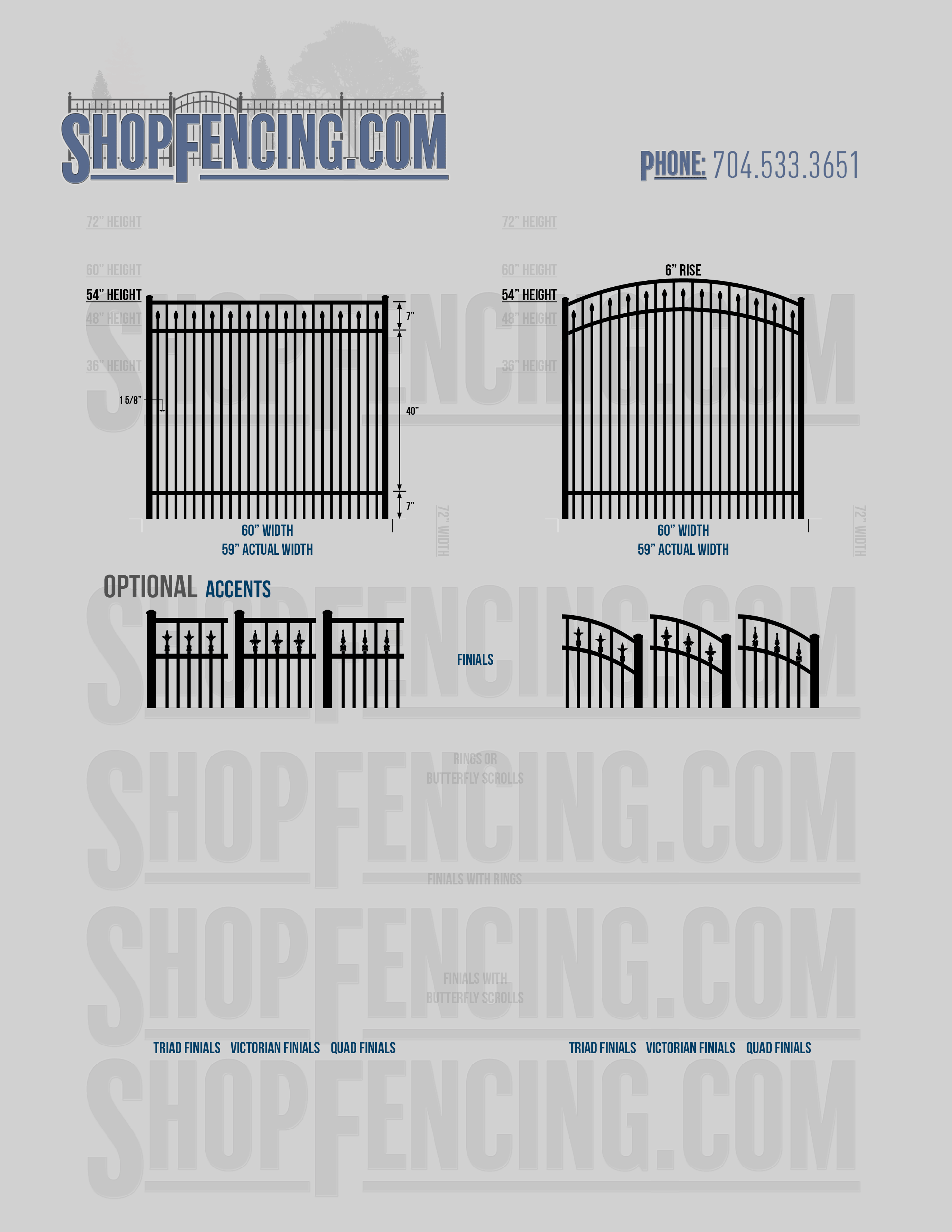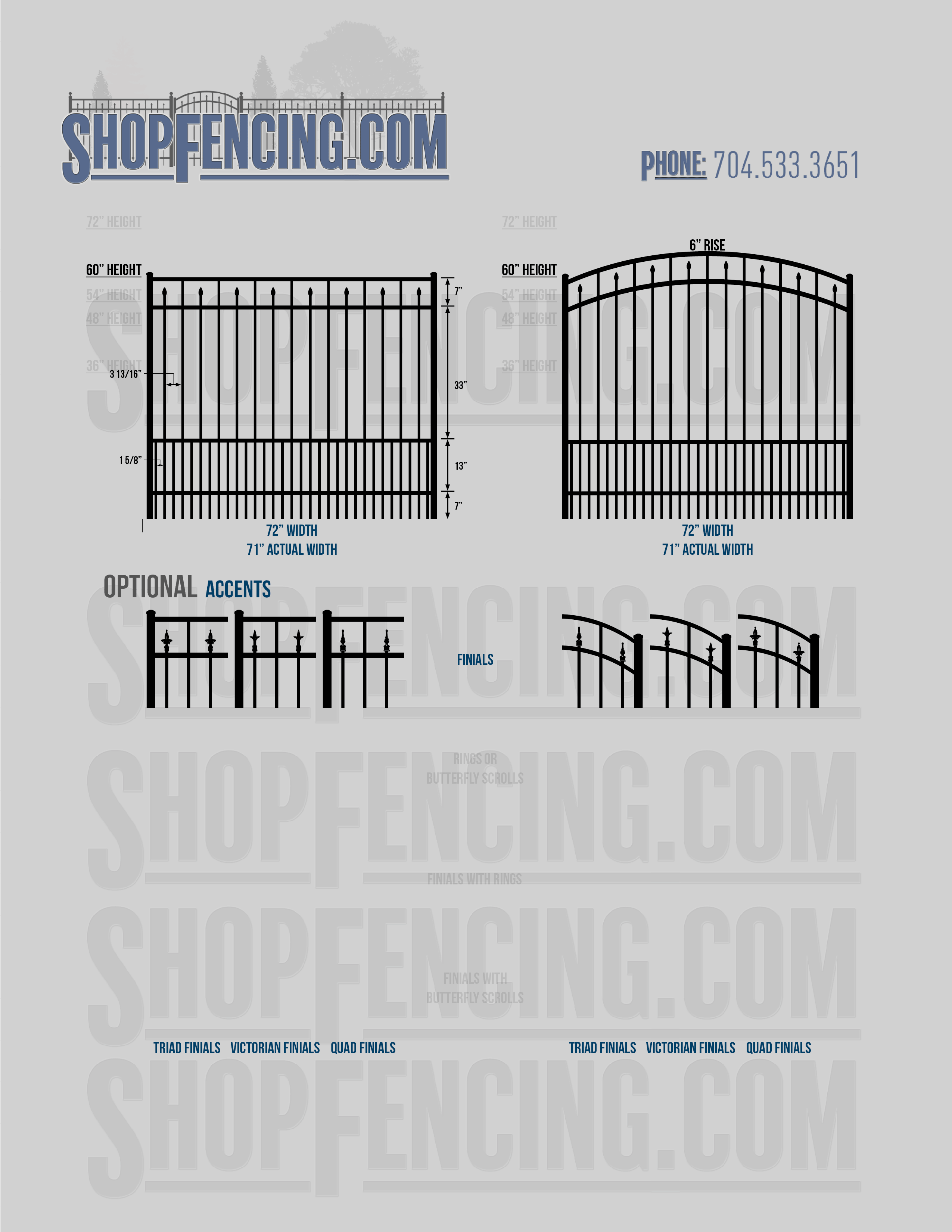 Accent Upgrades: When you add these options, gates will ship with the finials, rings or scrolls installed. PLEASE NOTE: Triad and Victorian finials cannot be installed on double picket fence sections and gates. Rings and scrolls cannot be installed on double picket fence sections and gates.