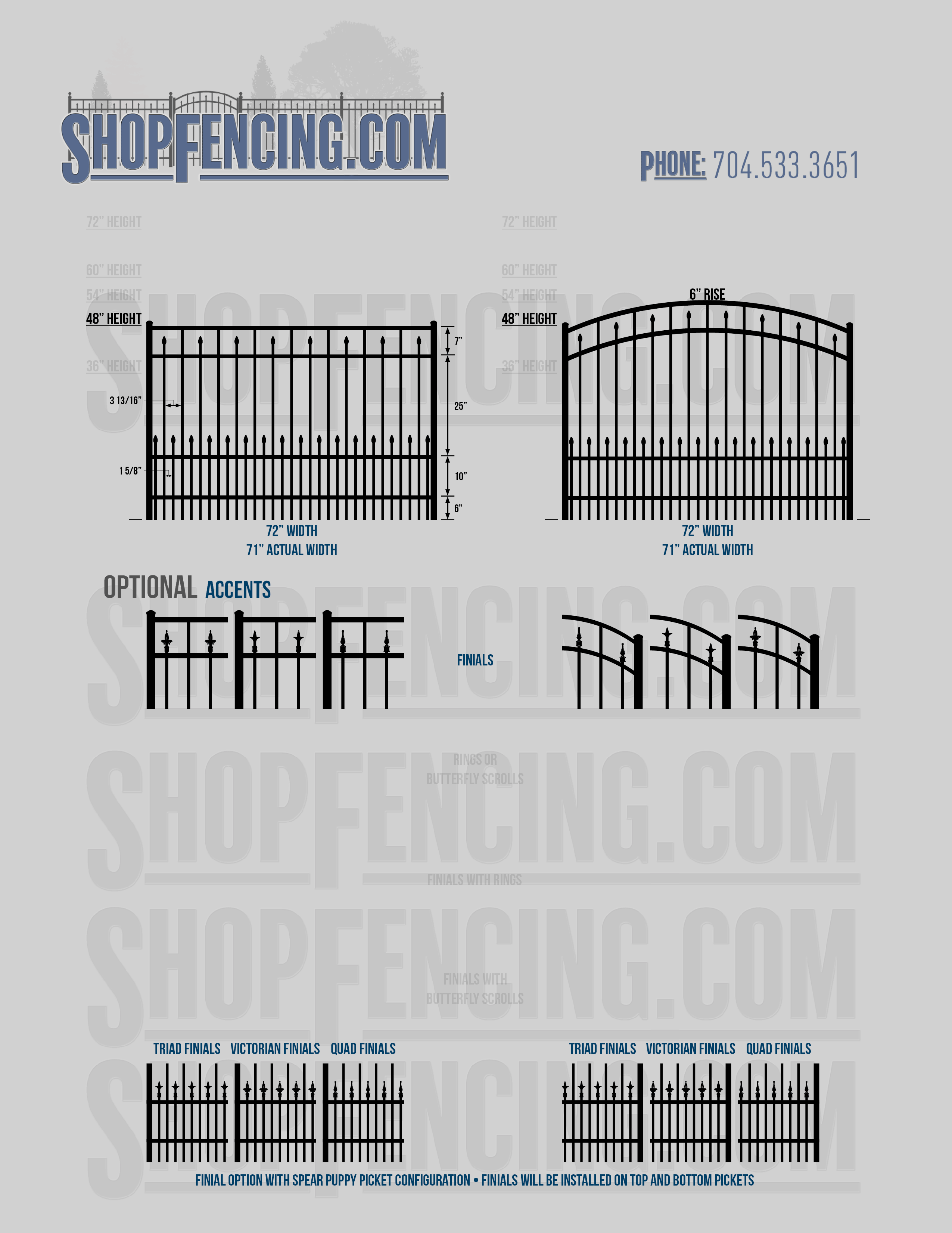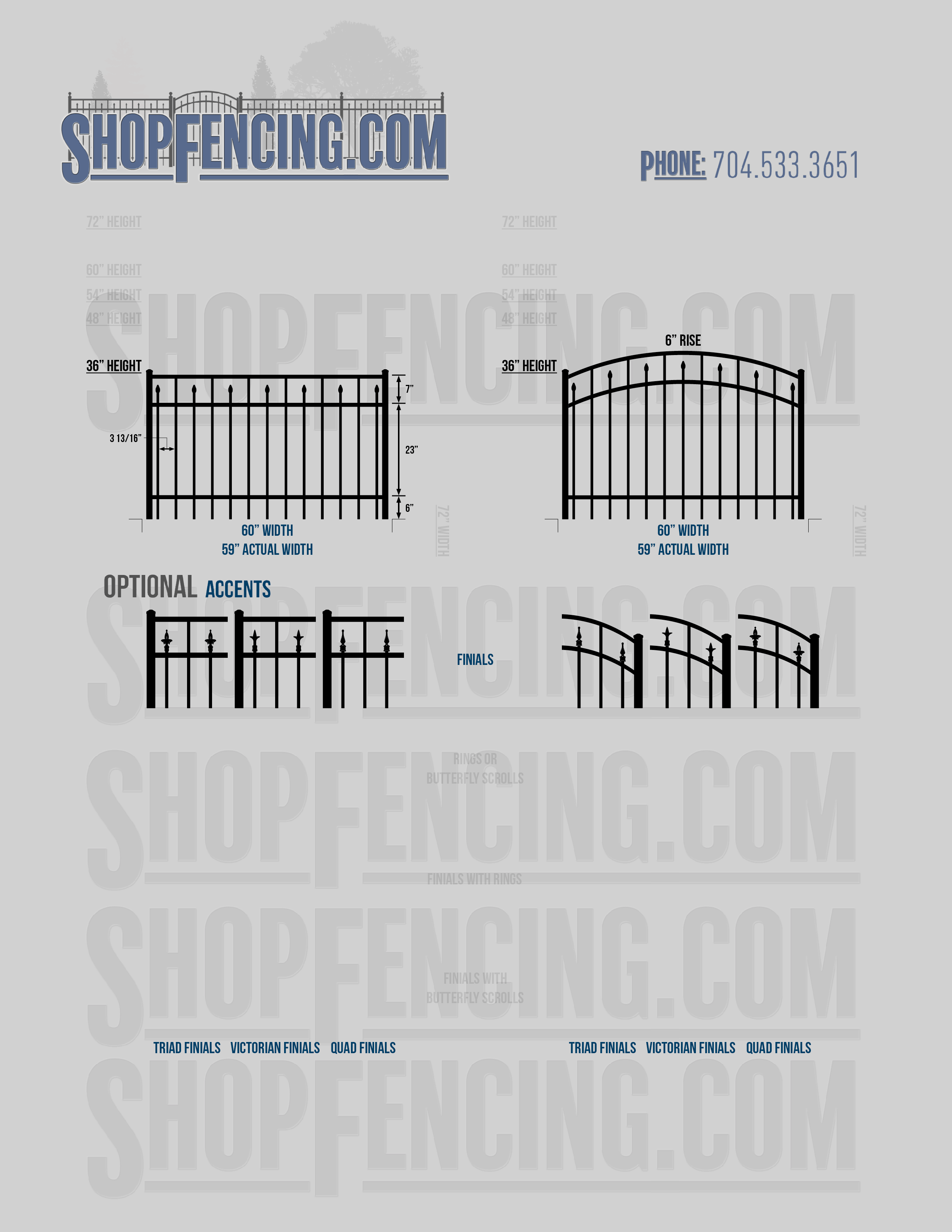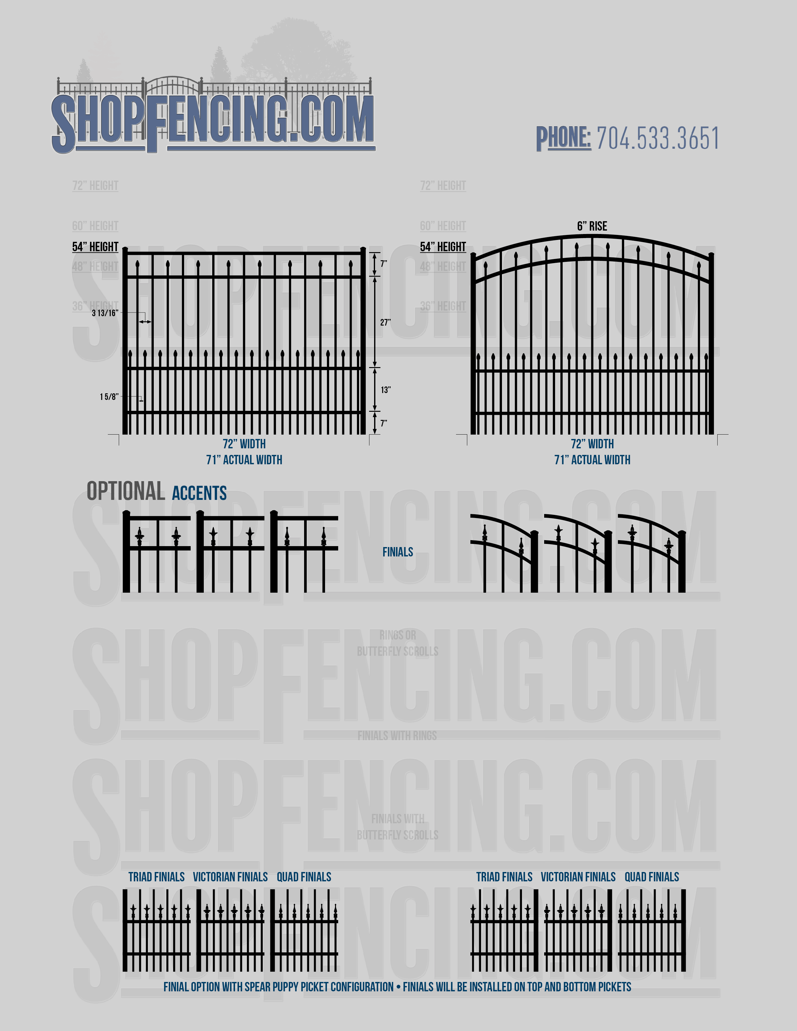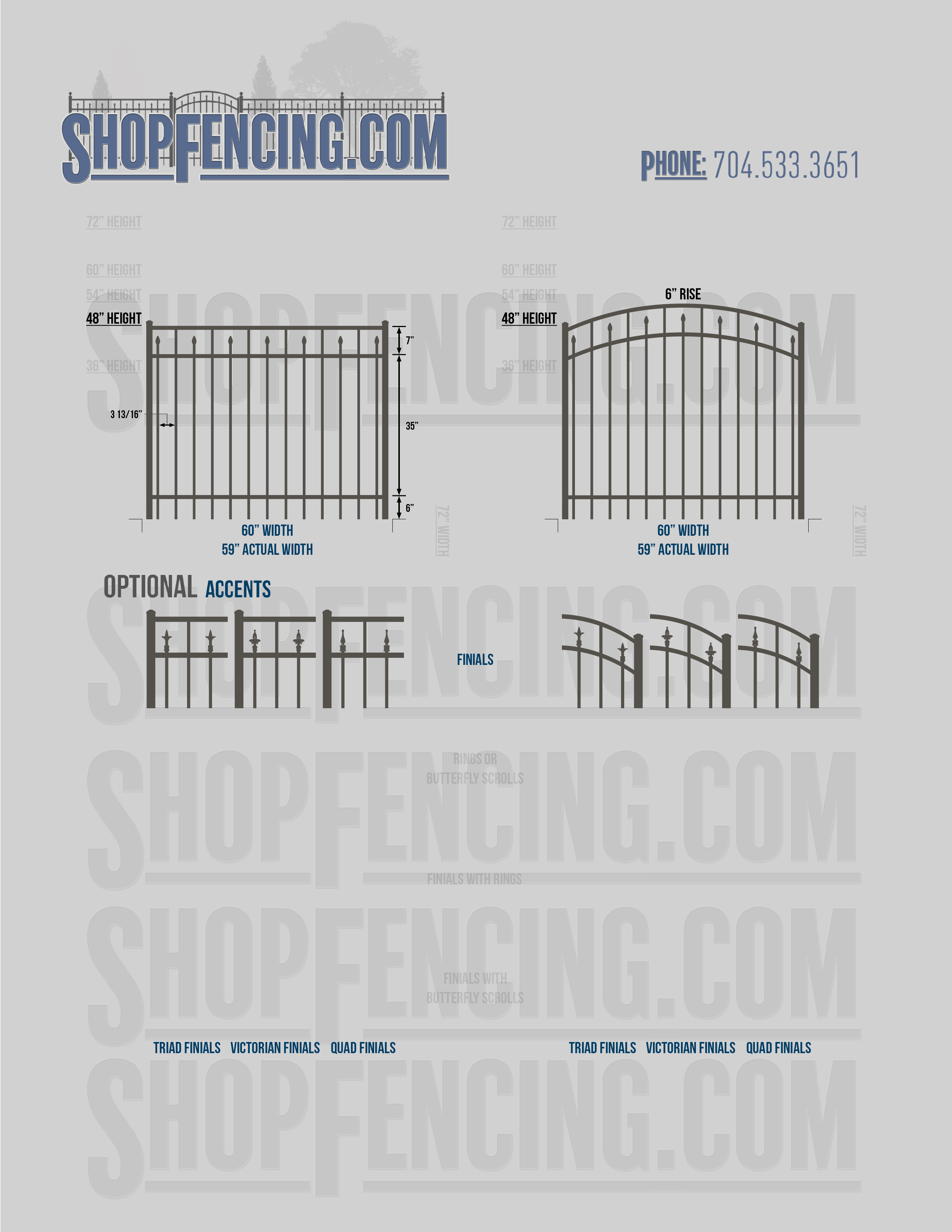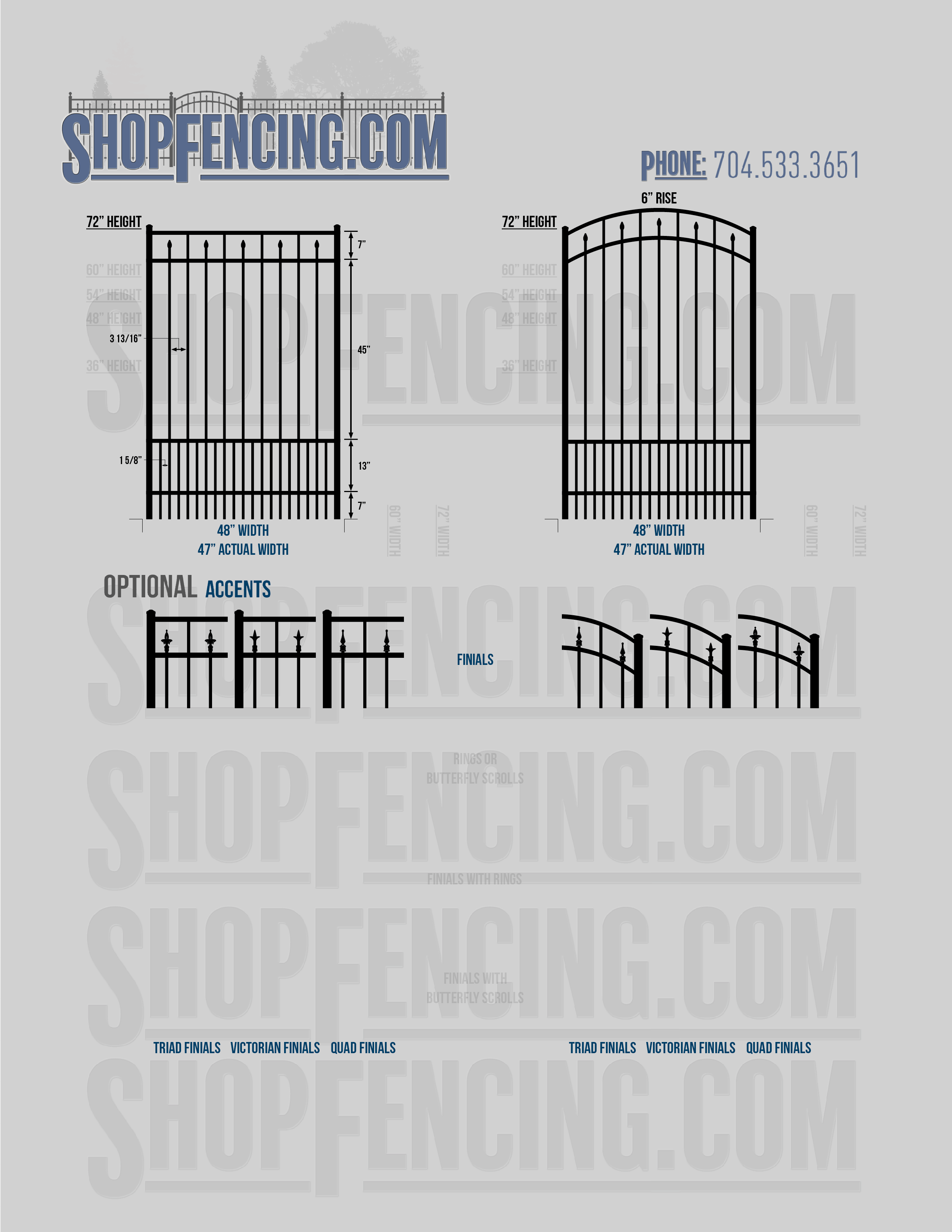 Accent Upgrades: When you add these options, gates will ship with the finials, rings or scrolls installed. PLEASE NOTE: Triad and Victorian finials cannot be installed on double picket fence sections and gates. Rings and scrolls cannot be installed on double picket fence sections and gates.