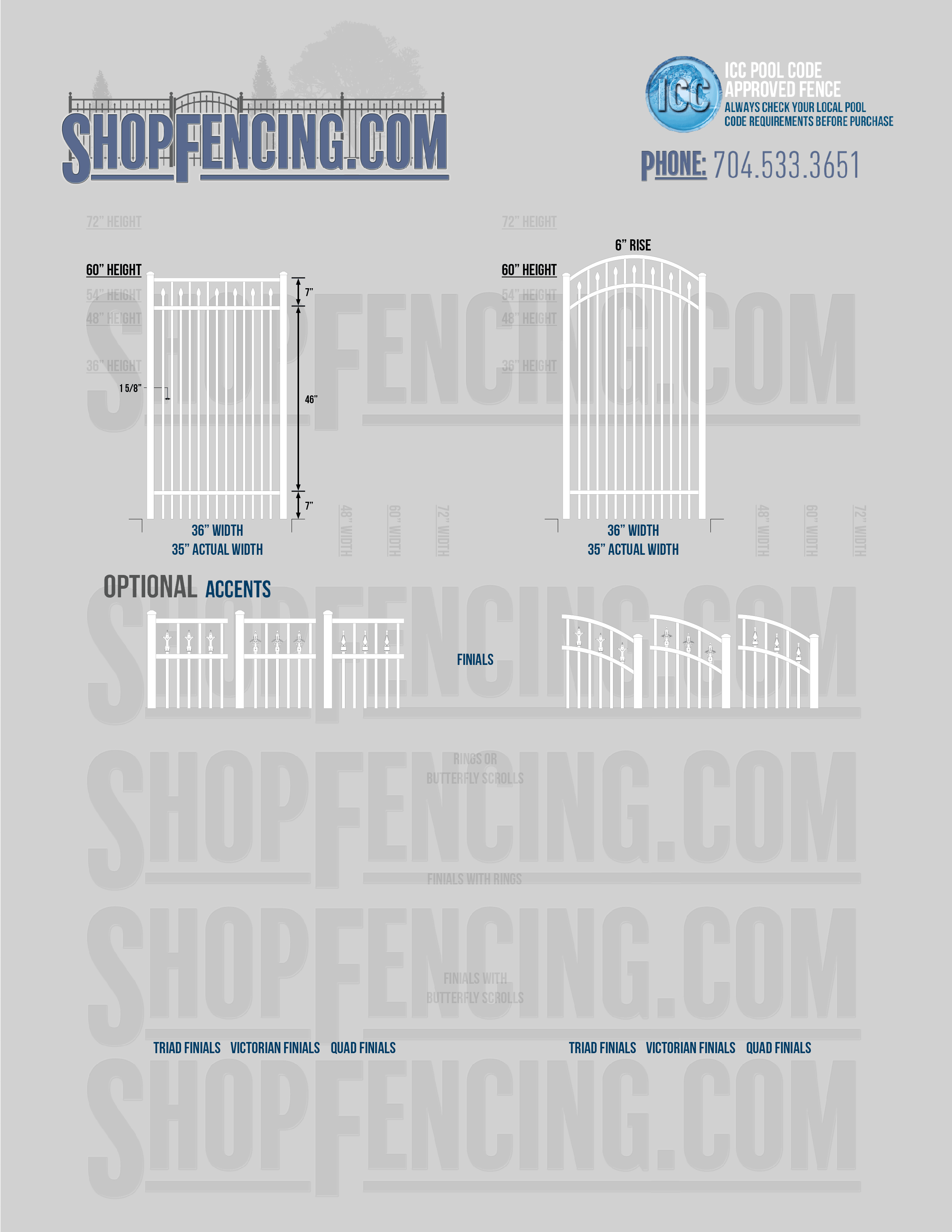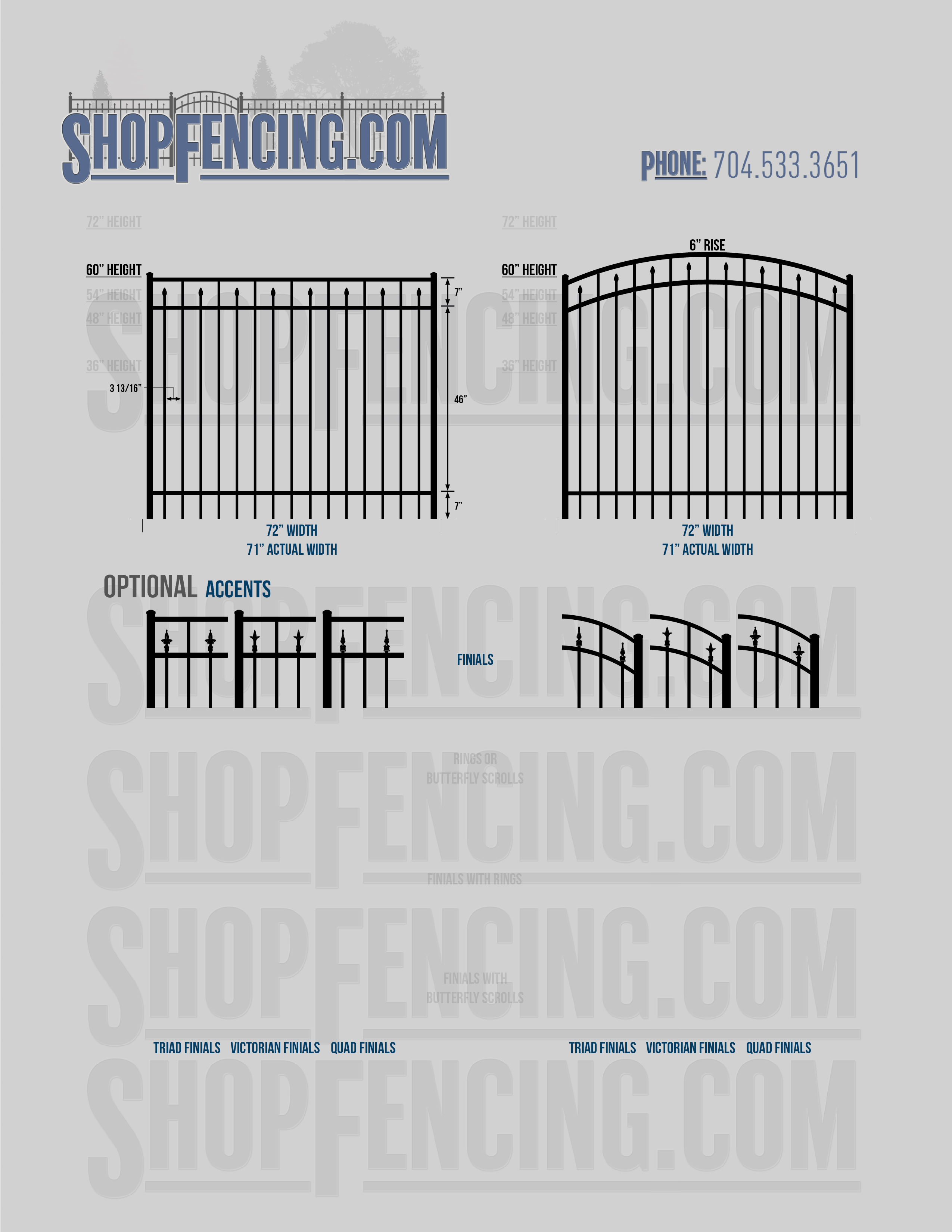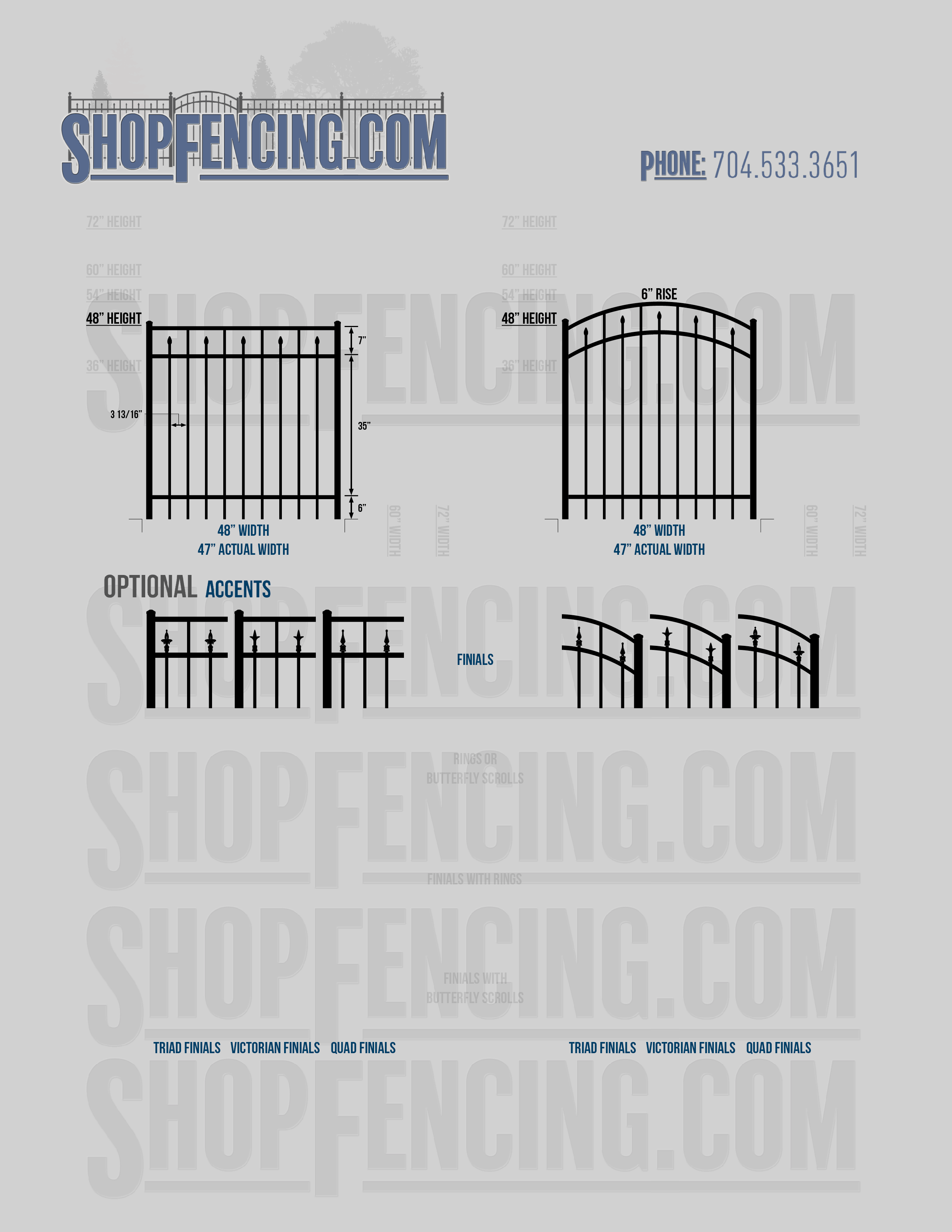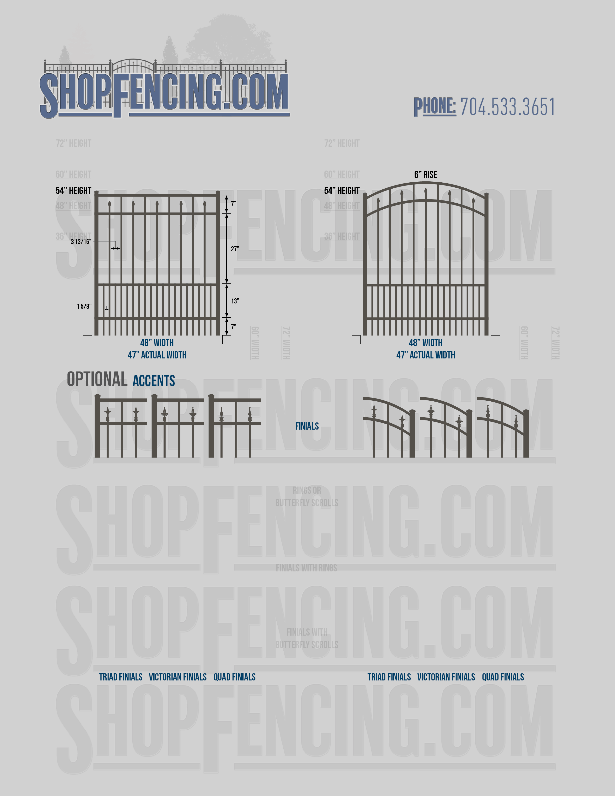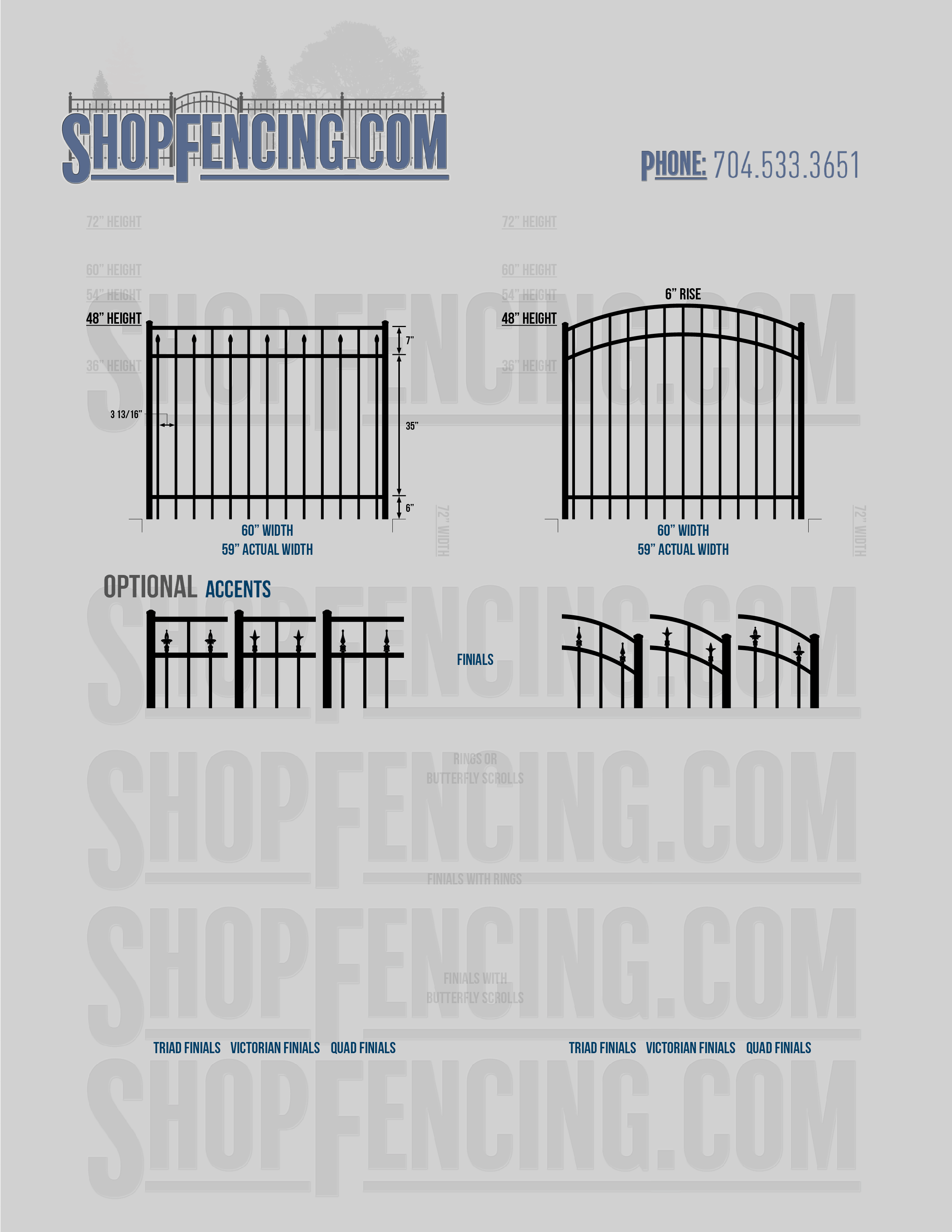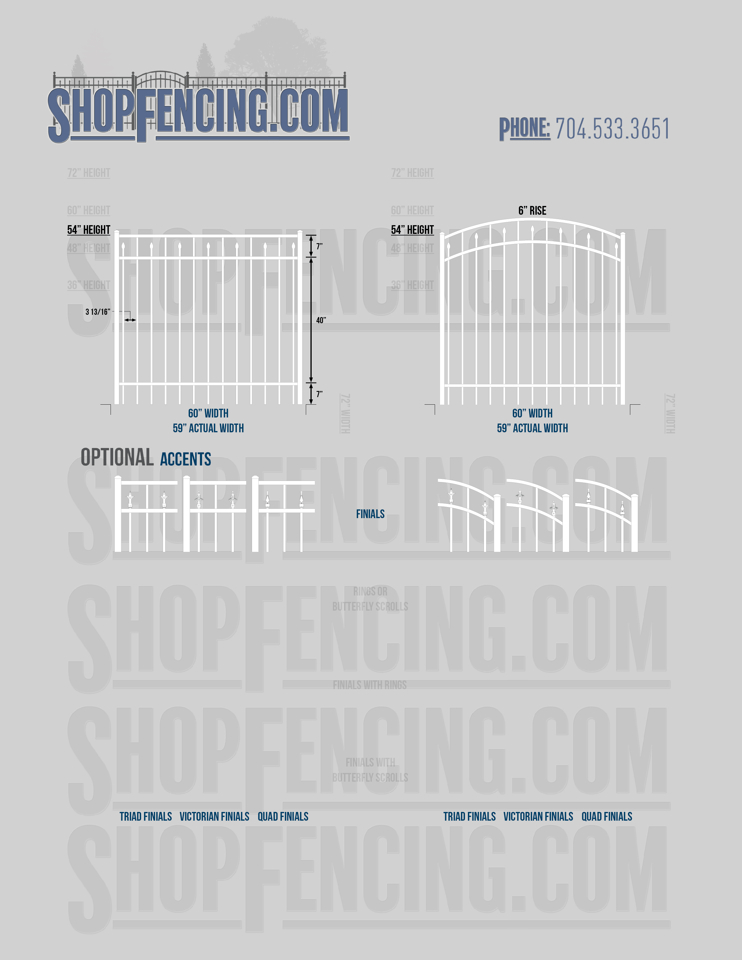 Accent Upgrades: When you add these options, gates will ship with the finials, rings or scrolls installed. PLEASE NOTE: Triad and Victorian finials cannot be installed on double picket fence sections and gates. Rings and scrolls cannot be installed on double picket fence sections and gates.