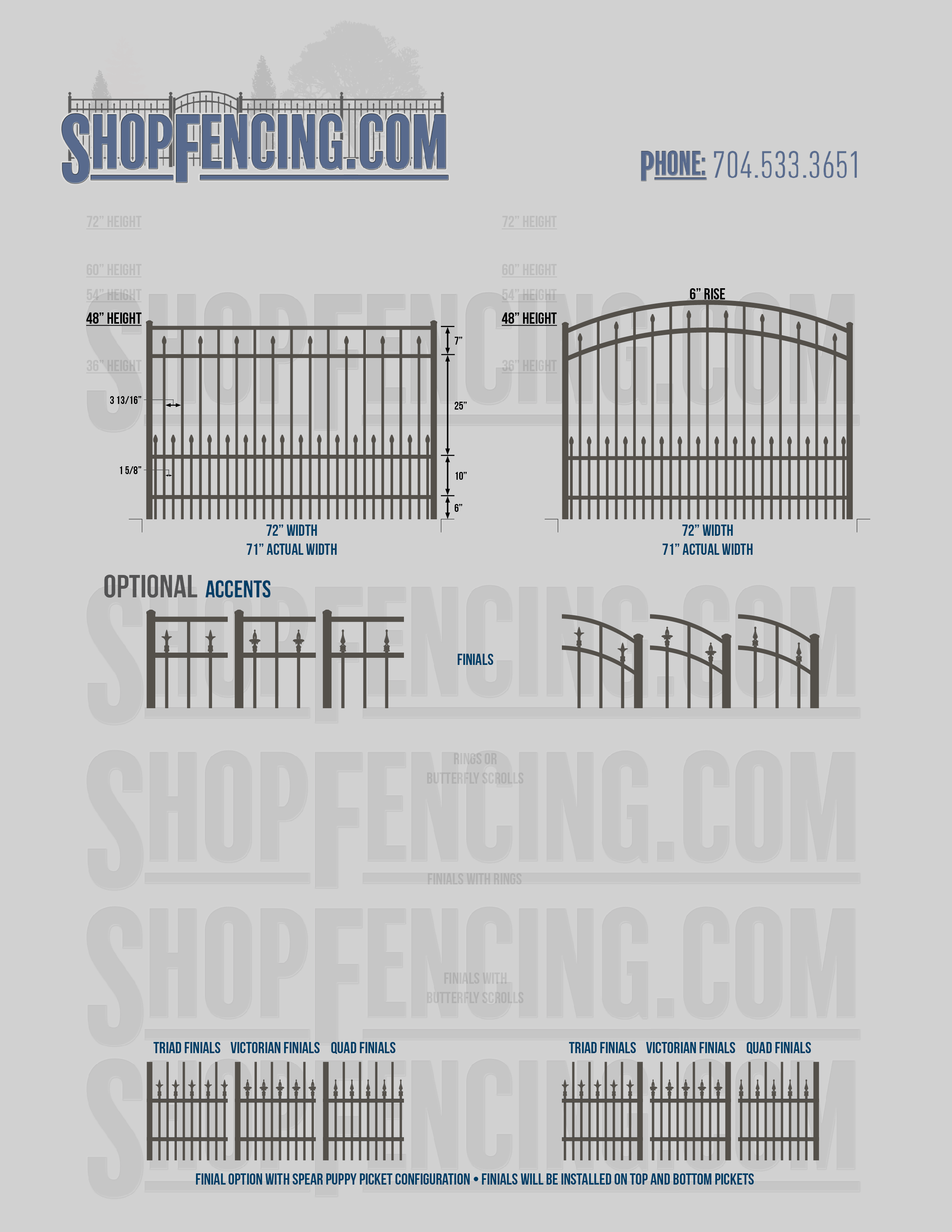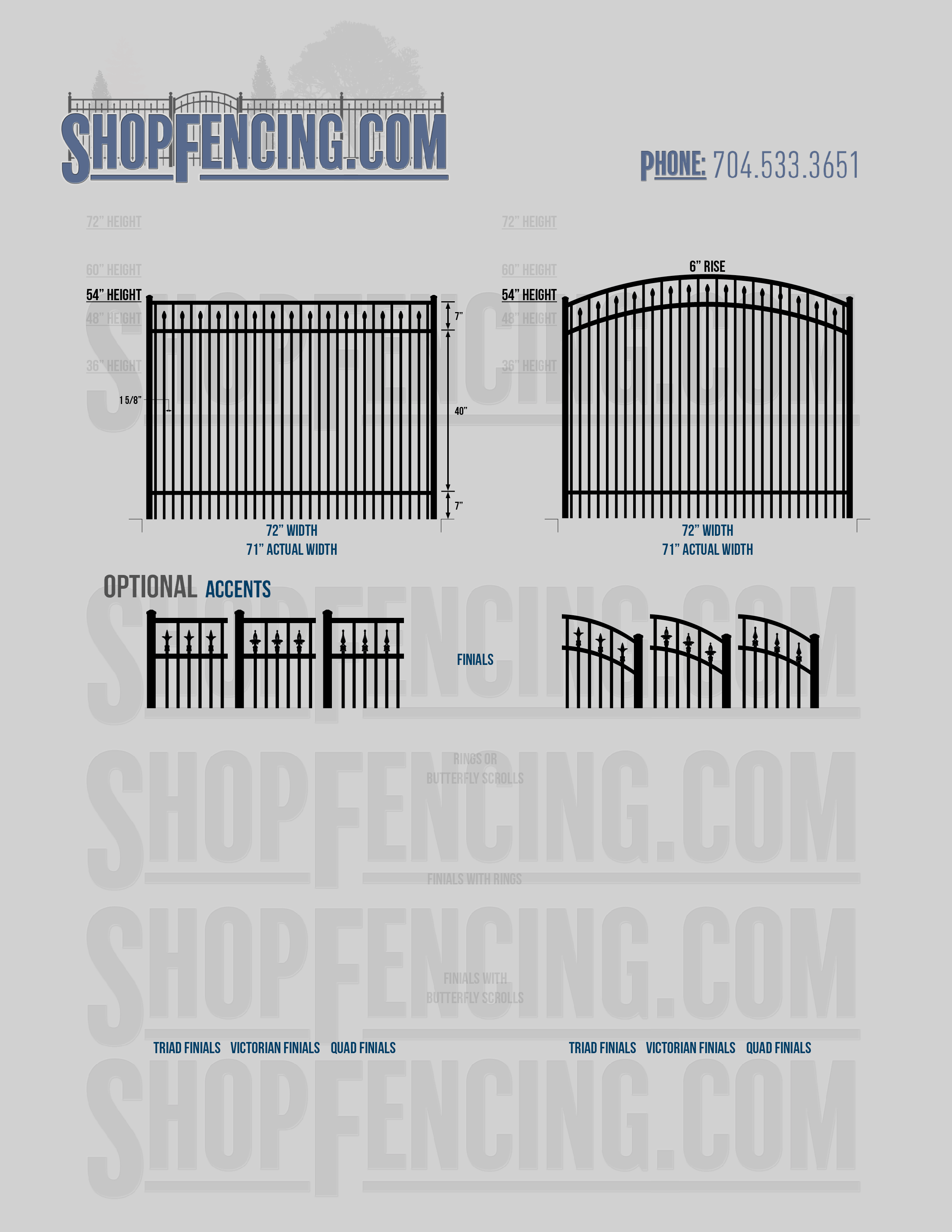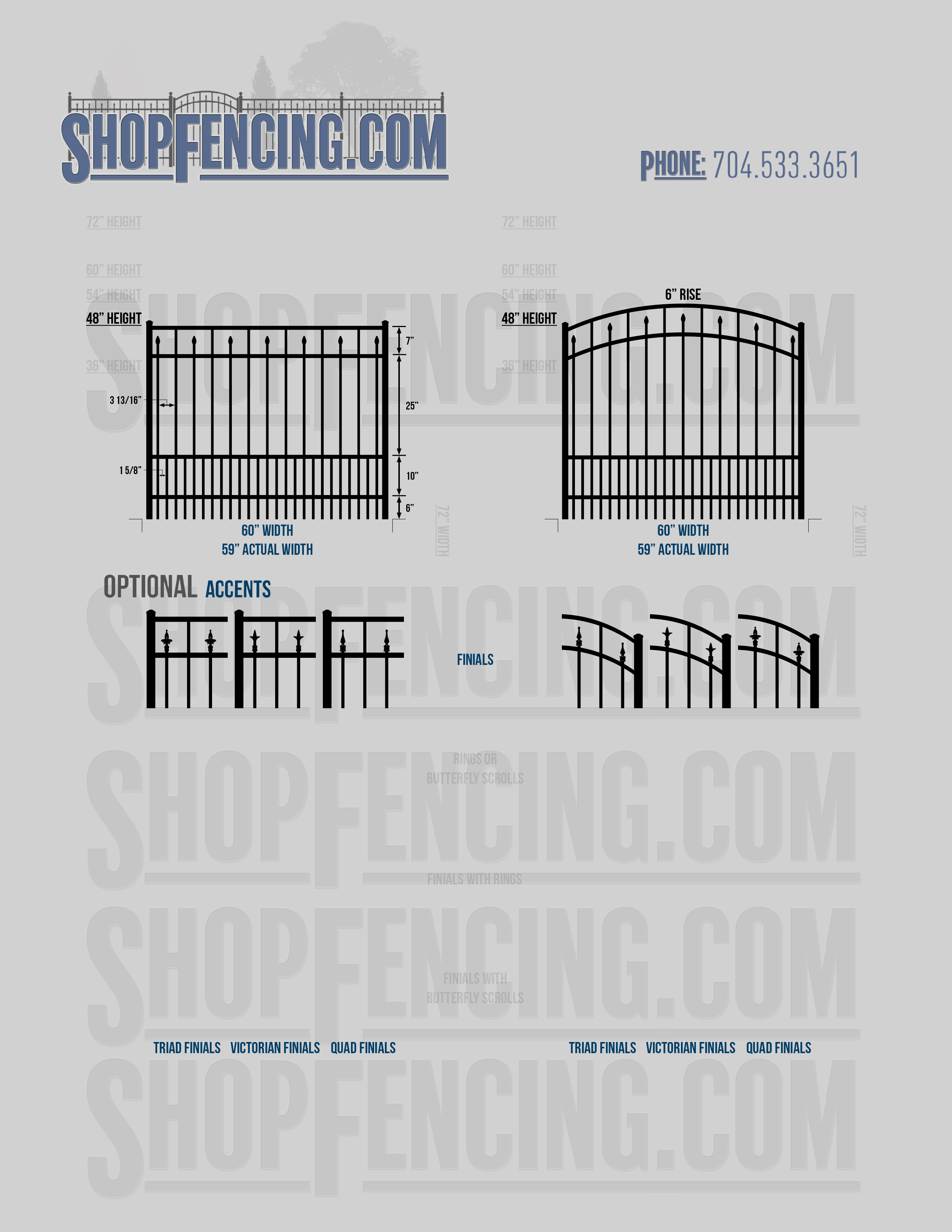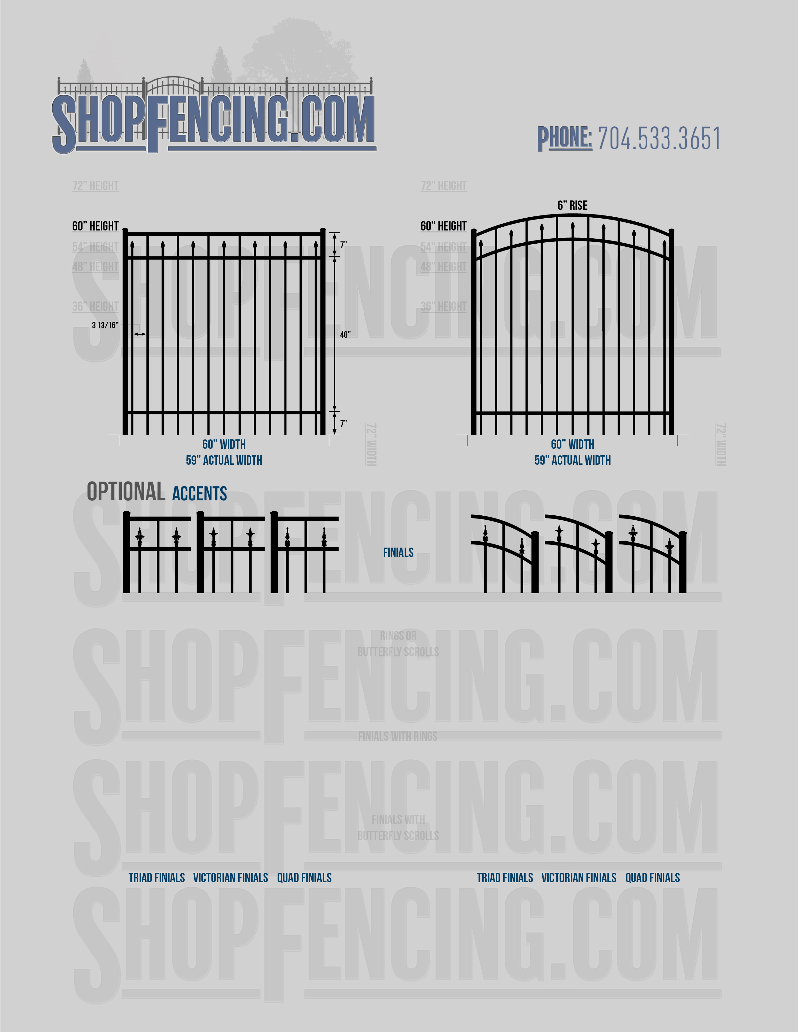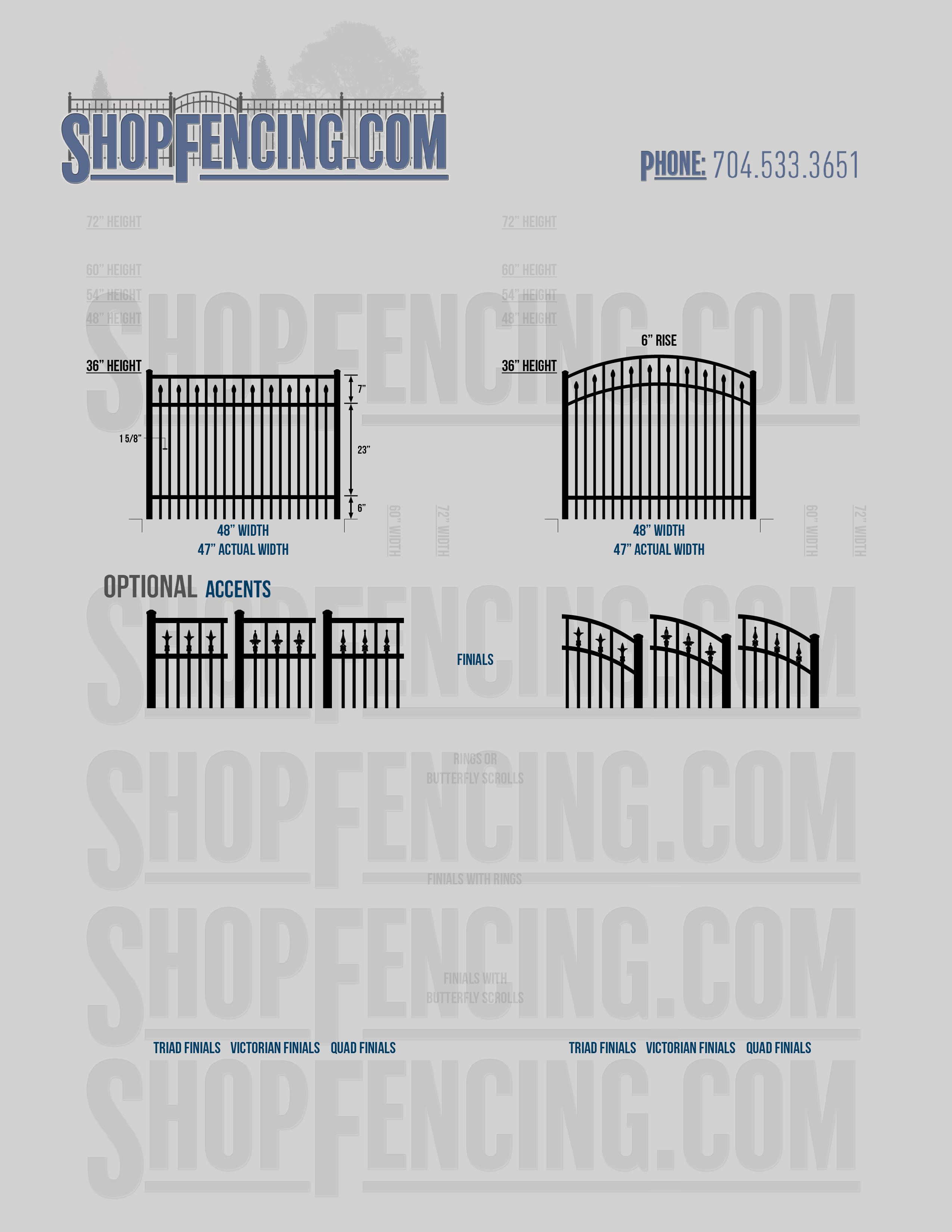 Accent Upgrades: When you add these options, gates will ship with the finials, rings or scrolls installed. PLEASE NOTE: Triad and Victorian finials cannot be installed on double picket fence sections and gates. Rings and scrolls cannot be installed on double picket fence sections and gates.
