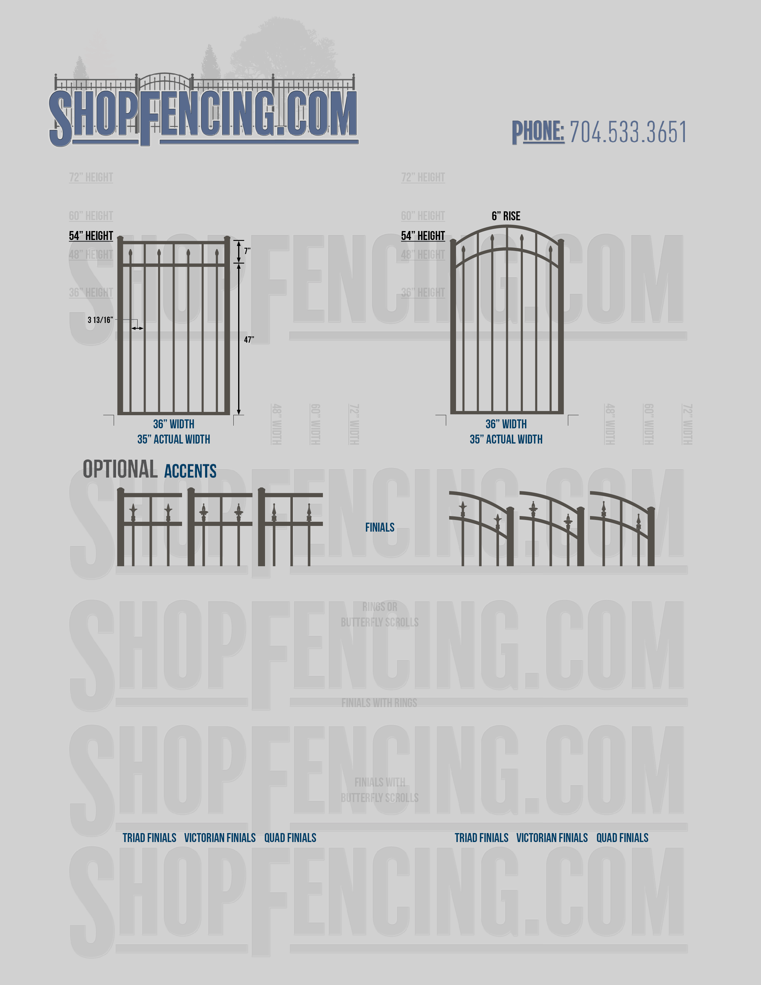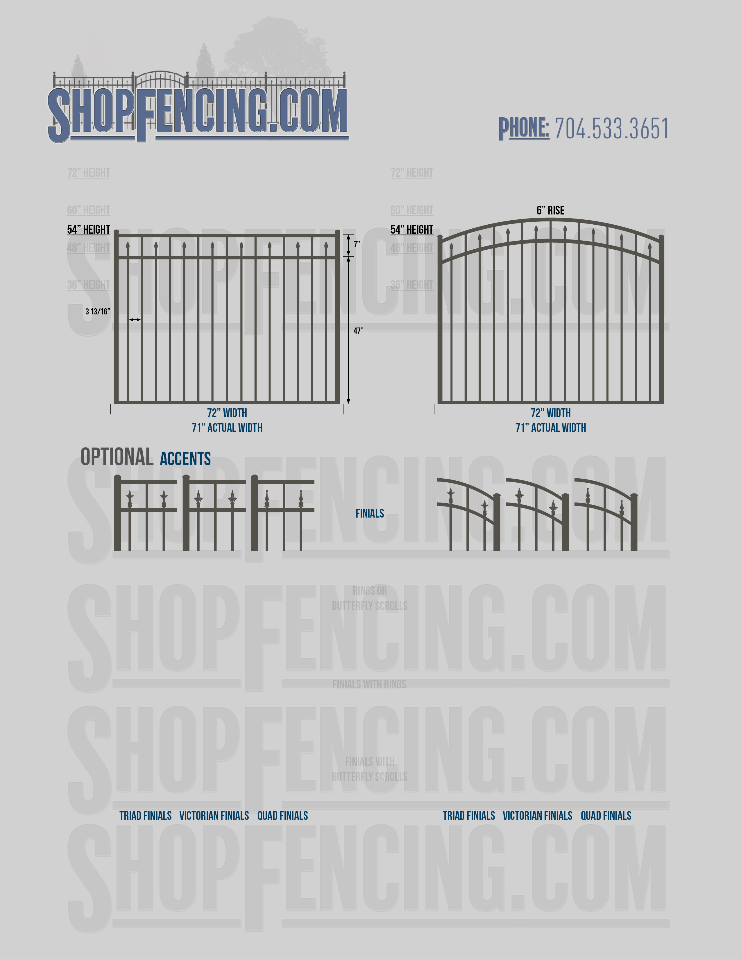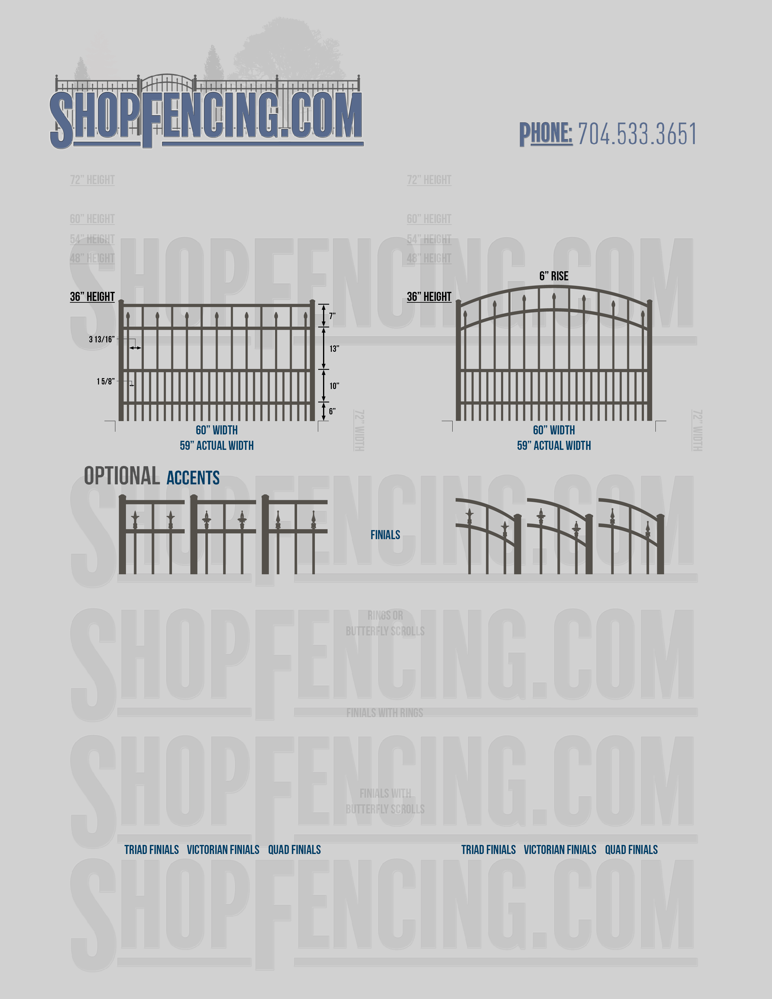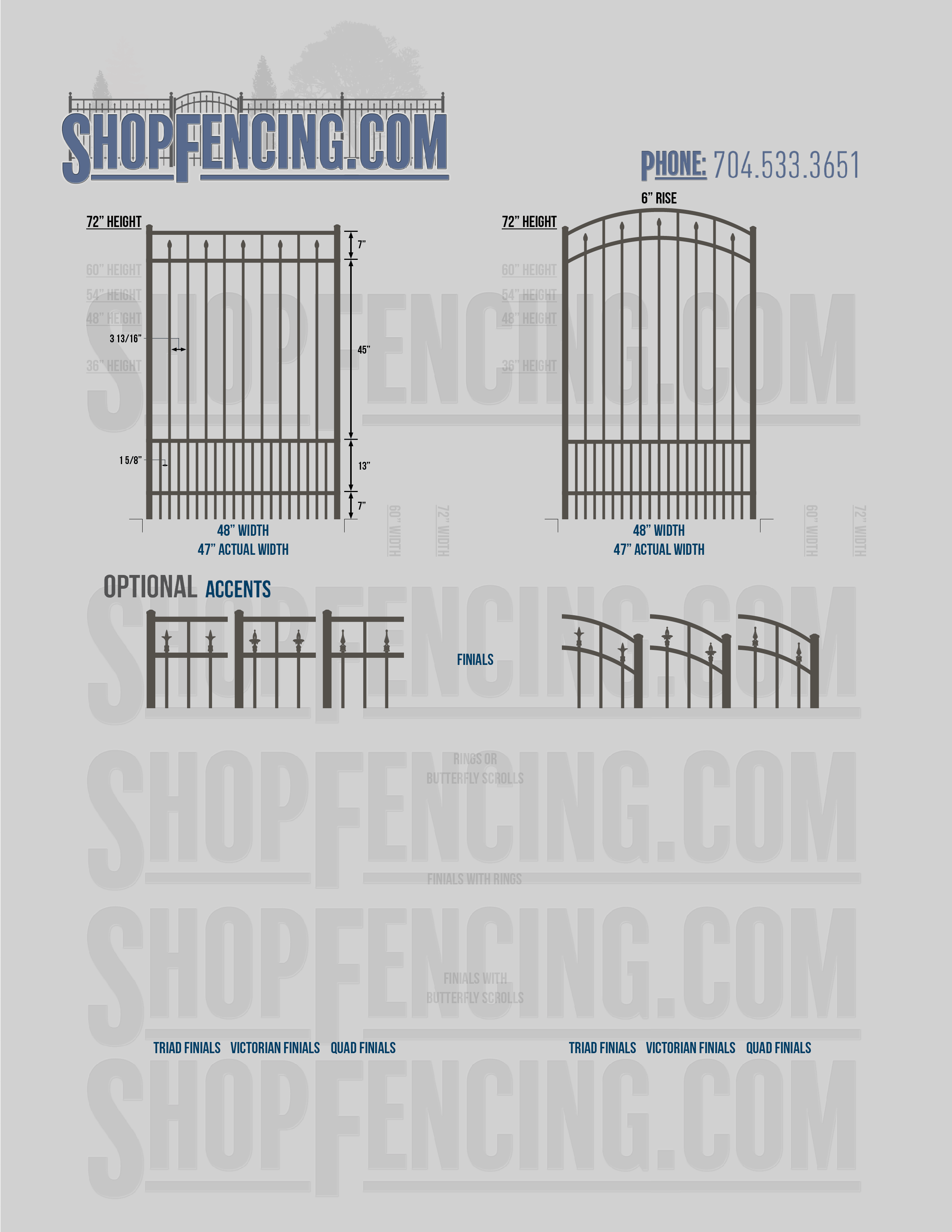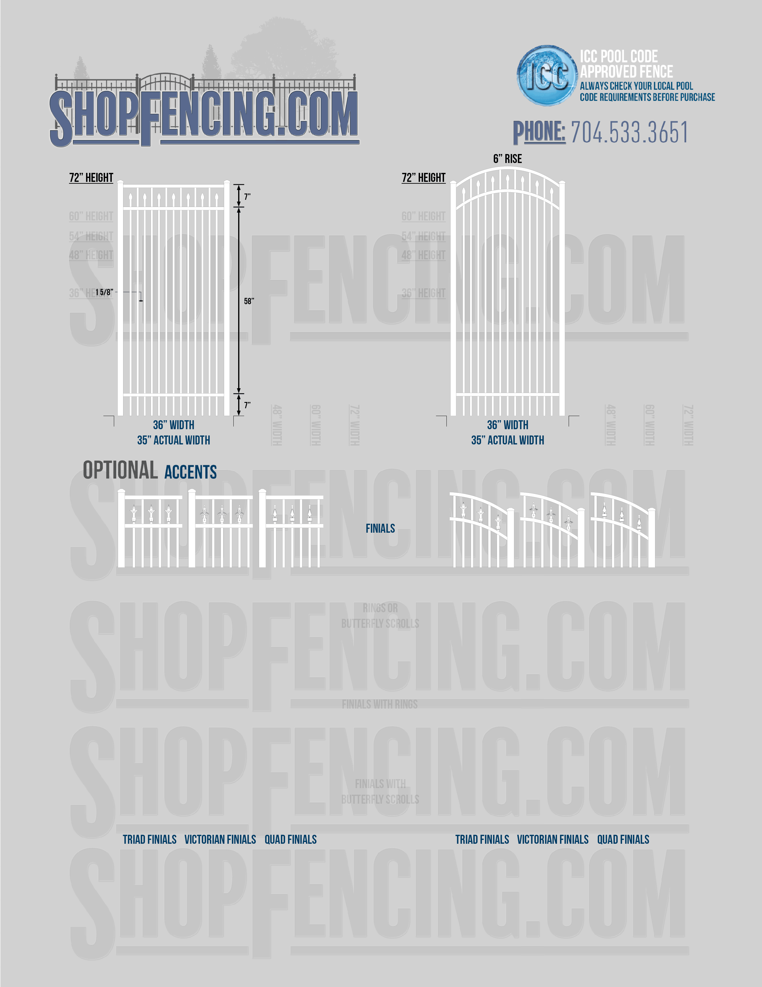 Accent Upgrades: When you add these options, gates will ship with the finials, rings or scrolls installed. PLEASE NOTE: Triad and Victorian finials cannot be installed on double picket fence sections and gates. Rings and scrolls cannot be installed on double picket fence sections and gates.
