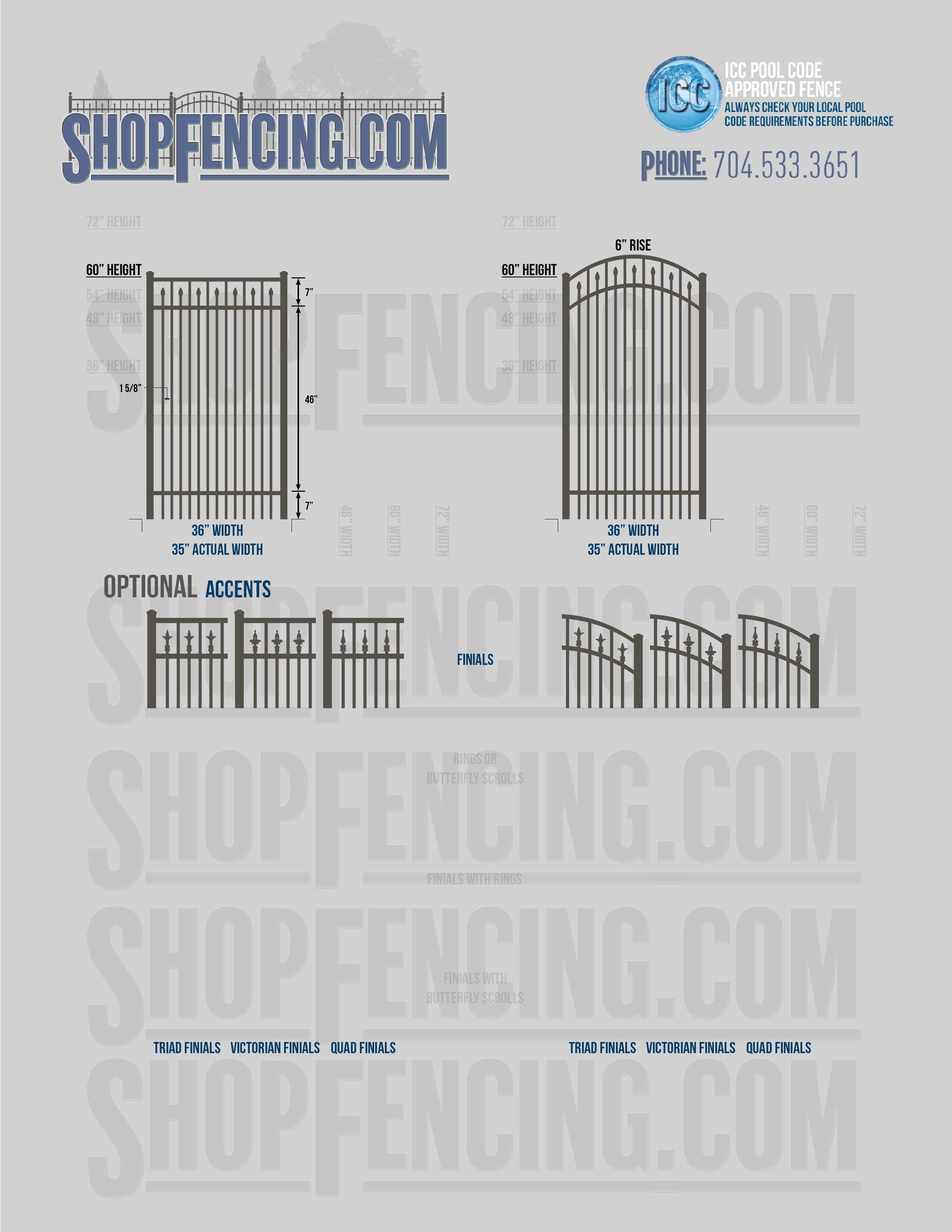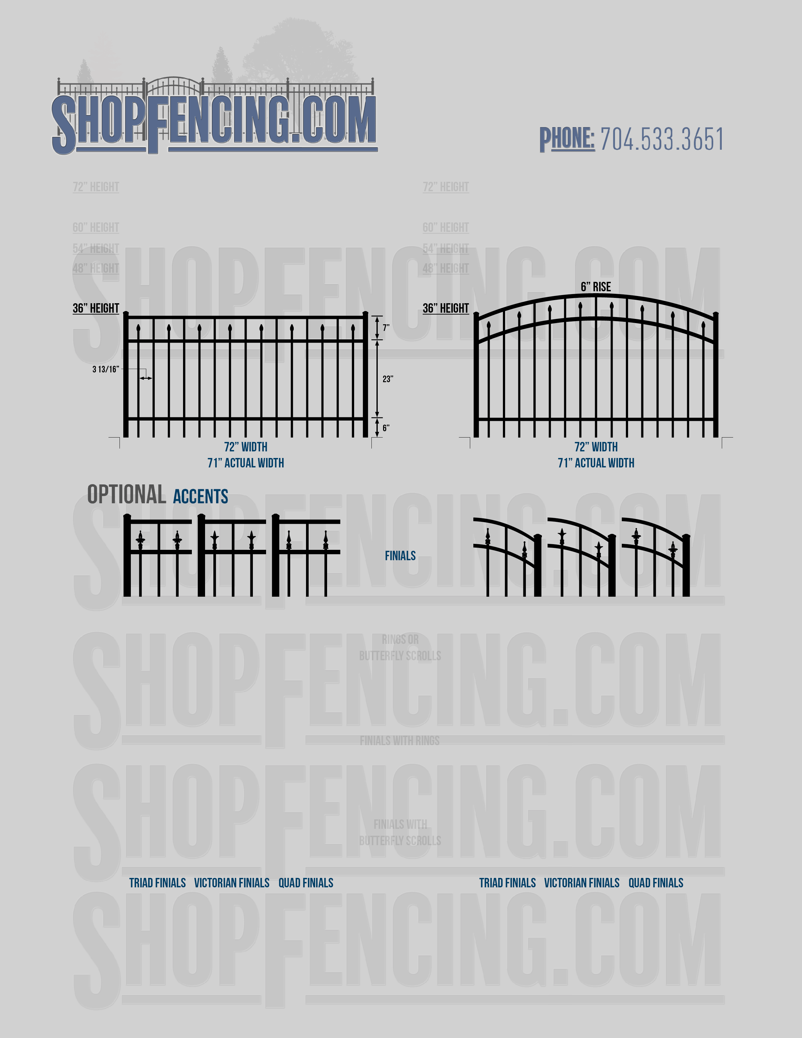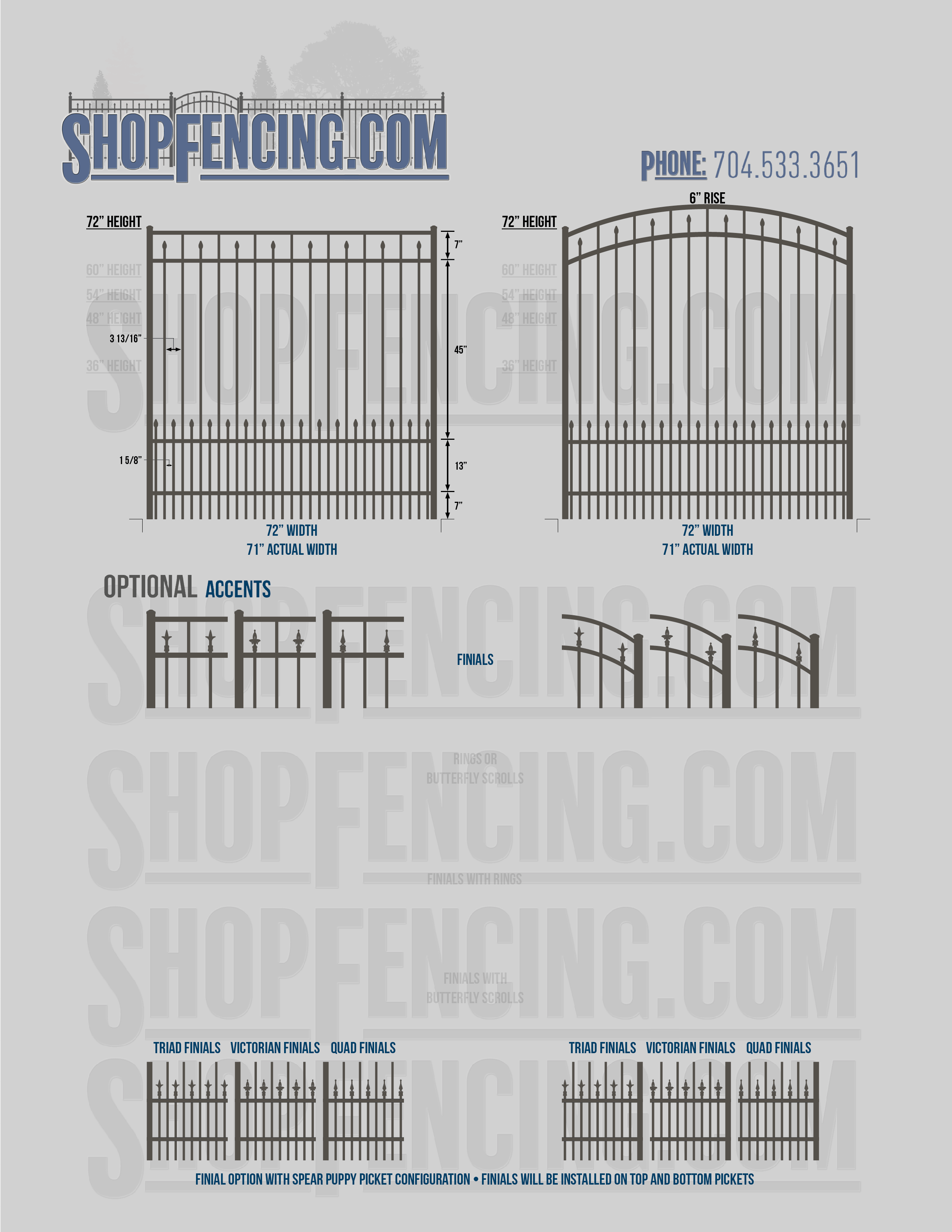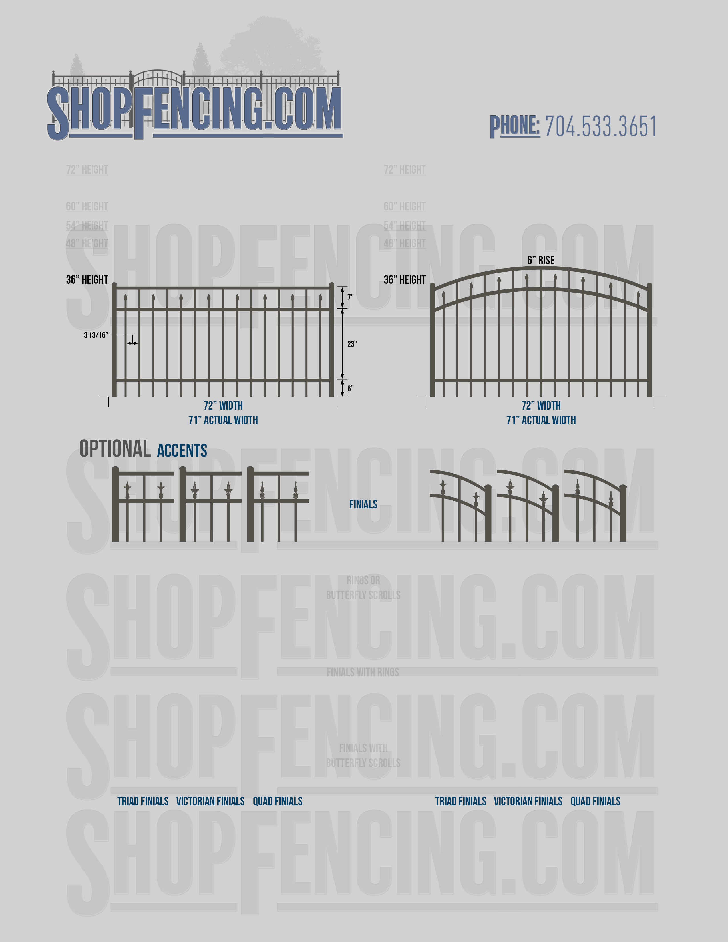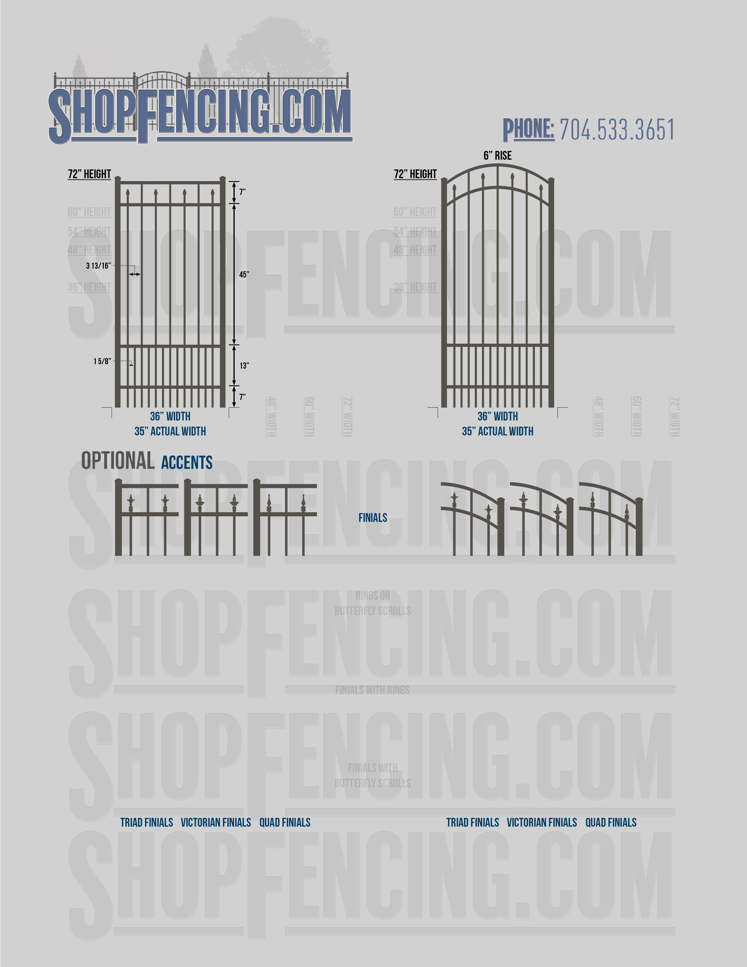Accent Upgrades: When you add these options, gates will ship with the finials, rings or scrolls installed. PLEASE NOTE: Triad and Victorian finials cannot be installed on double picket fence sections and gates. Rings and scrolls cannot be installed on double picket fence sections and gates.