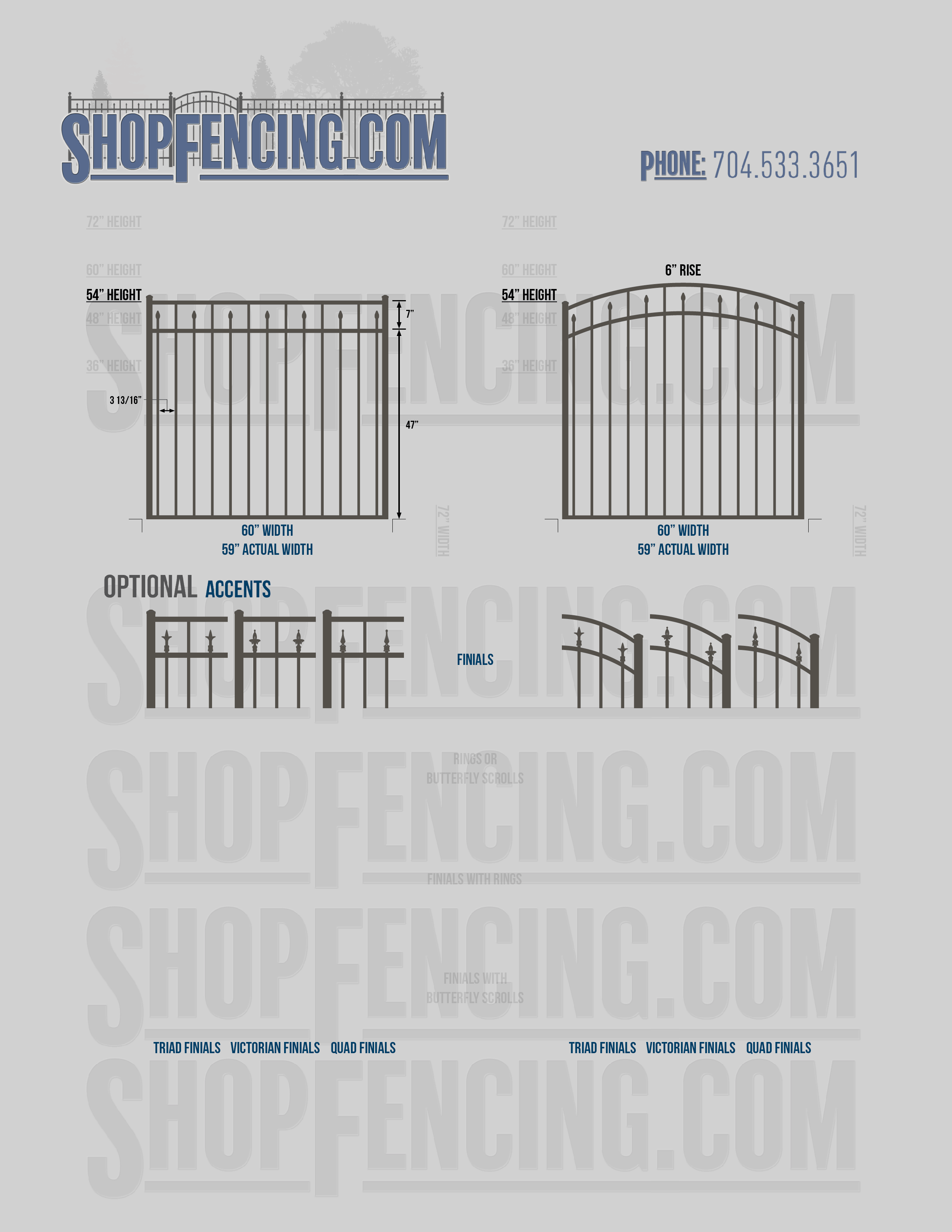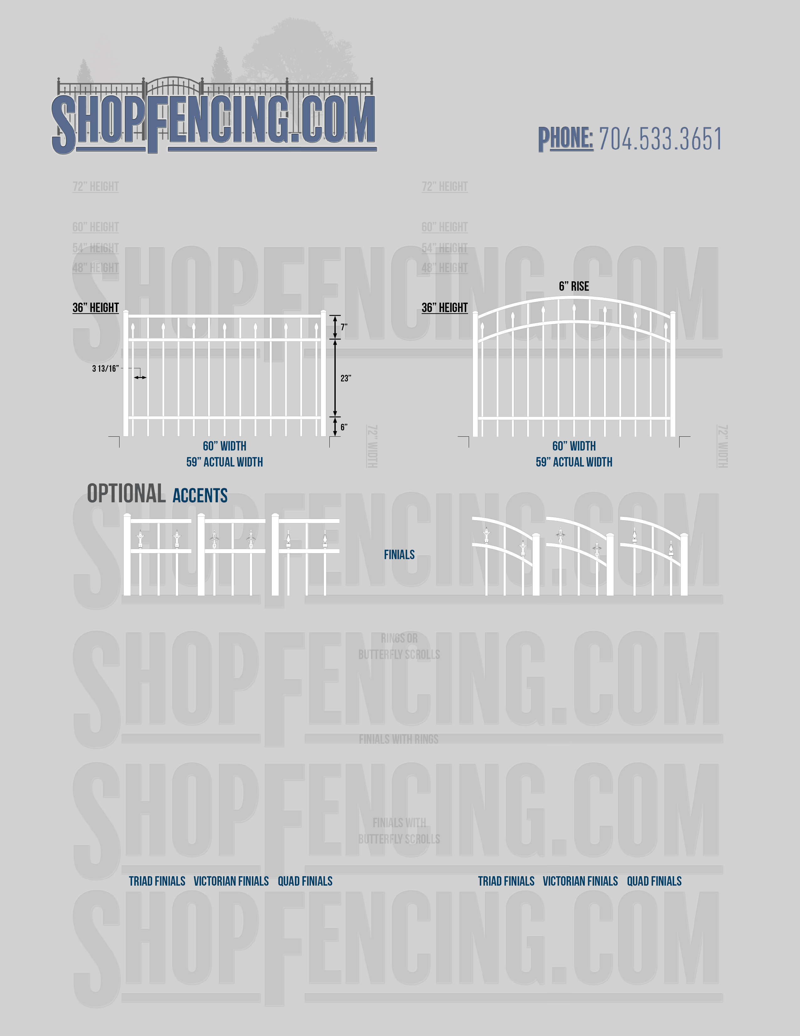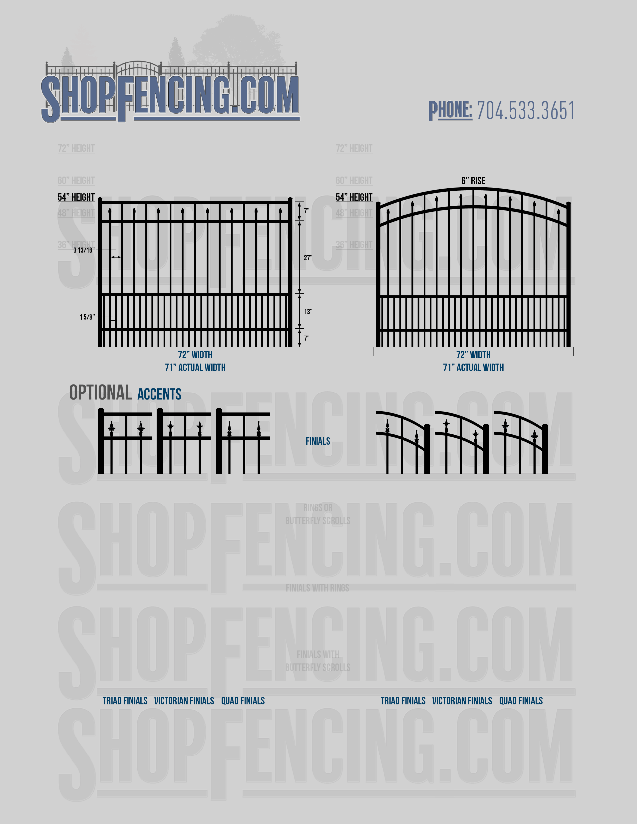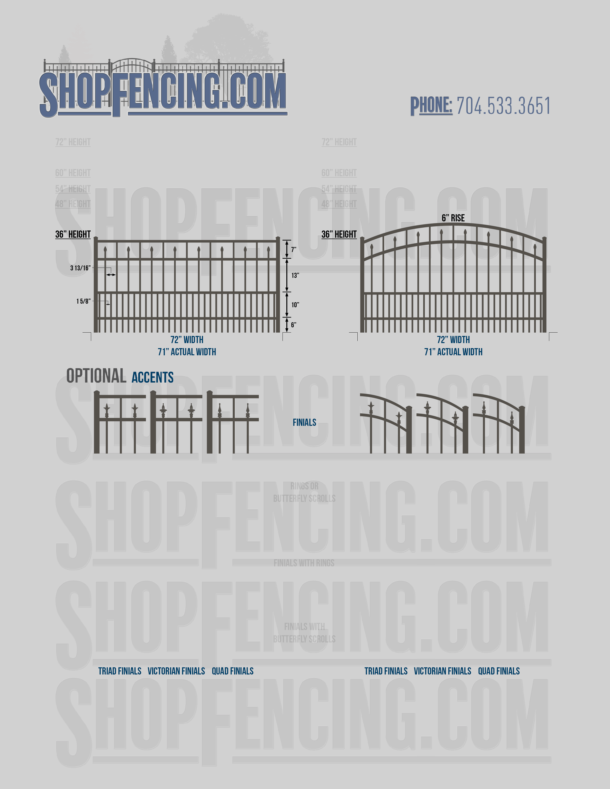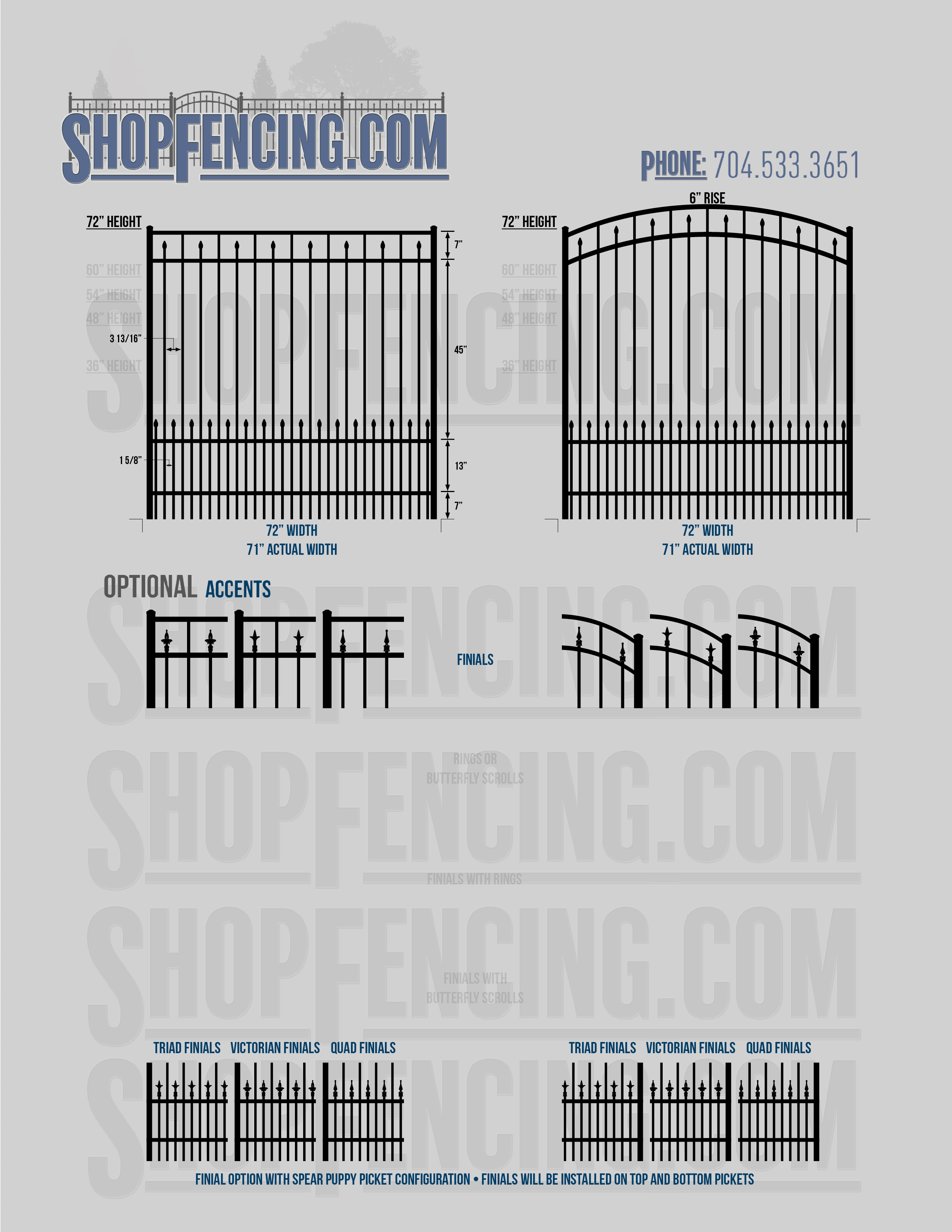 Accent Upgrades: When you add these options, gates will ship with the finials, rings or scrolls installed. PLEASE NOTE: Triad and Victorian finials cannot be installed on double picket fence sections and gates. Rings and scrolls cannot be installed on double picket fence sections and gates.