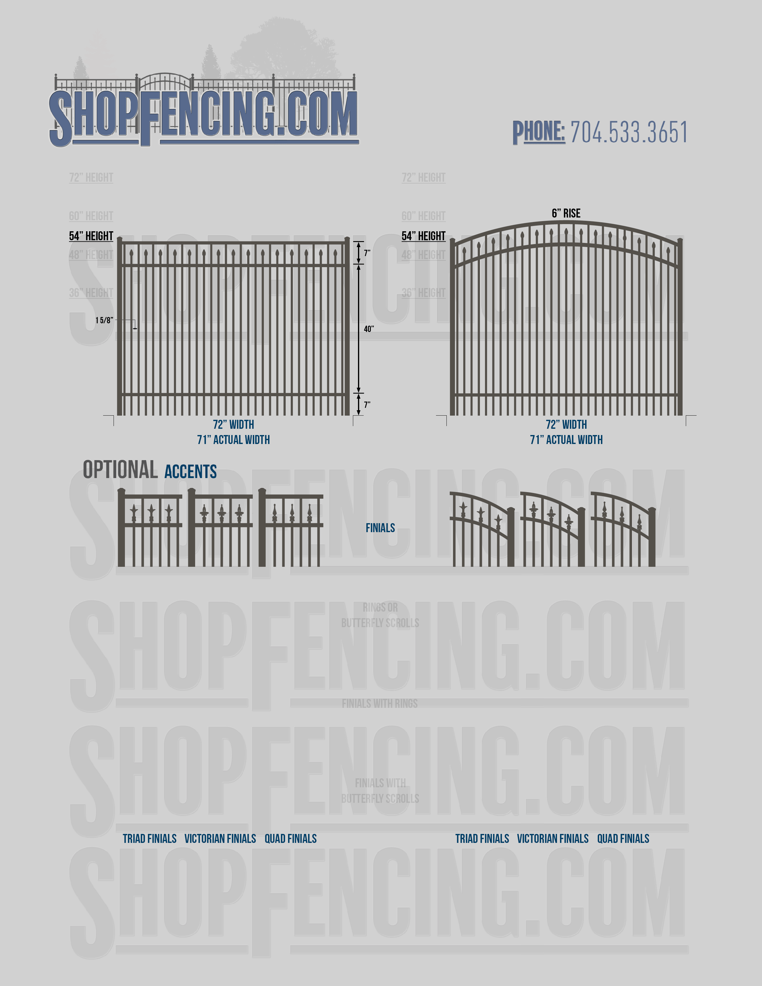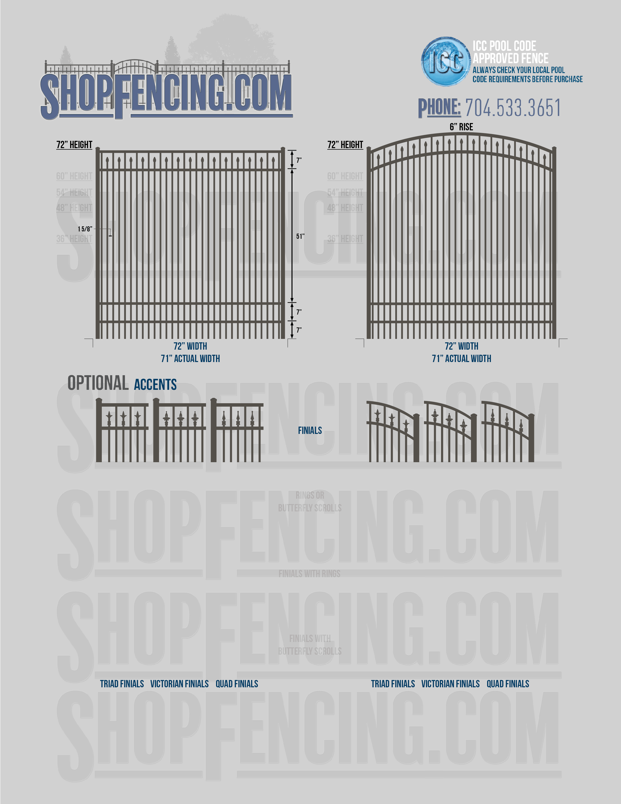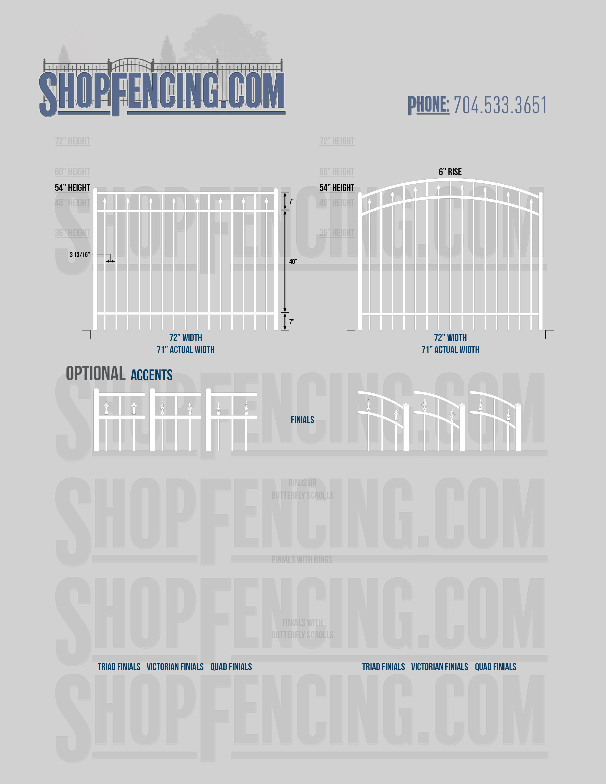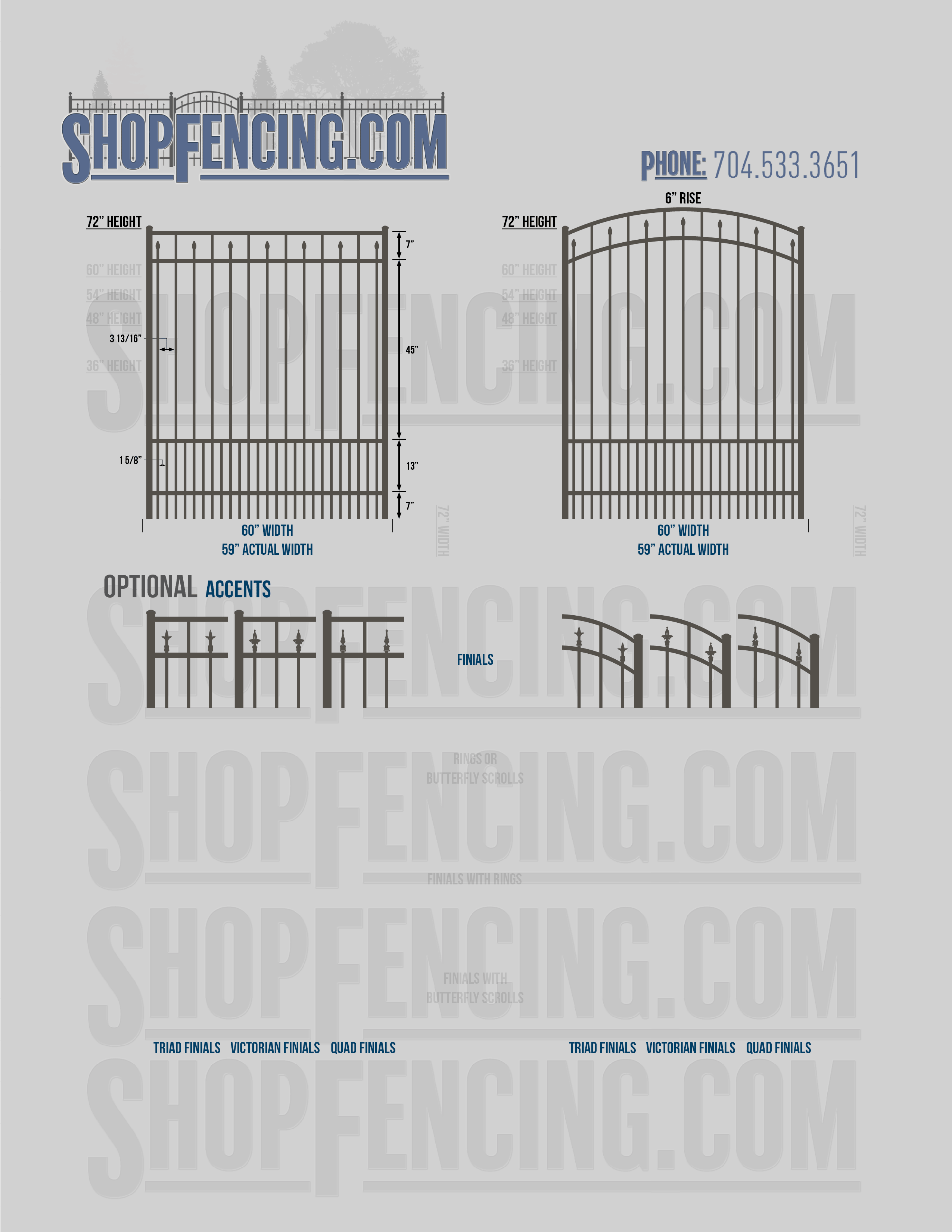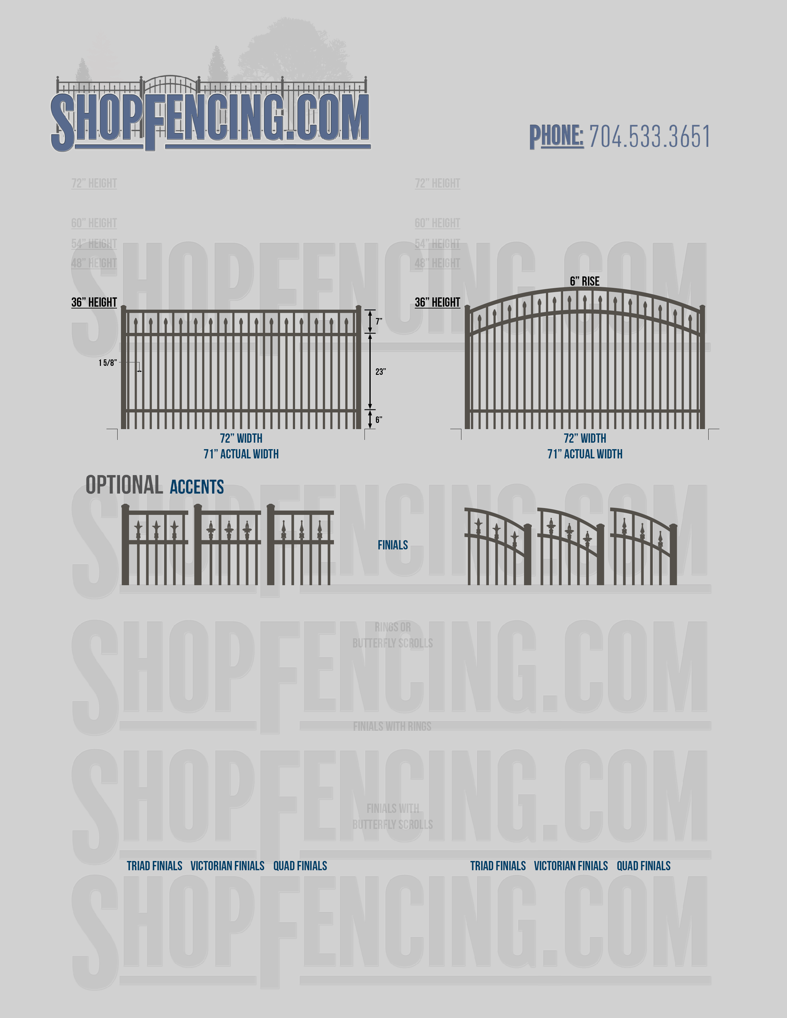 Accent Upgrades: When you add these options, gates will ship with the finials, rings or scrolls installed. PLEASE NOTE: Triad and Victorian finials cannot be installed on double picket fence sections and gates. Rings and scrolls cannot be installed on double picket fence sections and gates.