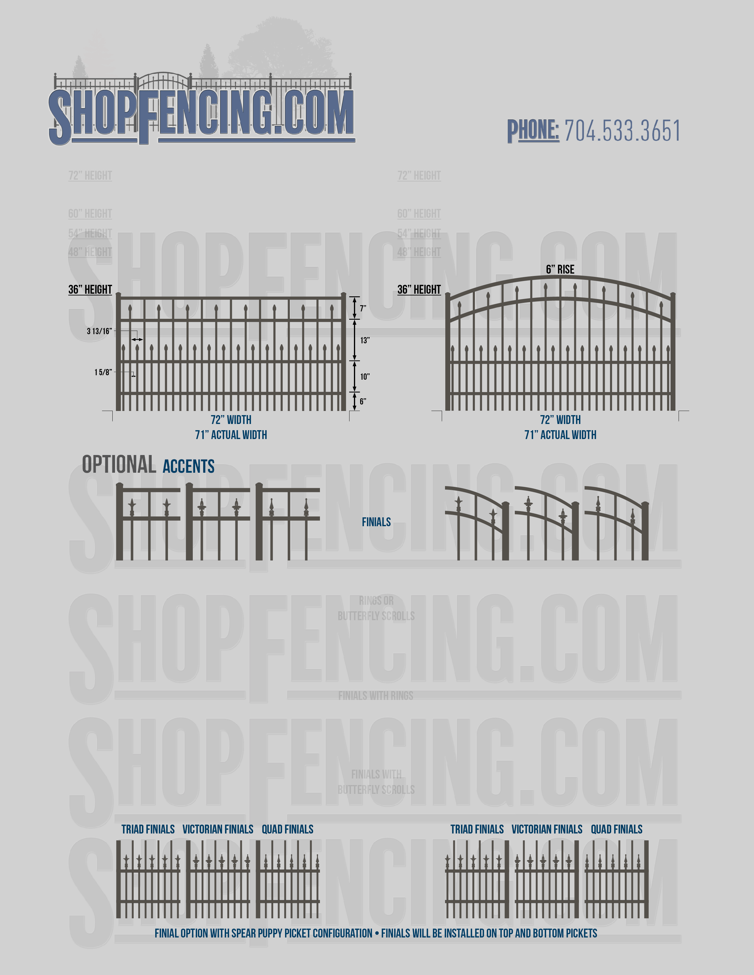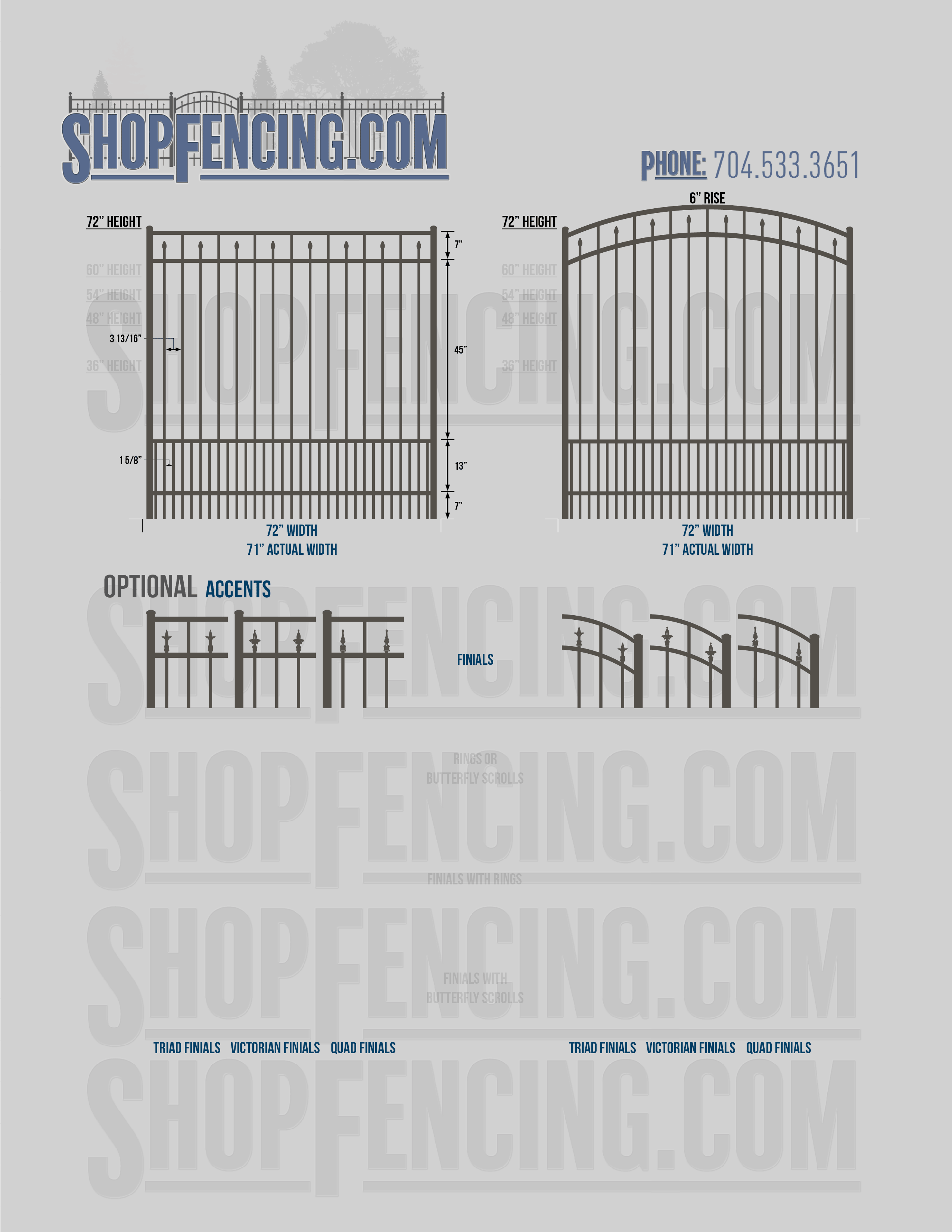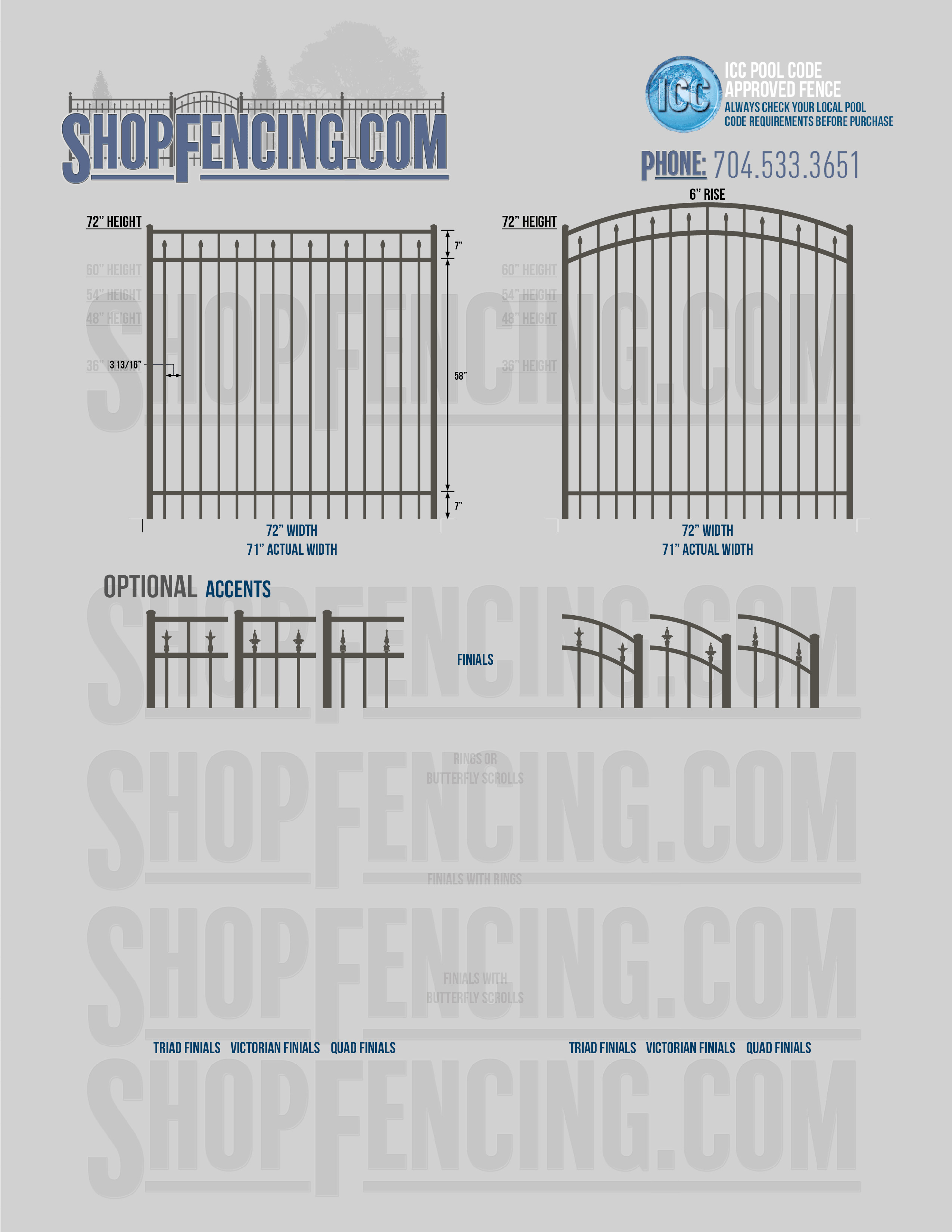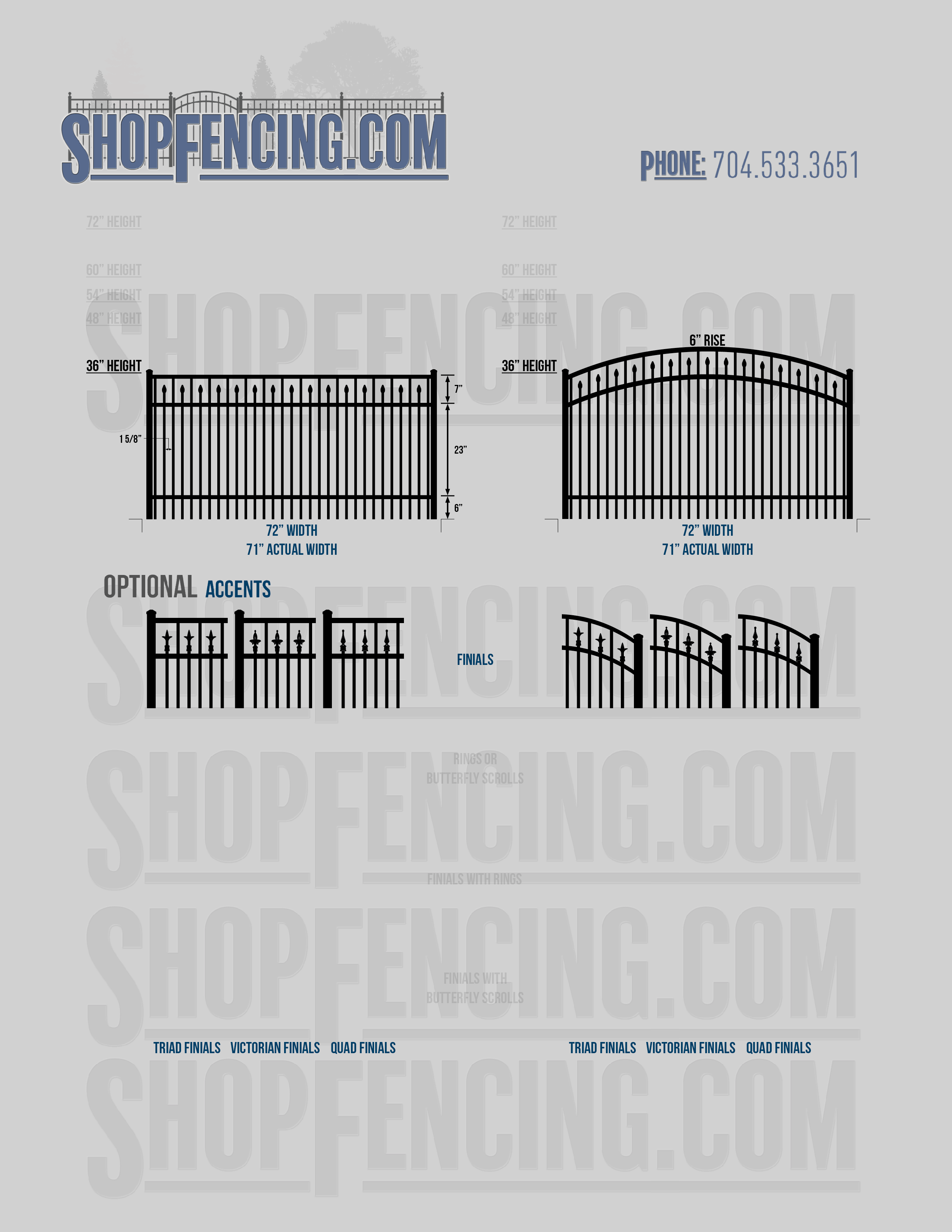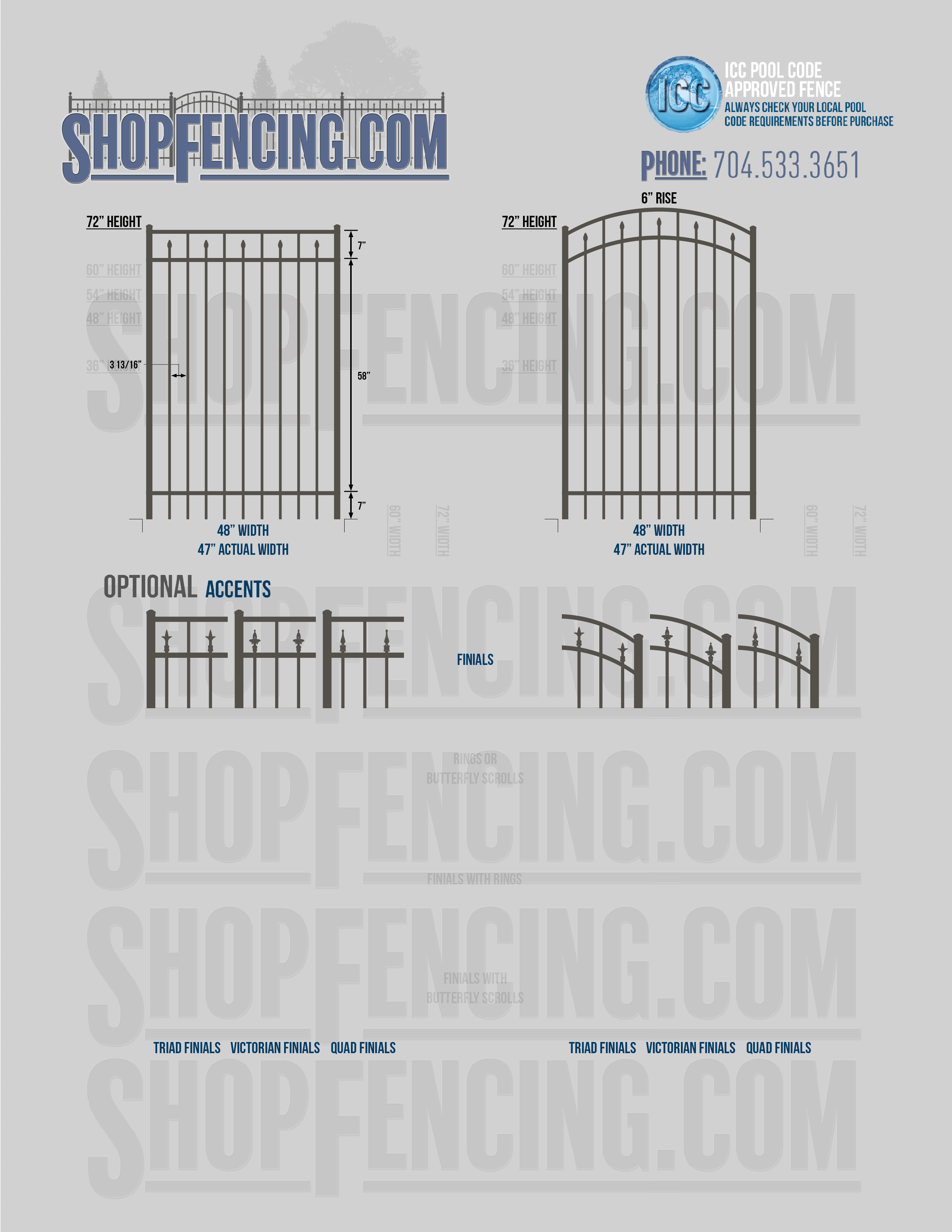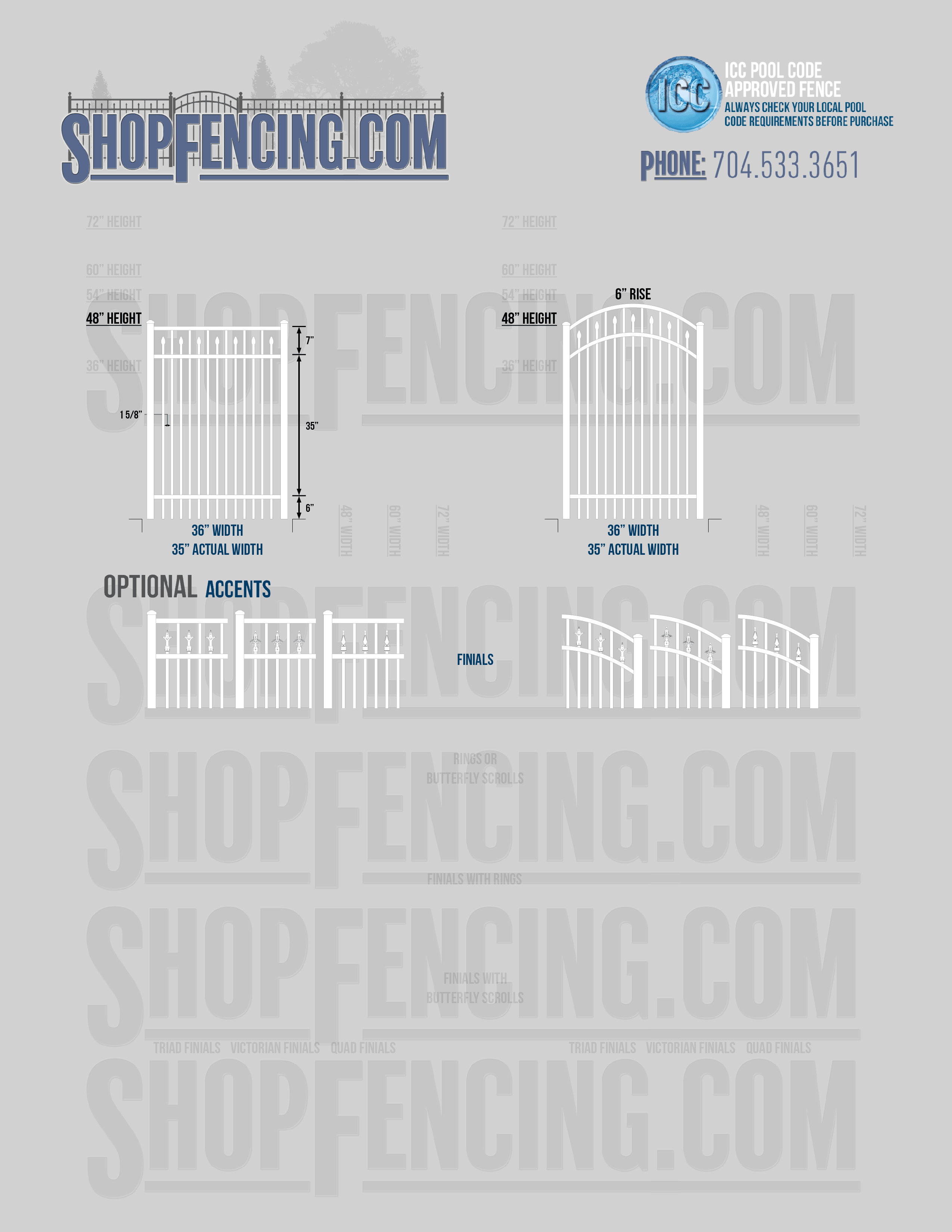 Accent Upgrades: When you add these options, gates will ship with the finials, rings or scrolls installed. PLEASE NOTE: Triad and Victorian finials cannot be installed on double picket fence sections and gates. Rings and scrolls cannot be installed on double picket fence sections and gates.