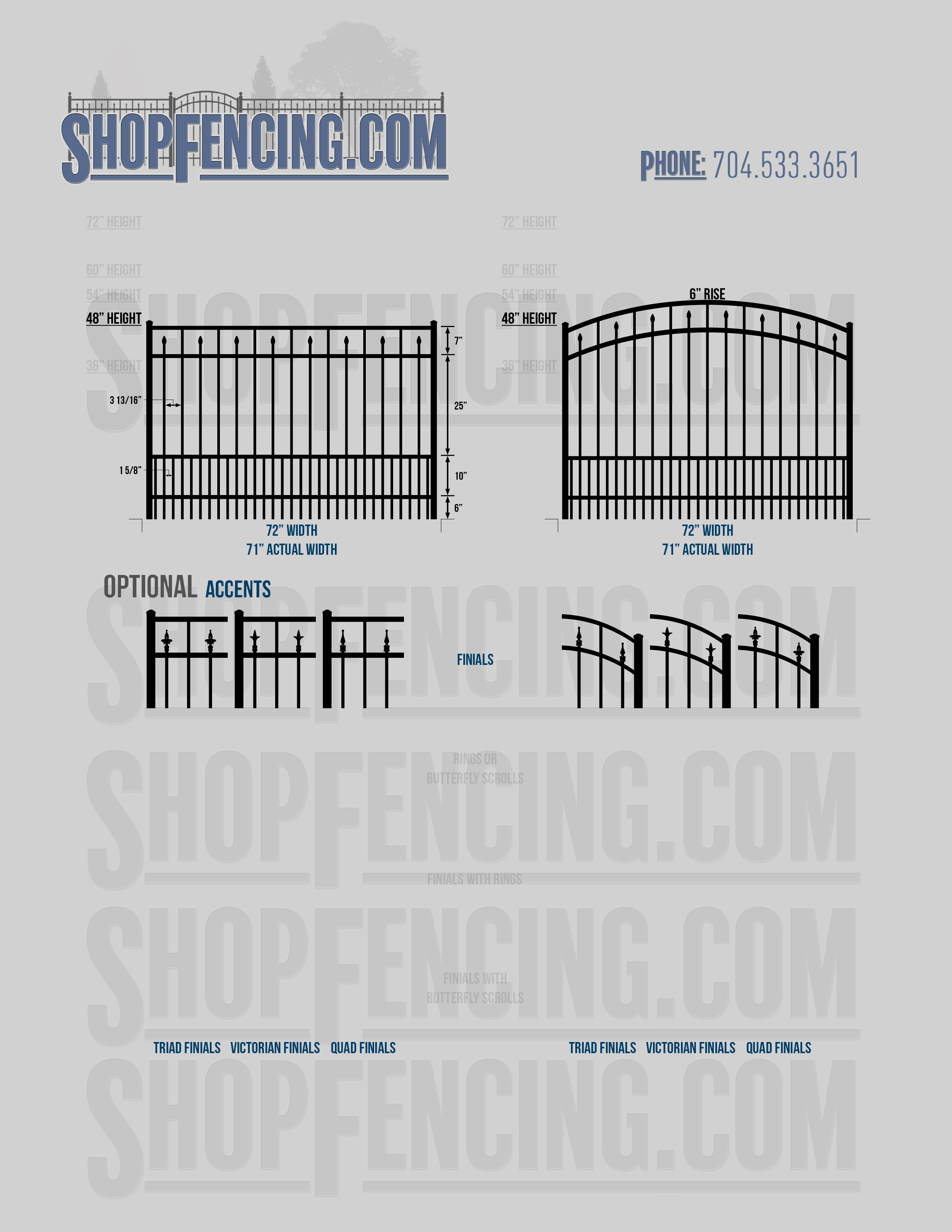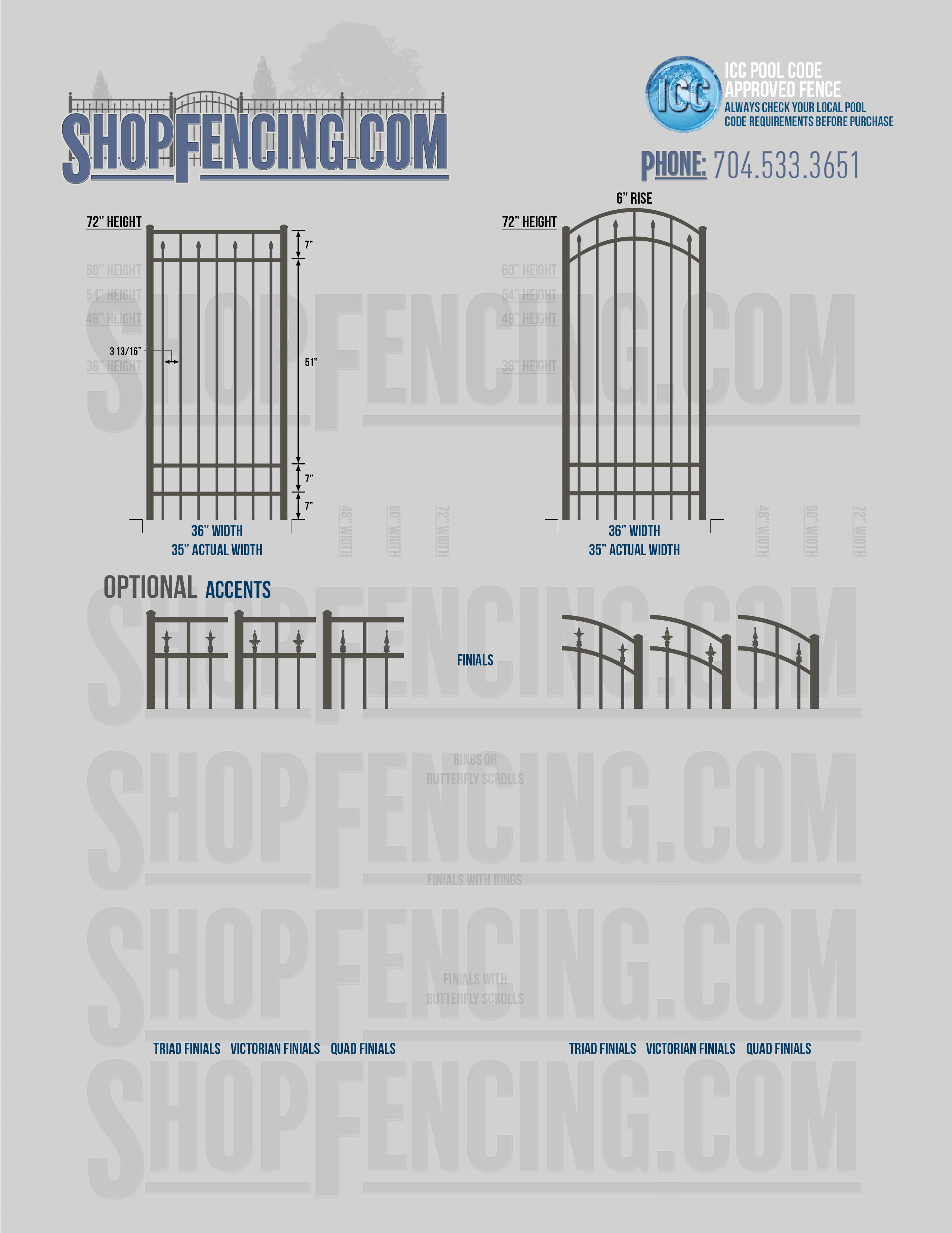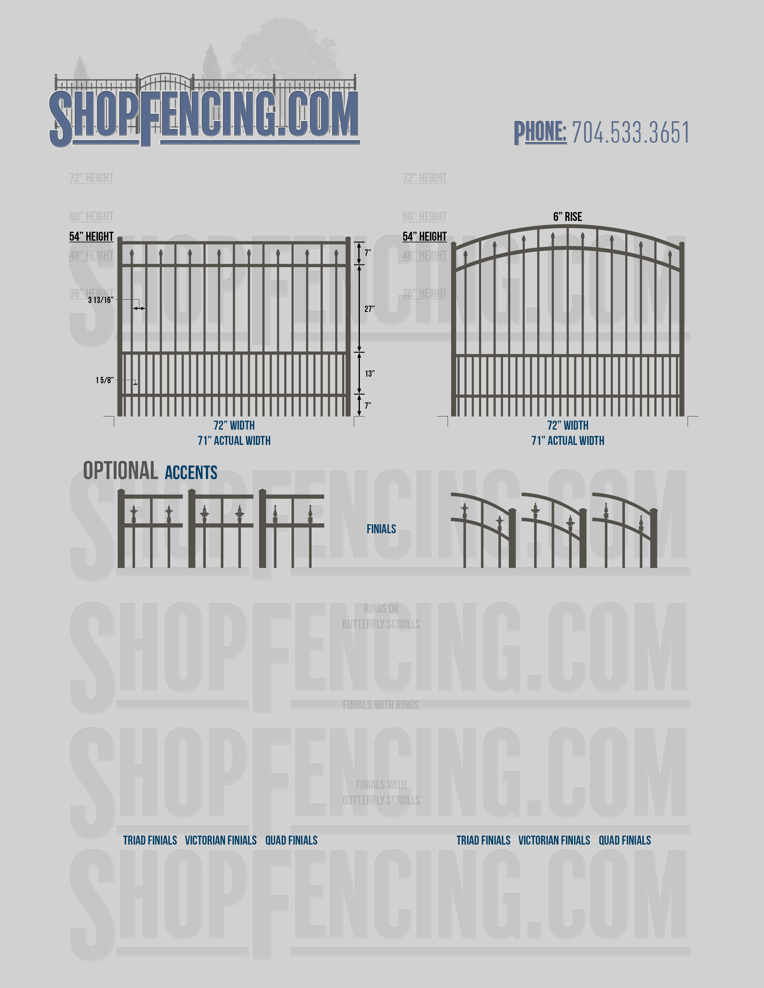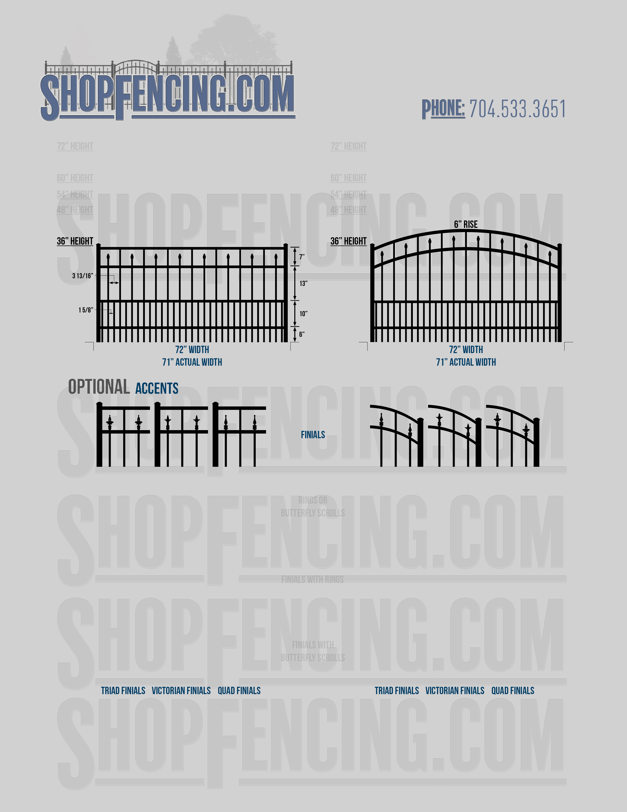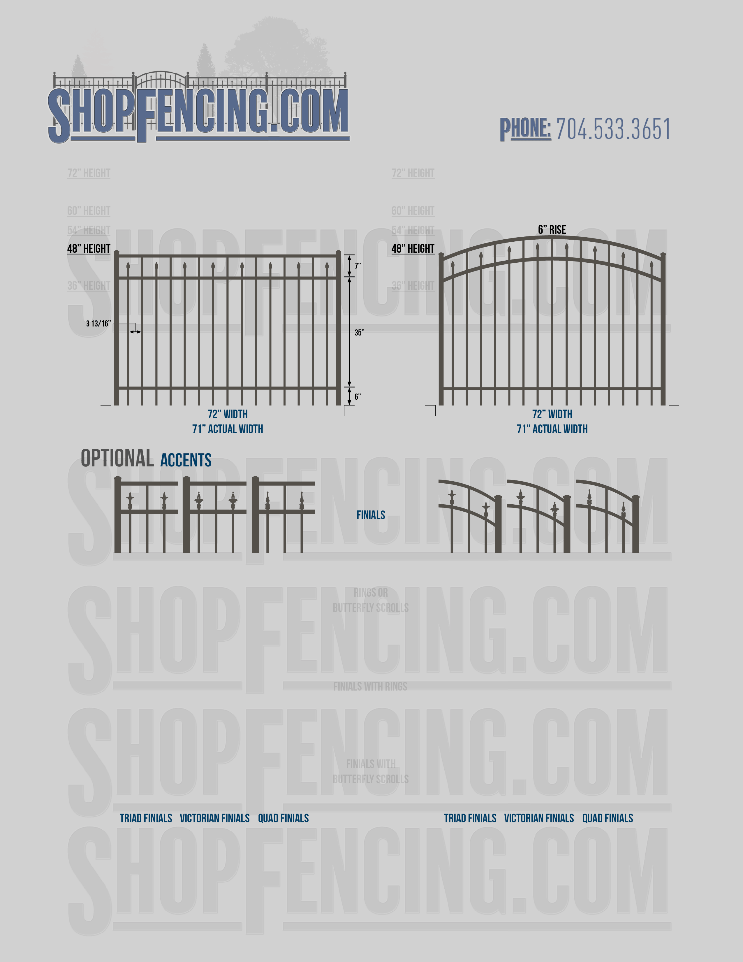 Accent Upgrades: When you add these options, gates will ship with the finials, rings or scrolls installed. PLEASE NOTE: Triad and Victorian finials cannot be installed on double picket fence sections and gates. Rings and scrolls cannot be installed on double picket fence sections and gates.