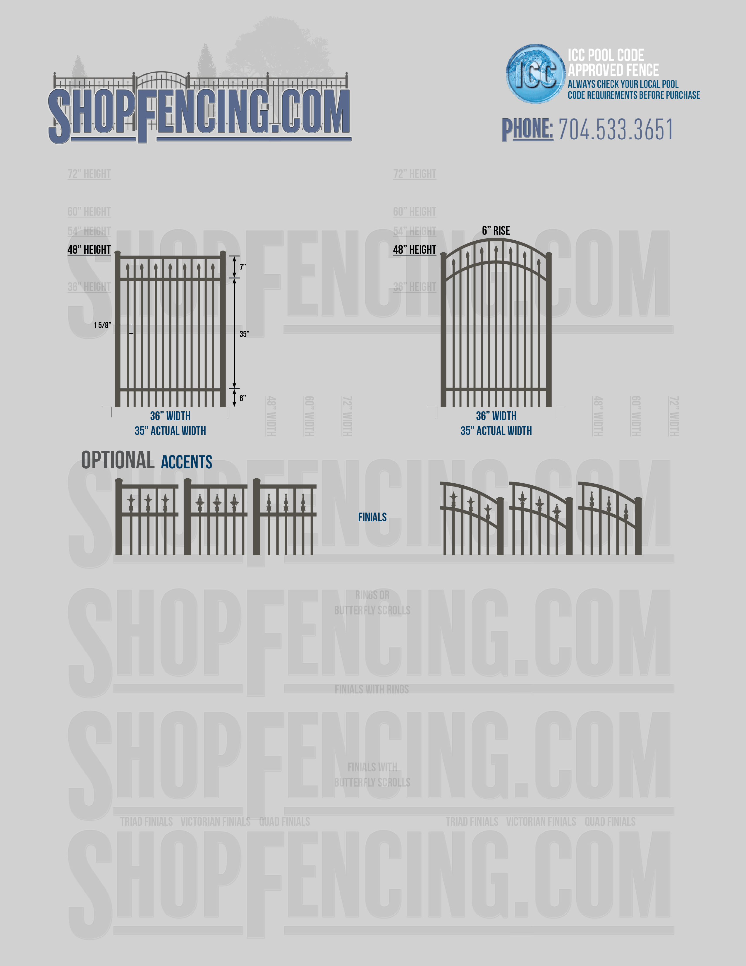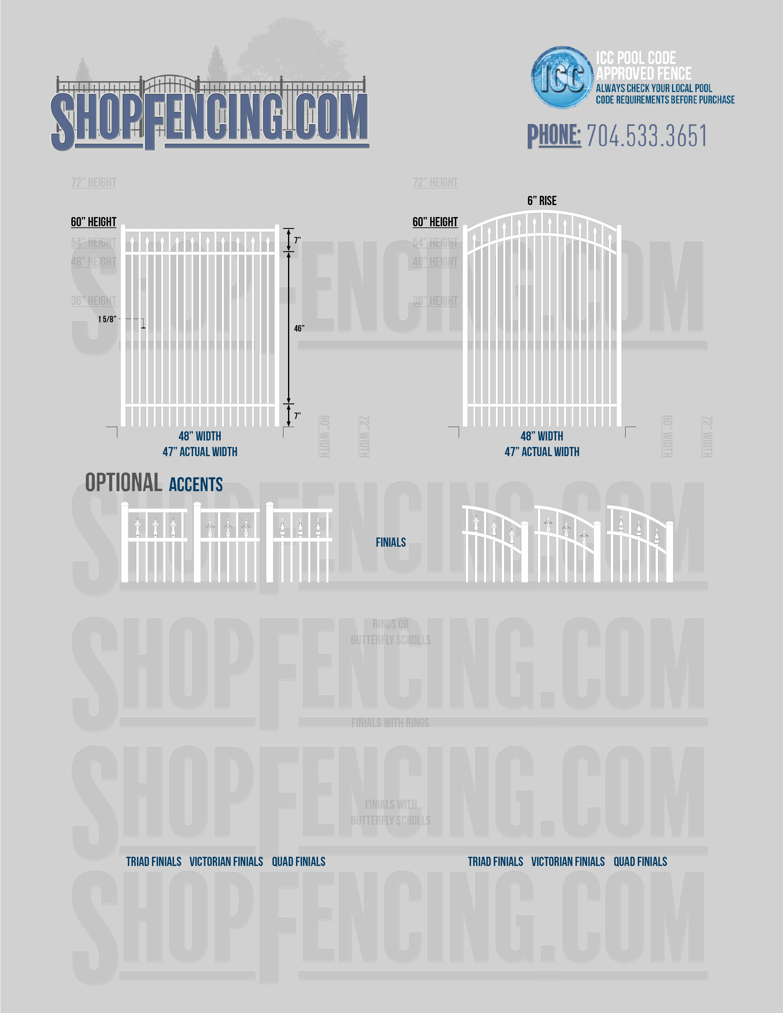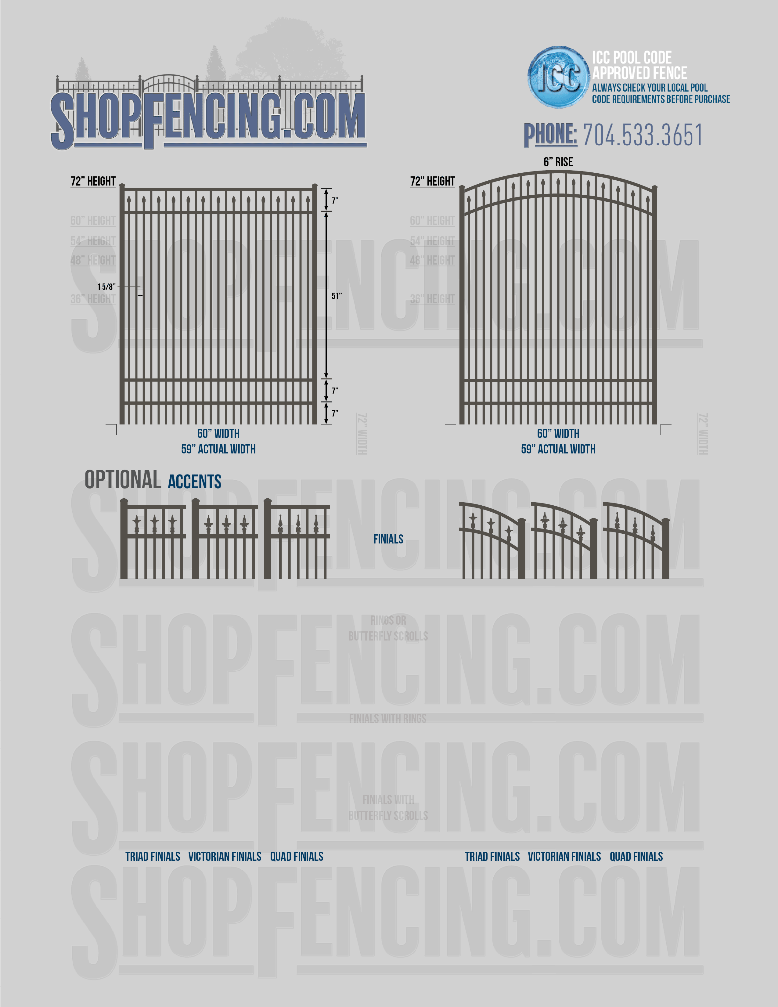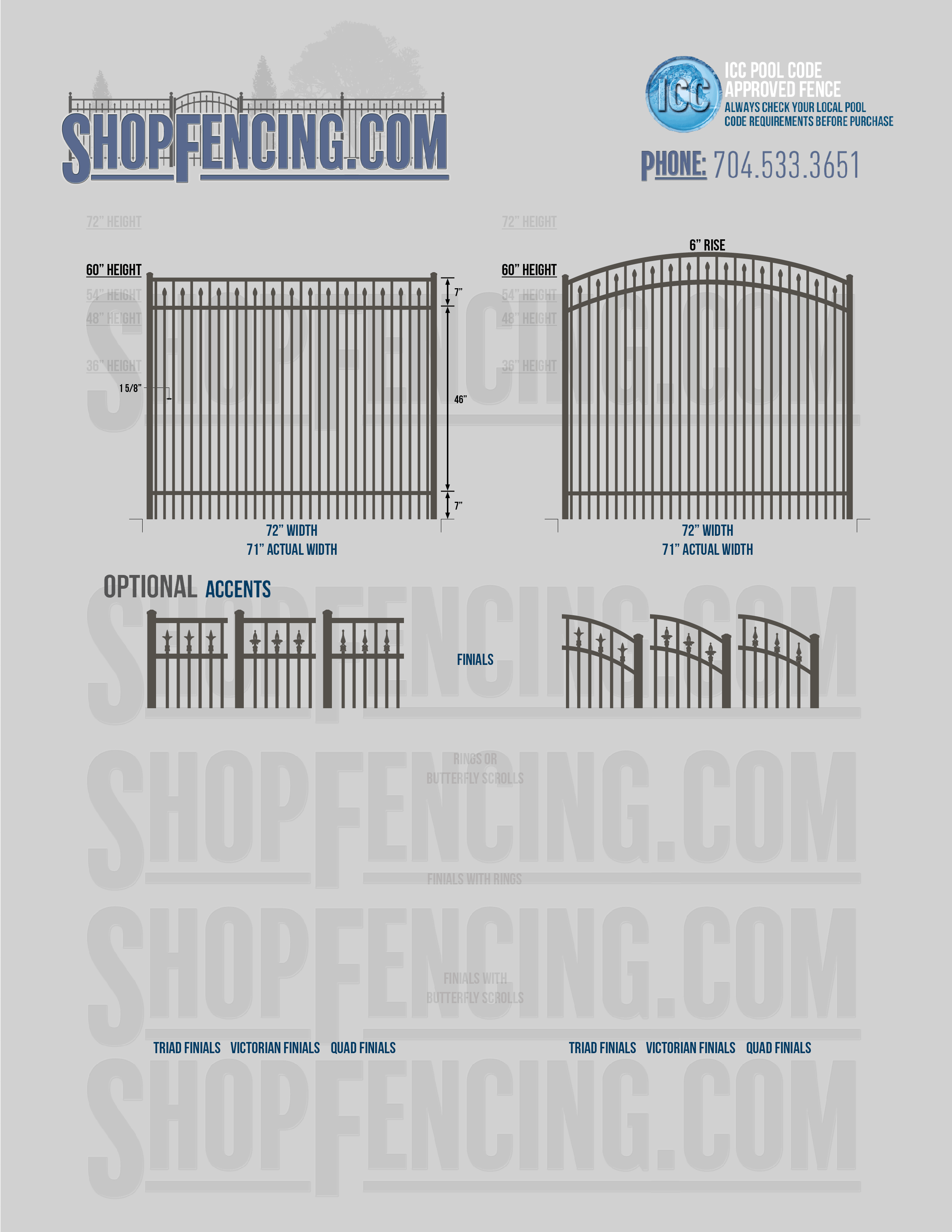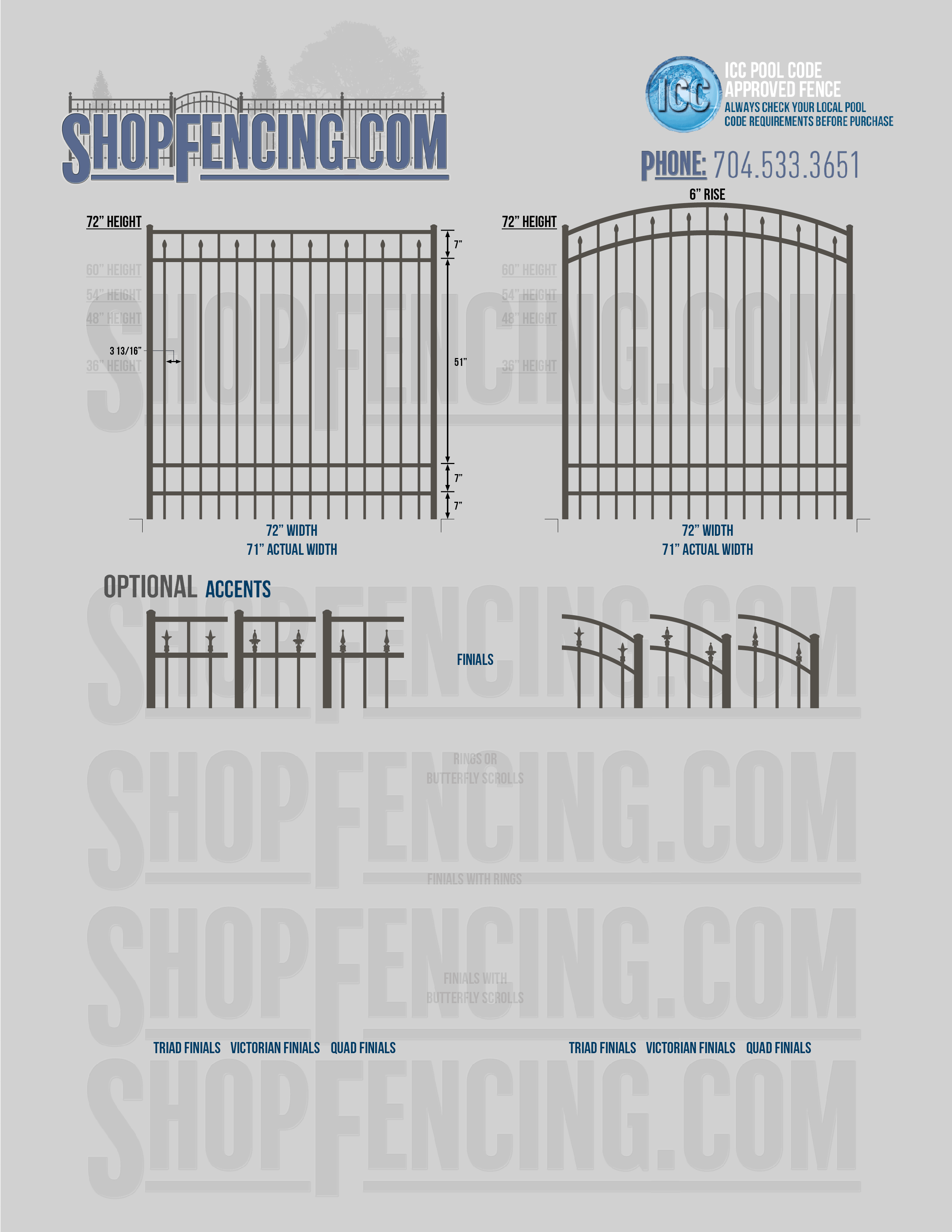 Accent Upgrades: When you add these options, gates will ship with the finials, rings or scrolls installed. PLEASE NOTE: Triad and Victorian finials cannot be installed on double picket fence sections and gates. Rings and scrolls cannot be installed on double picket fence sections and gates.