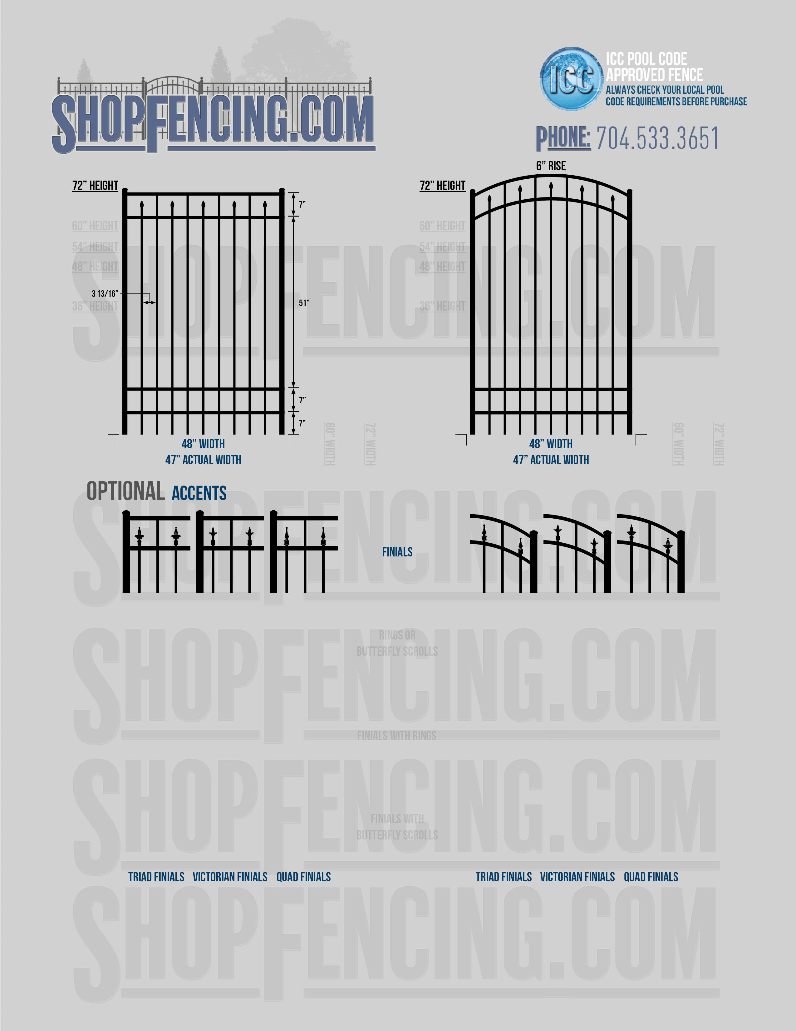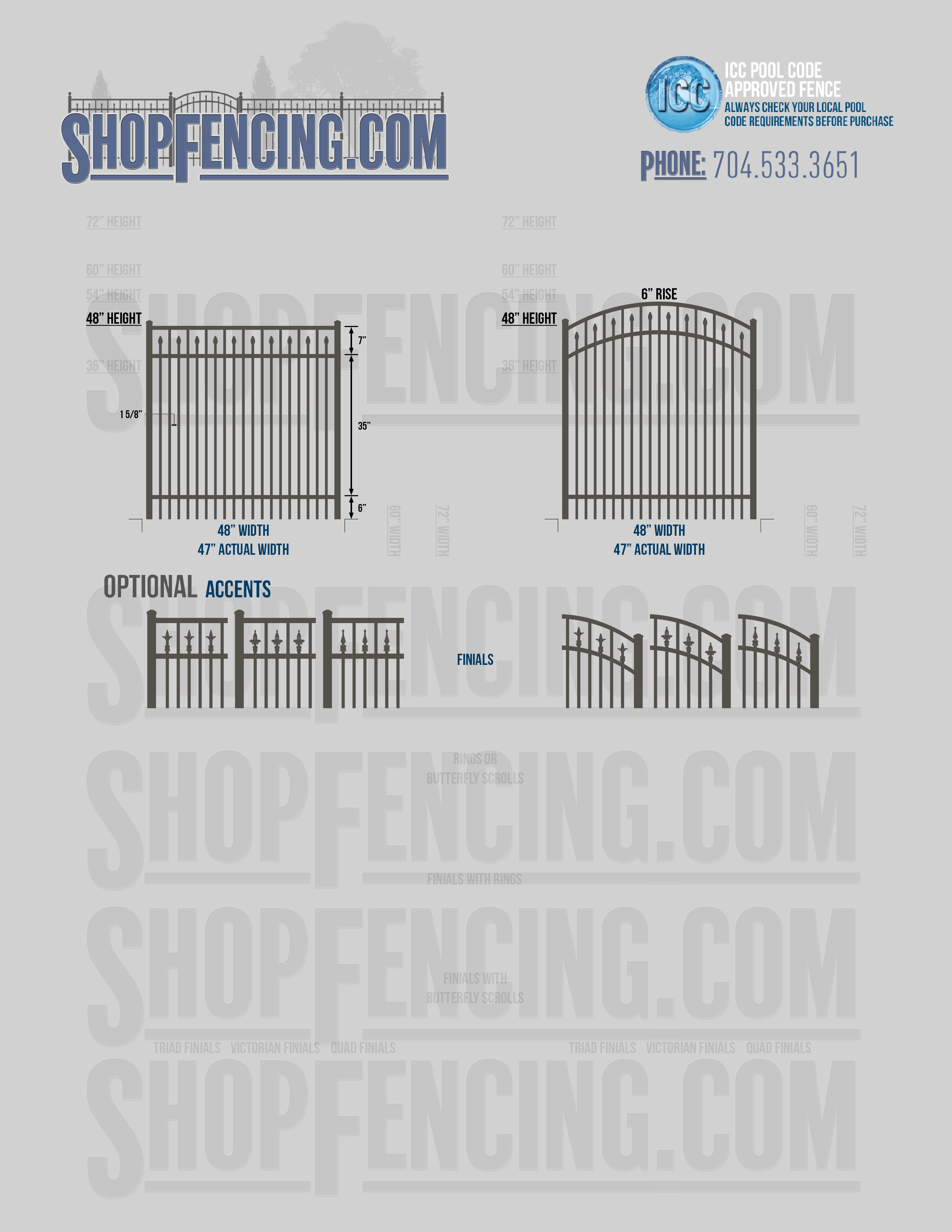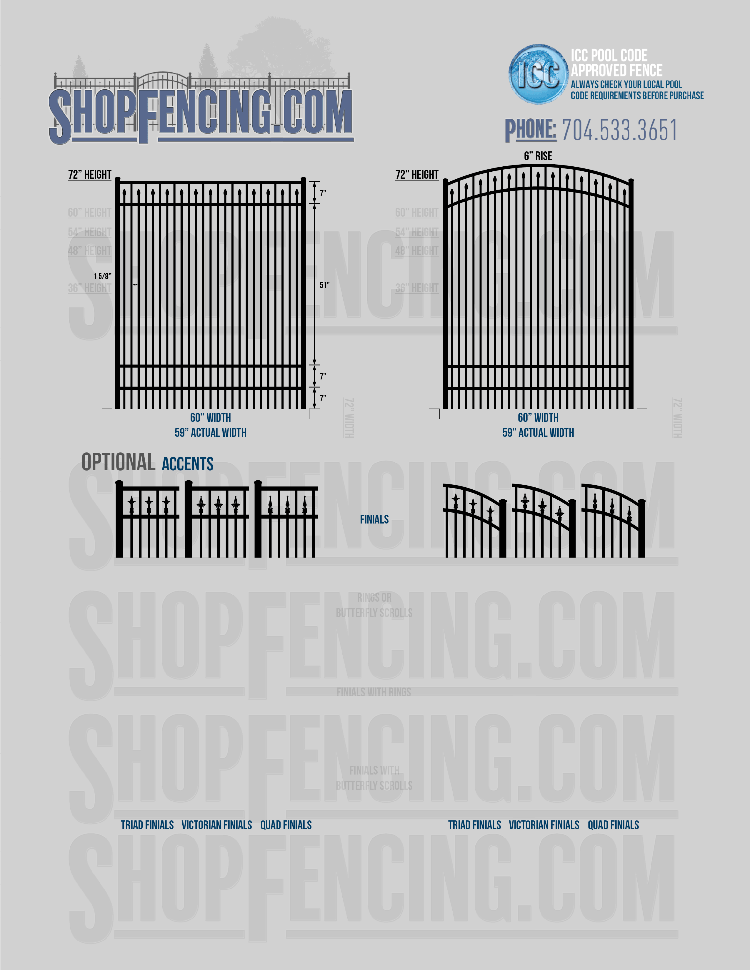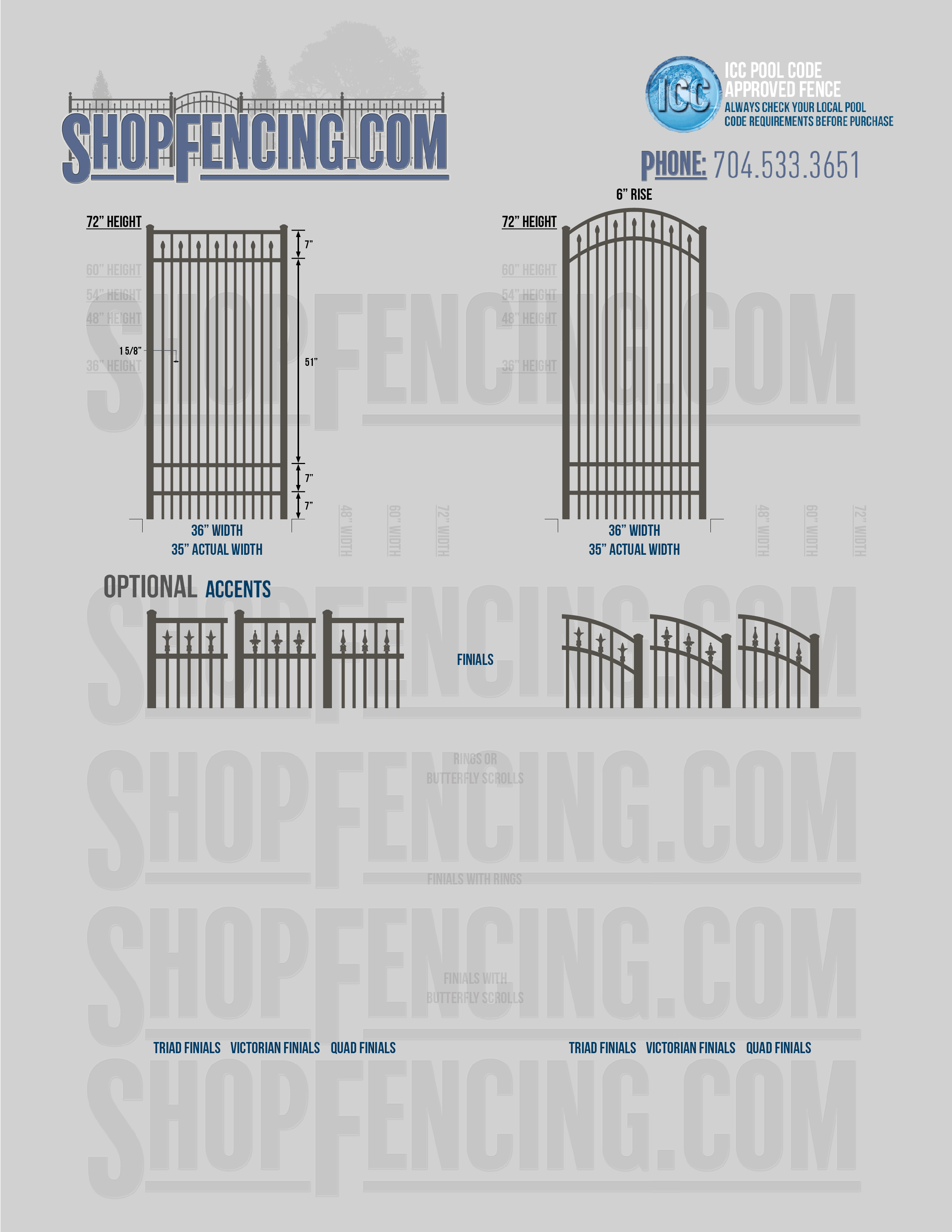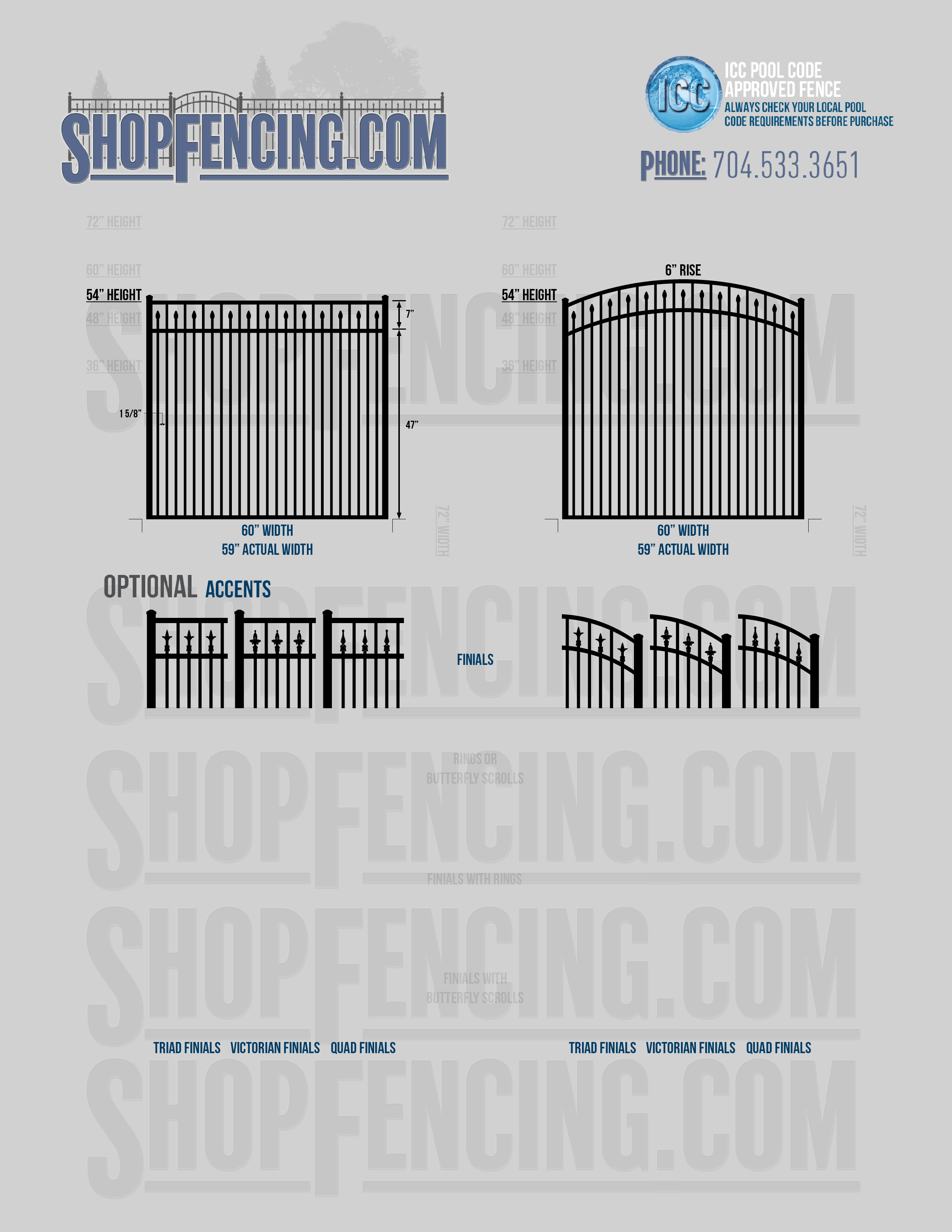 Accent Upgrades: When you add these options, gates will ship with the finials, rings or scrolls installed. PLEASE NOTE: Triad and Victorian finials cannot be installed on double picket fence sections and gates. Rings and scrolls cannot be installed on double picket fence sections and gates.