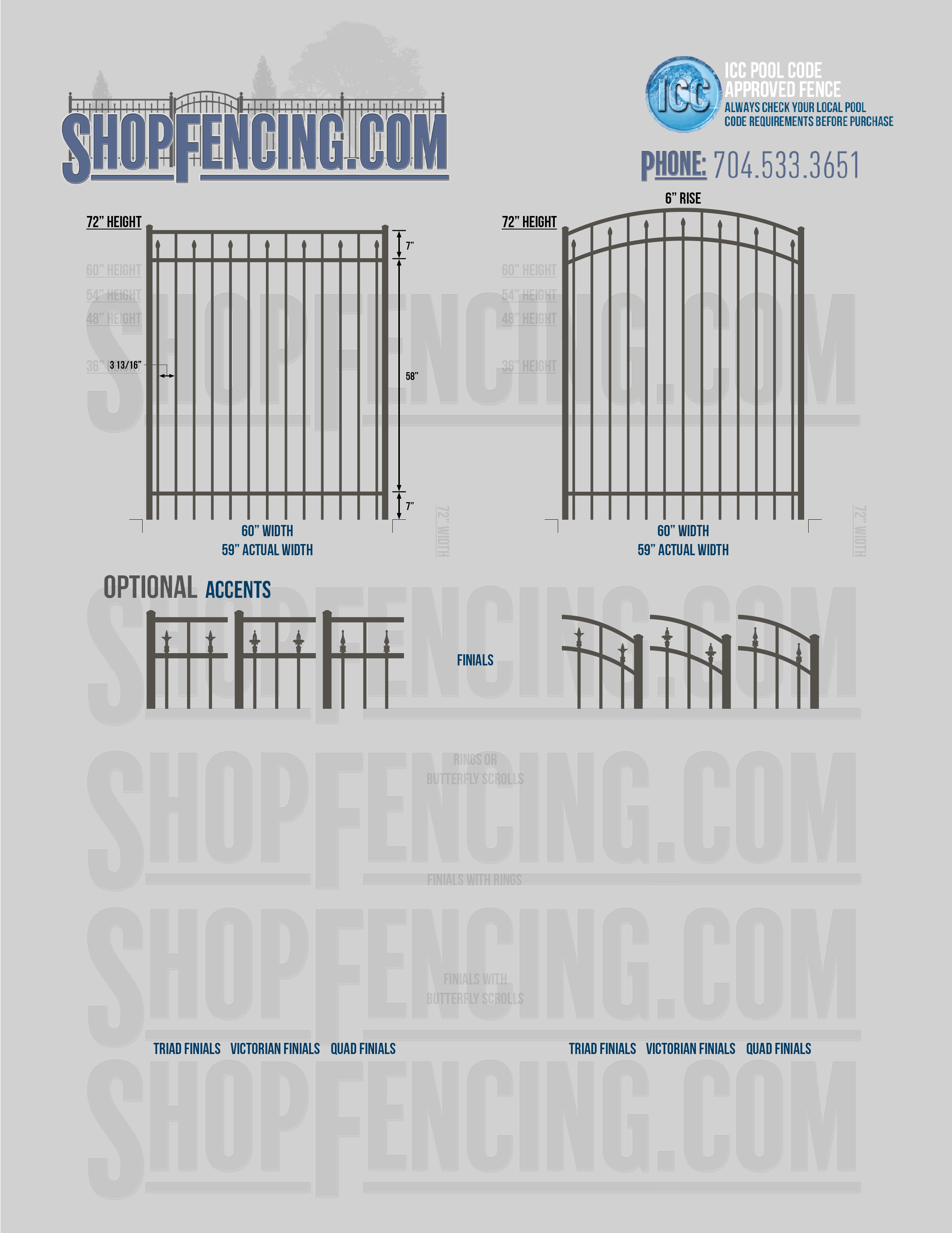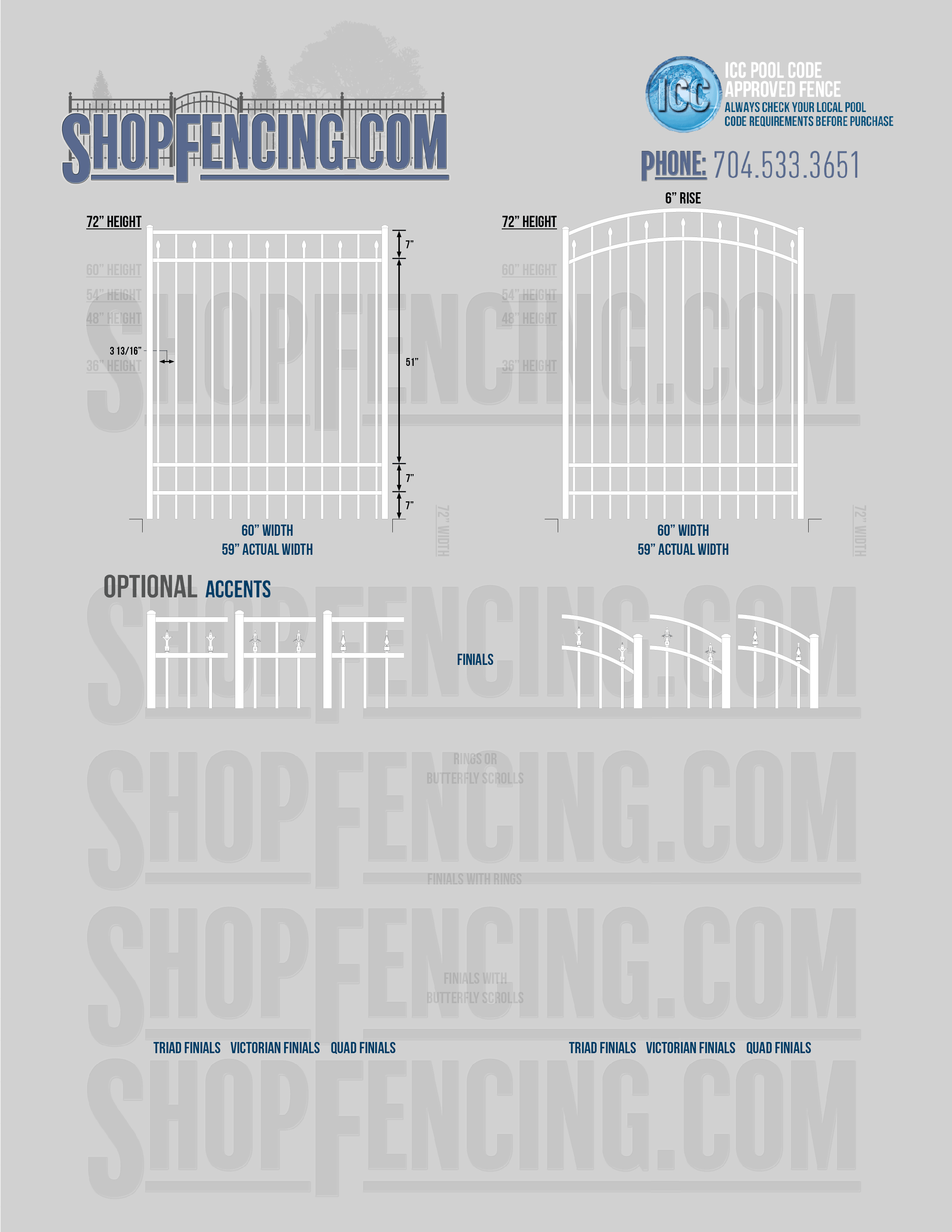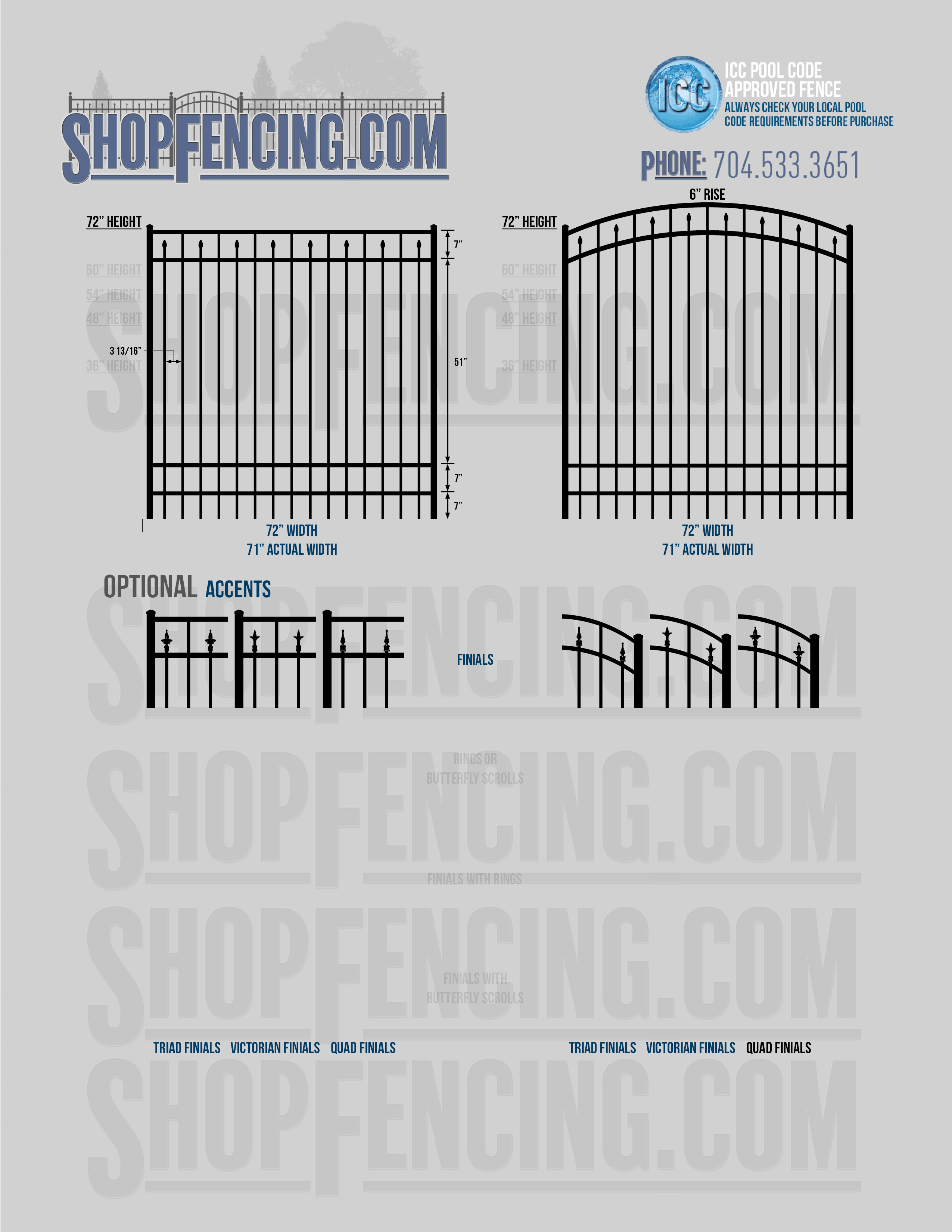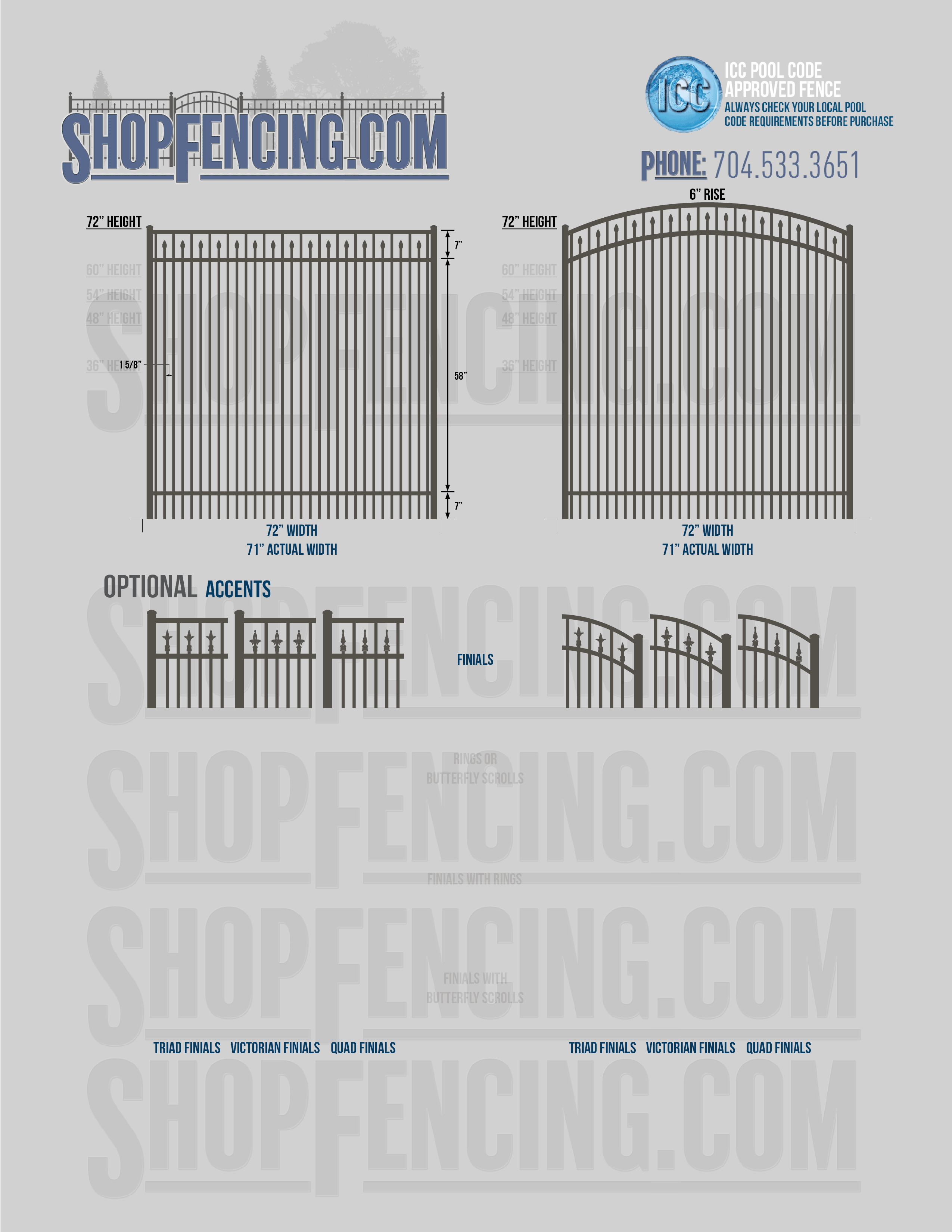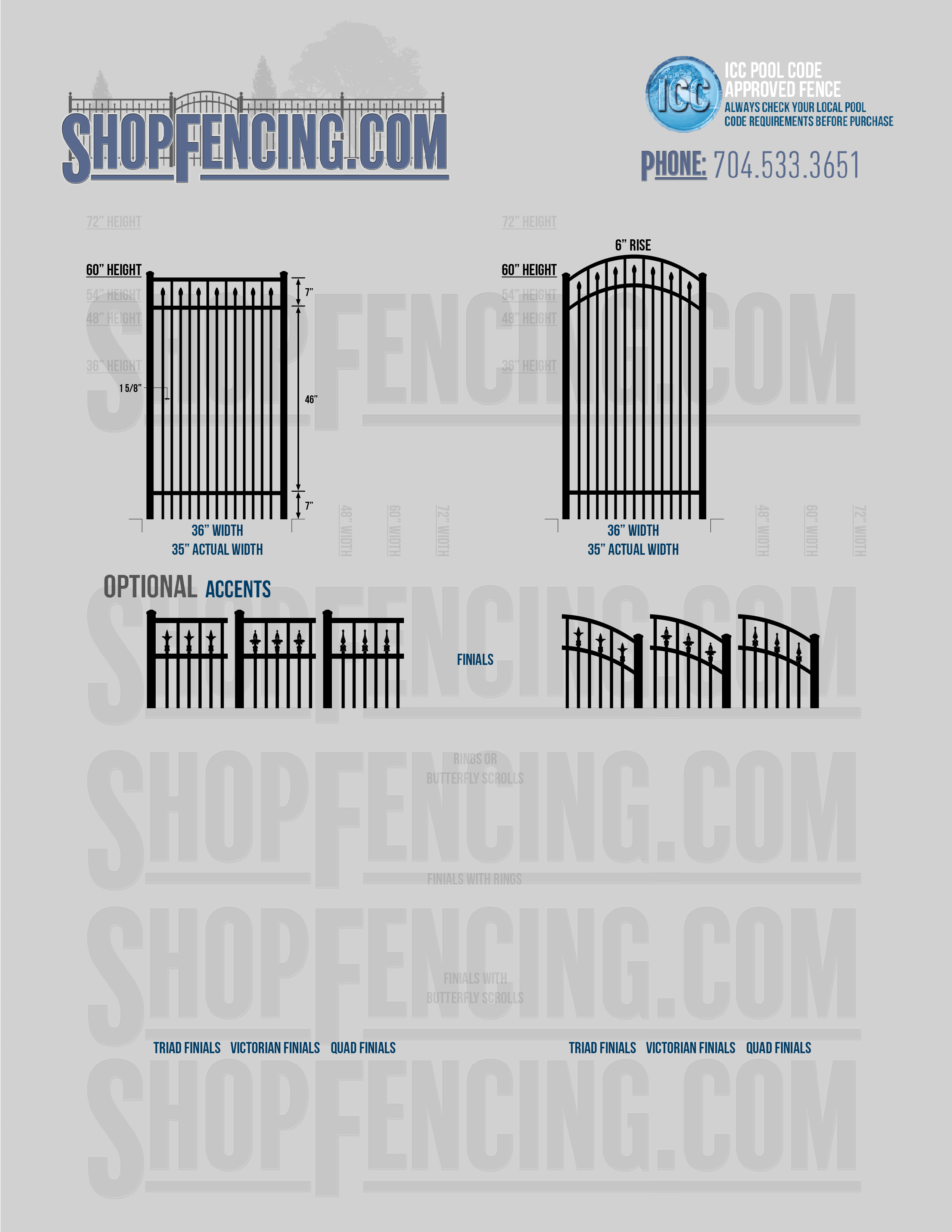 Accent Upgrades: When you add these options, gates will ship with the finials, rings or scrolls installed. PLEASE NOTE: Triad and Victorian finials cannot be installed on double picket fence sections and gates. Rings and scrolls cannot be installed on double picket fence sections and gates.