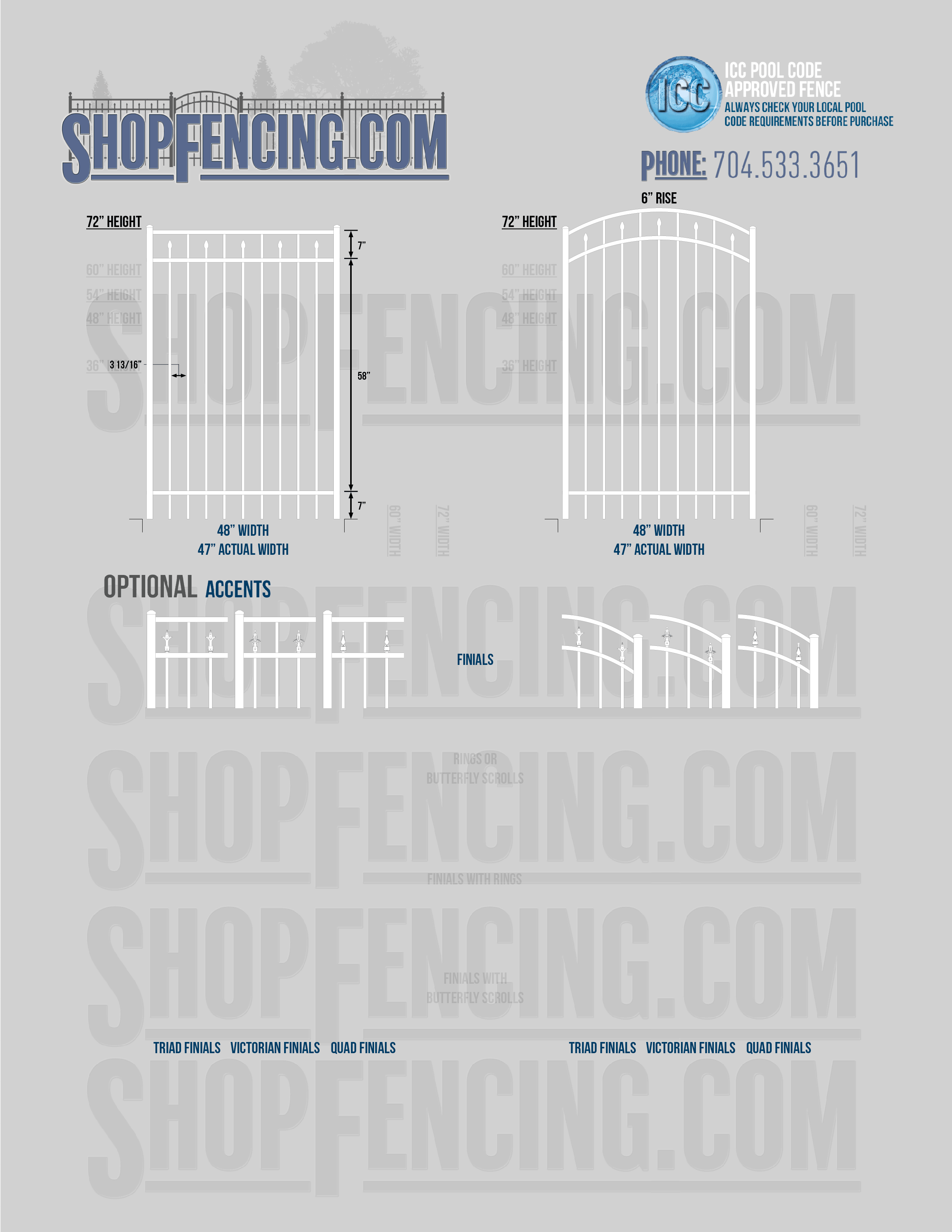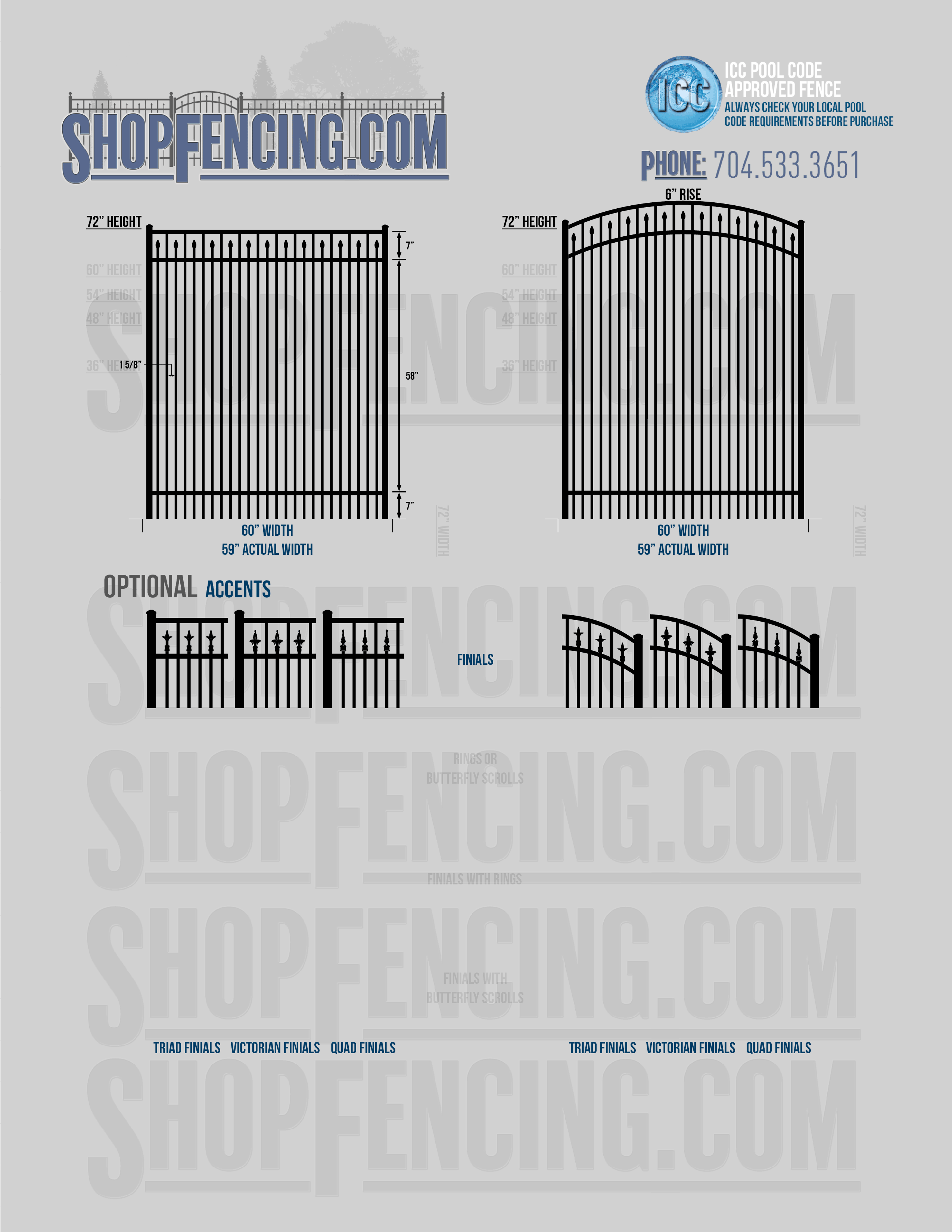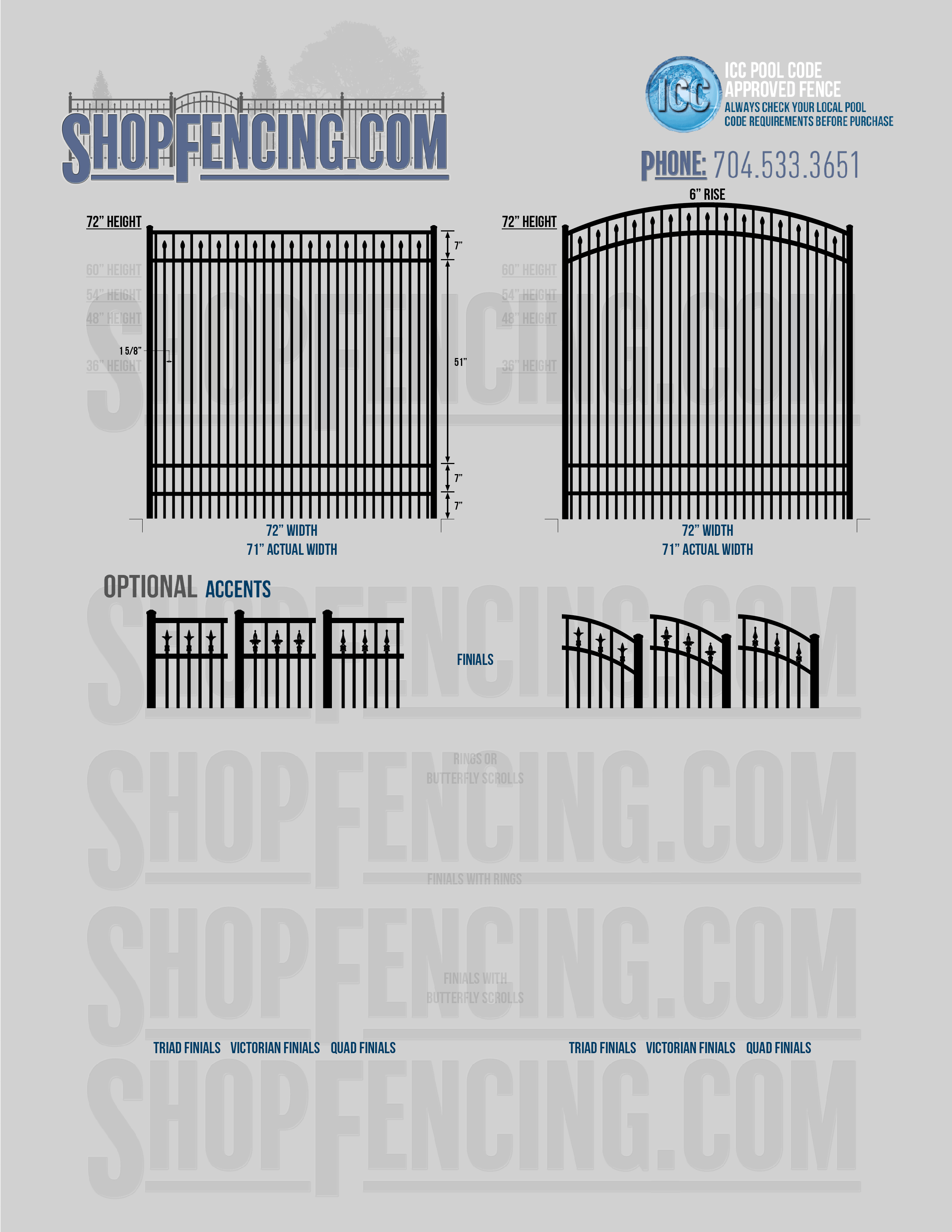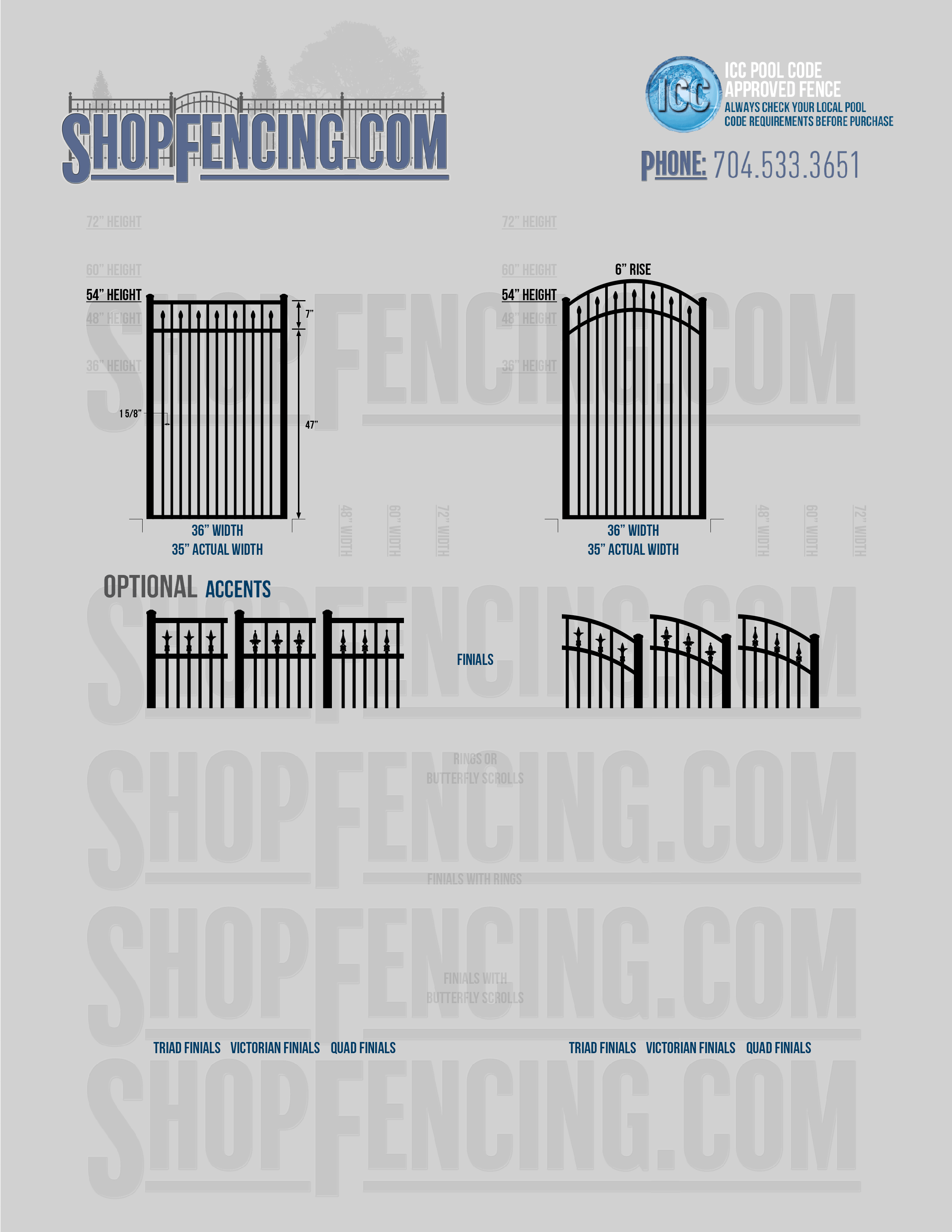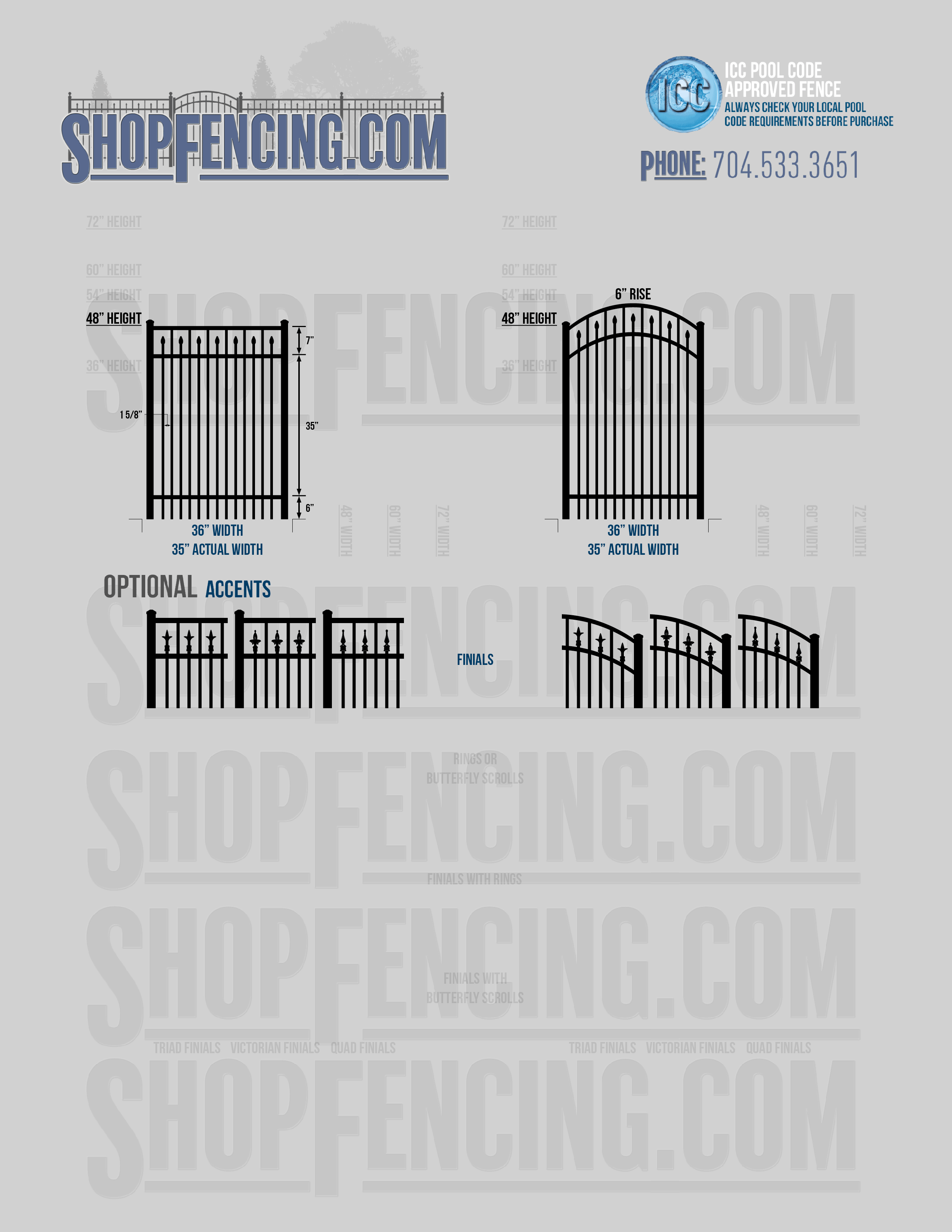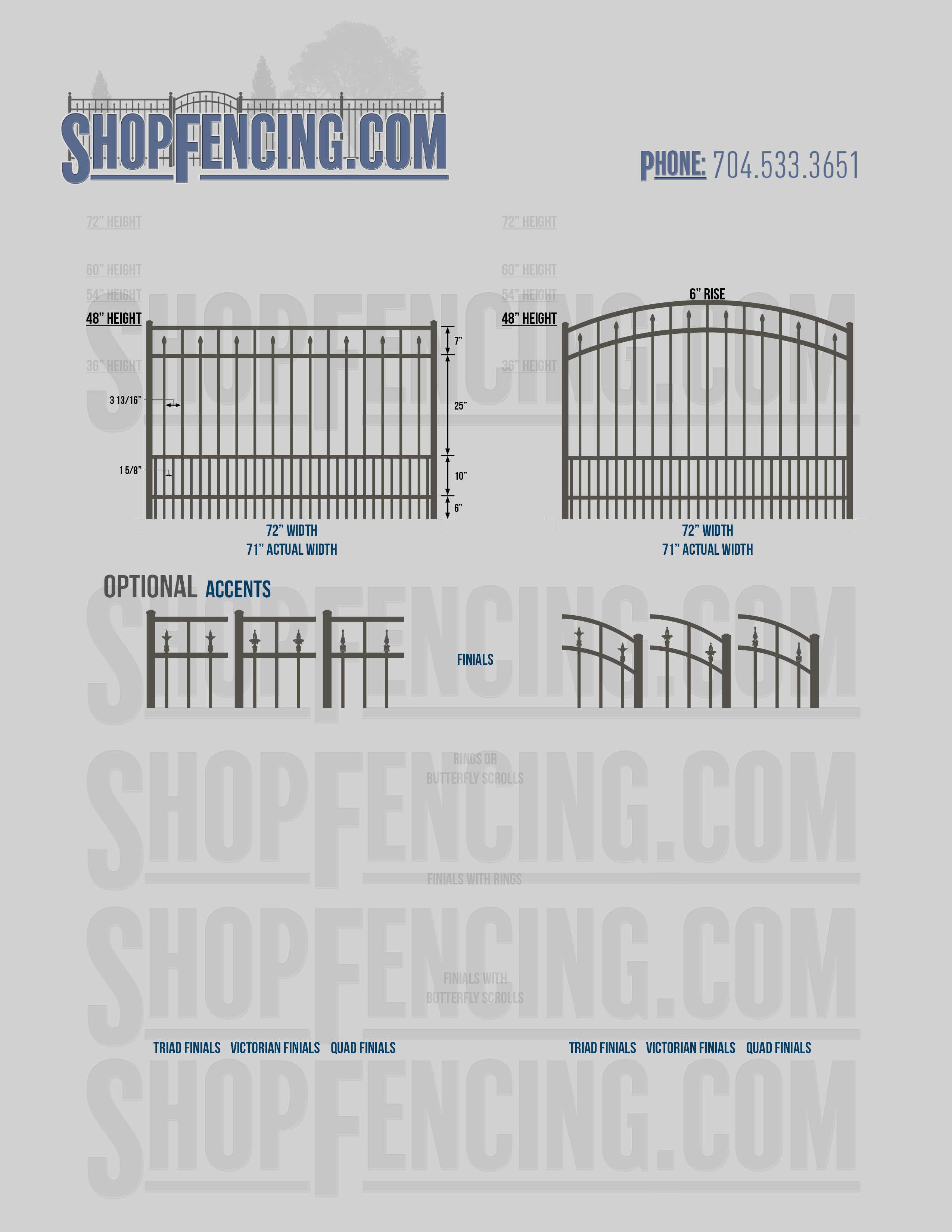 Accent Upgrades: When you add these options, gates will ship with the finials, rings or scrolls installed. PLEASE NOTE: Triad and Victorian finials cannot be installed on double picket fence sections and gates. Rings and scrolls cannot be installed on double picket fence sections and gates.