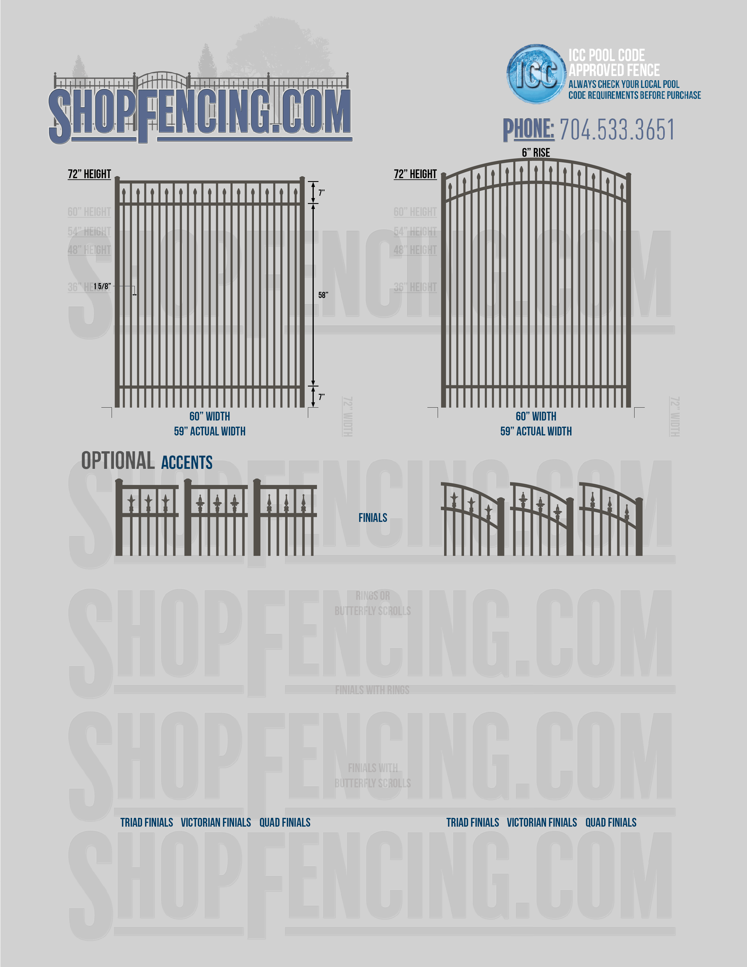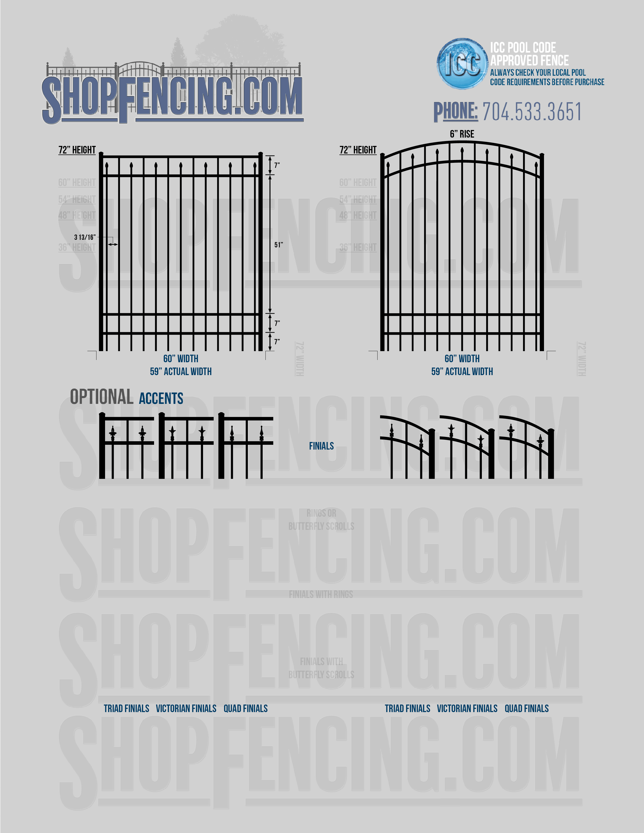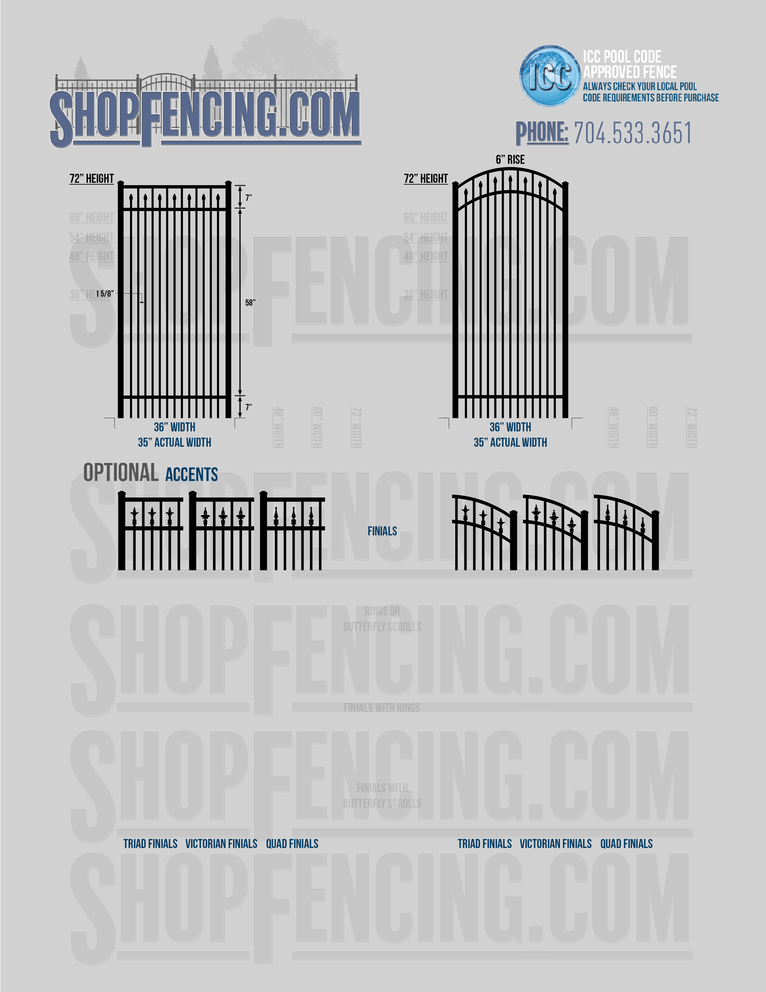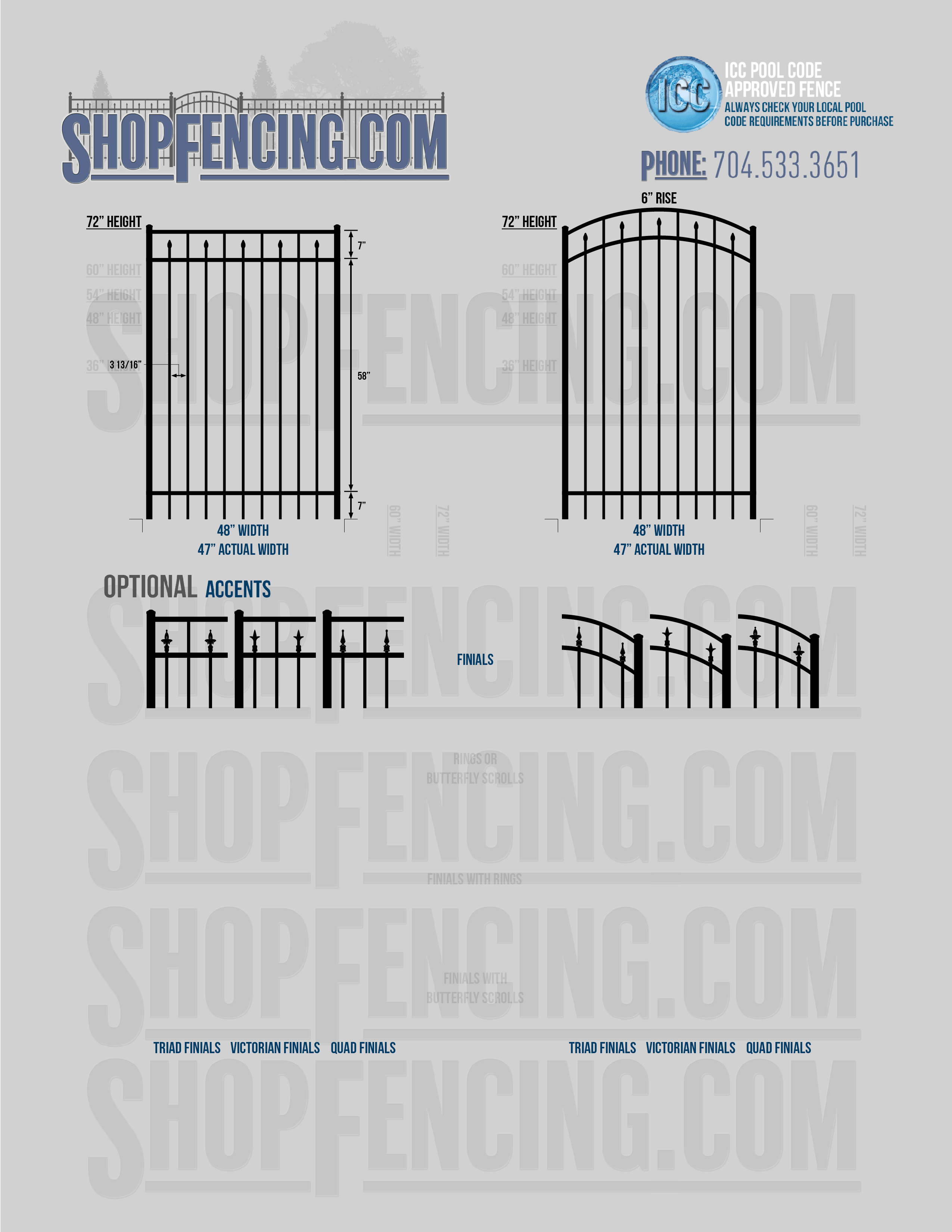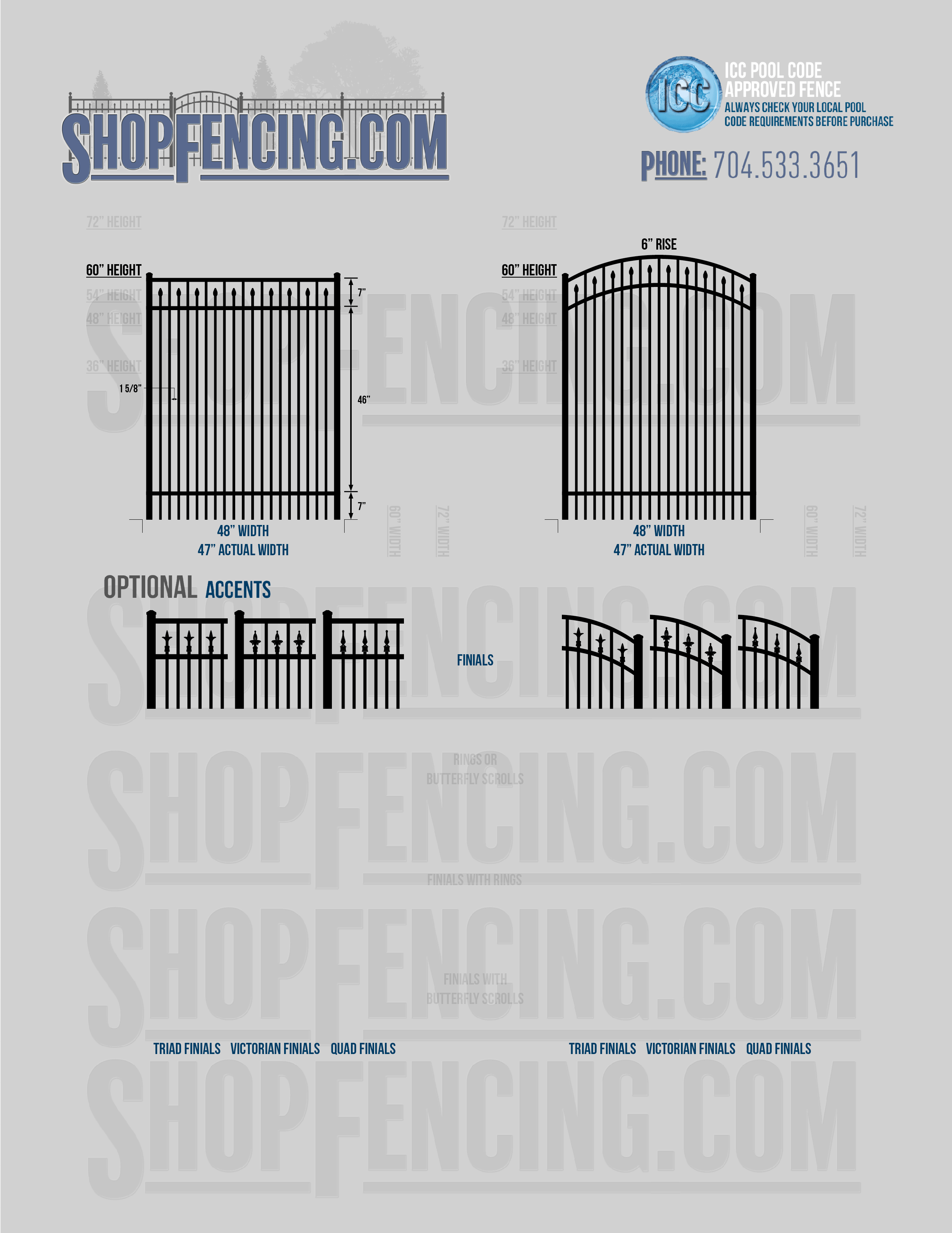 Accent Upgrades: When you add these options, gates will ship with the finials, rings or scrolls installed. PLEASE NOTE: Triad and Victorian finials cannot be installed on double picket fence sections and gates. Rings and scrolls cannot be installed on double picket fence sections and gates.