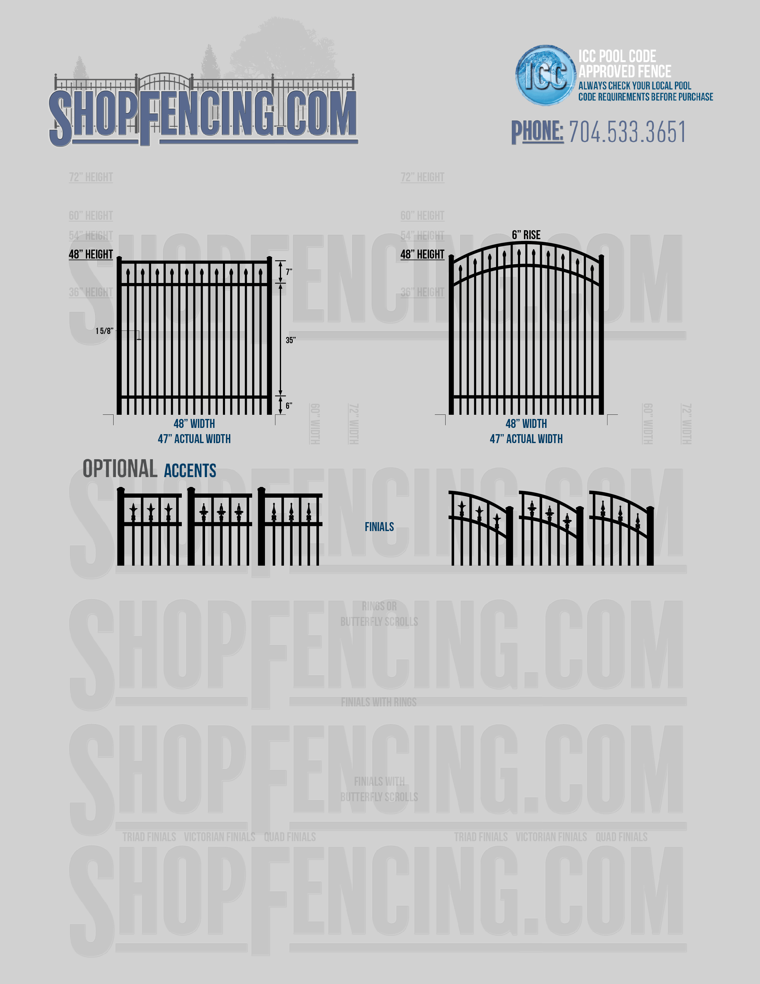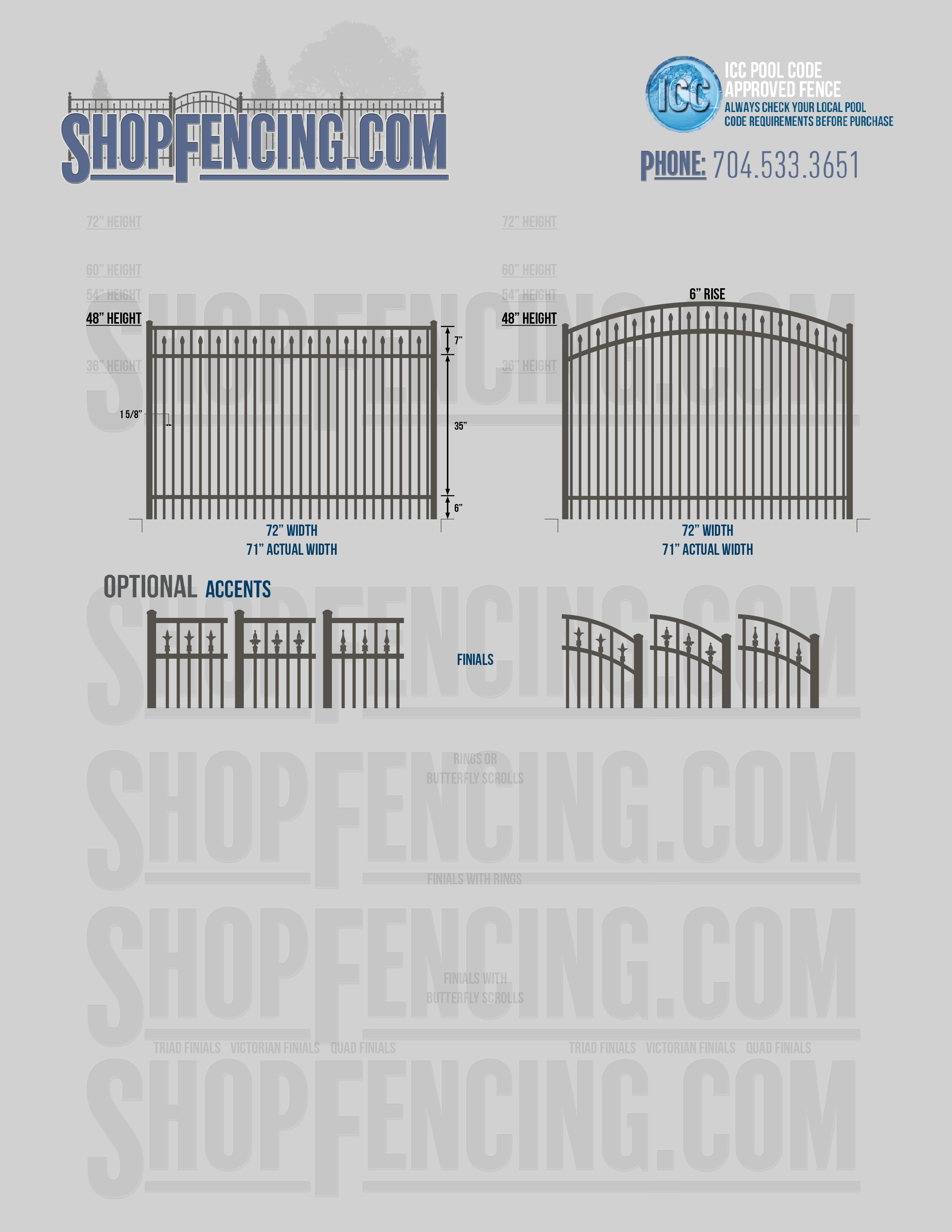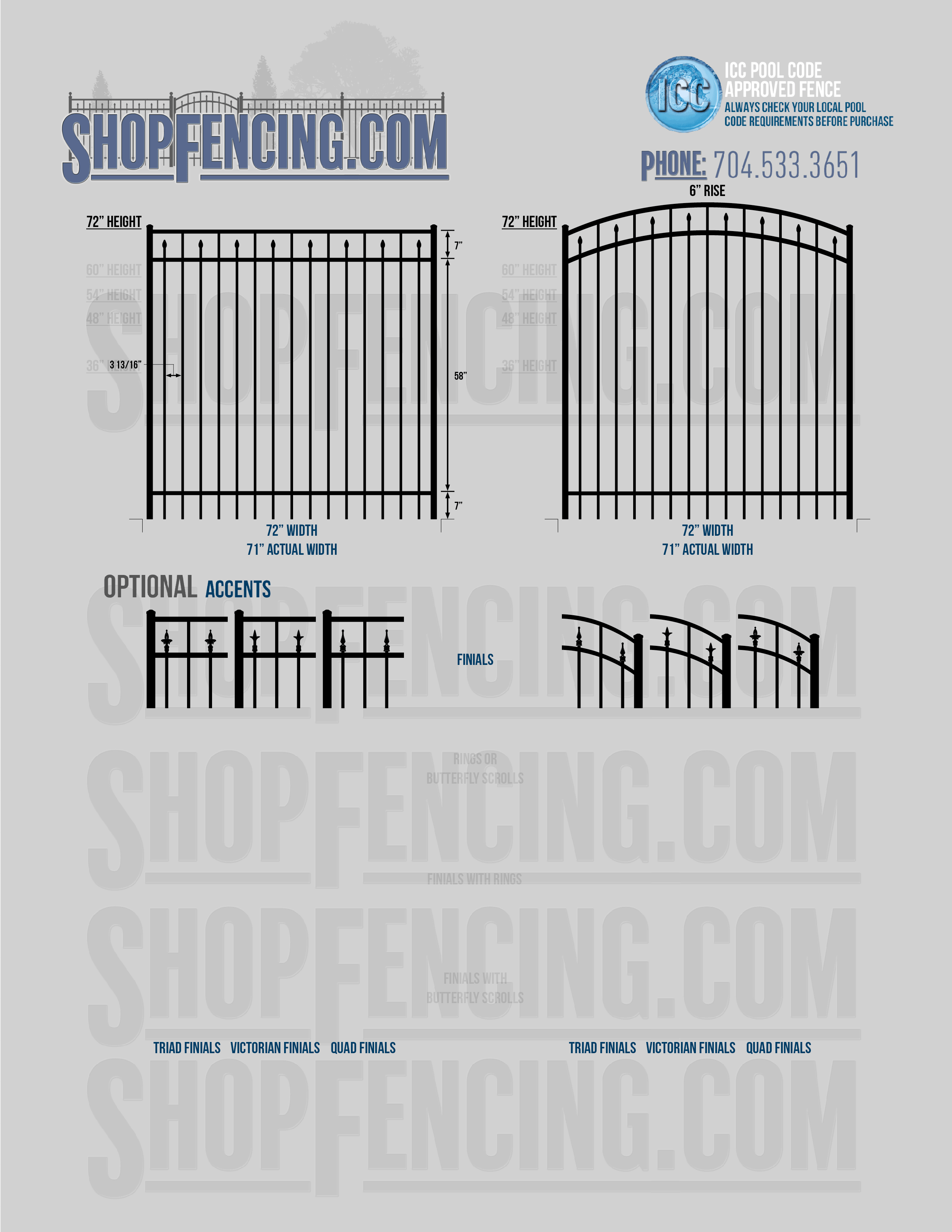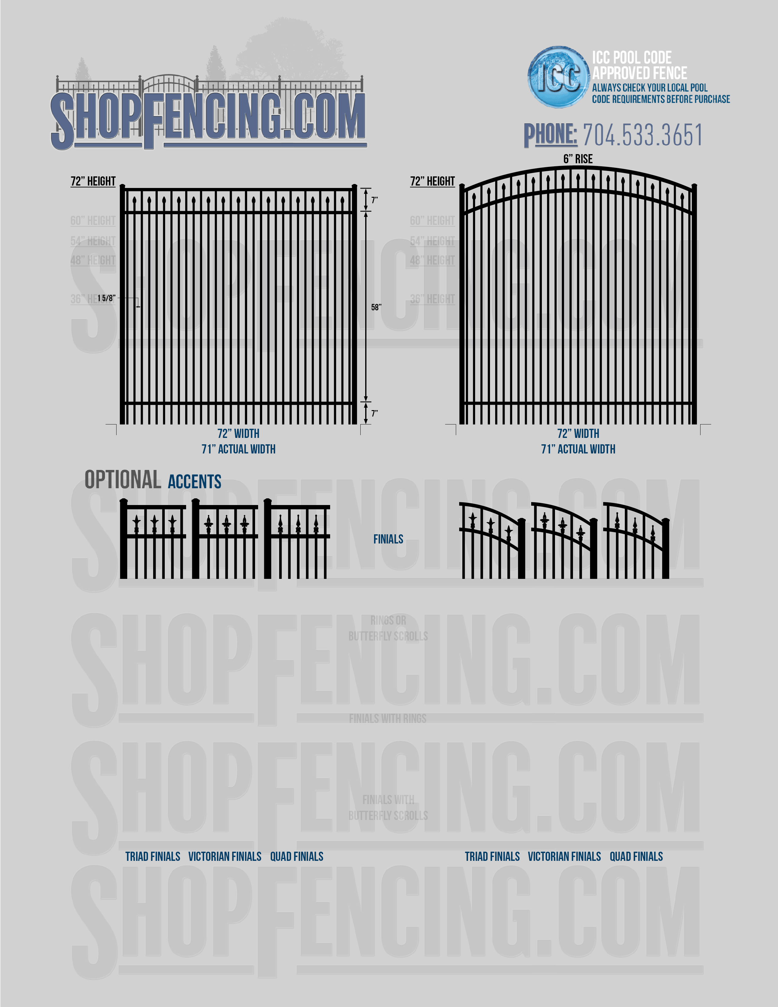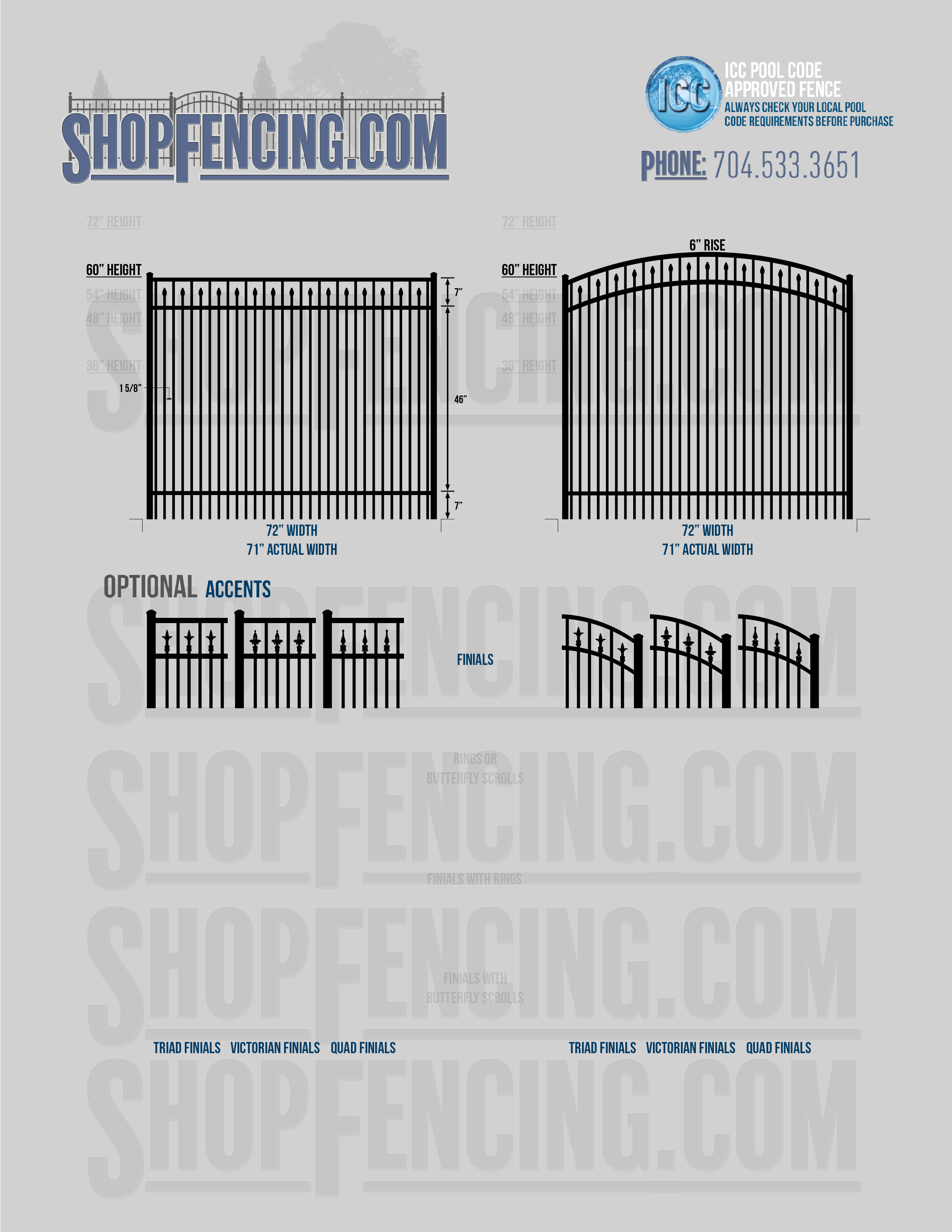 Accent Upgrades: When you add these options, gates will ship with the finials, rings or scrolls installed. PLEASE NOTE: Triad and Victorian finials cannot be installed on double picket fence sections and gates. Rings and scrolls cannot be installed on double picket fence sections and gates.