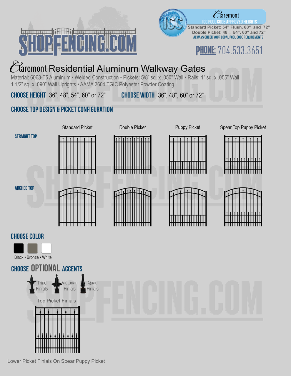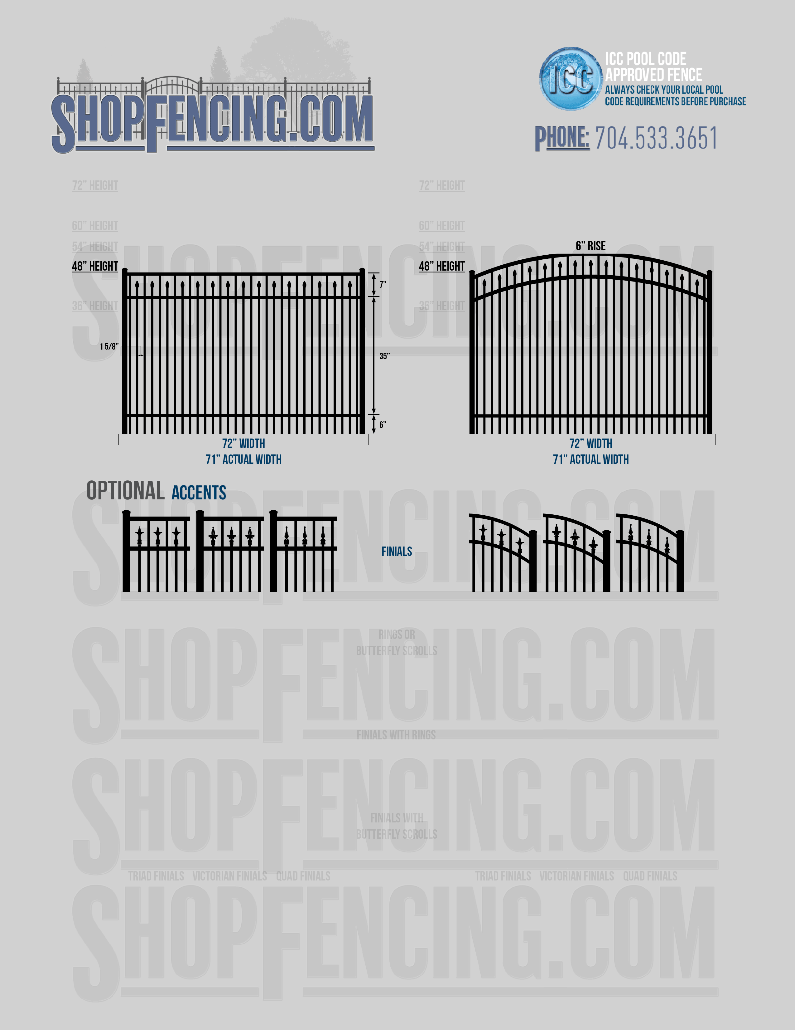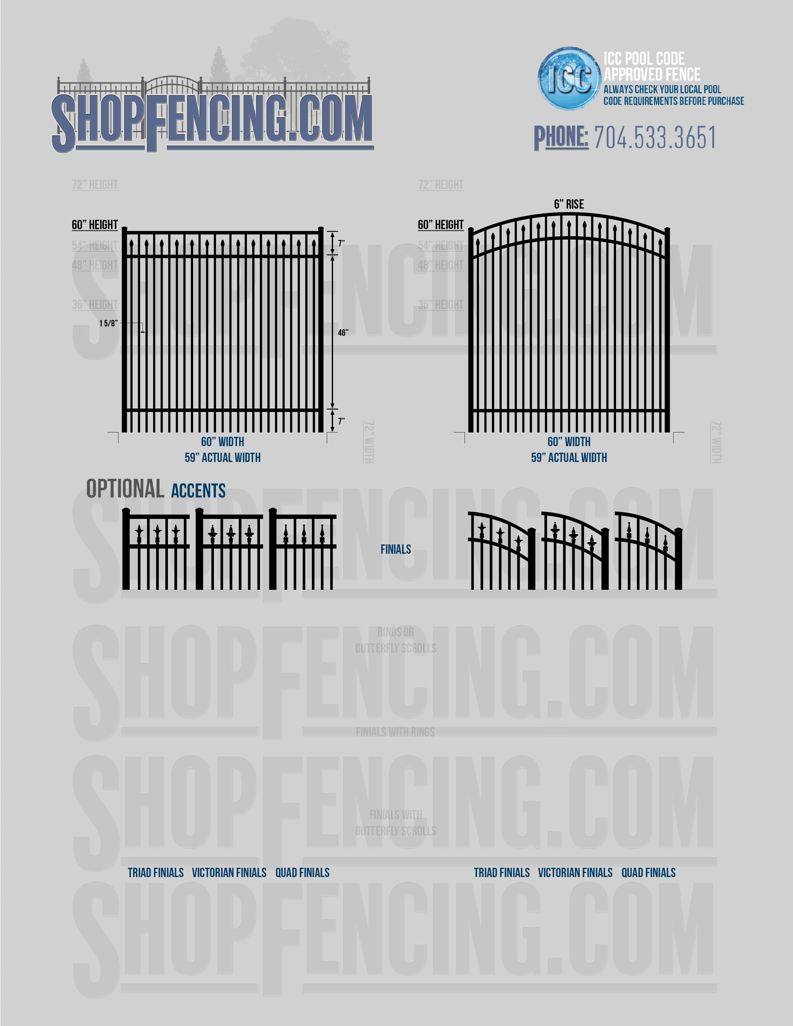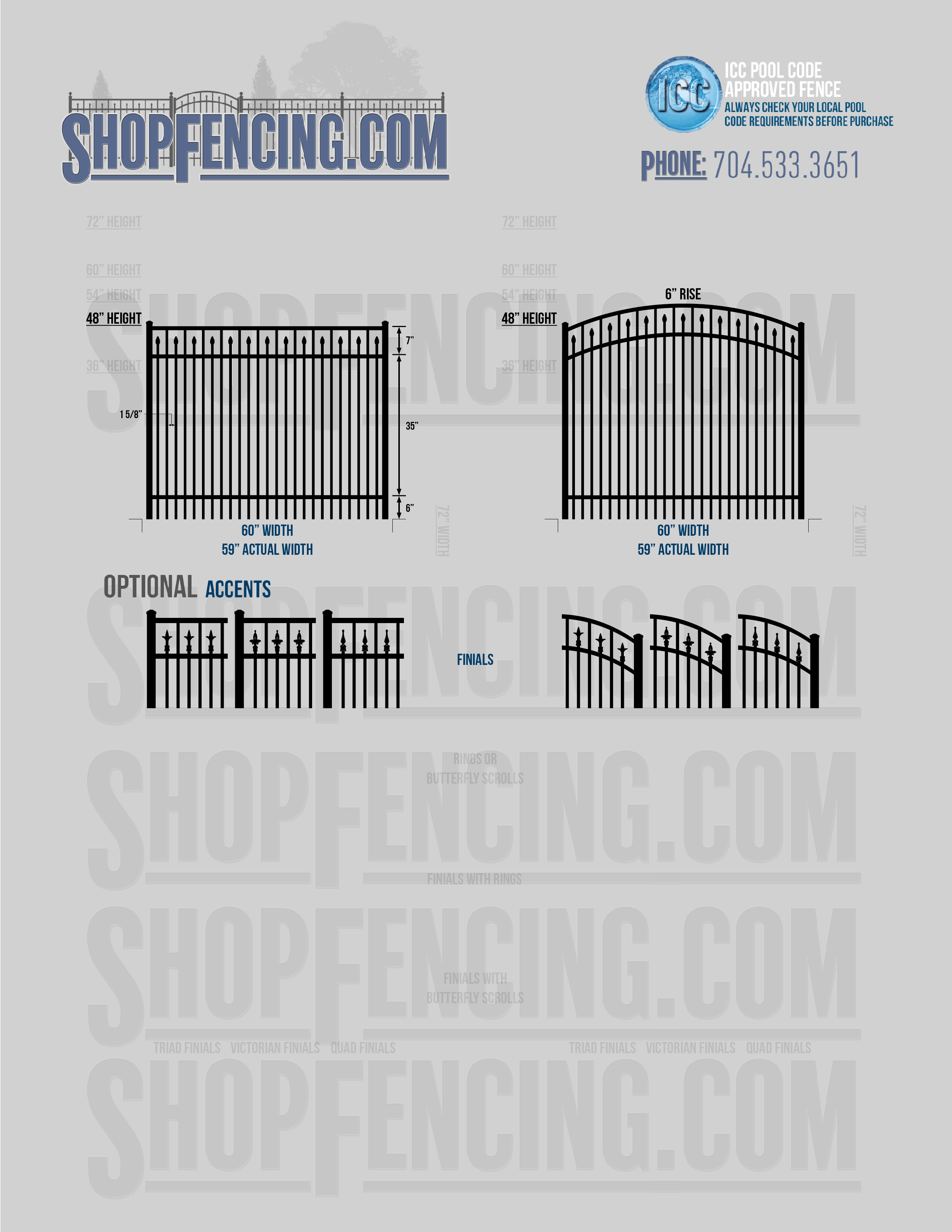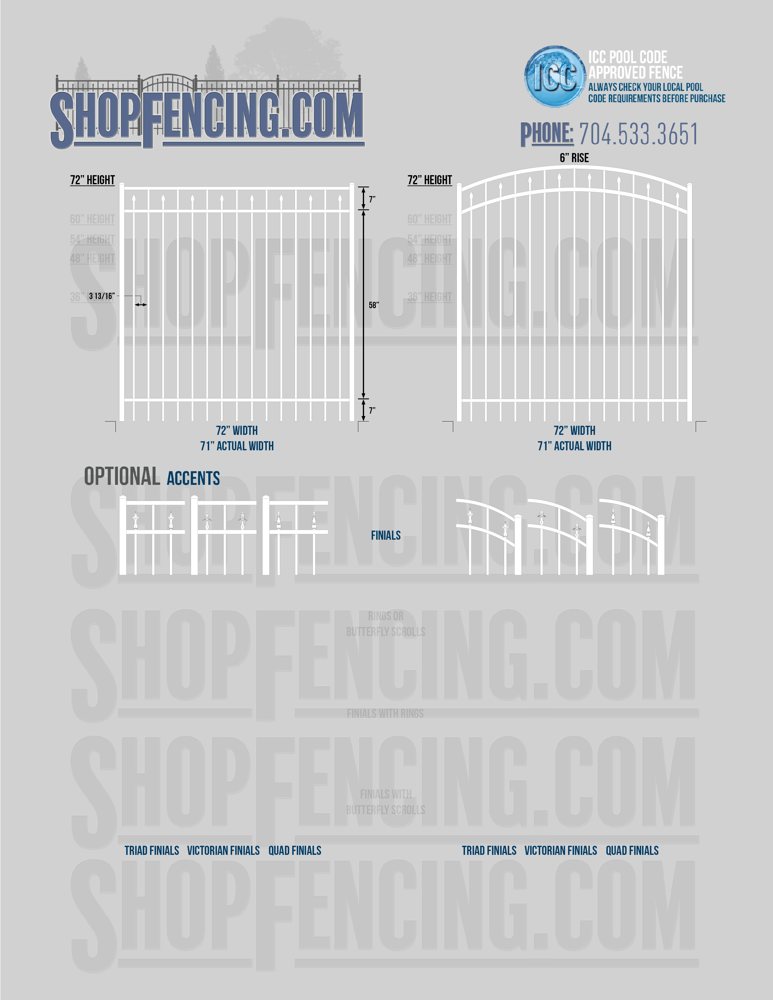 Accent Upgrades: When you add these options, gates will ship with the finials, rings or scrolls installed. PLEASE NOTE: Triad and Victorian finials cannot be installed on double picket fence sections and gates. Rings and scrolls cannot be installed on double picket fence sections and gates.