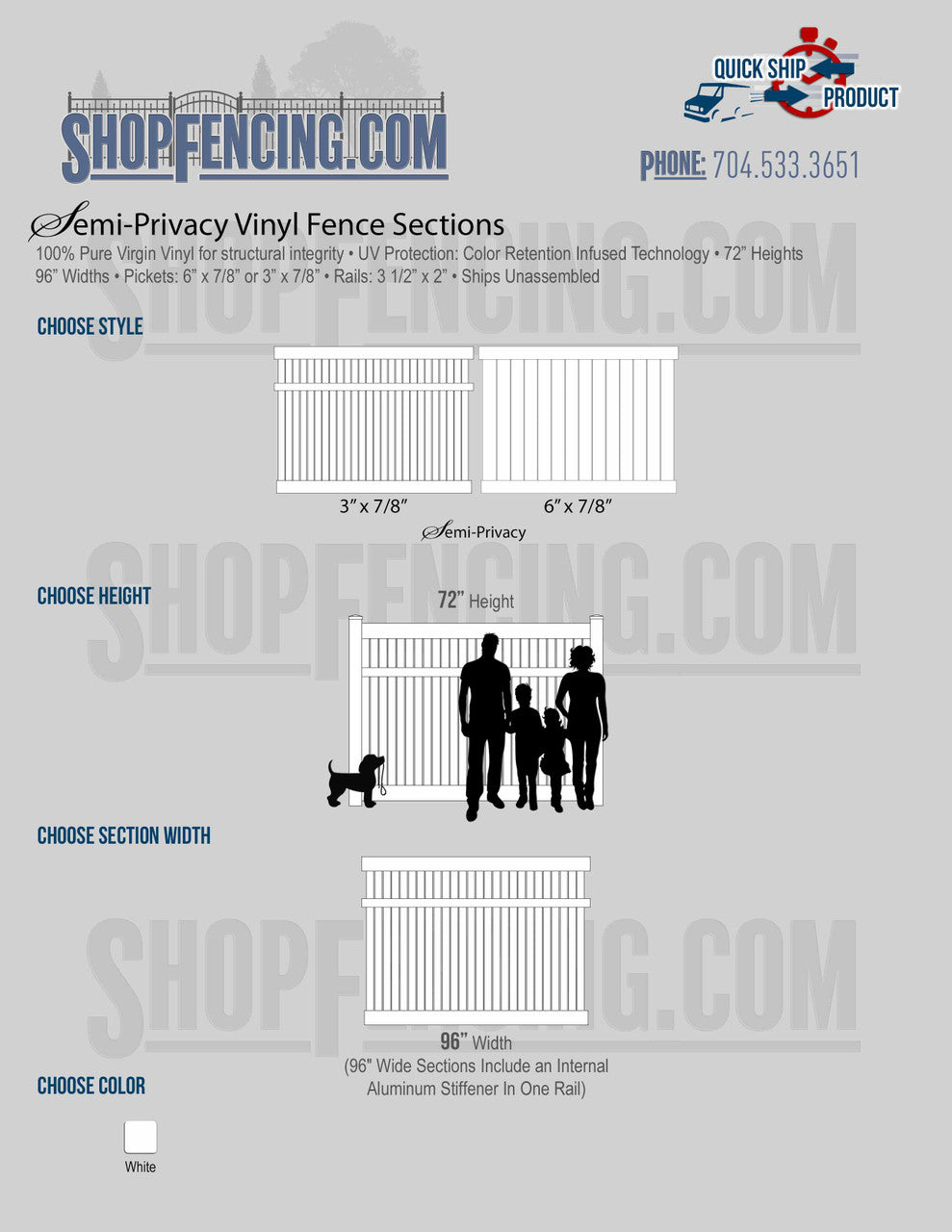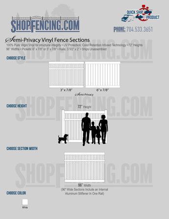 Semi-Privacy Vinyl Fencing ICC Pool Code Approved Heights: