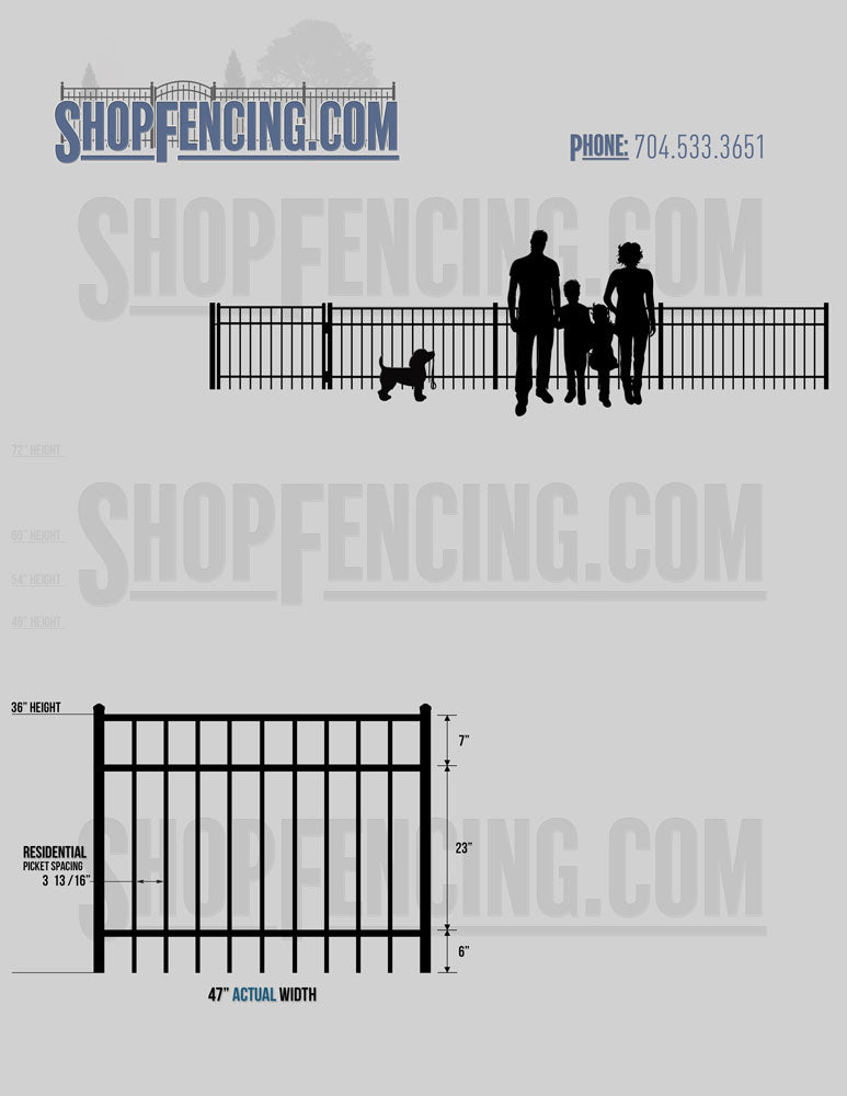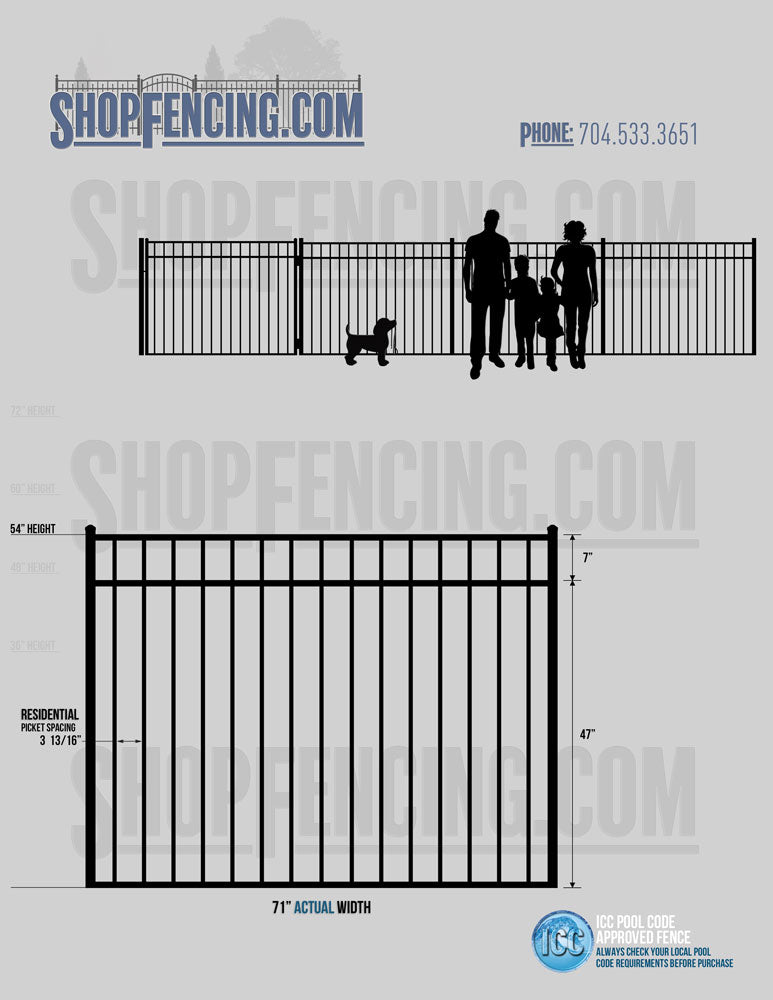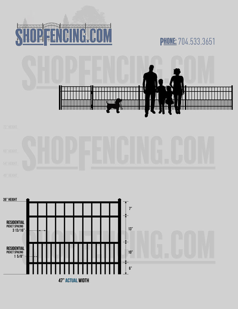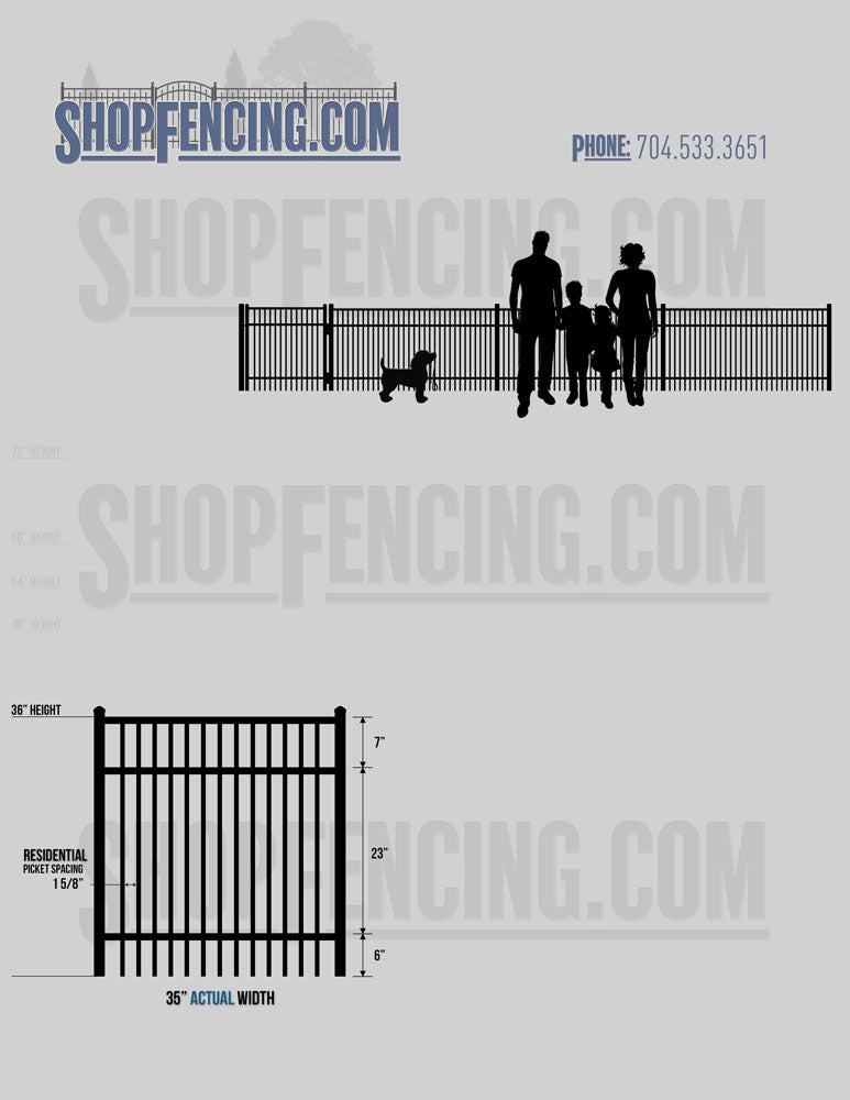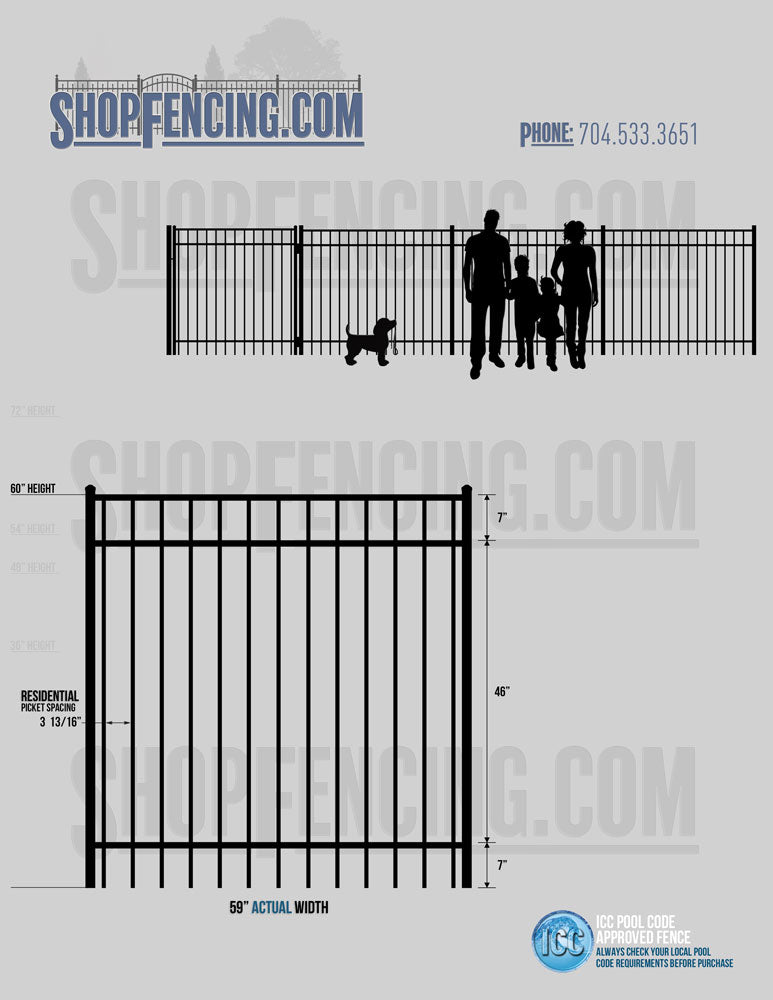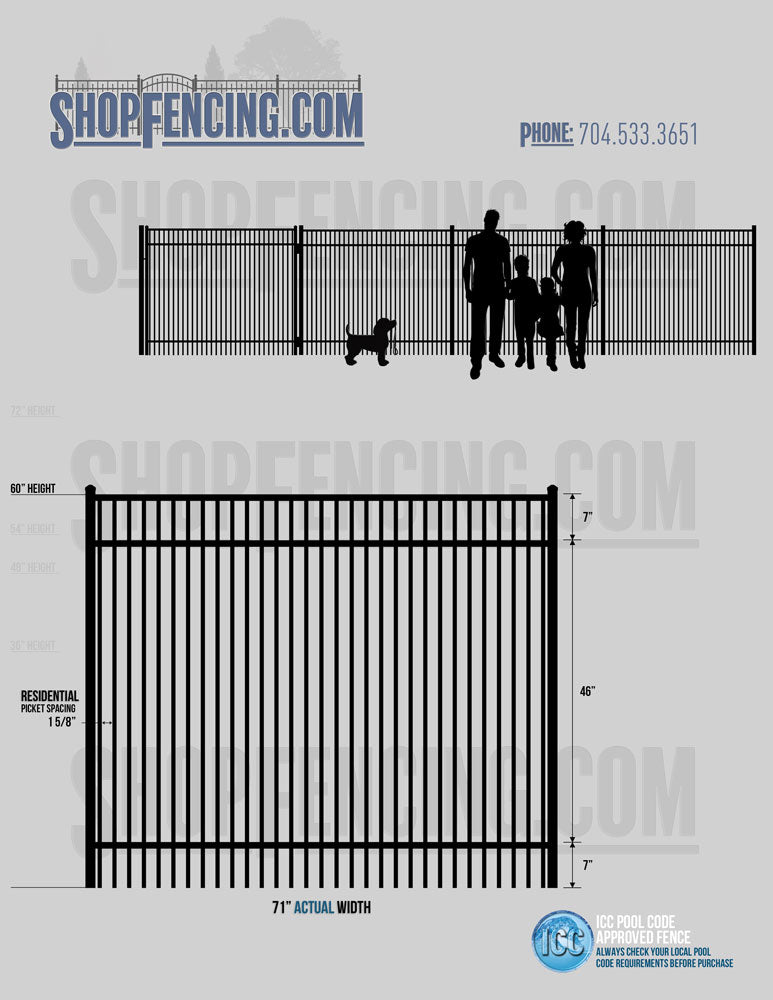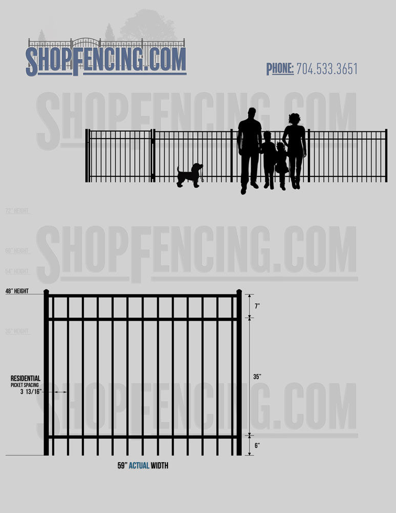 Standard Picket Design: 54" Flush Bottom, 60" and 72" Heights. Double Picket Design: 48", 54", 60" and 72" Heights. Check your local pool codes before purchasing.