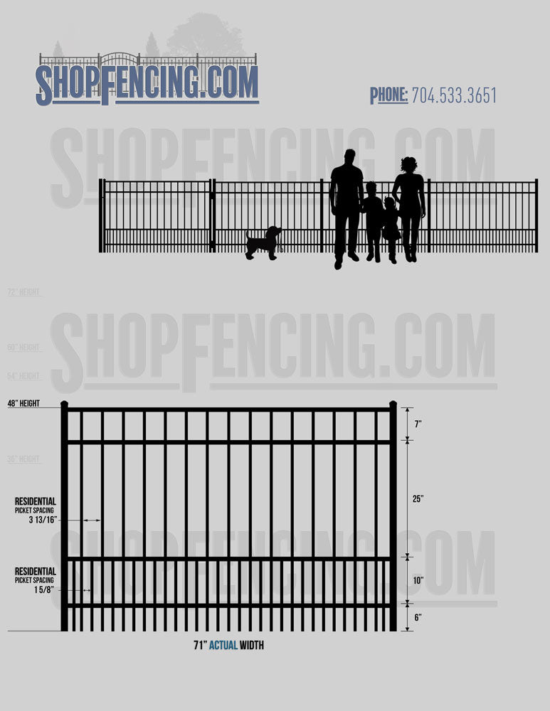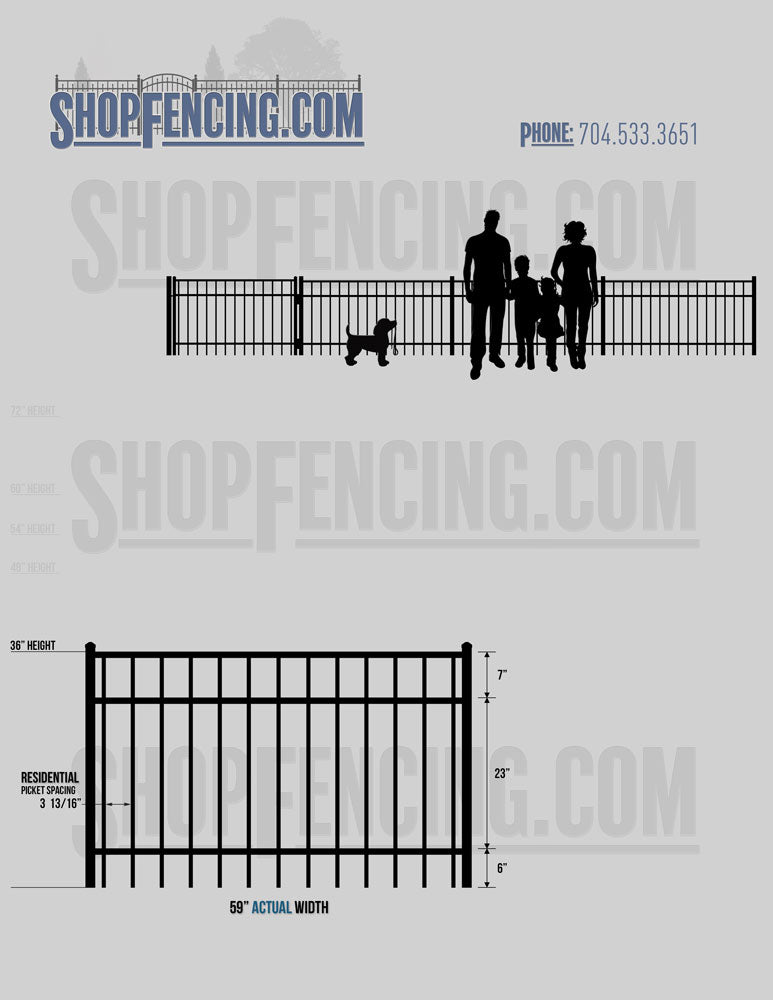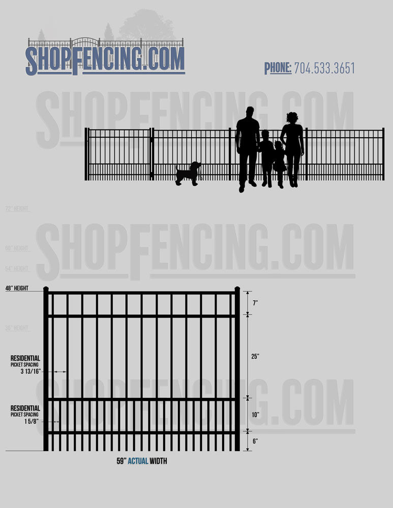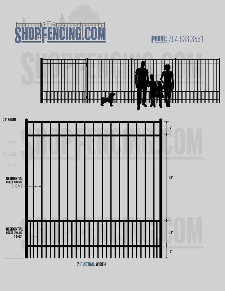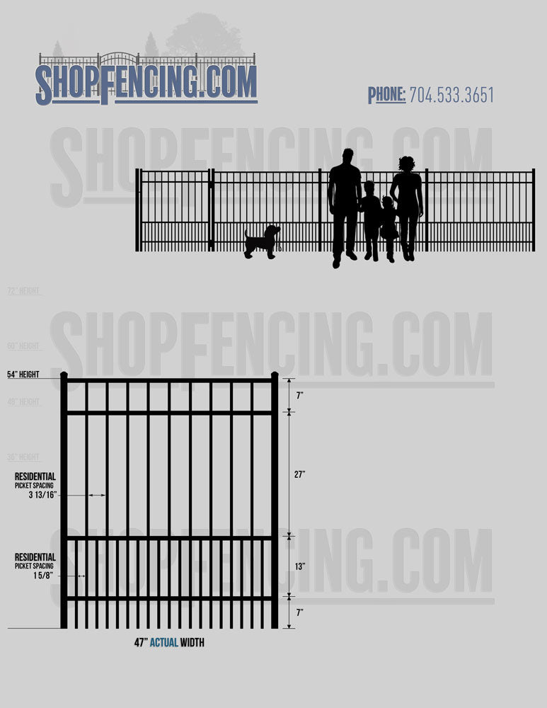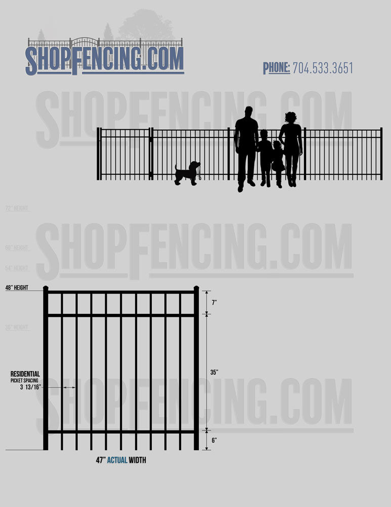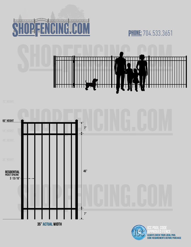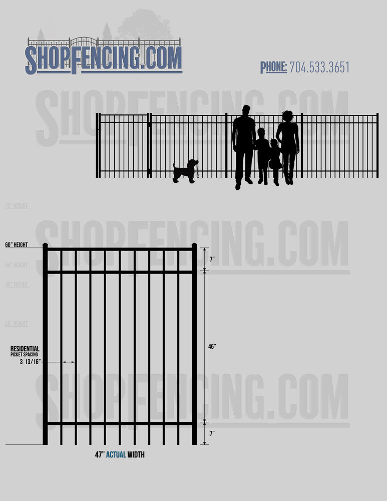 Standard Picket Design: 54" Flush Bottom, 60" and 72" Heights. Double Picket Design: 48", 54", 60" and 72" Heights. Check your local pool codes before purchasing.