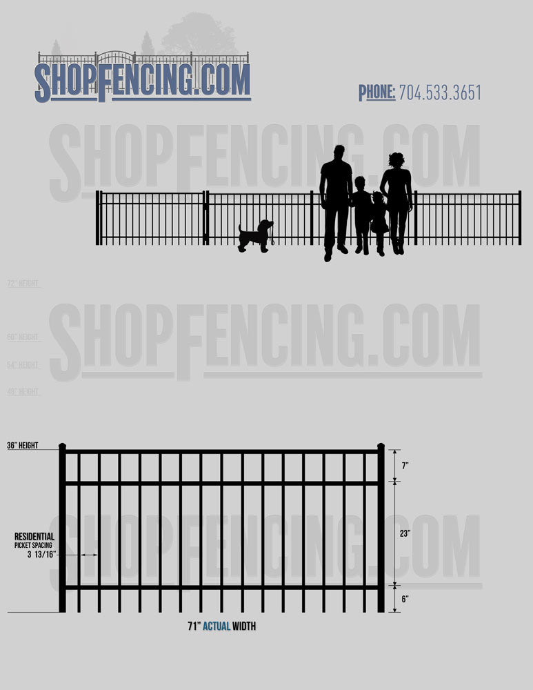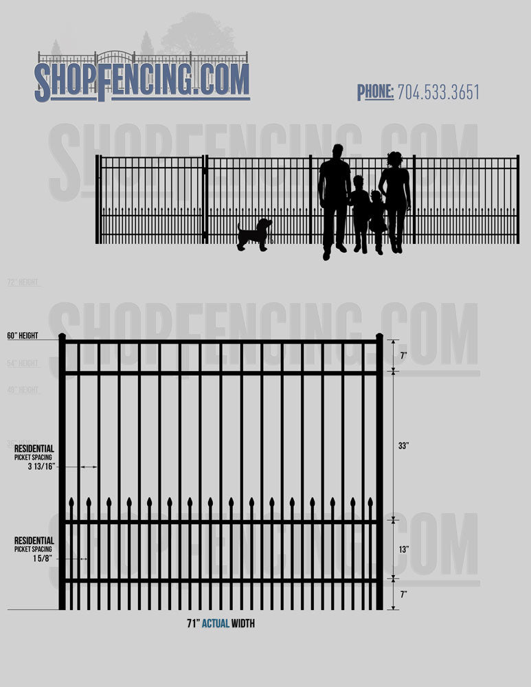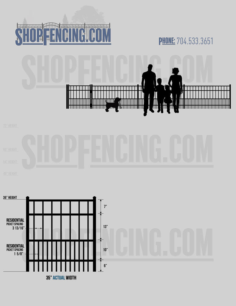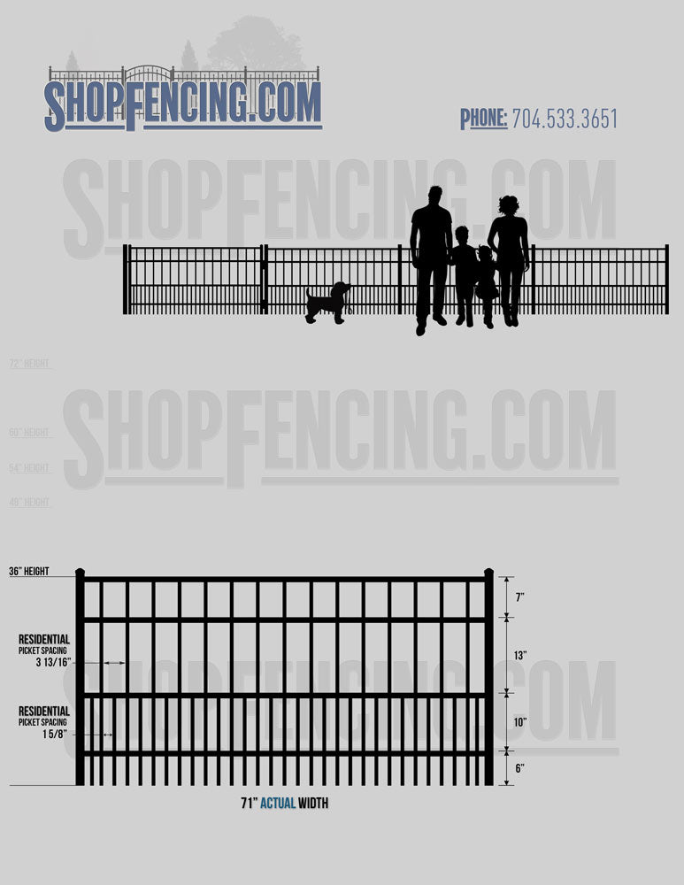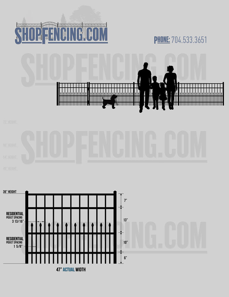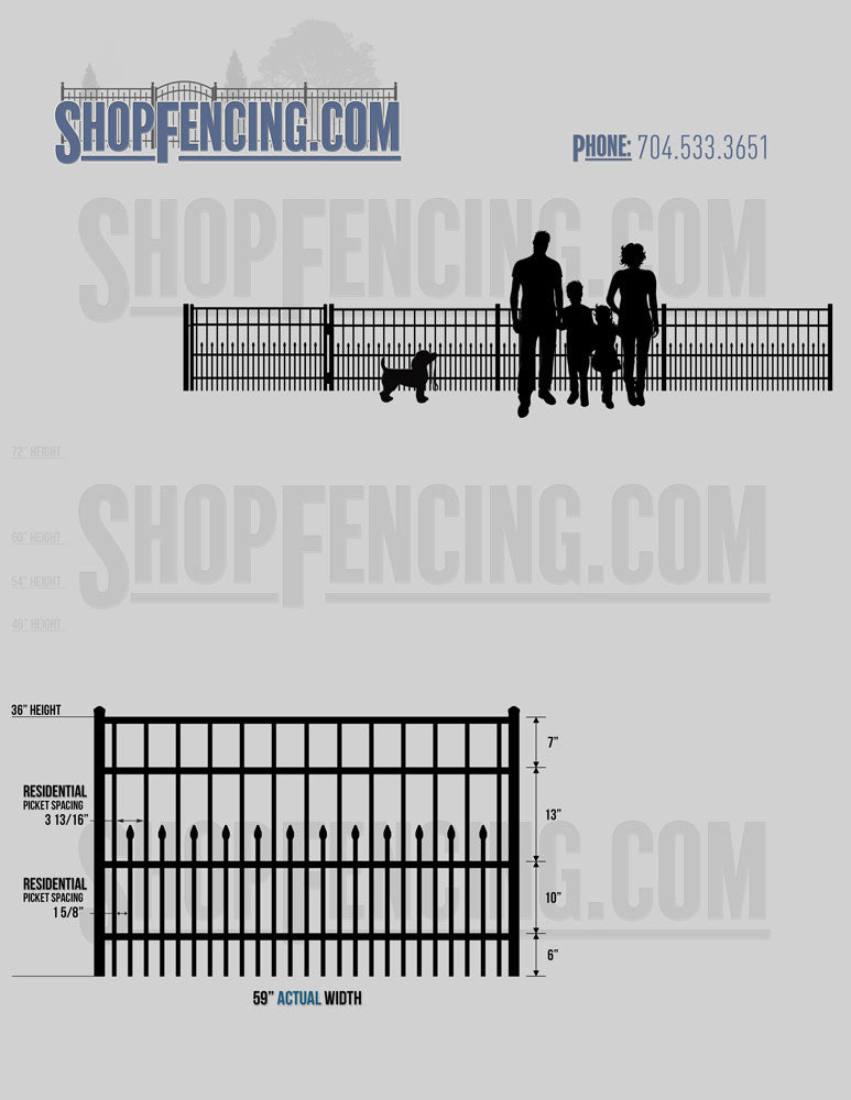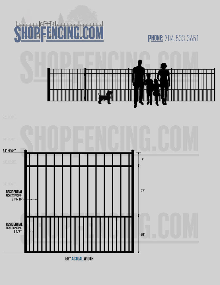 Standard Picket Design: 54" Flush Bottom, 60" and 72" Heights. Double Picket Design: 48", 54", 60" and 72" Heights. Check your local pool codes before purchasing.