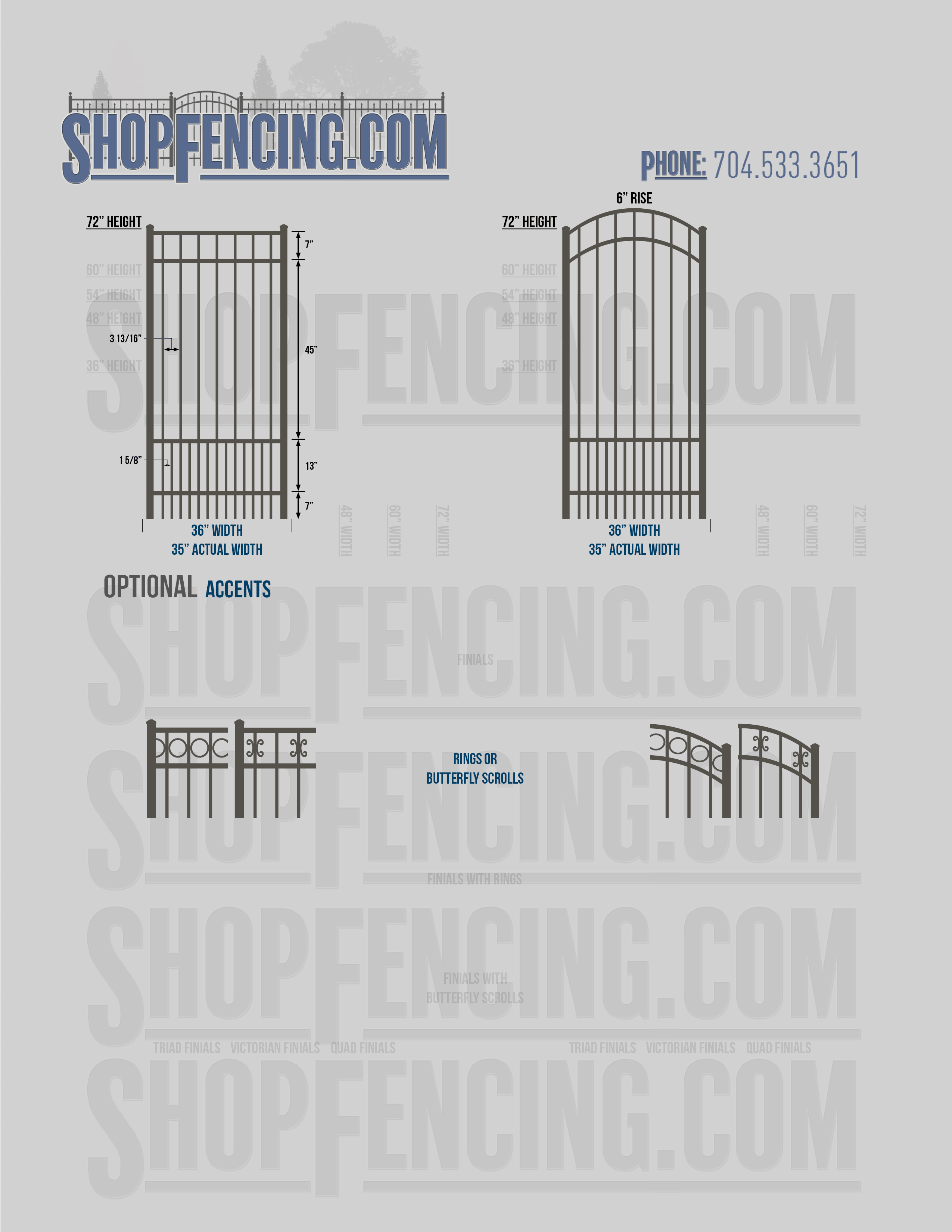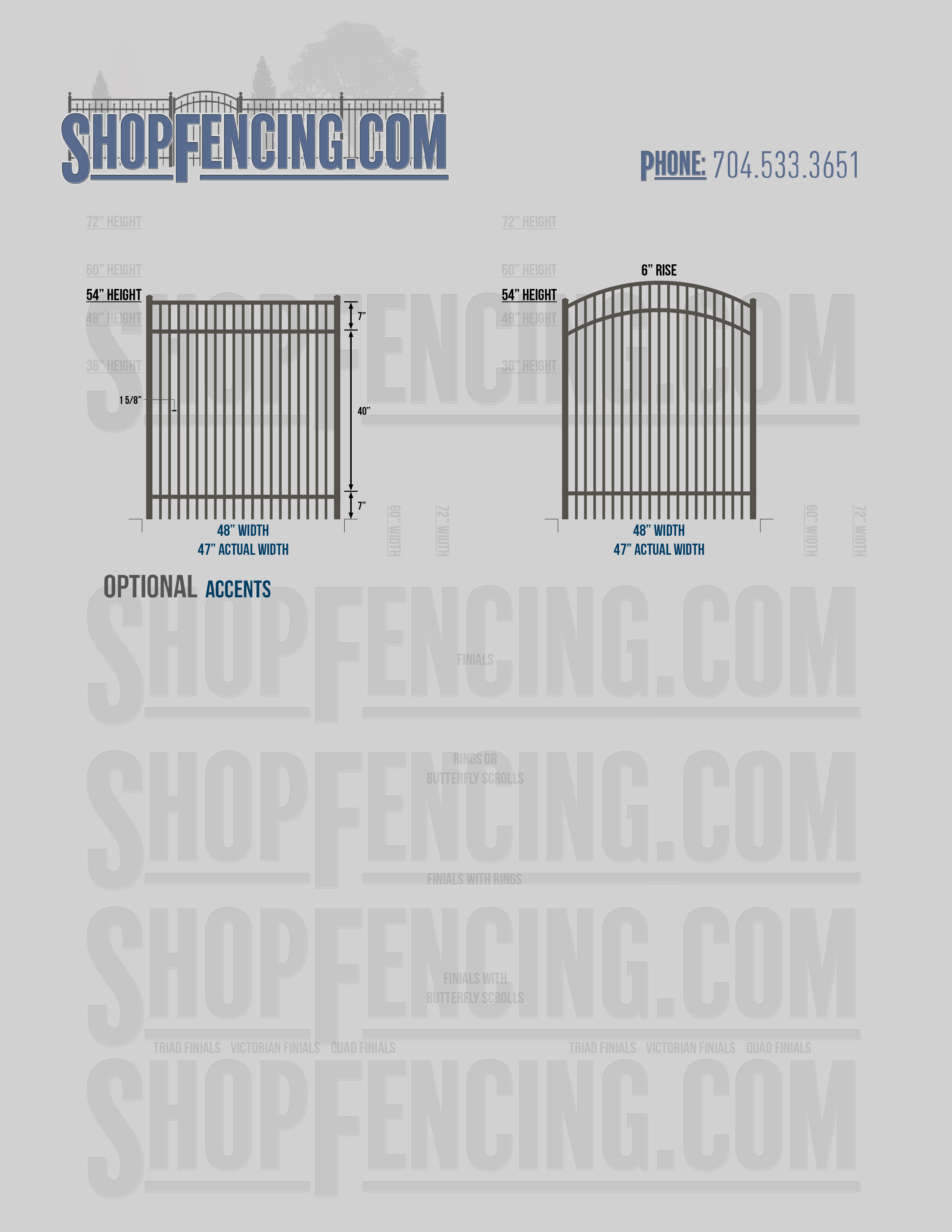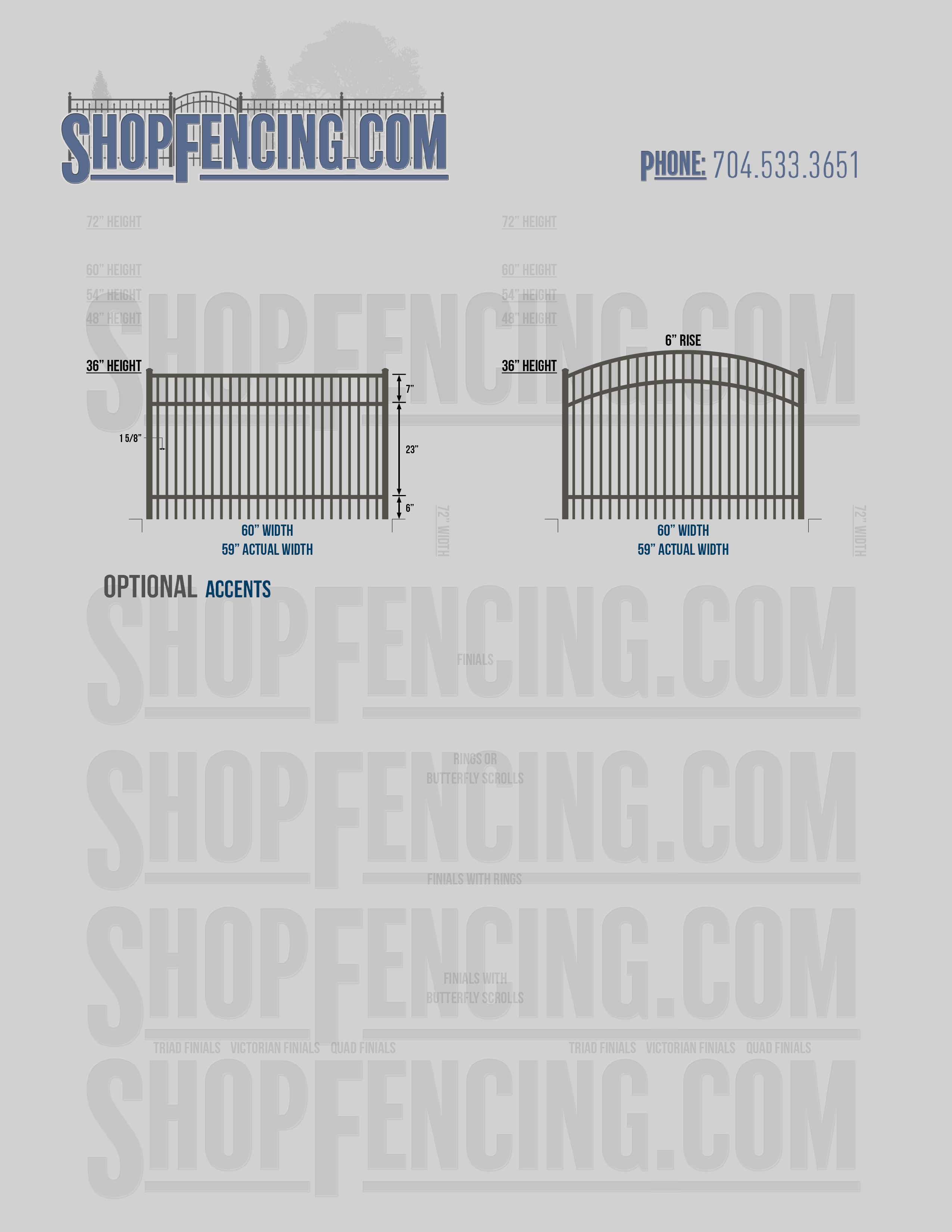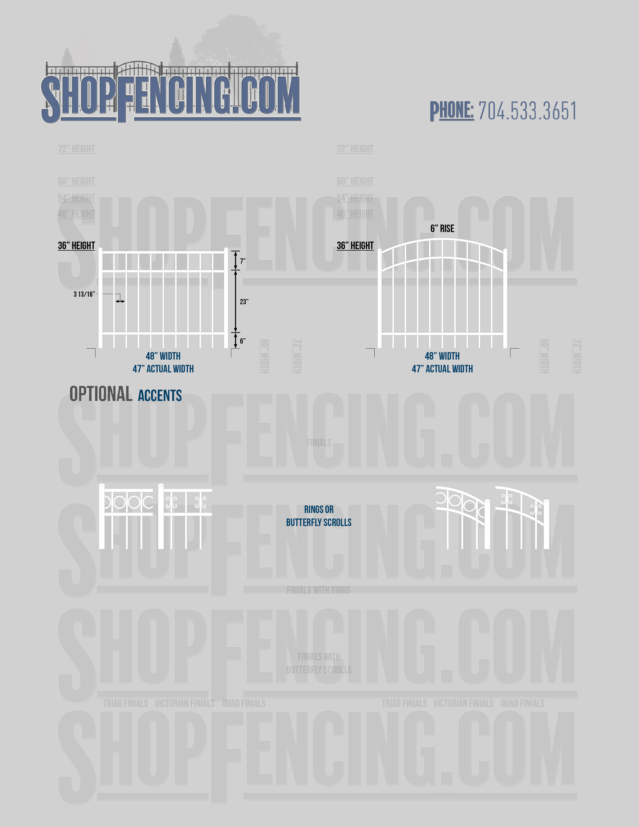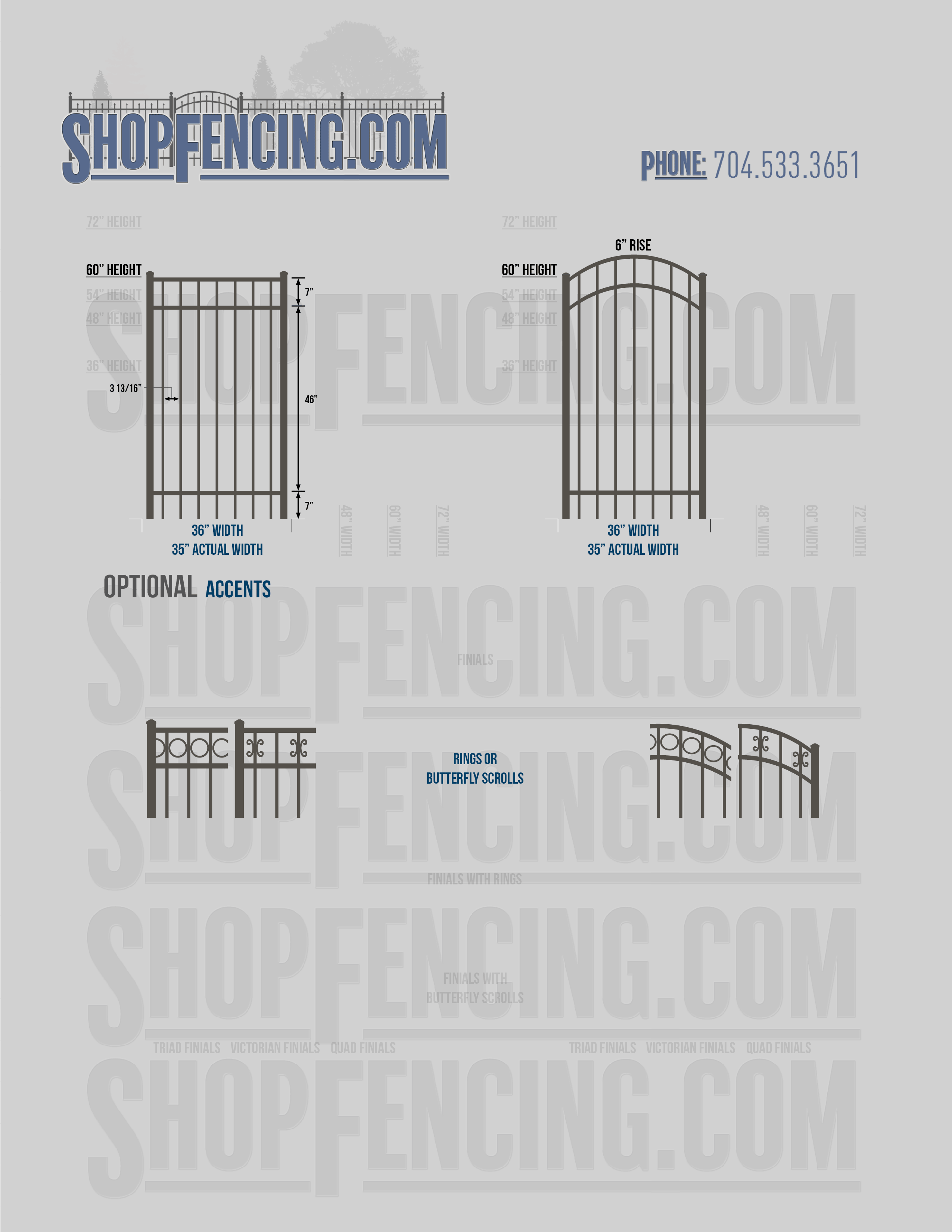 Accent Upgrades: When you add these options, gates will ship with the finials, rings or scrolls installed. PLEASE NOTE: Triad and Victorian finials cannot be installed on double picket fence sections and gates. Rings and scrolls cannot be installed on double picket fence sections and gates.