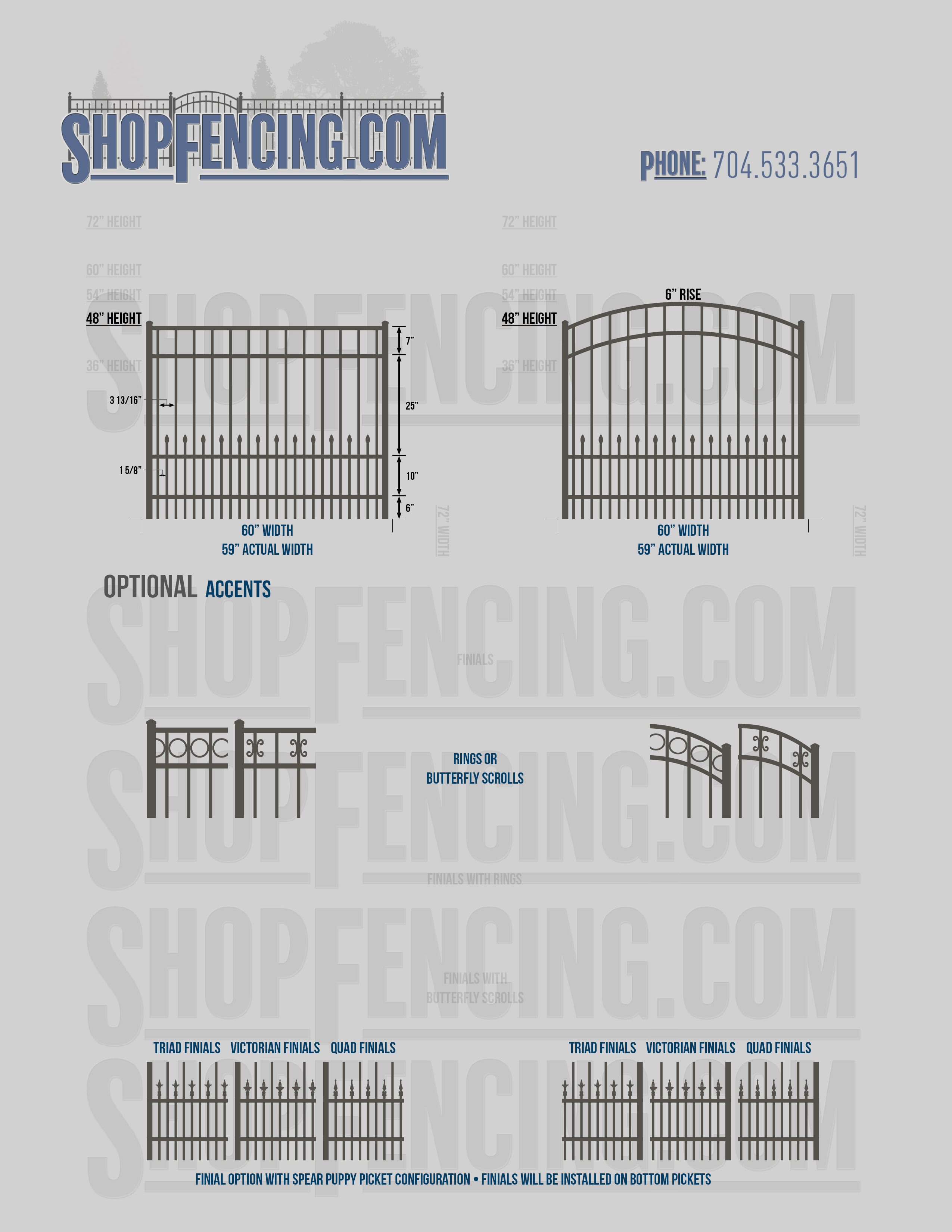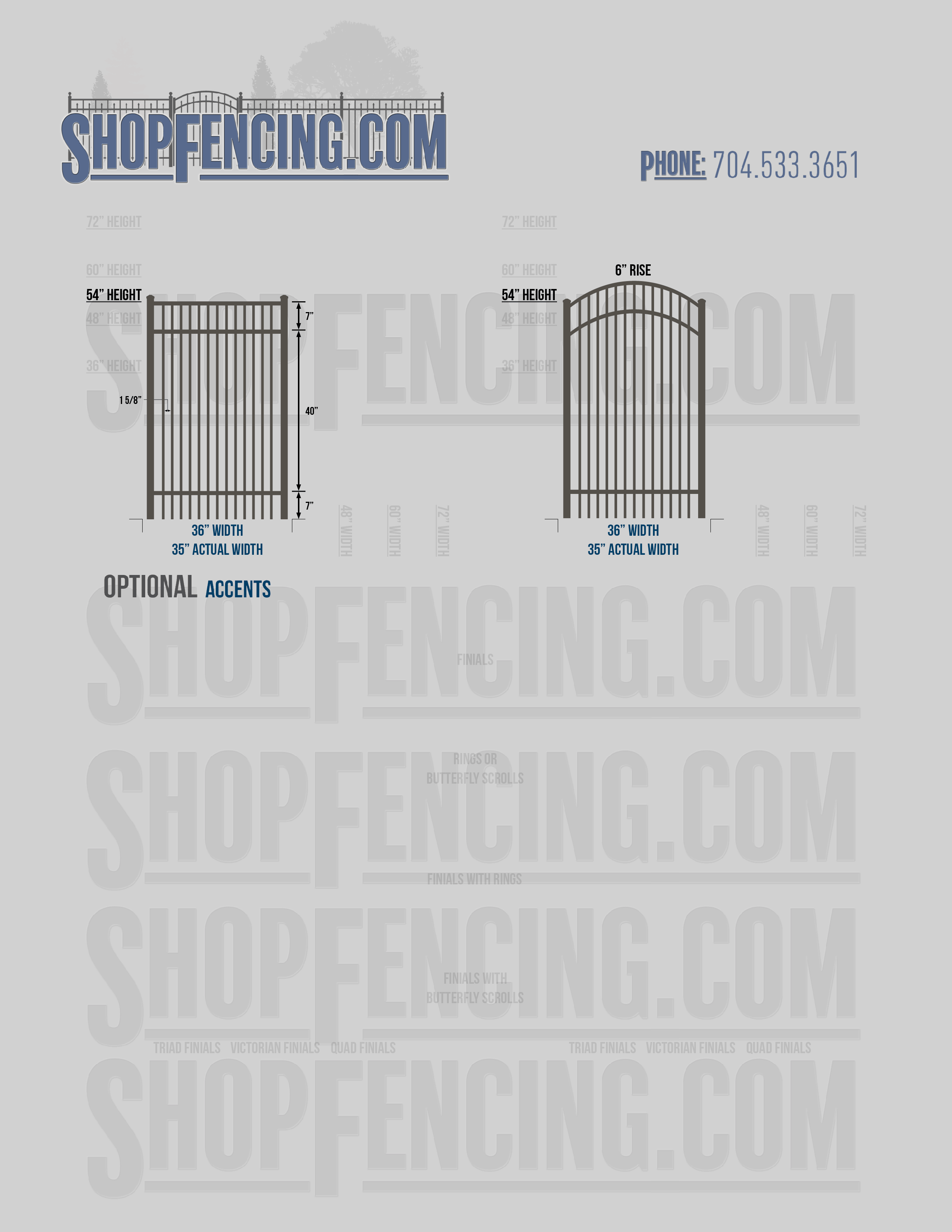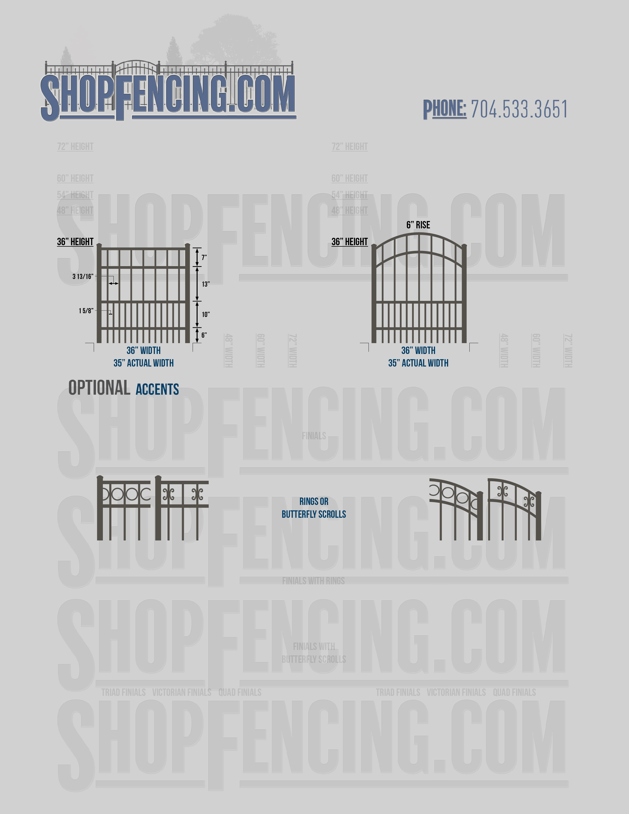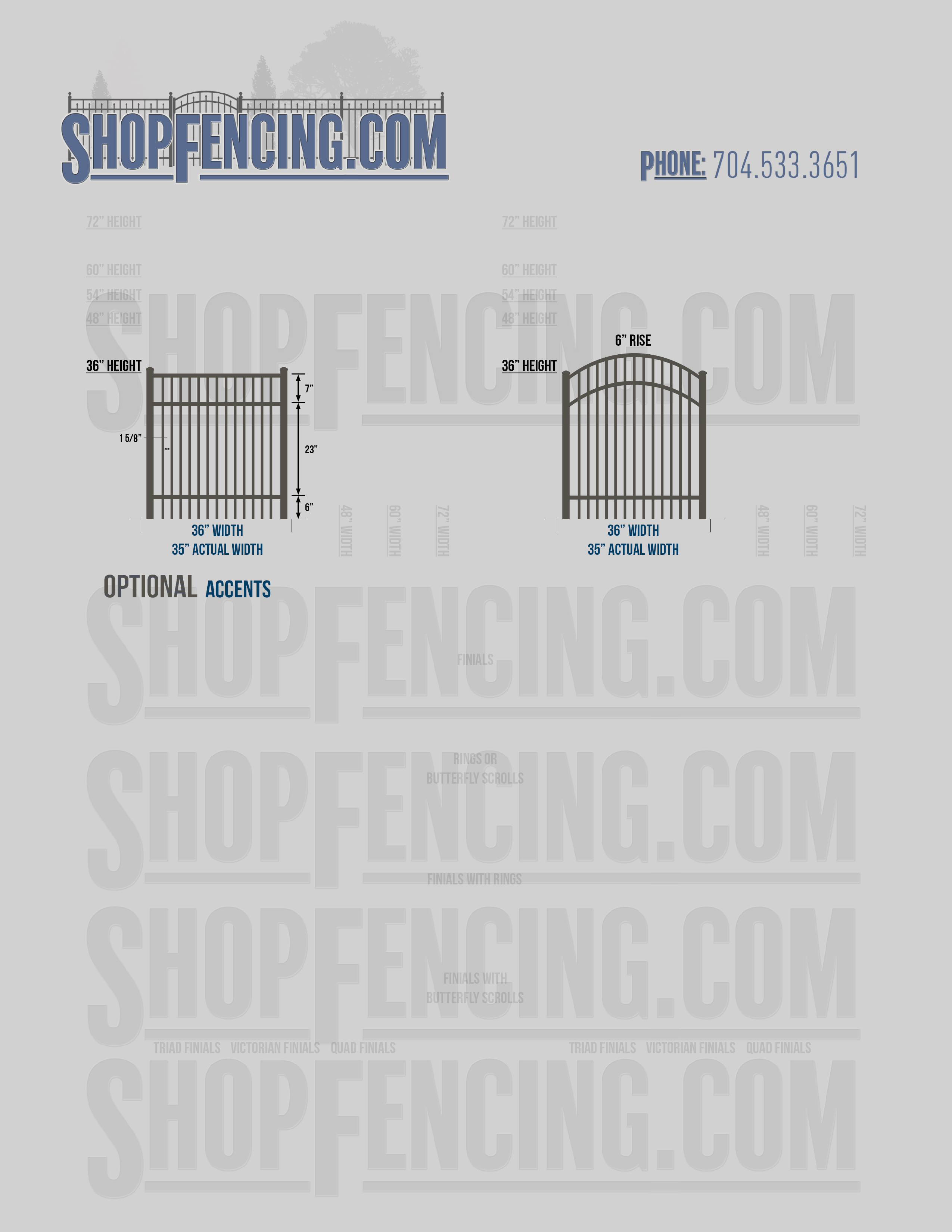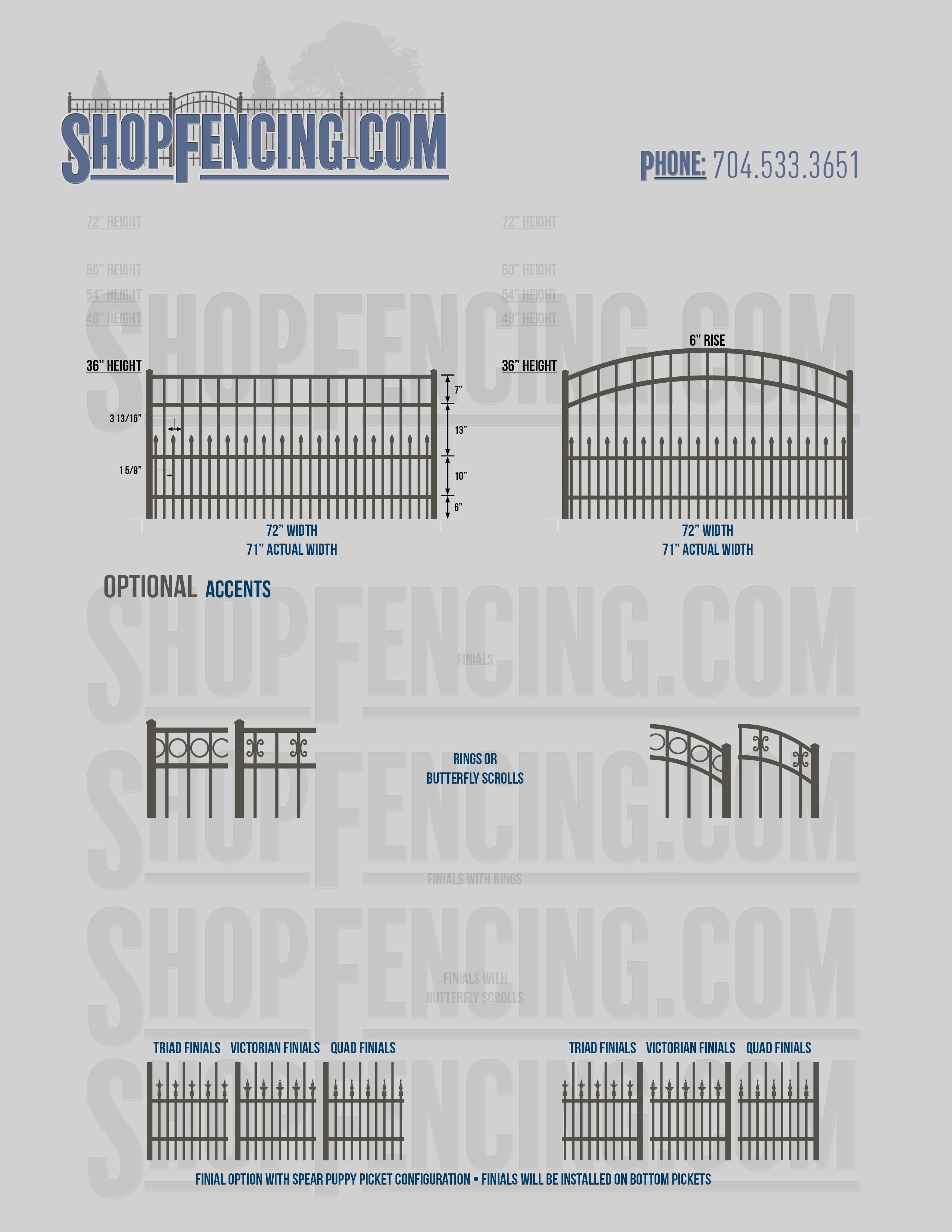 Accent Upgrades: When you add these options, gates will ship with the finials, rings or scrolls installed. PLEASE NOTE: Triad and Victorian finials cannot be installed on double picket fence sections and gates. Rings and scrolls cannot be installed on double picket fence sections and gates.