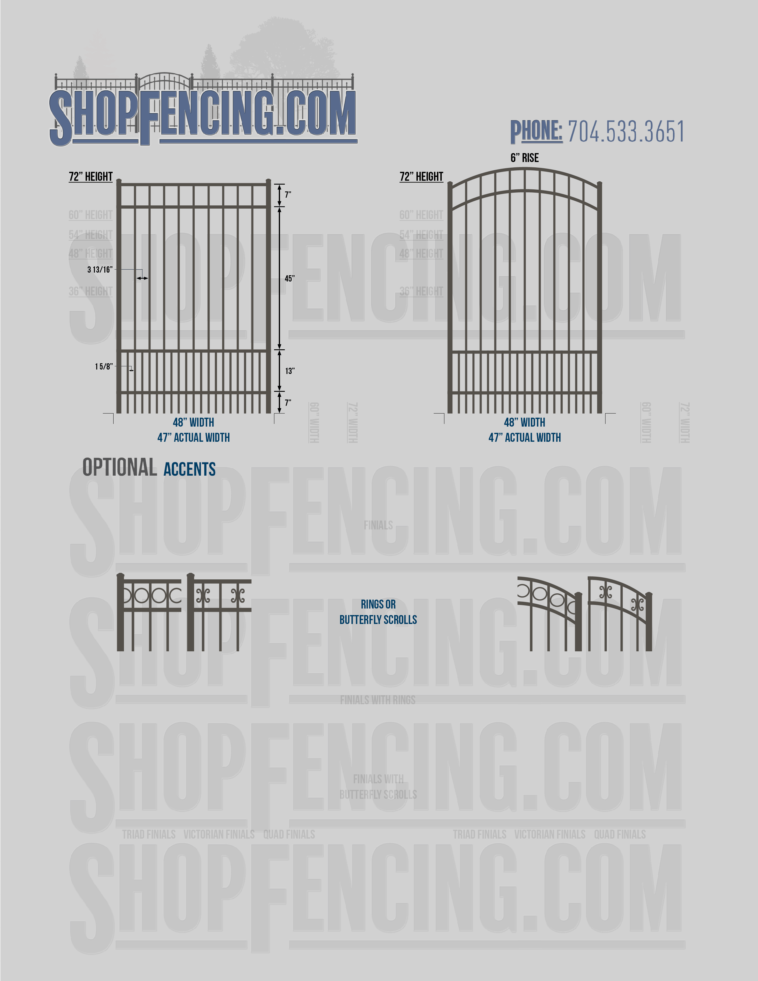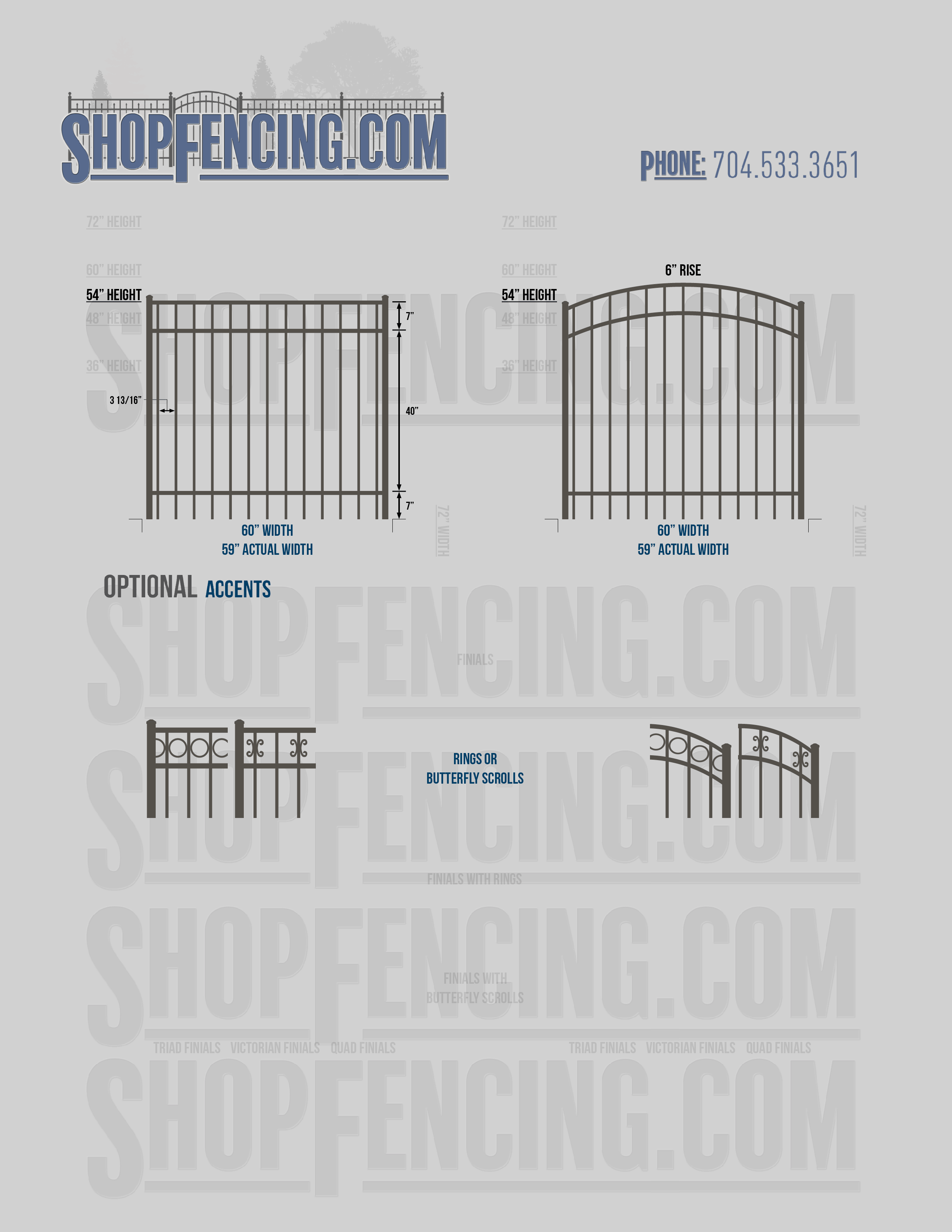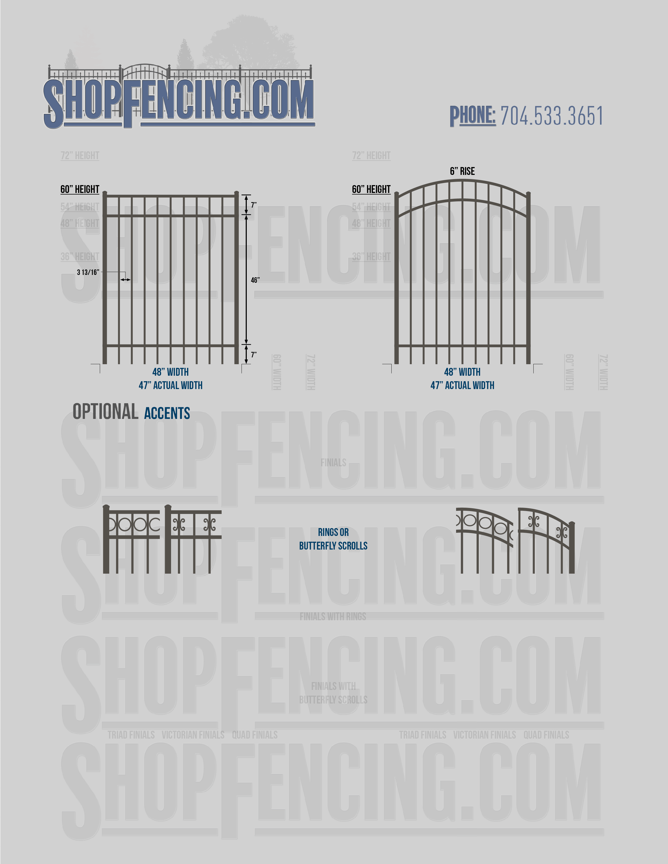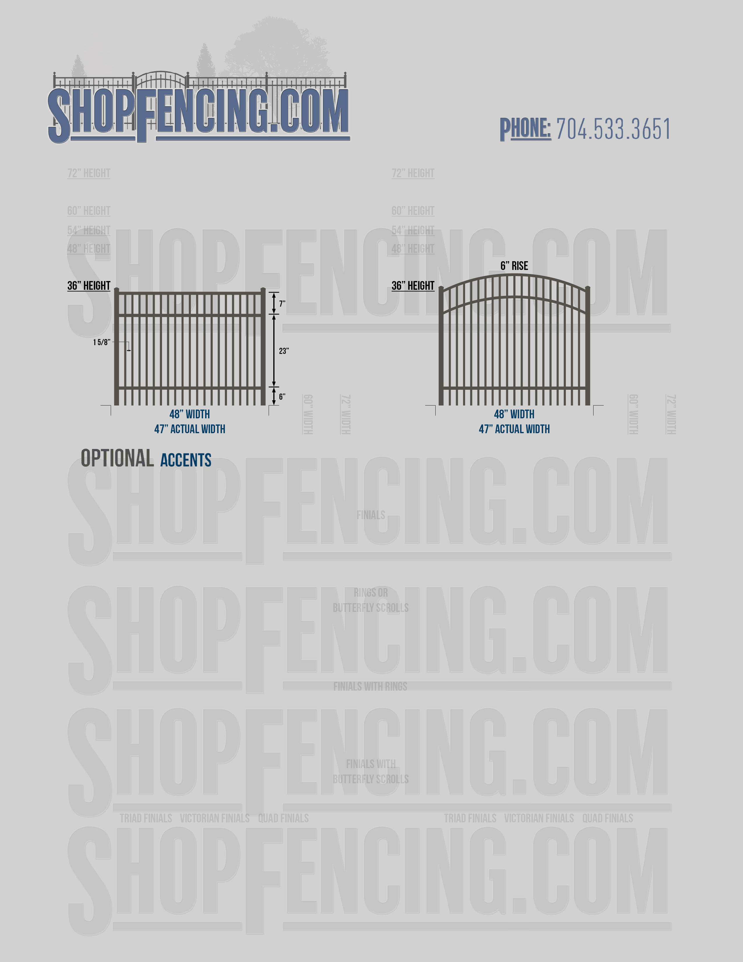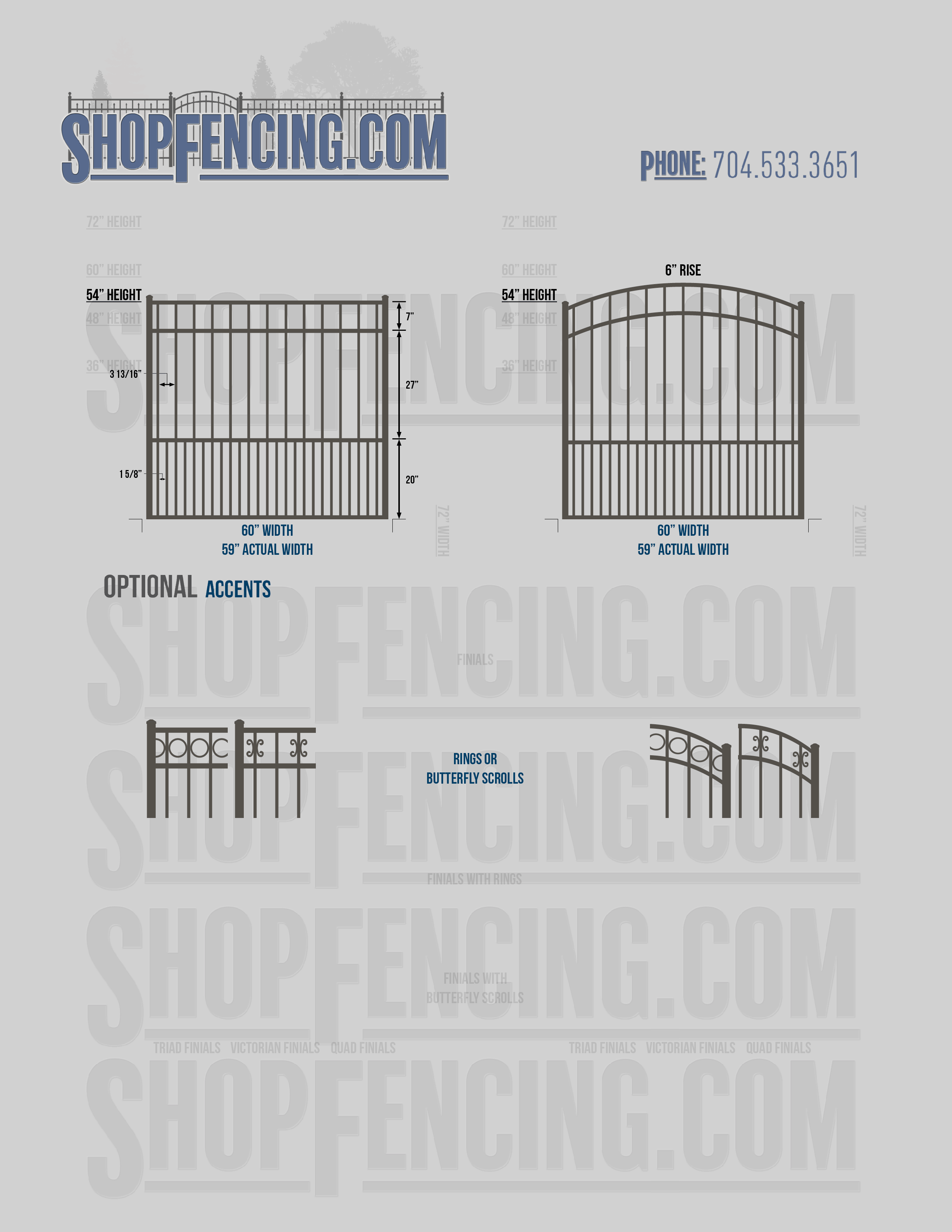 Accent Upgrades: When you add these options, gates will ship with the finials, rings or scrolls installed. PLEASE NOTE: Triad and Victorian finials cannot be installed on double picket fence sections and gates. Rings and scrolls cannot be installed on double picket fence sections and gates.
