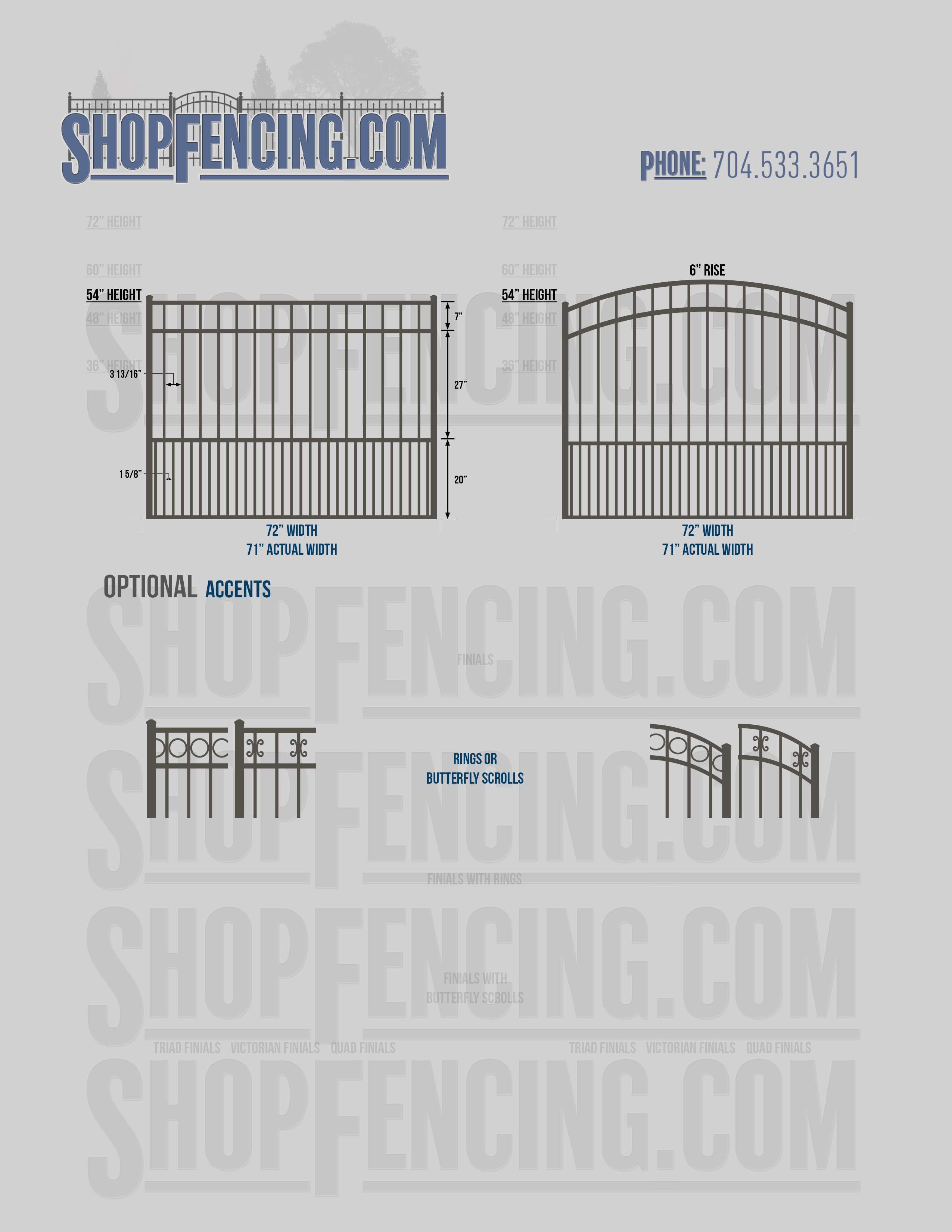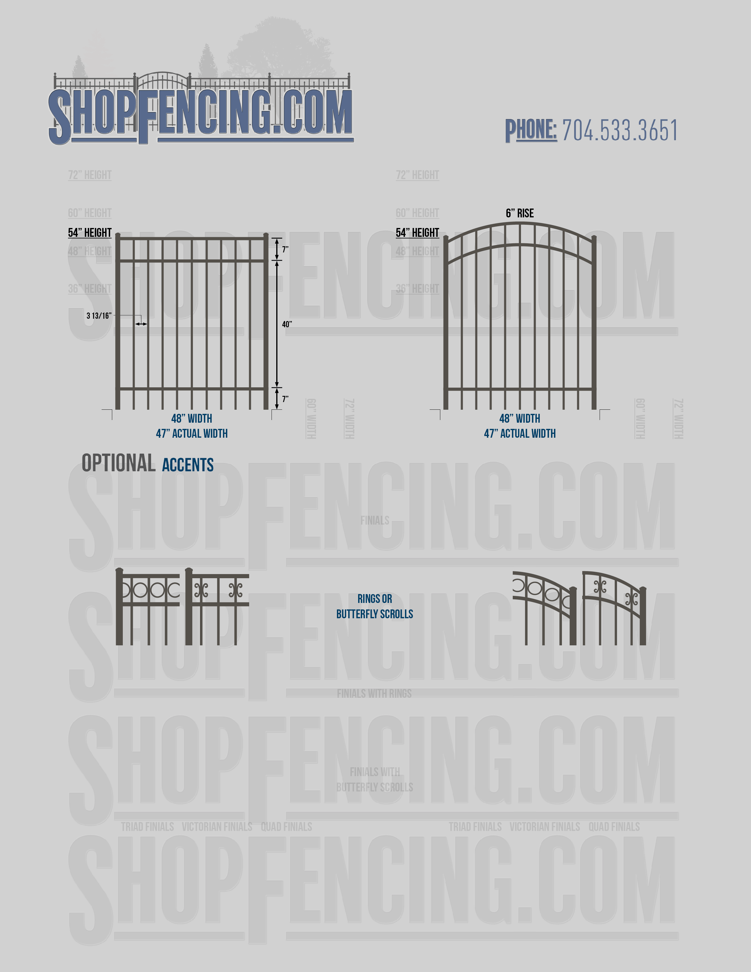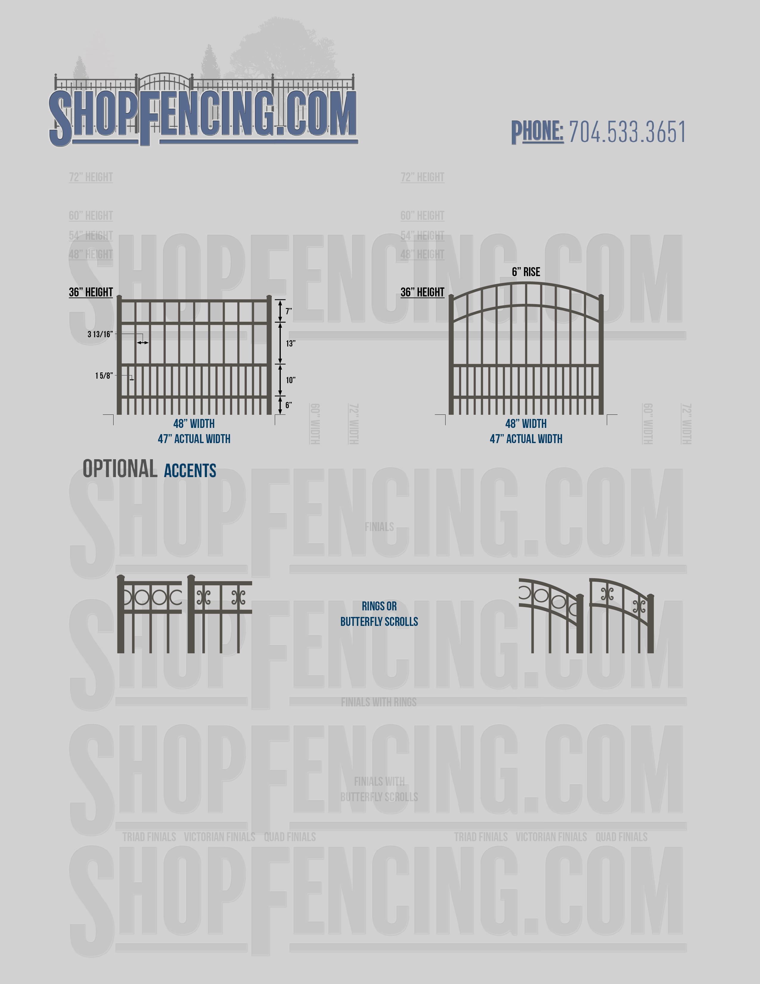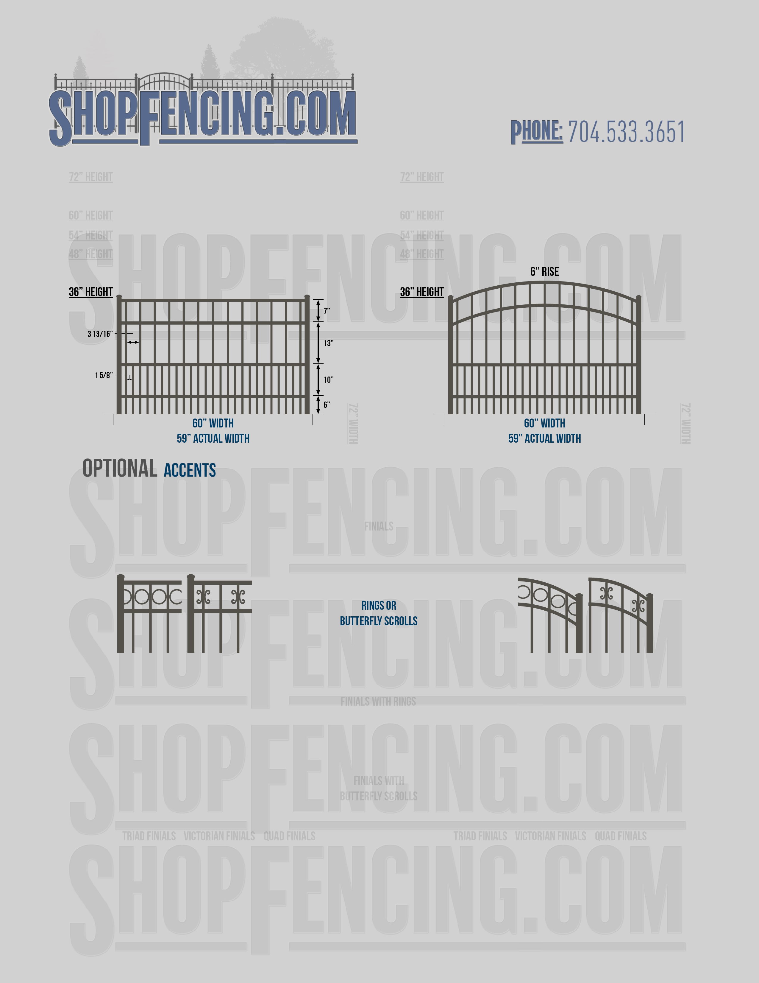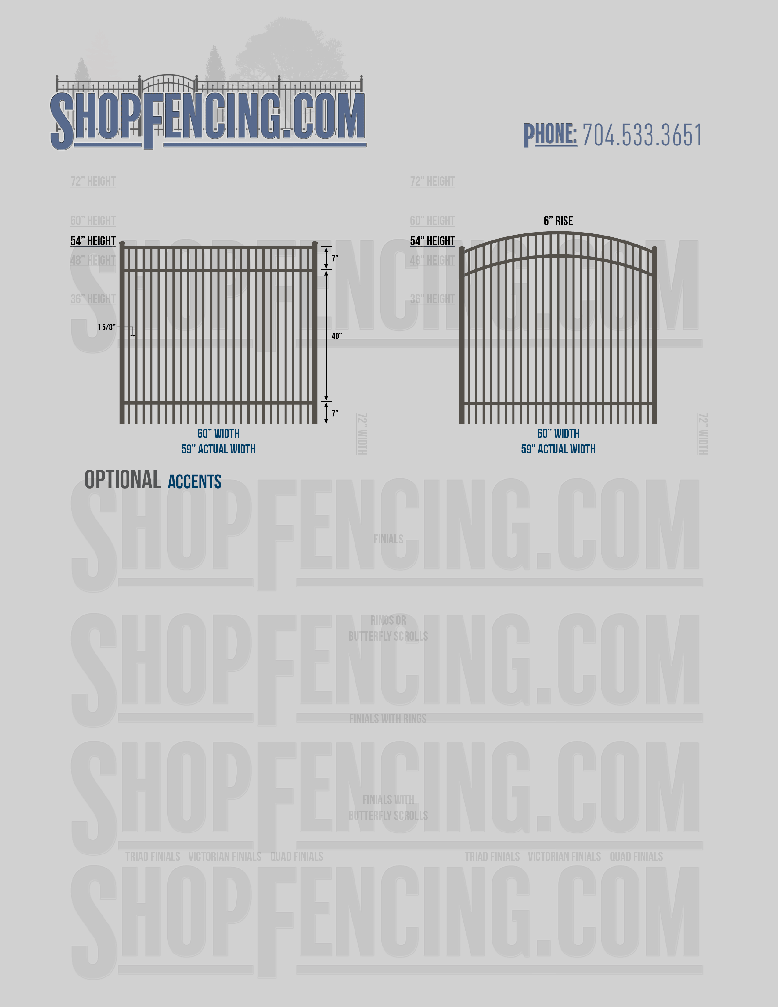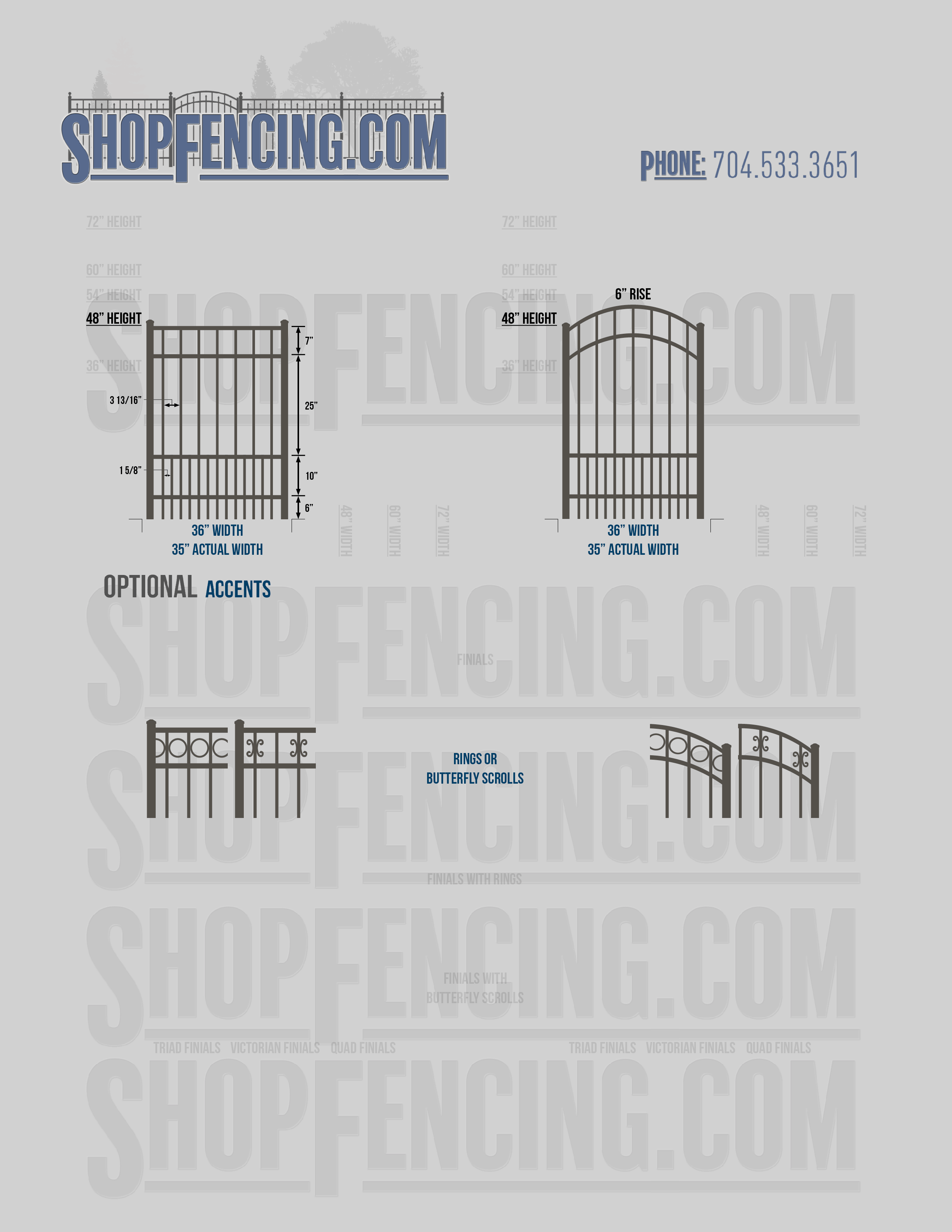 Accent Upgrades: When you add these options, gates will ship with the finials, rings or scrolls installed. PLEASE NOTE: Triad and Victorian finials cannot be installed on double picket fence sections and gates. Rings and scrolls cannot be installed on double picket fence sections and gates.