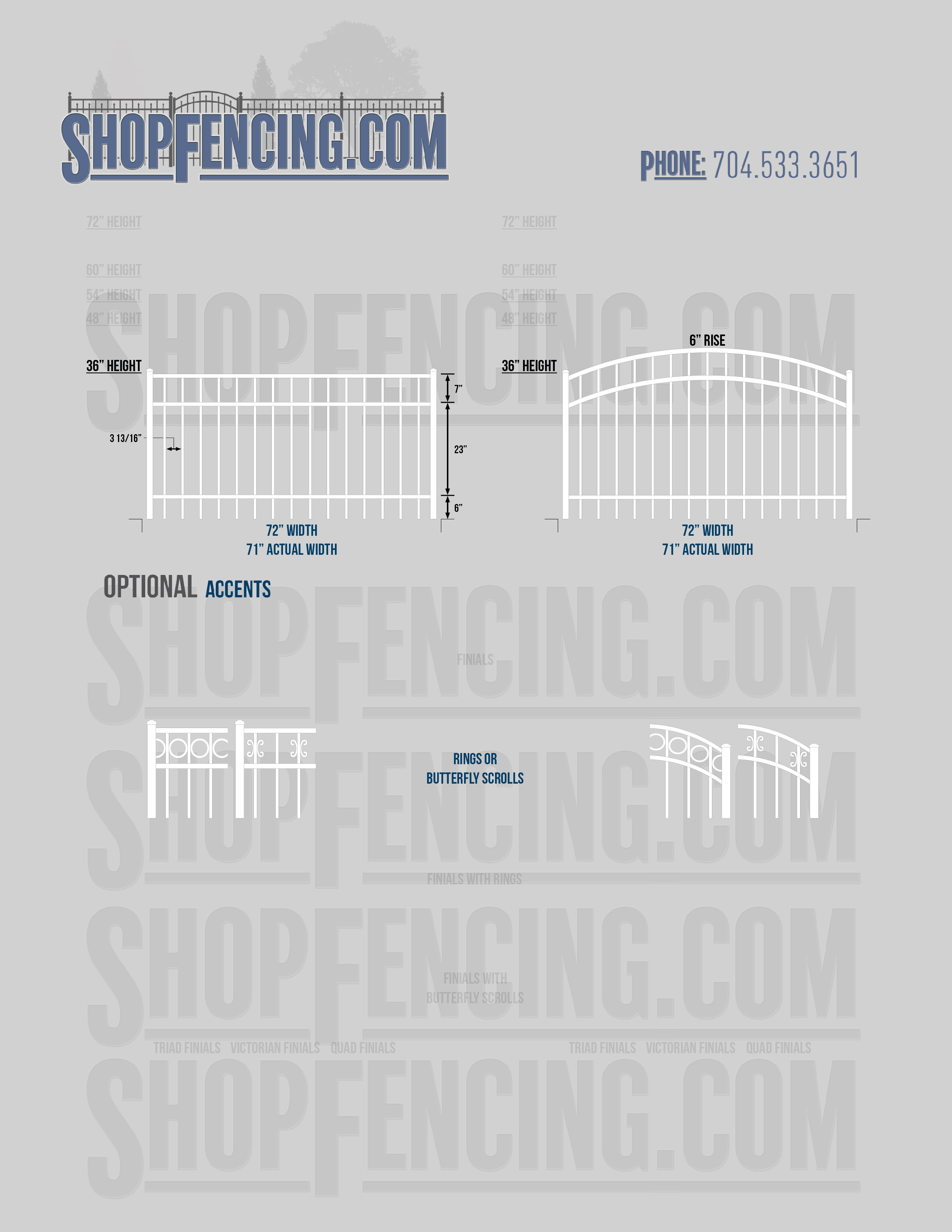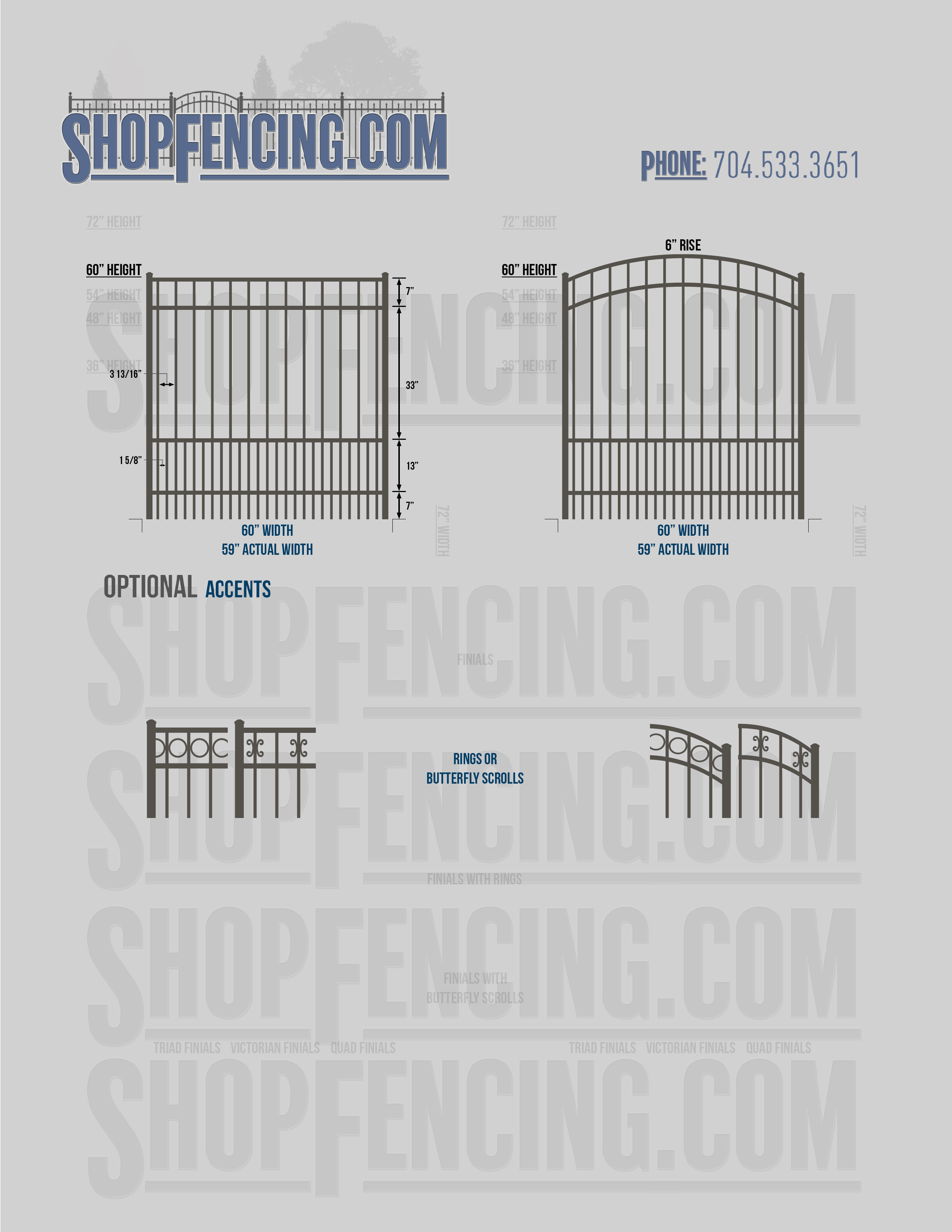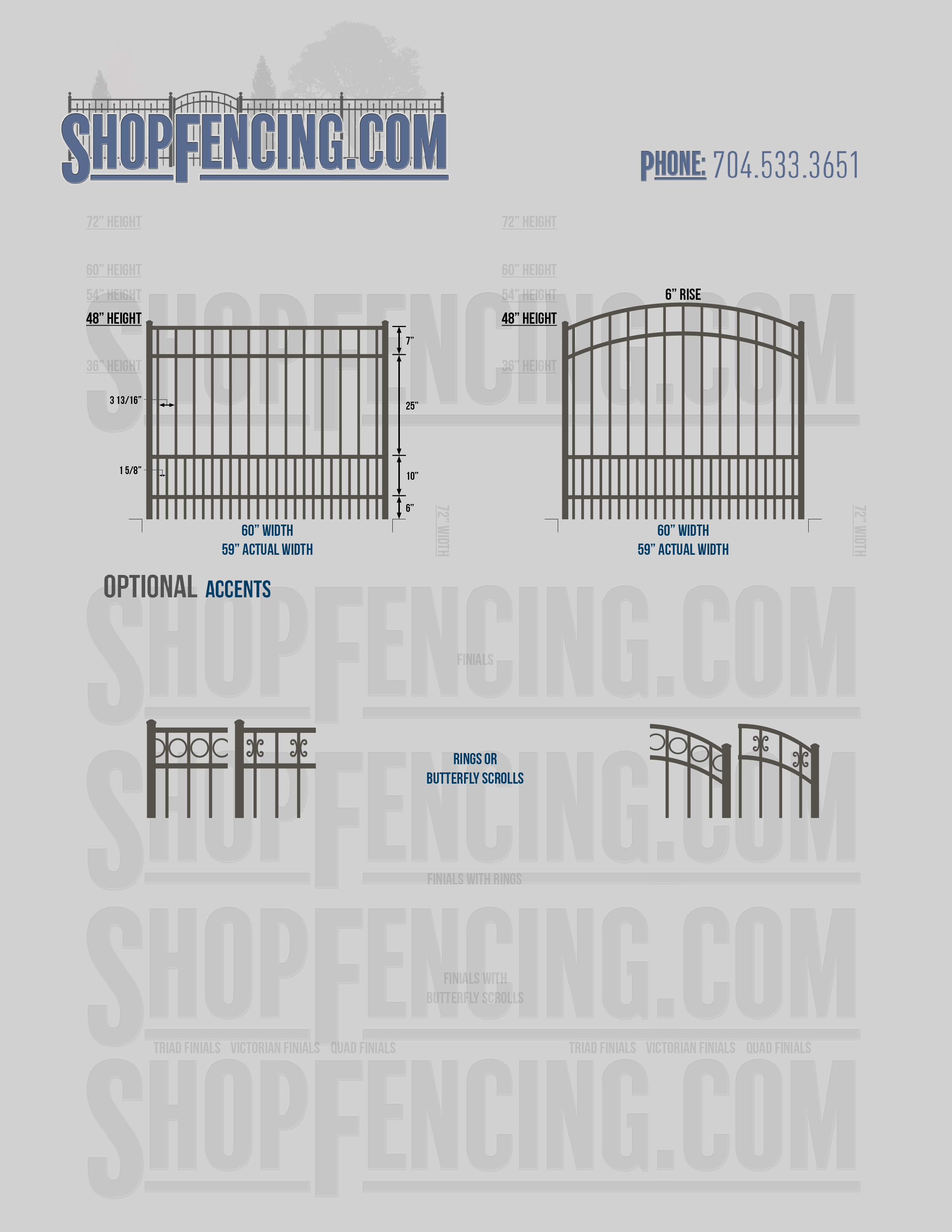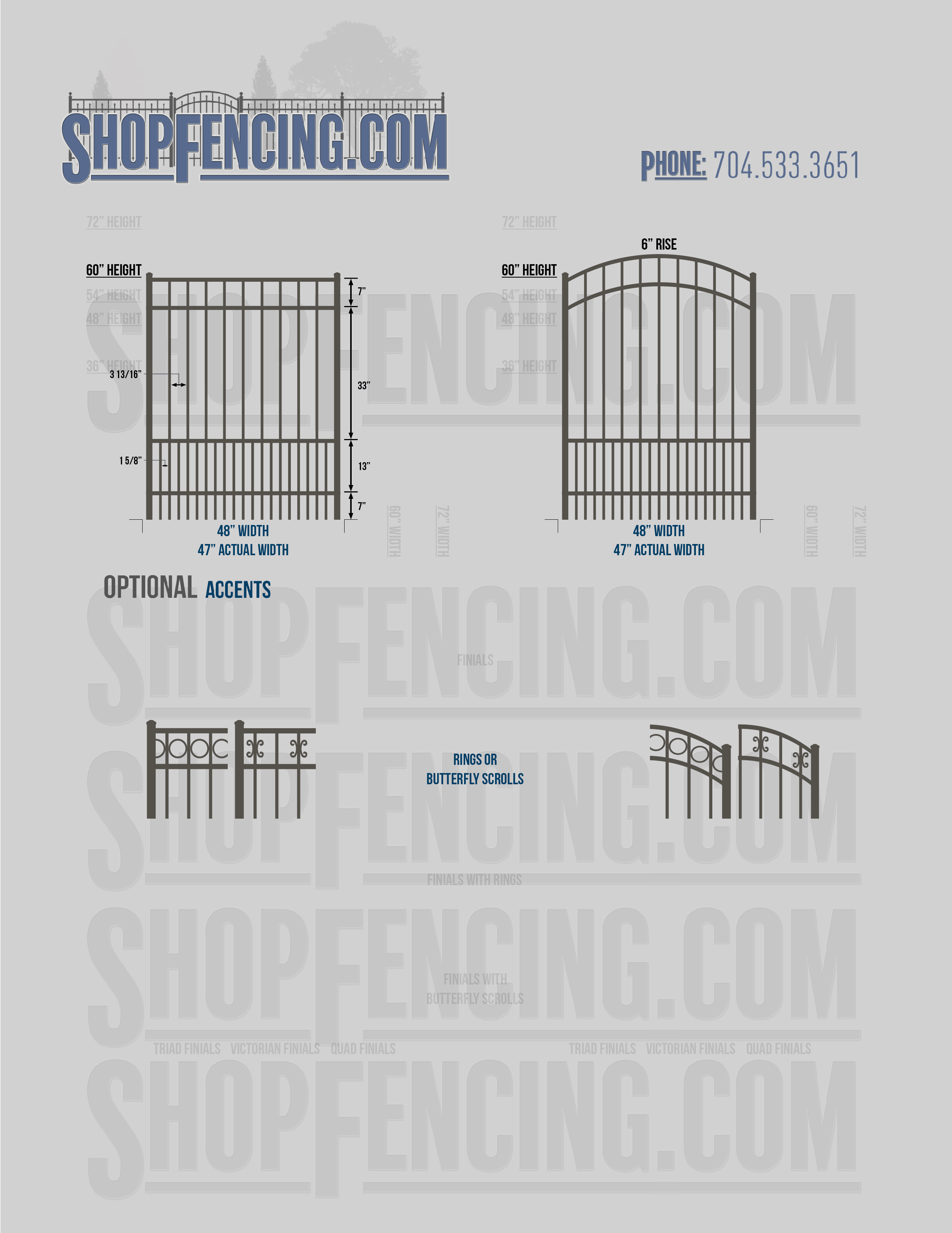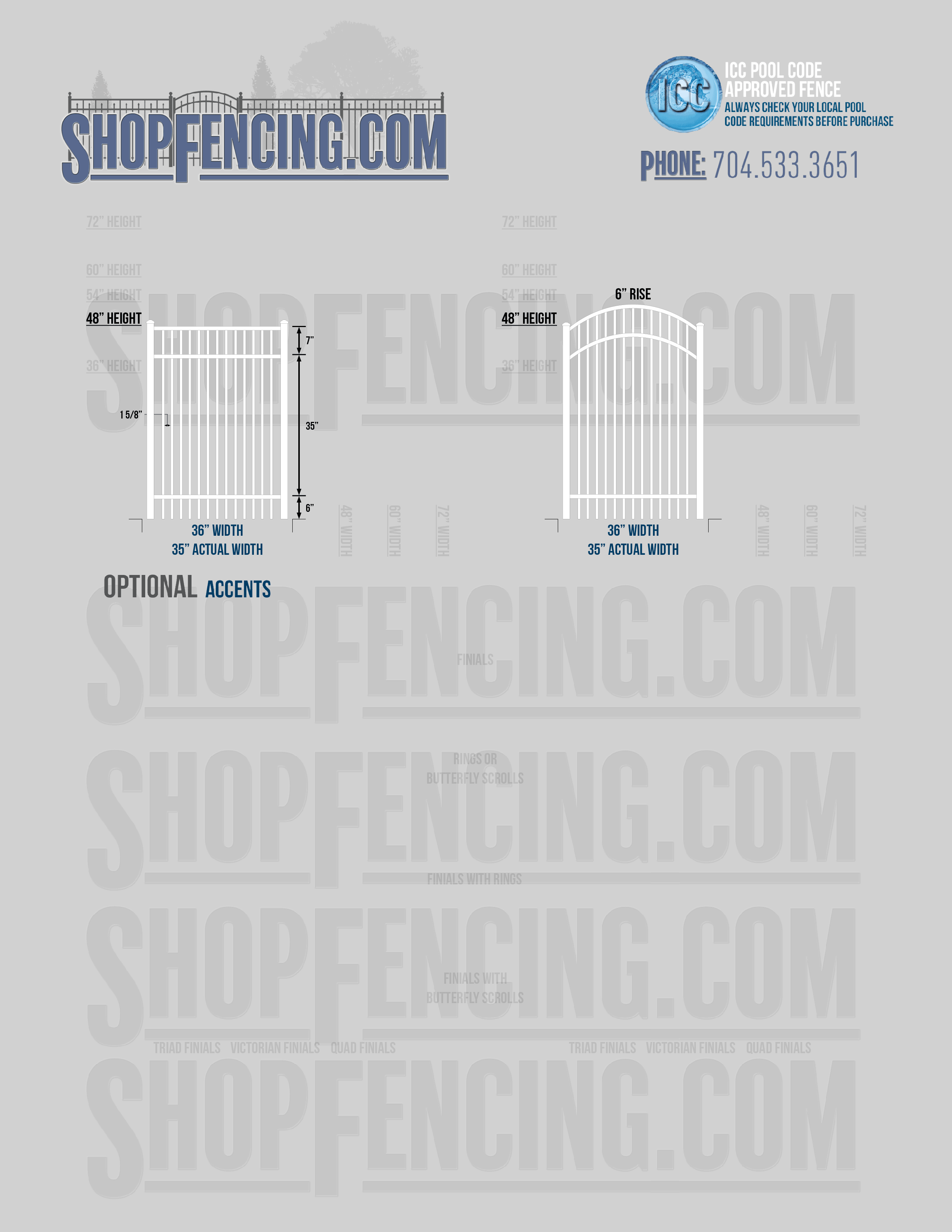 Accent Upgrades: When you add these options, gates will ship with the finials, rings or scrolls installed. PLEASE NOTE: Triad and Victorian finials cannot be installed on double picket fence sections and gates. Rings and scrolls cannot be installed on double picket fence sections and gates.
