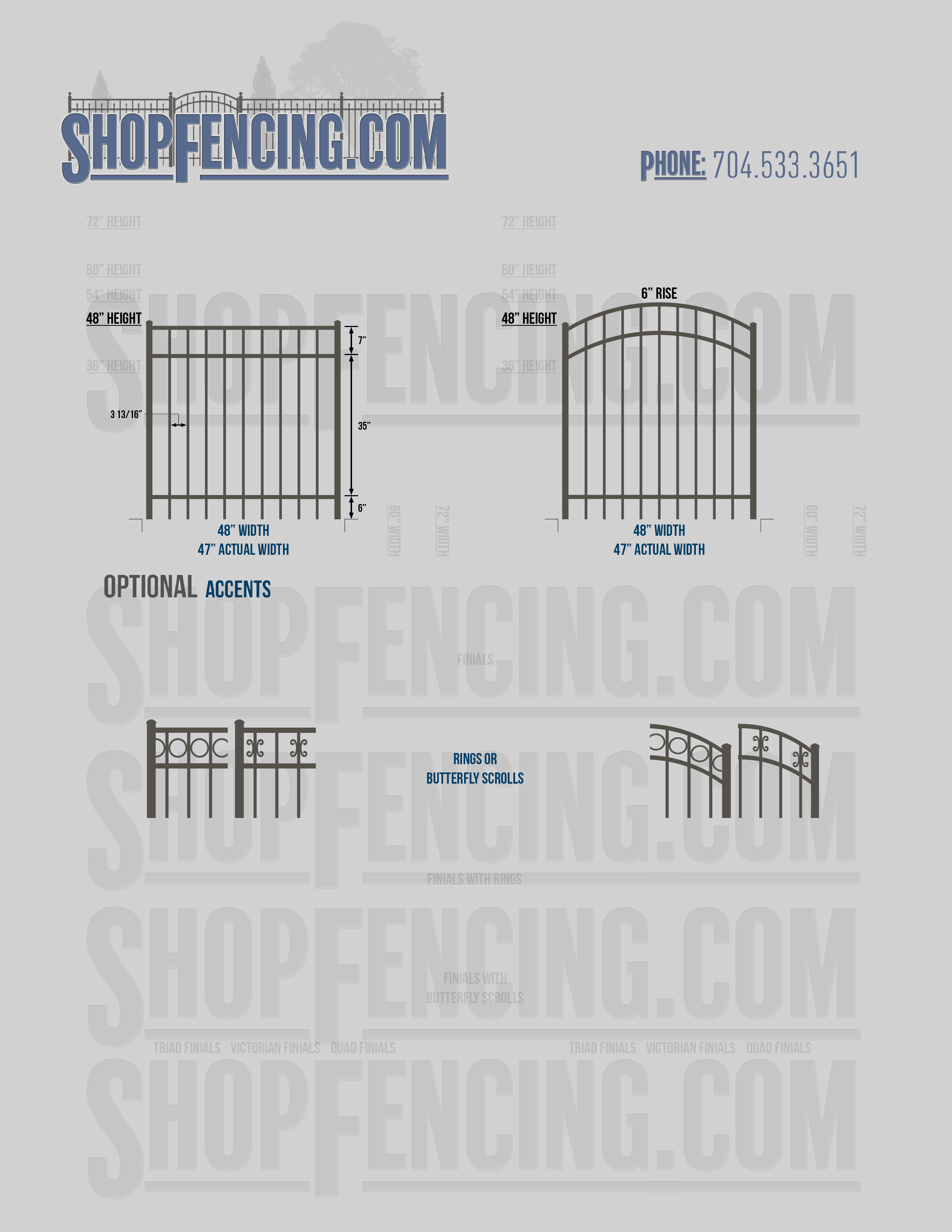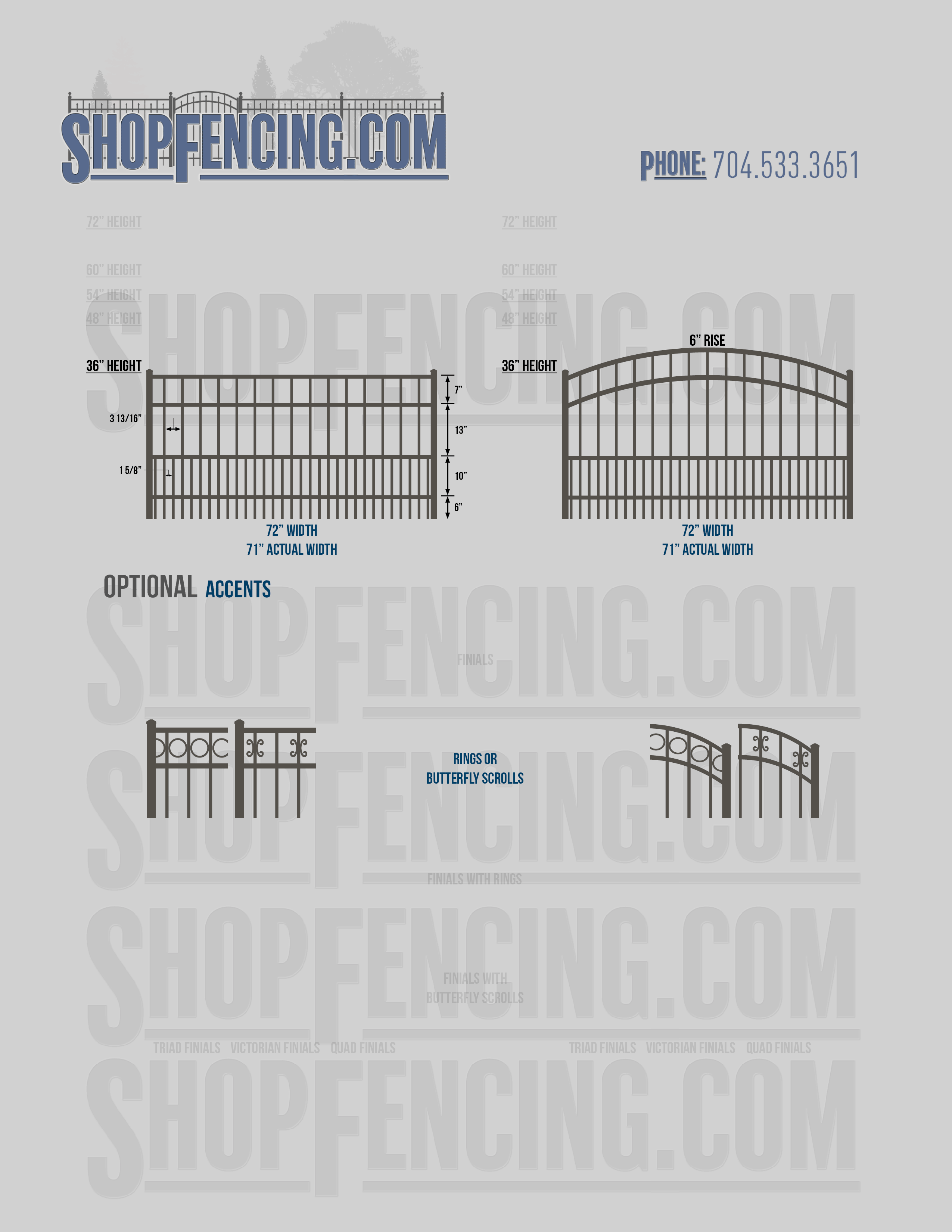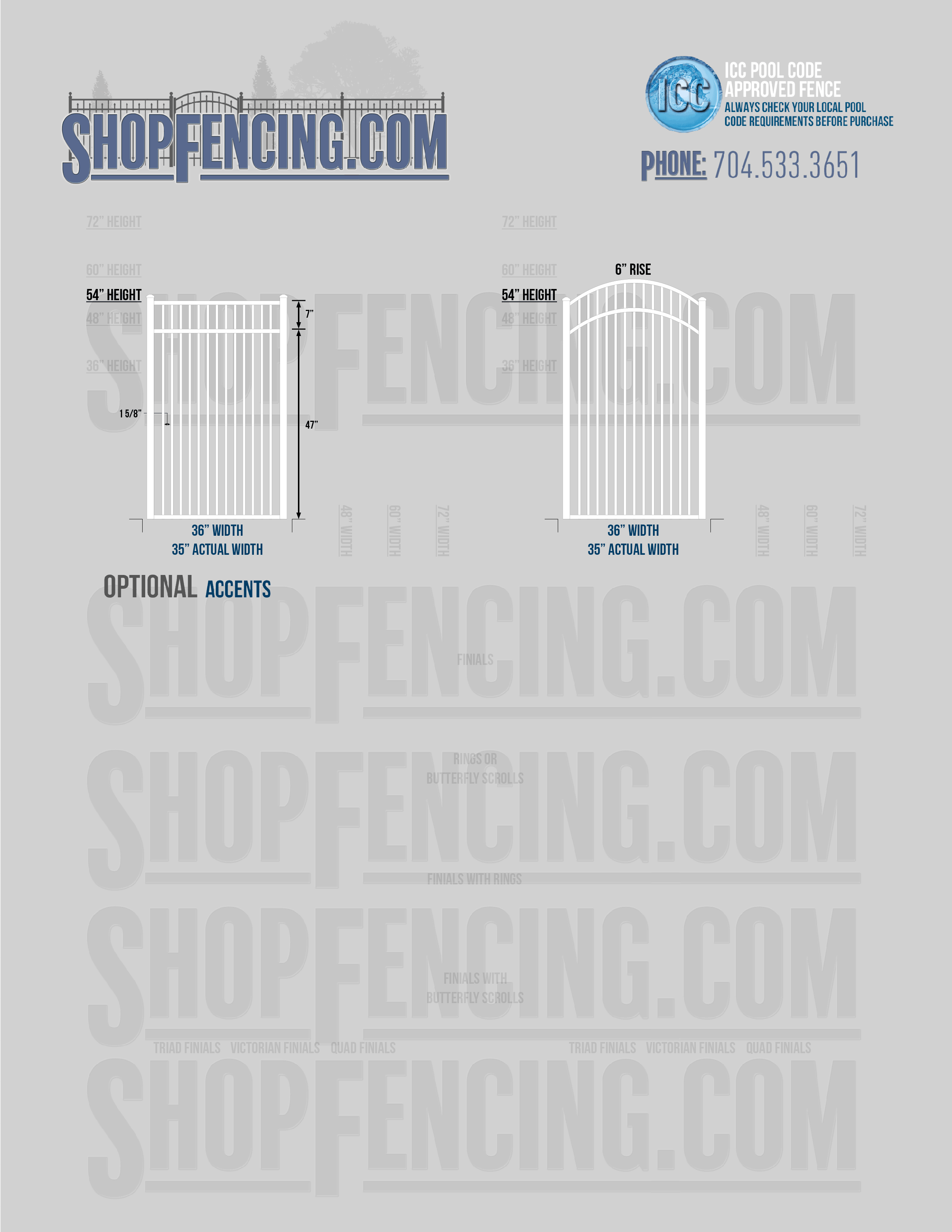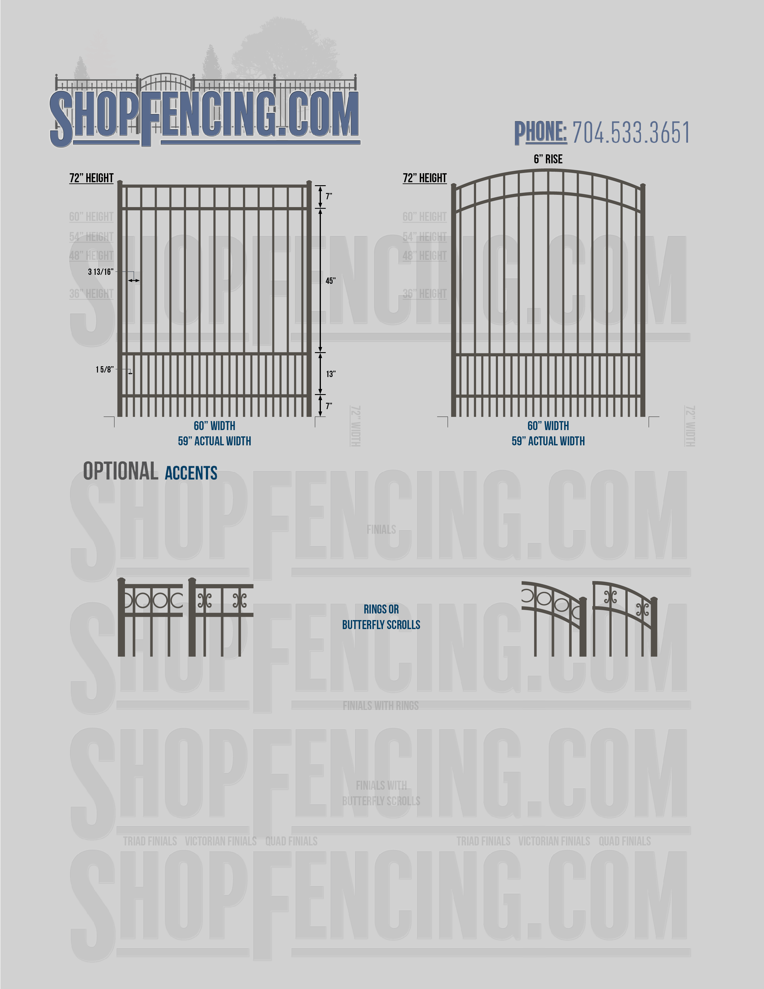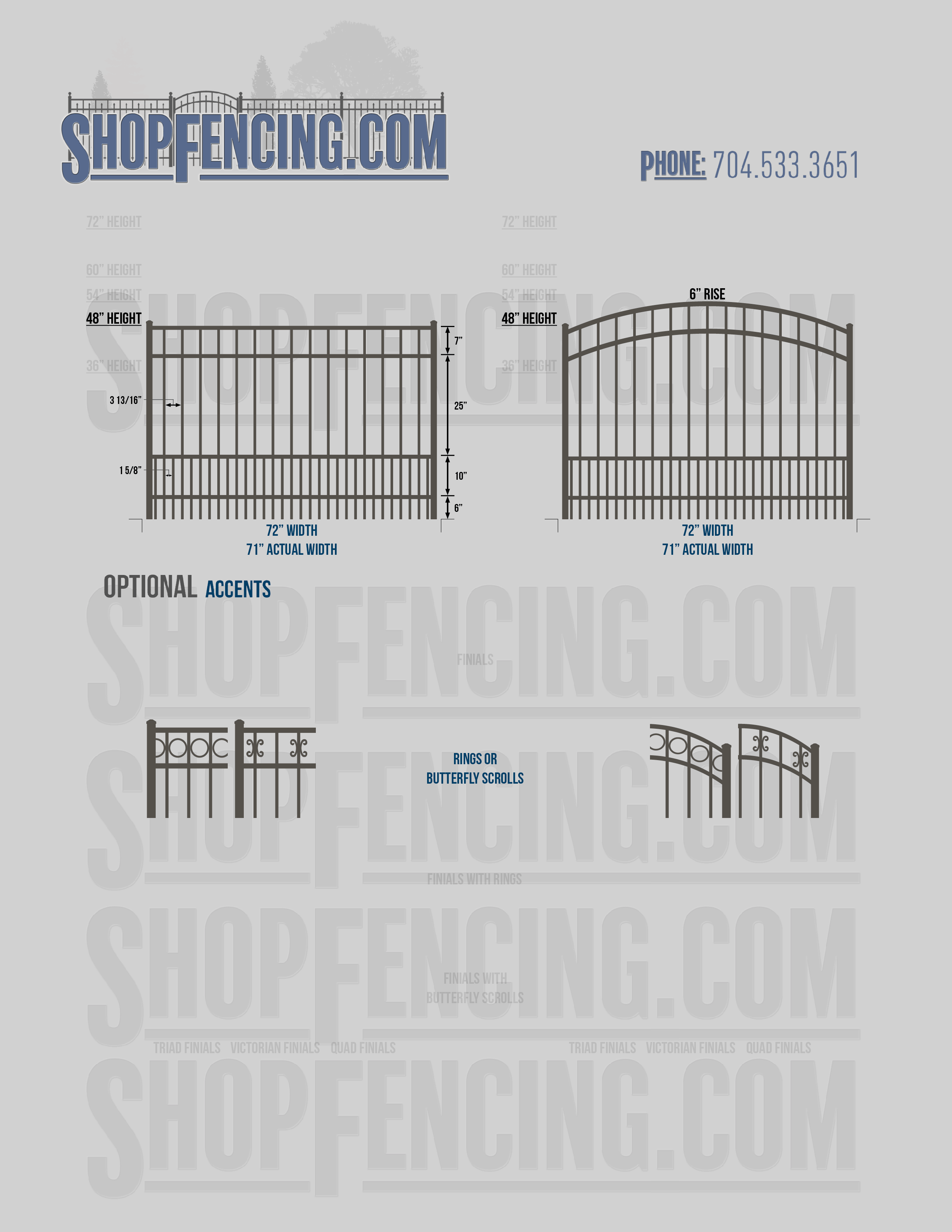 Accent Upgrades: When you add these options, gates will ship with the finials, rings or scrolls installed. PLEASE NOTE: Triad and Victorian finials cannot be installed on double picket fence sections and gates. Rings and scrolls cannot be installed on double picket fence sections and gates.