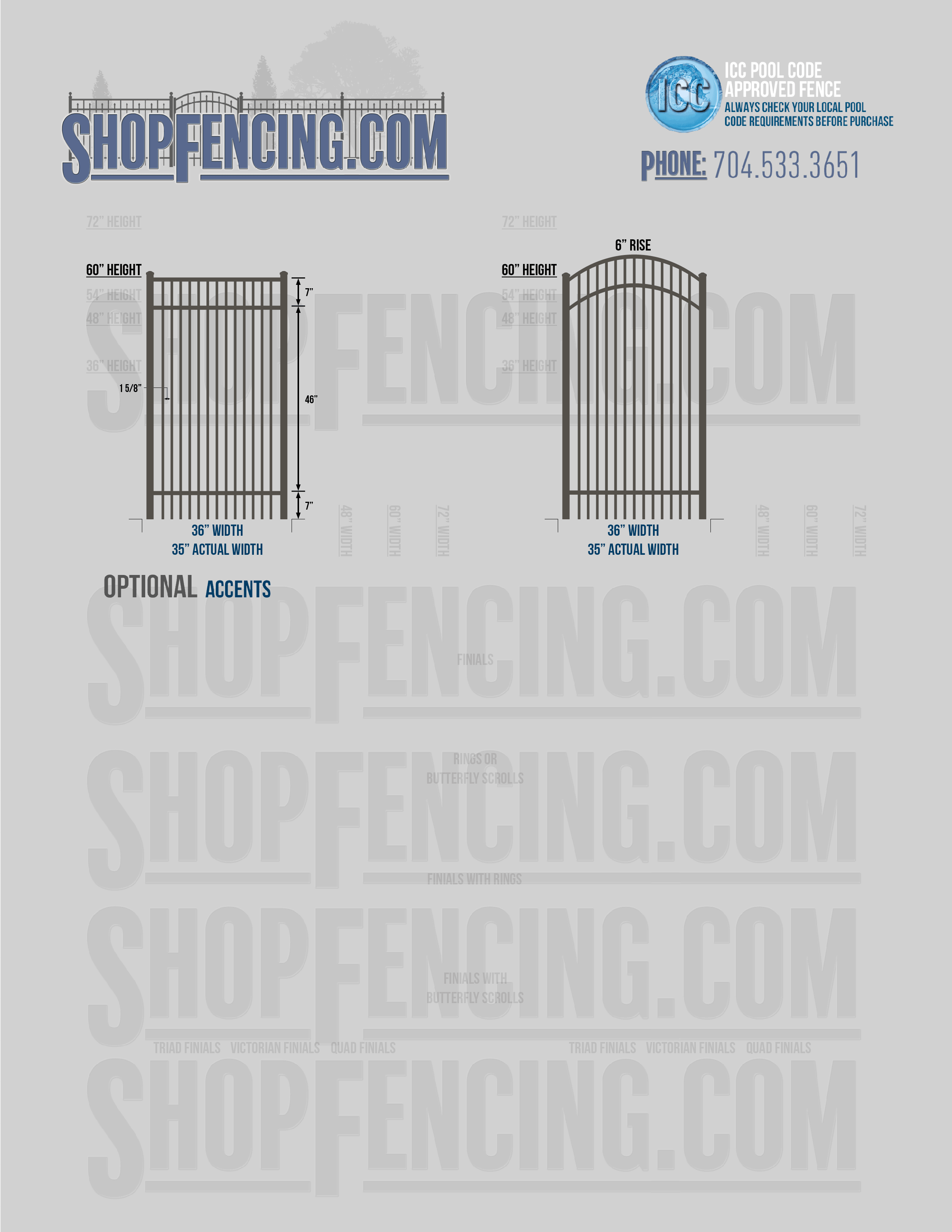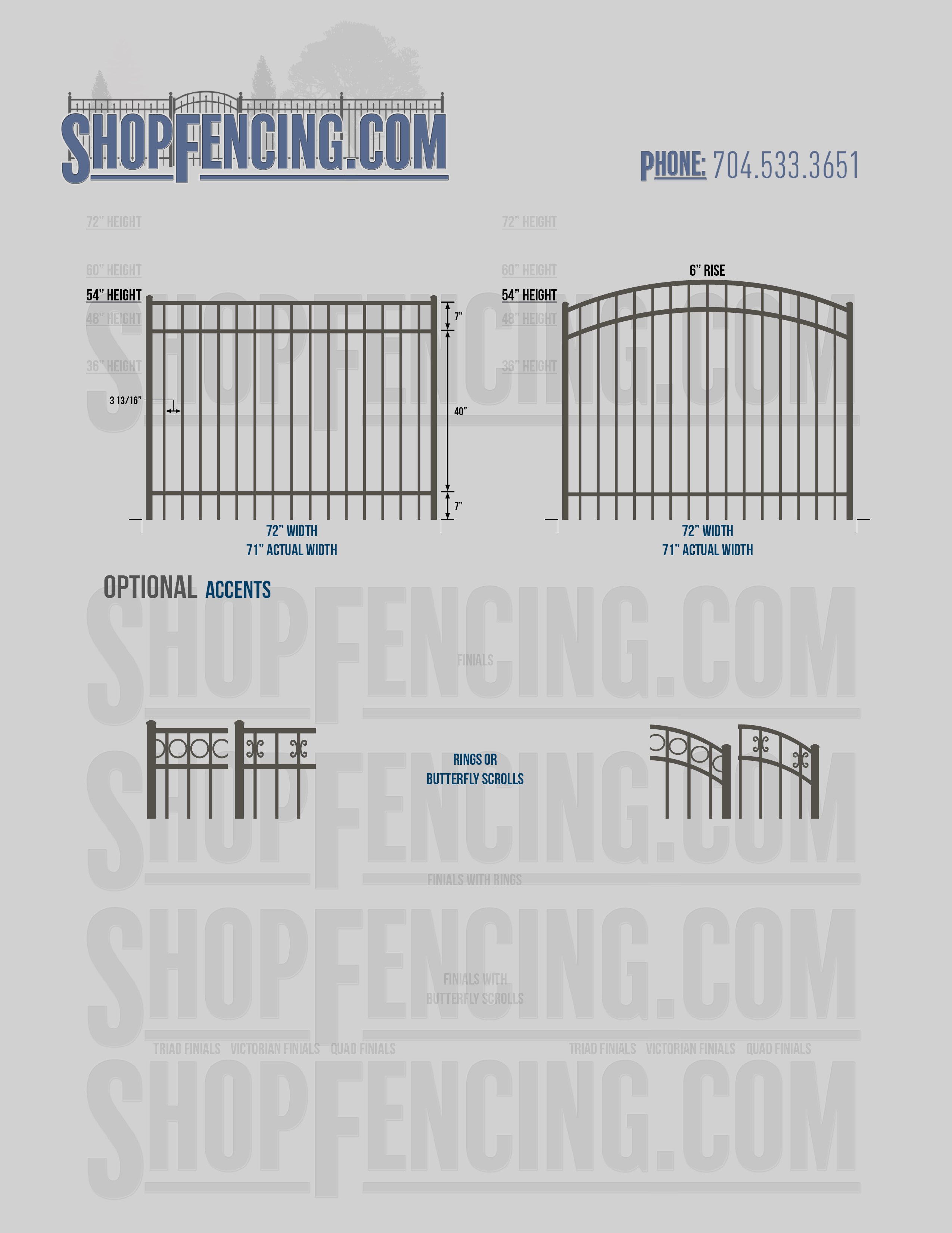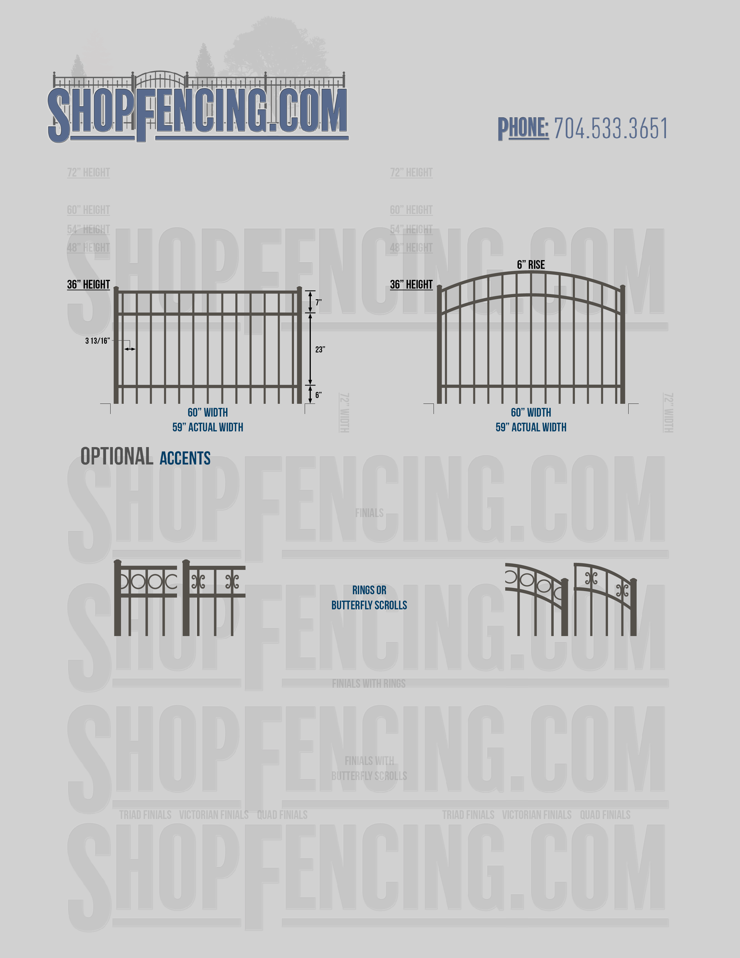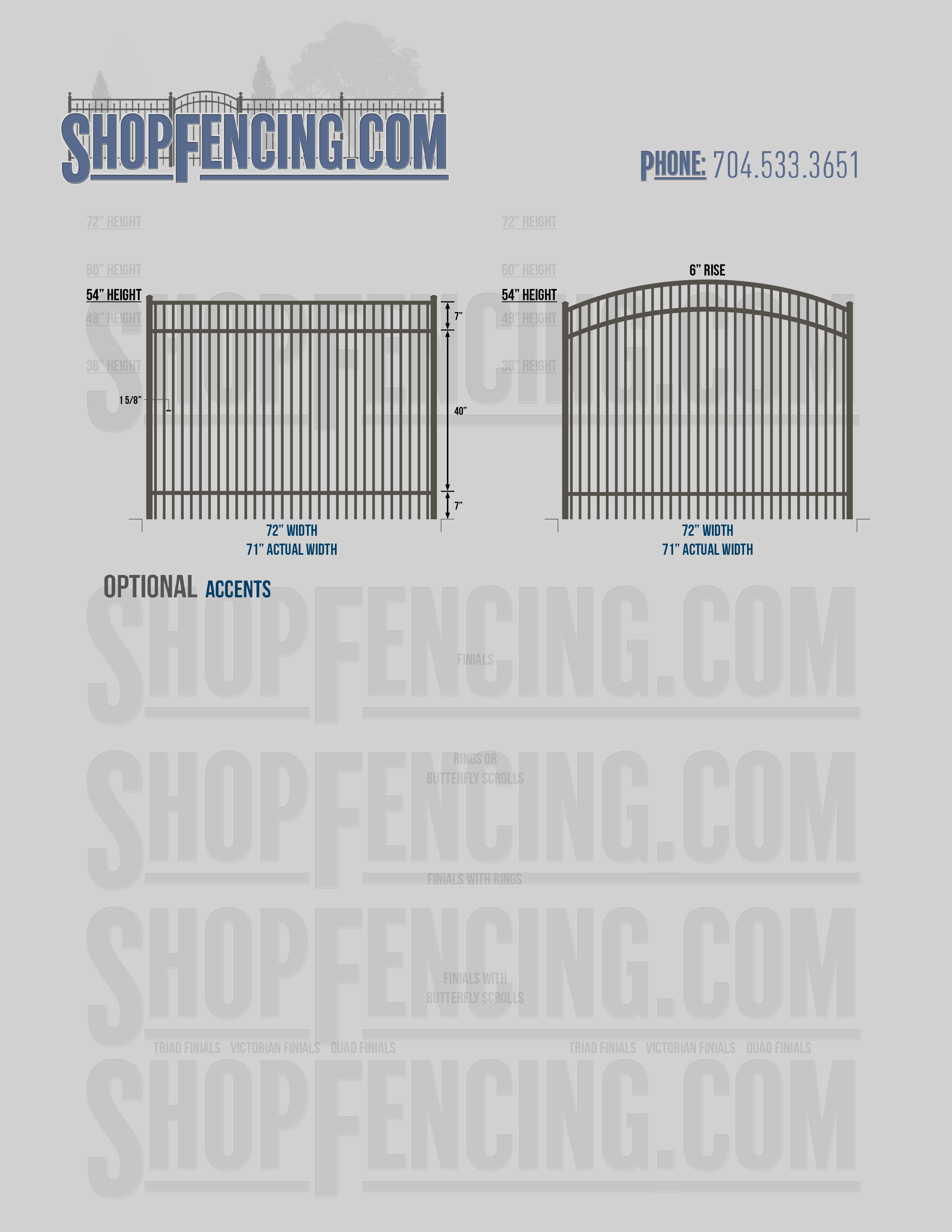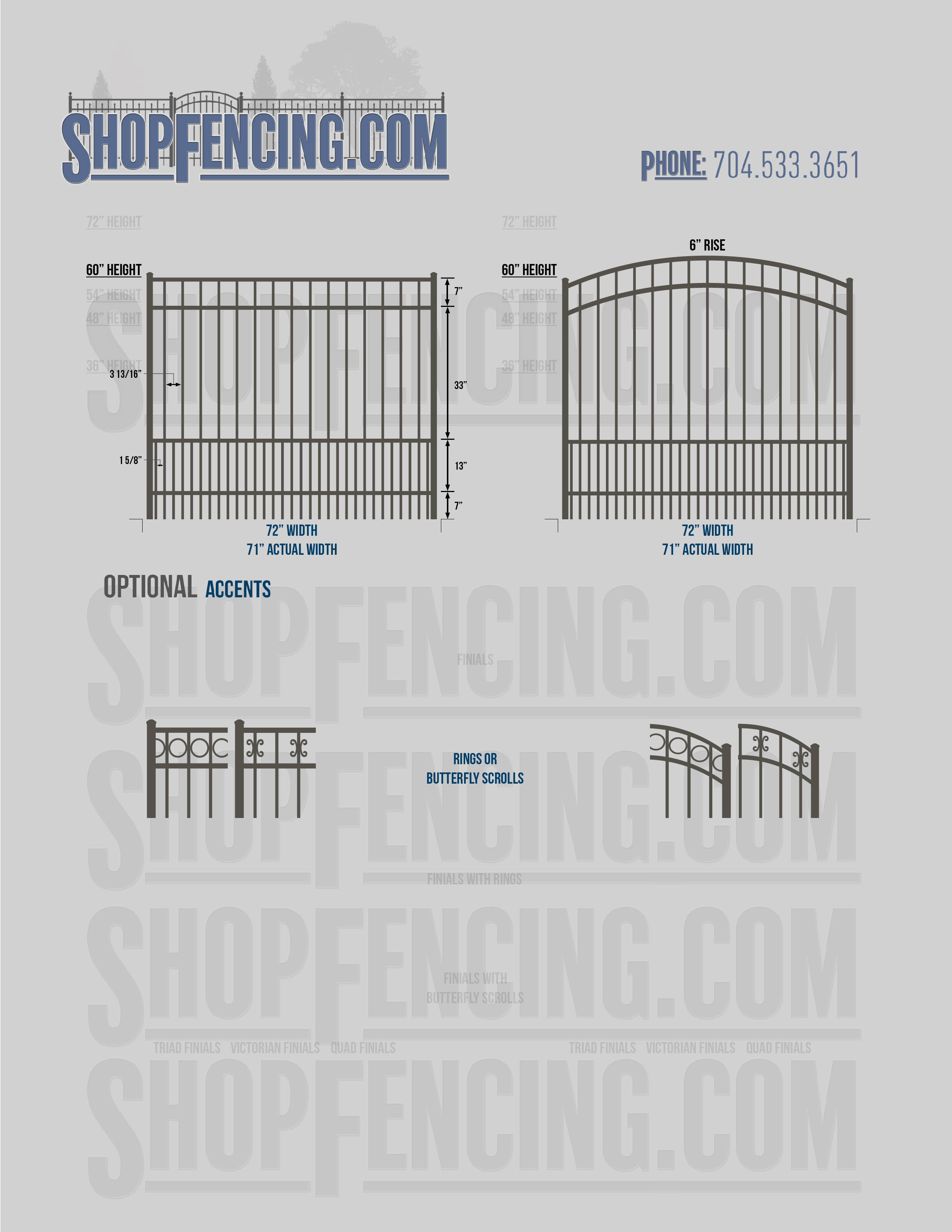 Accent Upgrades: When you add these options, gates will ship with the finials, rings or scrolls installed. PLEASE NOTE: Triad and Victorian finials cannot be installed on double picket fence sections and gates. Rings and scrolls cannot be installed on double picket fence sections and gates.