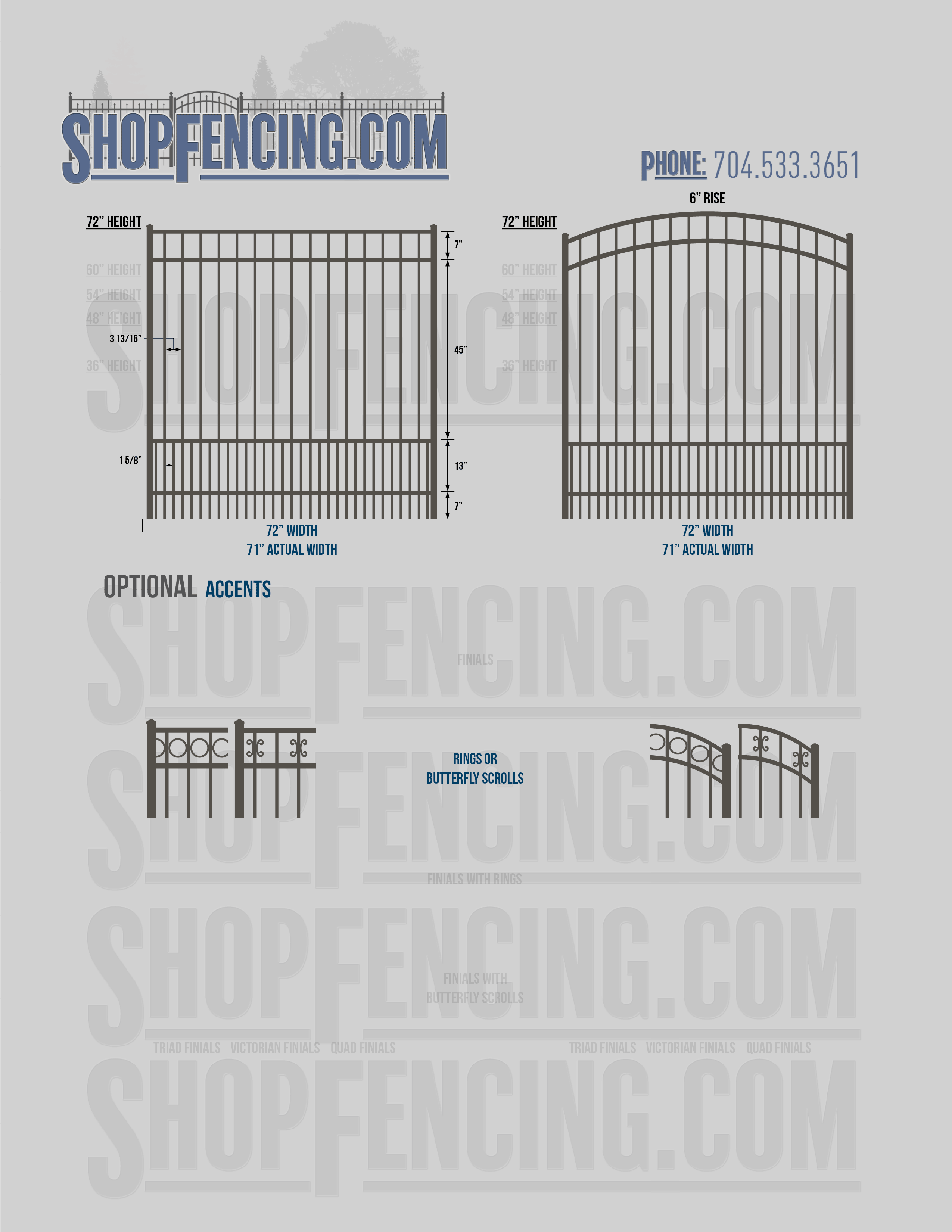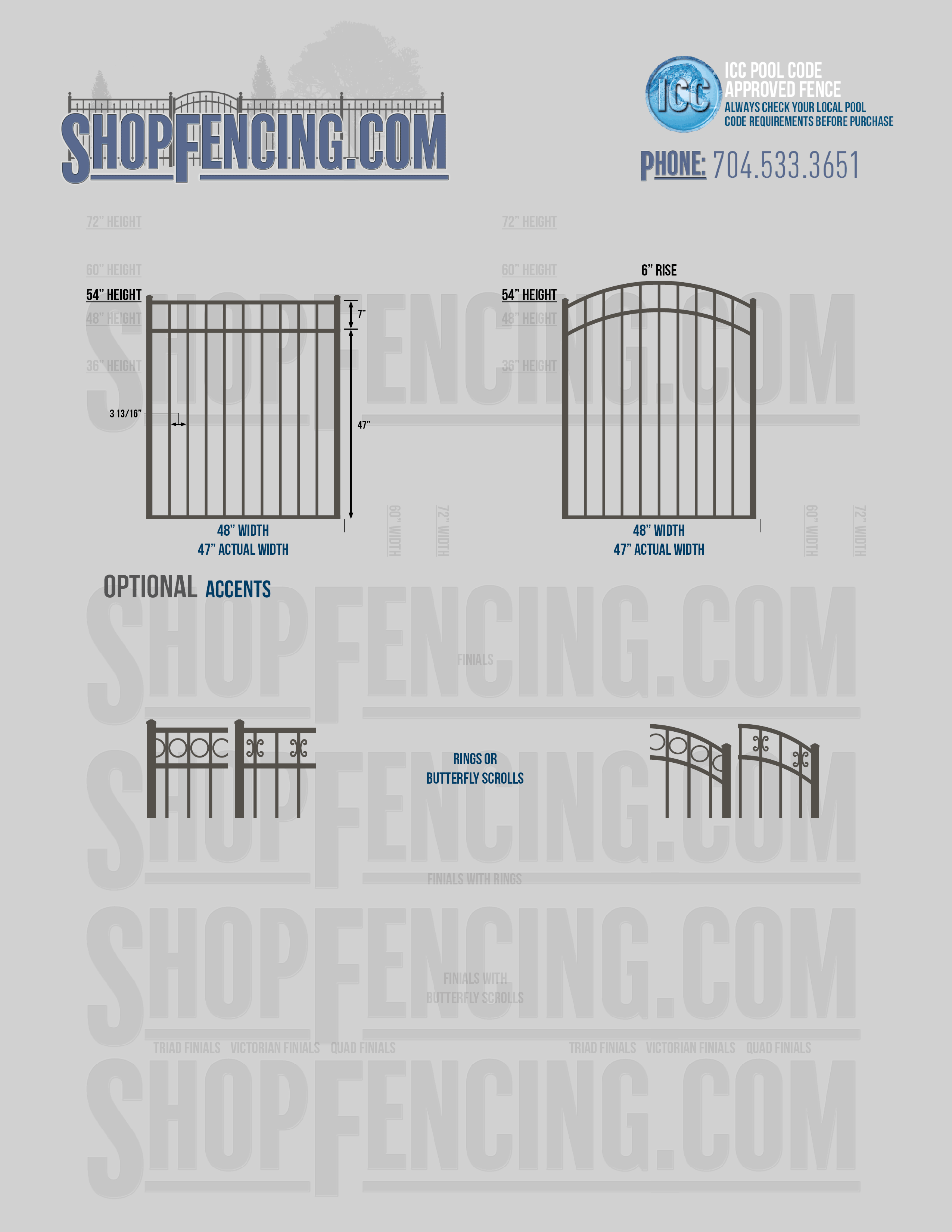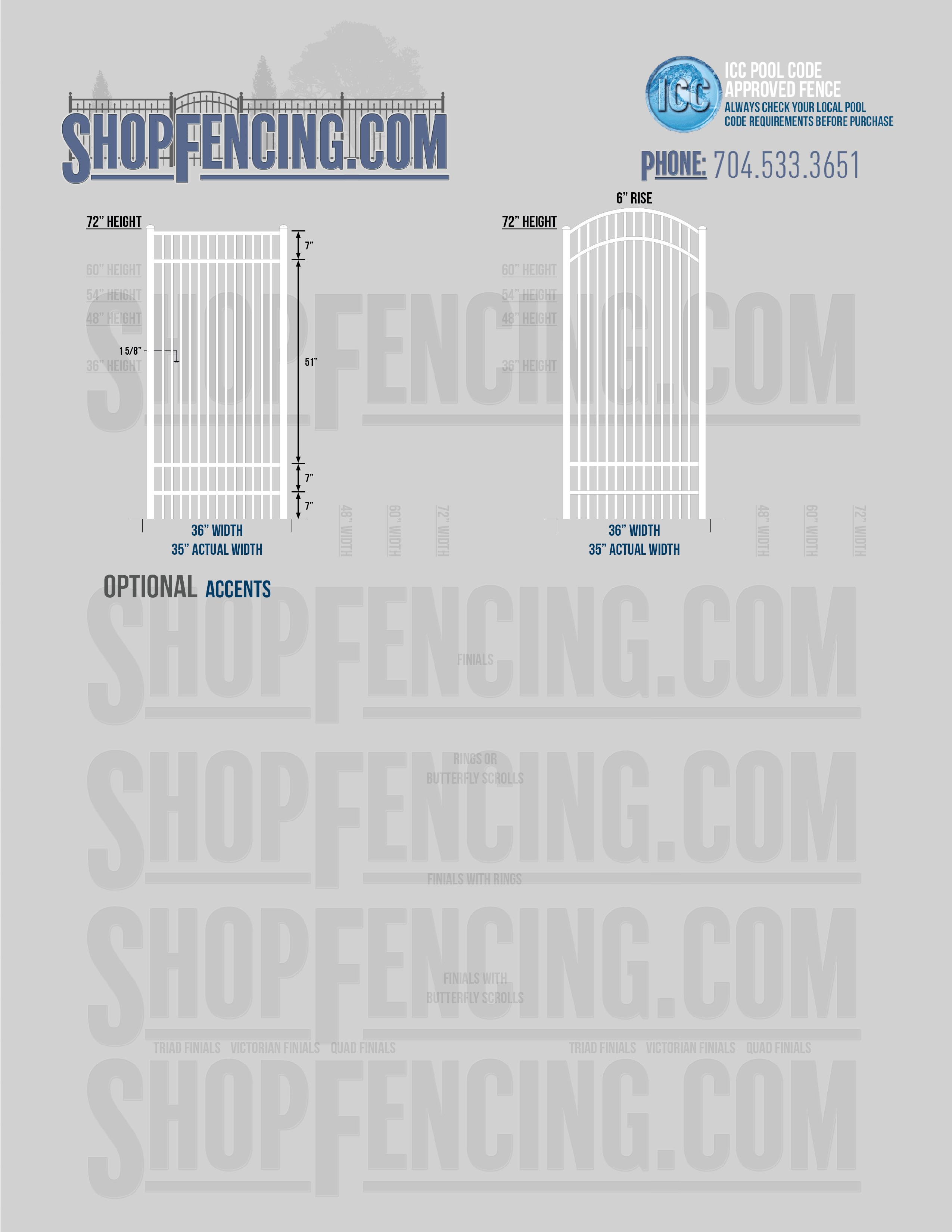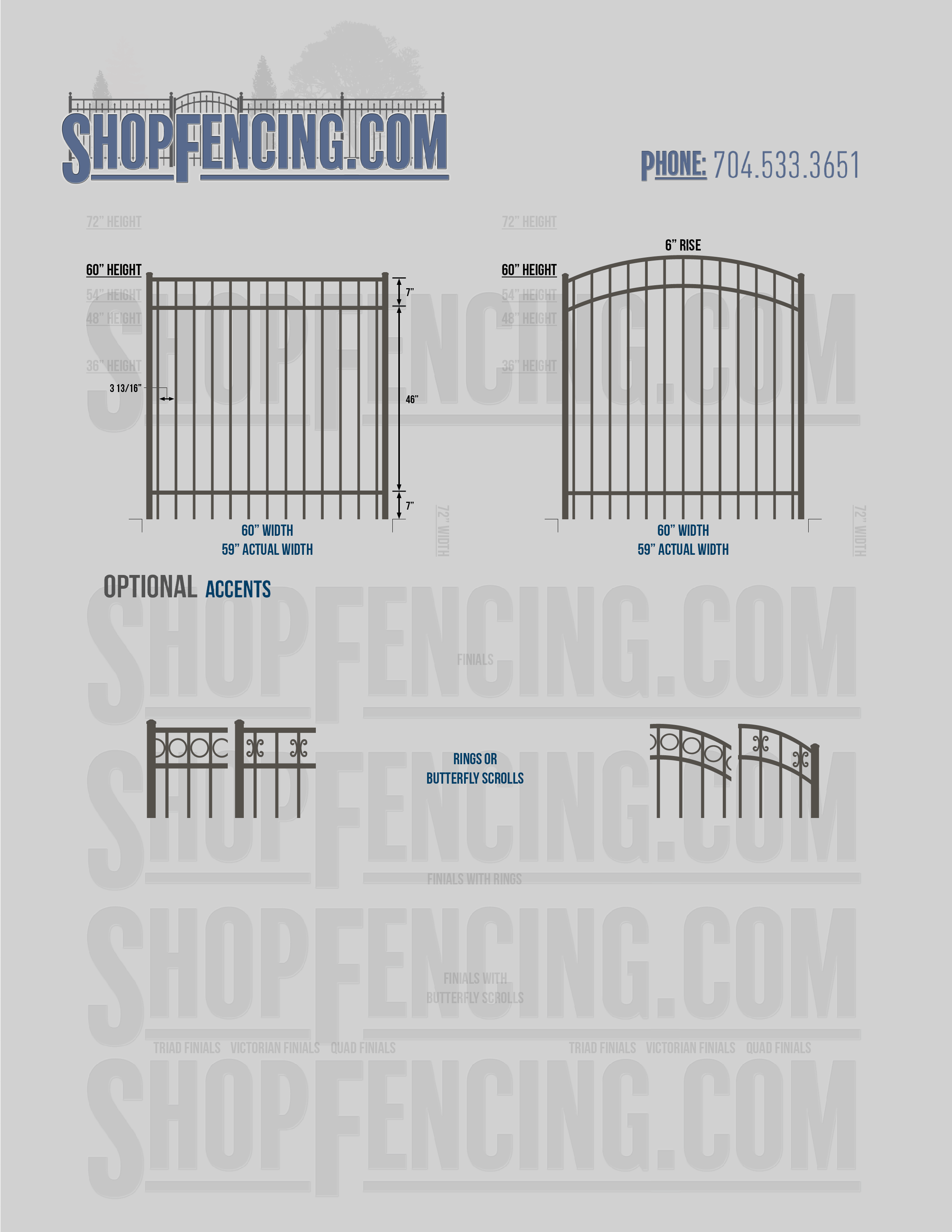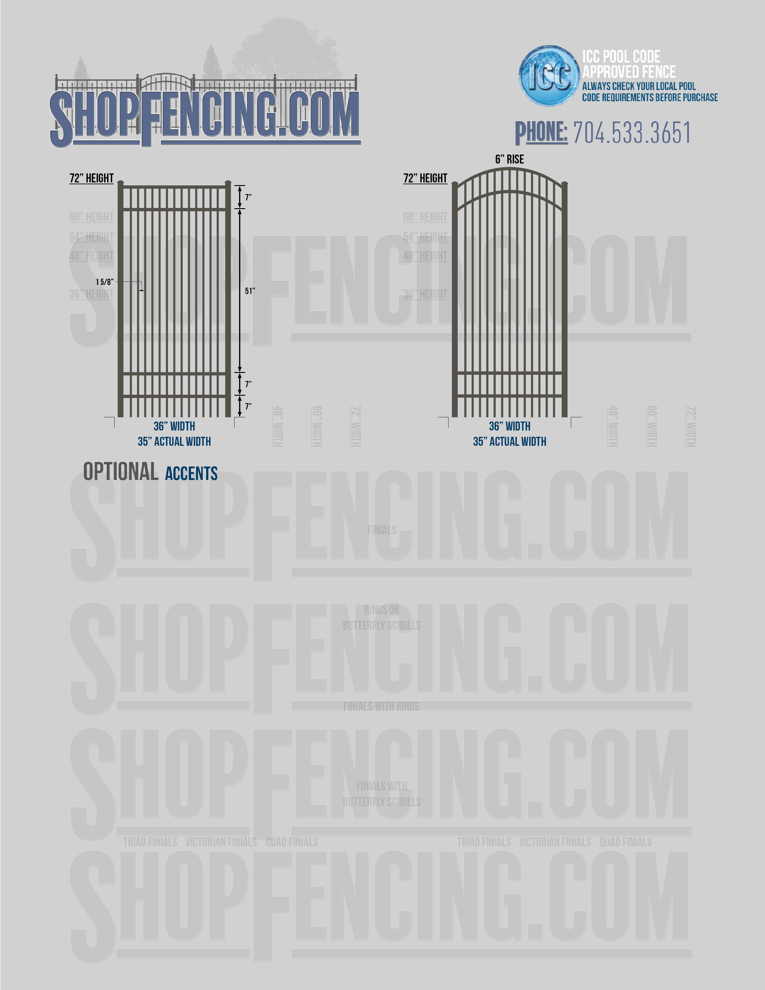 Accent Upgrades: When you add these options, gates will ship with the finials, rings or scrolls installed. PLEASE NOTE: Triad and Victorian finials cannot be installed on double picket fence sections and gates. Rings and scrolls cannot be installed on double picket fence sections and gates.