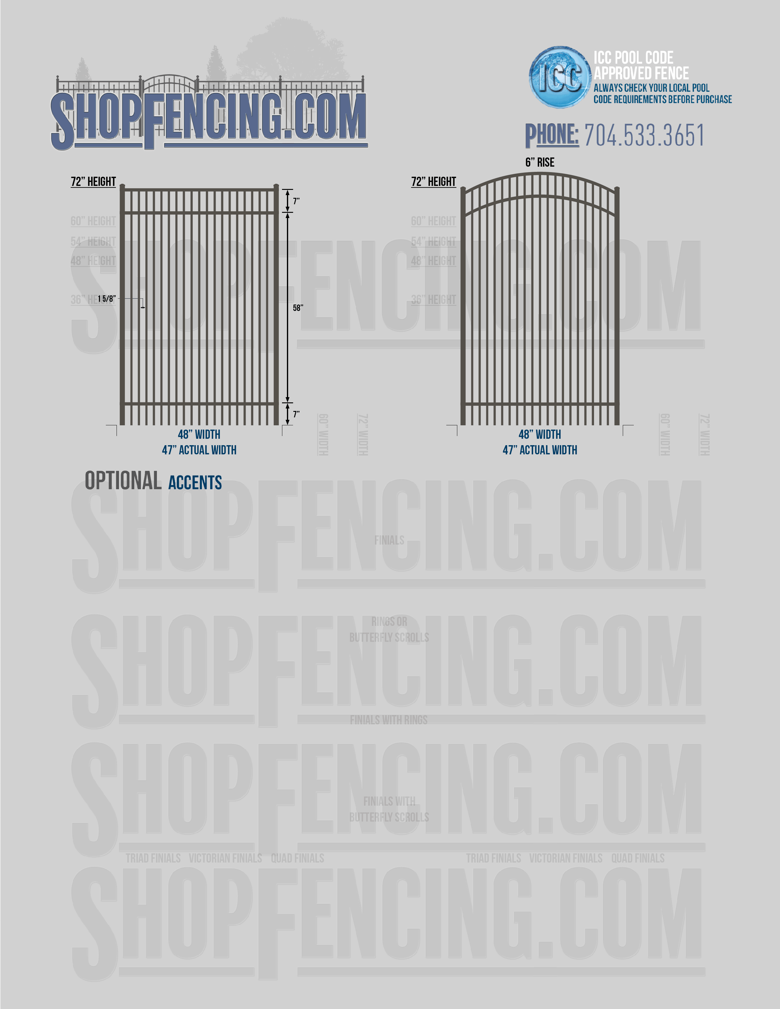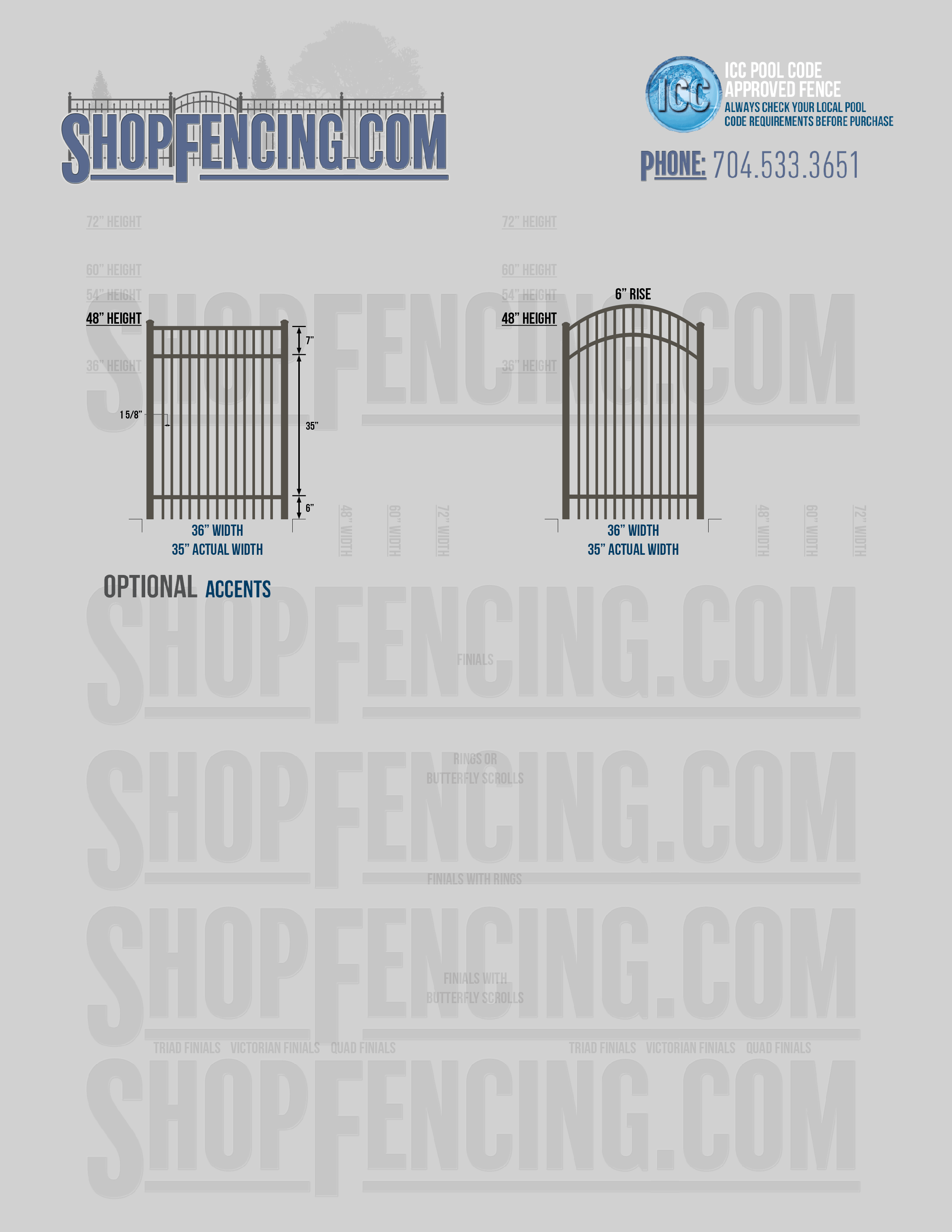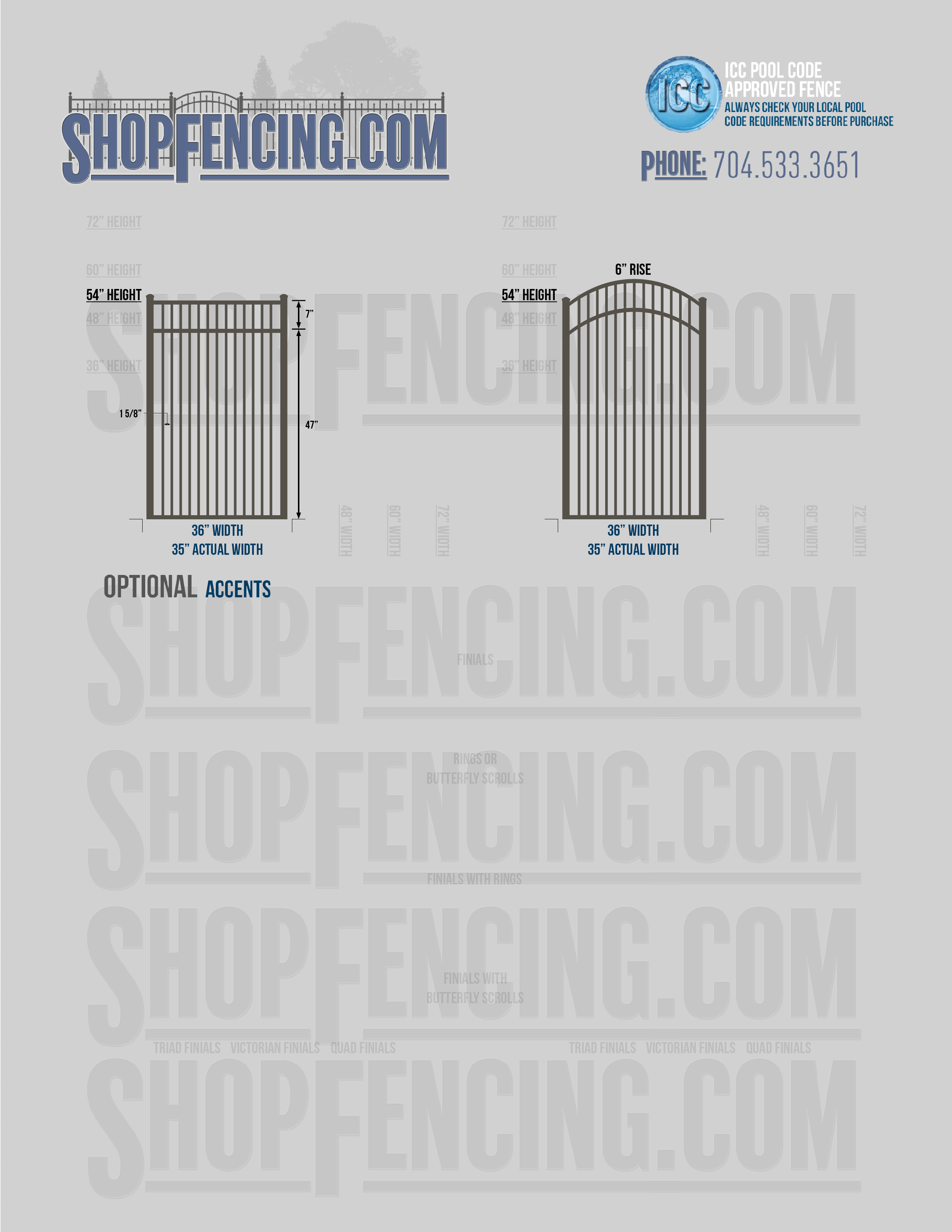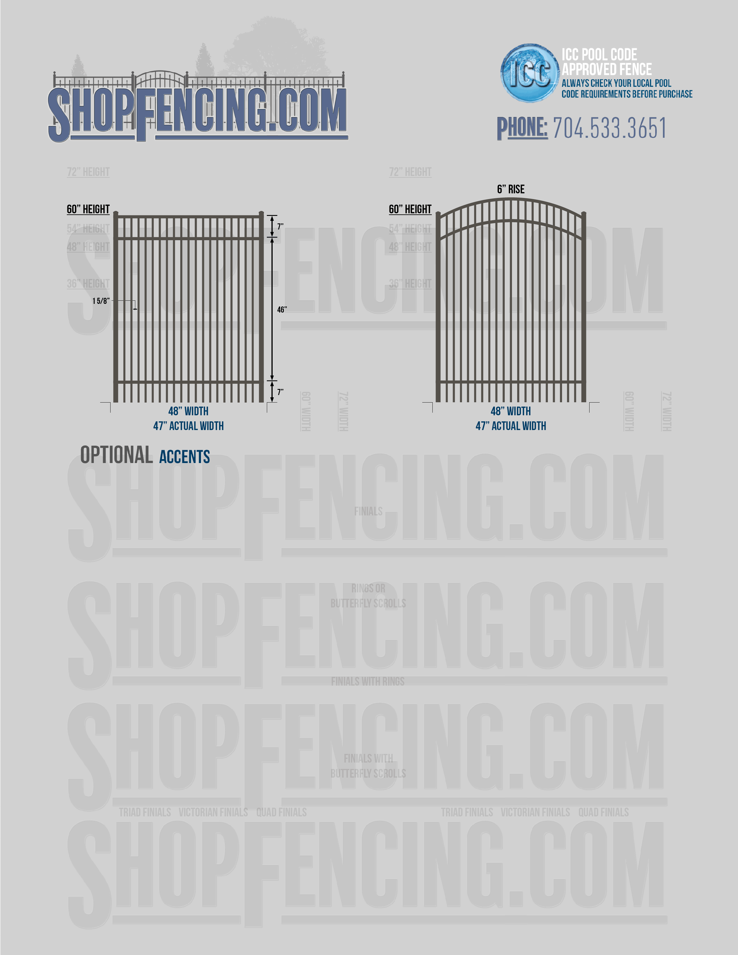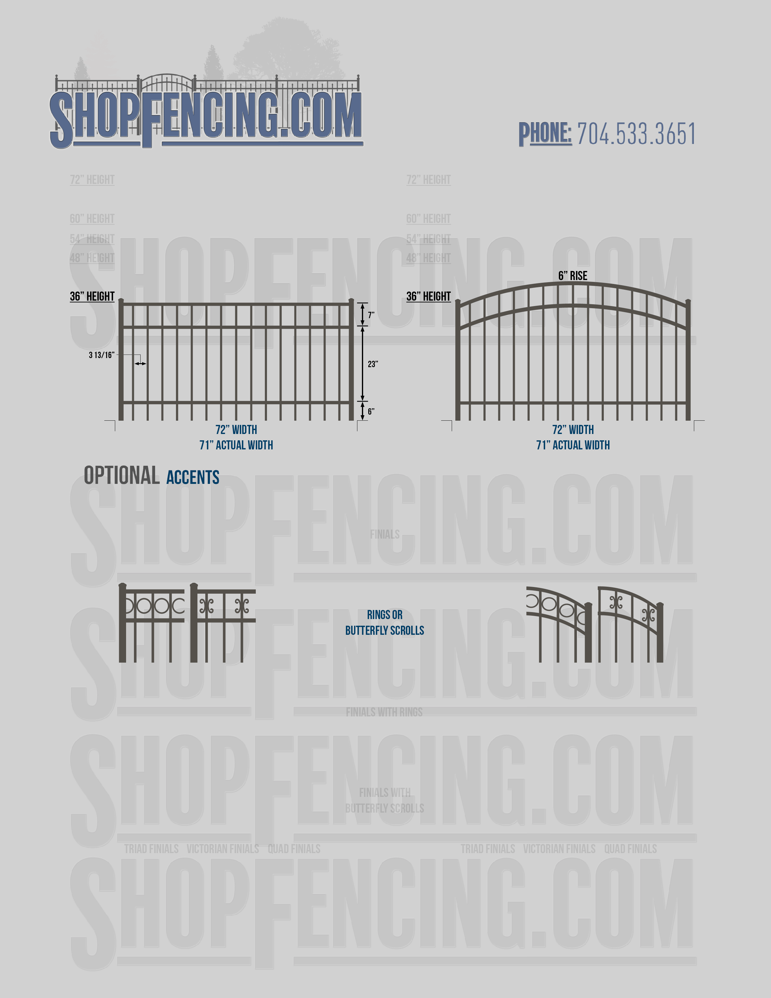 Accent Upgrades: When you add these options, gates will ship with the finials, rings or scrolls installed. PLEASE NOTE: Triad and Victorian finials cannot be installed on double picket fence sections and gates. Rings and scrolls cannot be installed on double picket fence sections and gates.