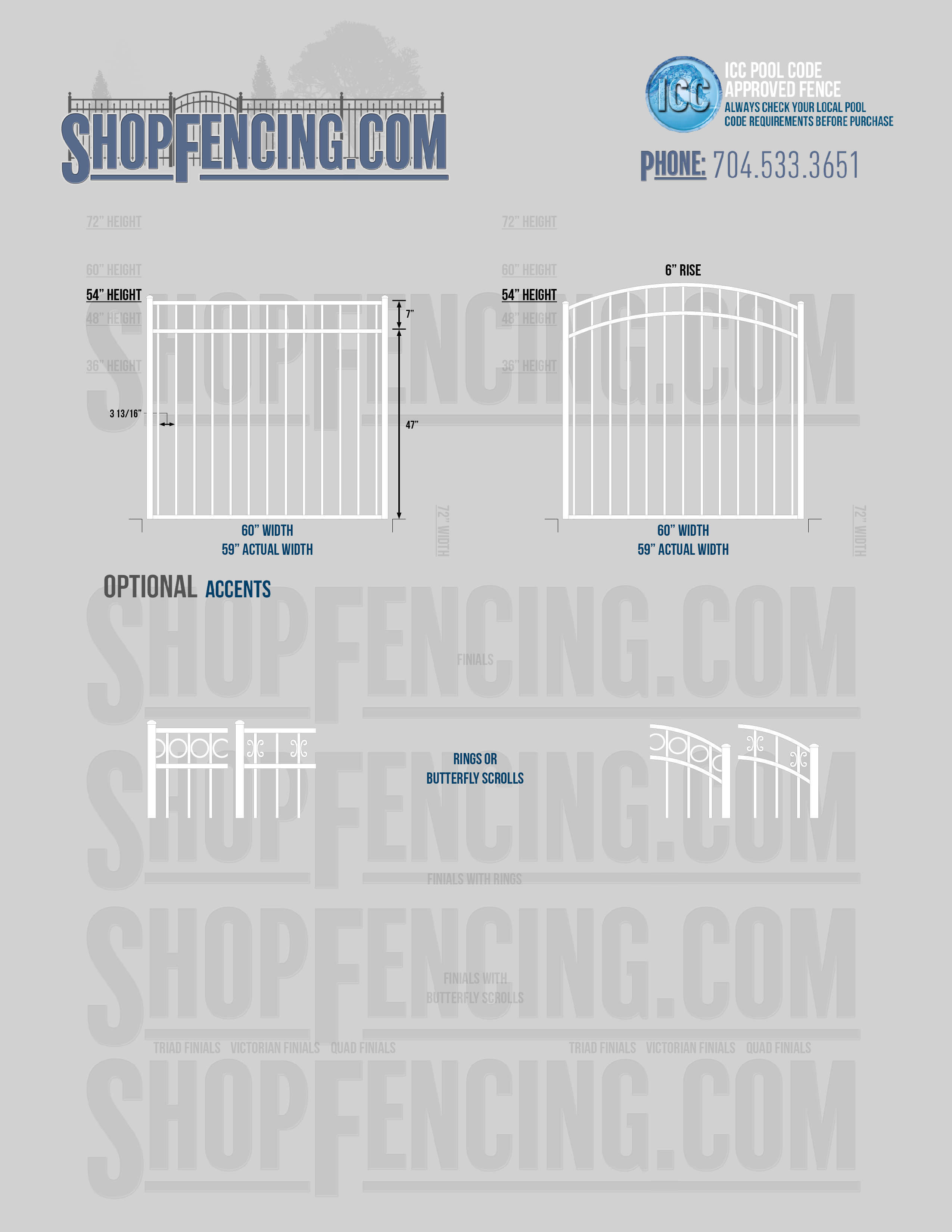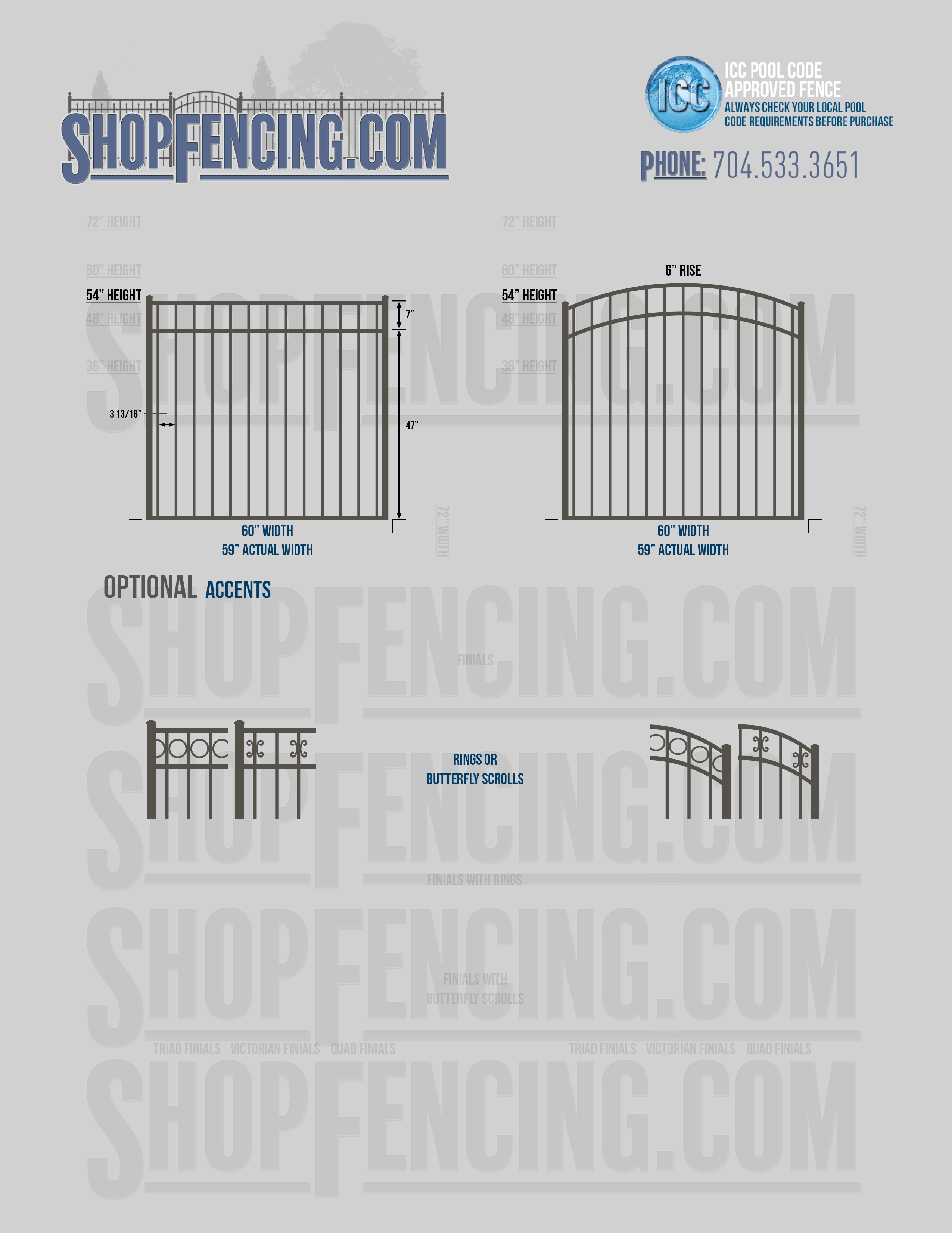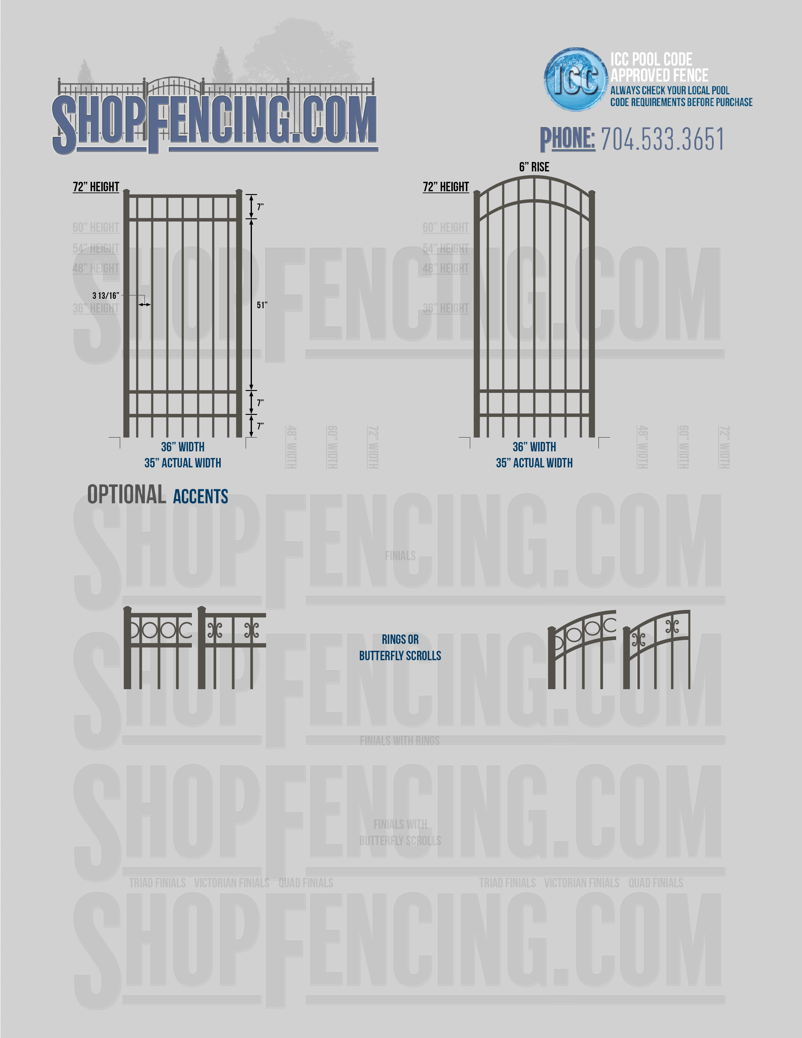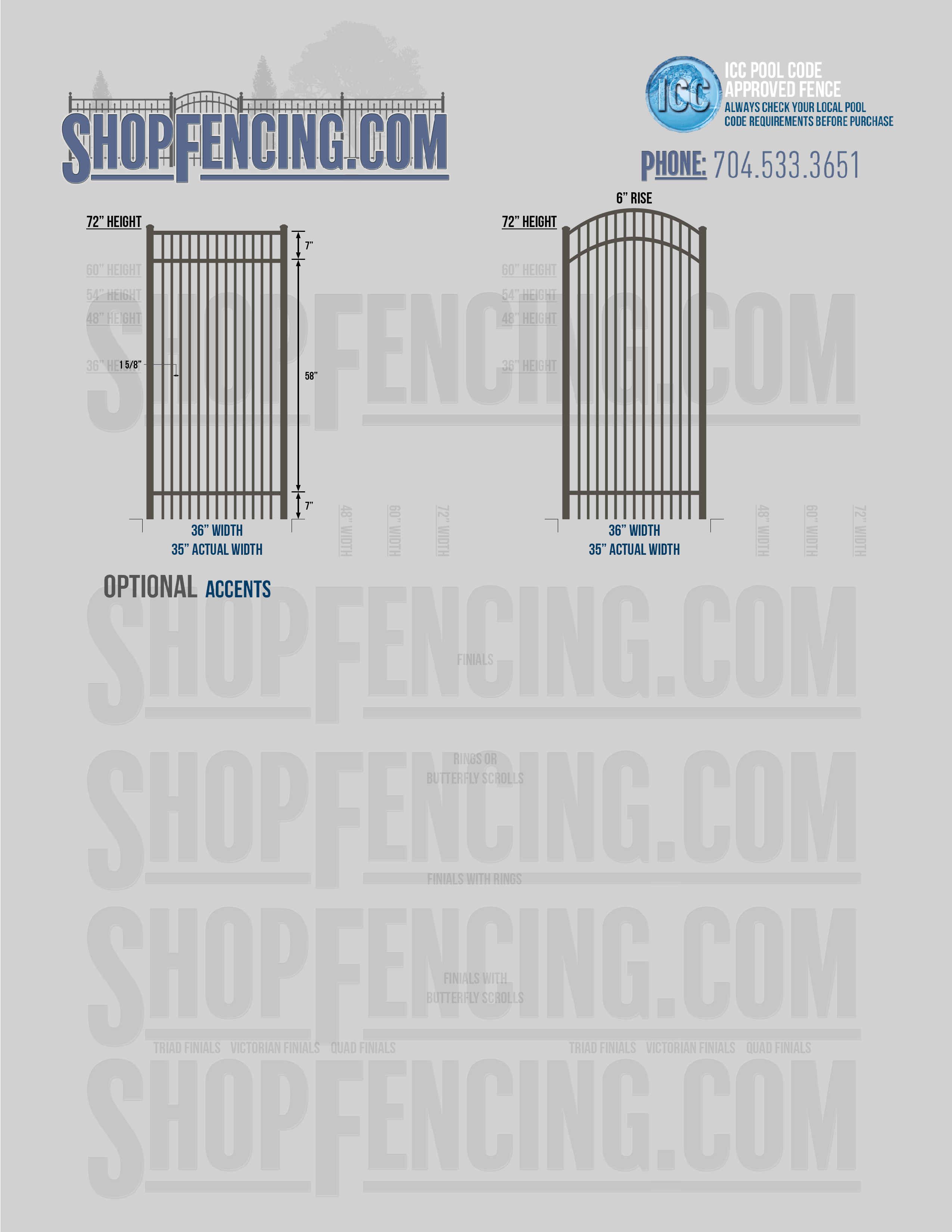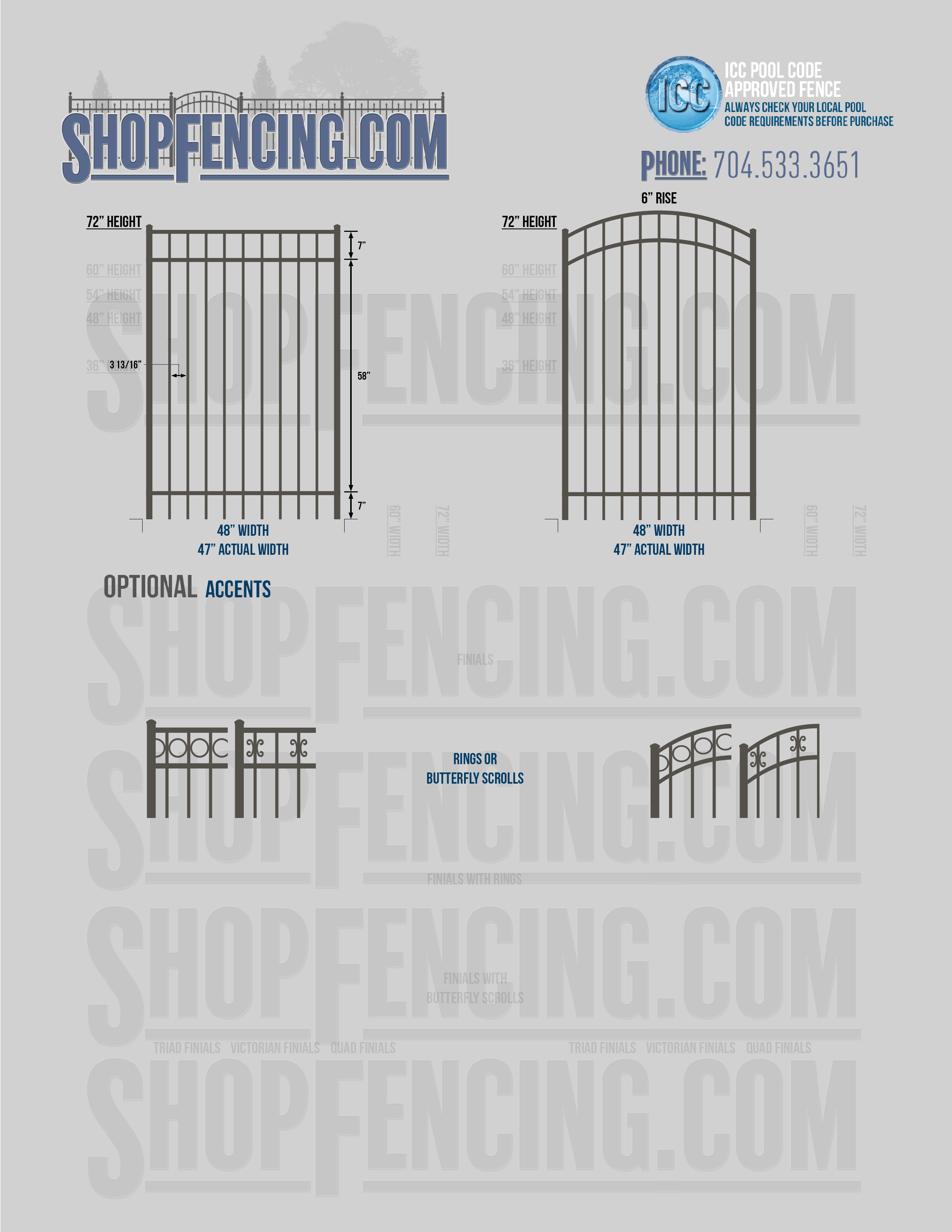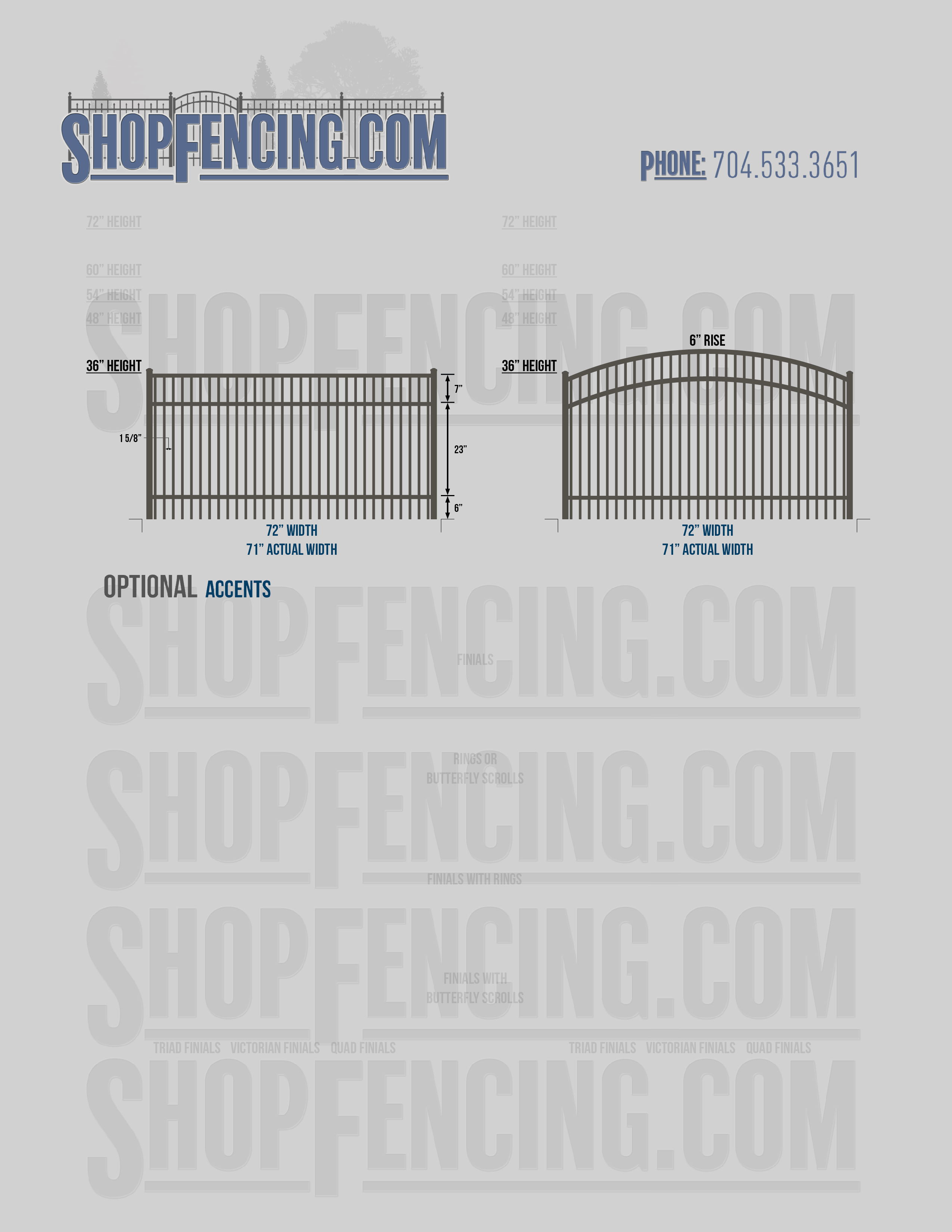 Accent Upgrades: When you add these options, gates will ship with the finials, rings or scrolls installed. PLEASE NOTE: Triad and Victorian finials cannot be installed on double picket fence sections and gates. Rings and scrolls cannot be installed on double picket fence sections and gates.
