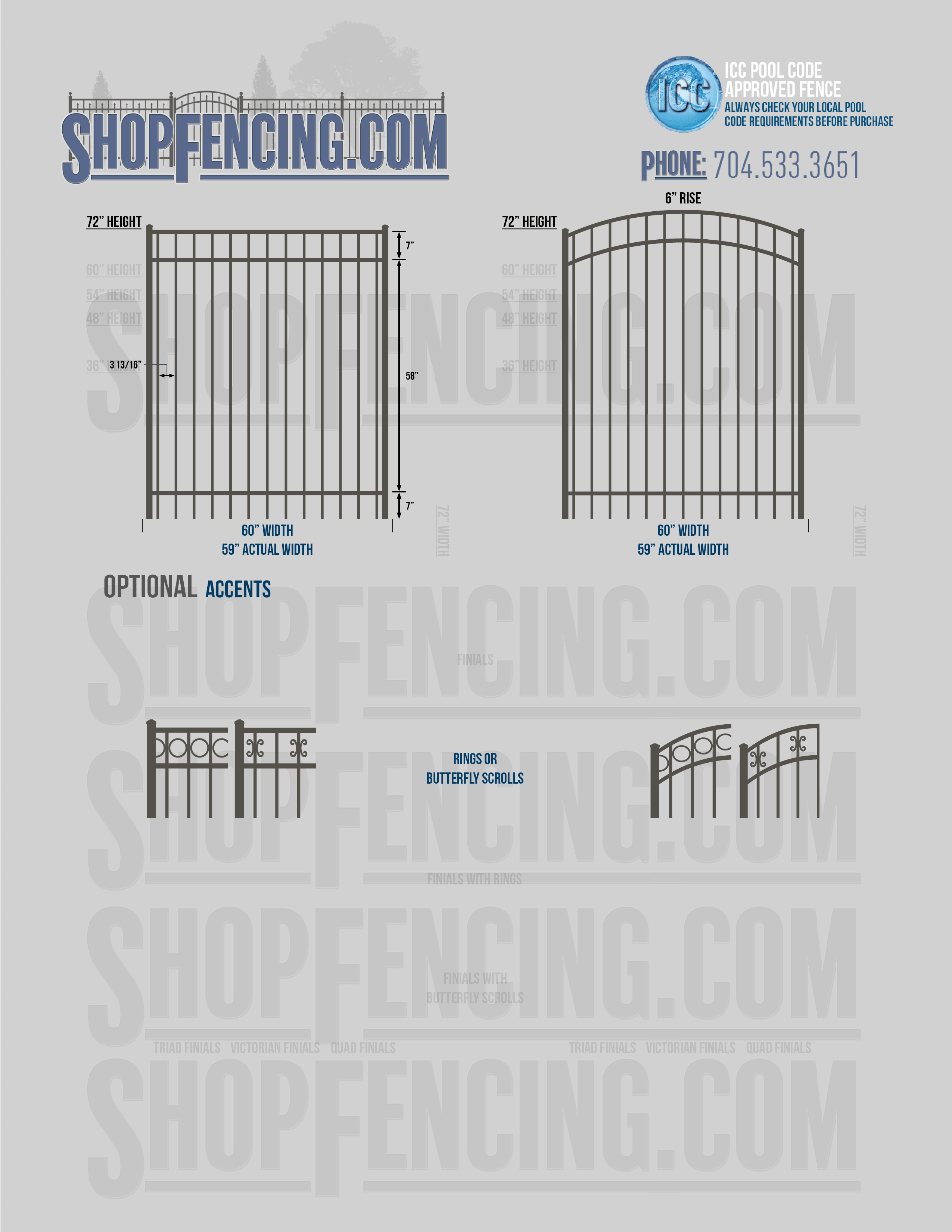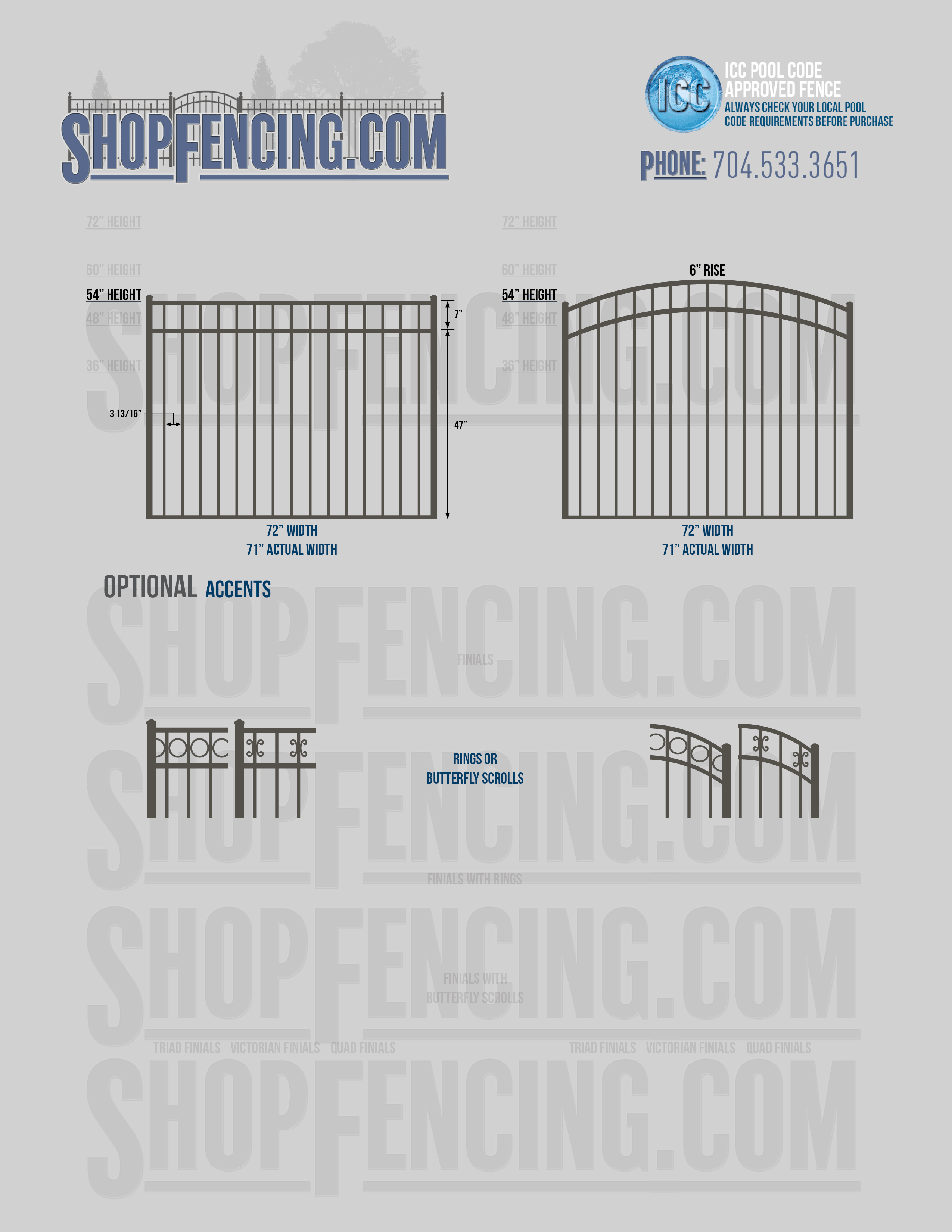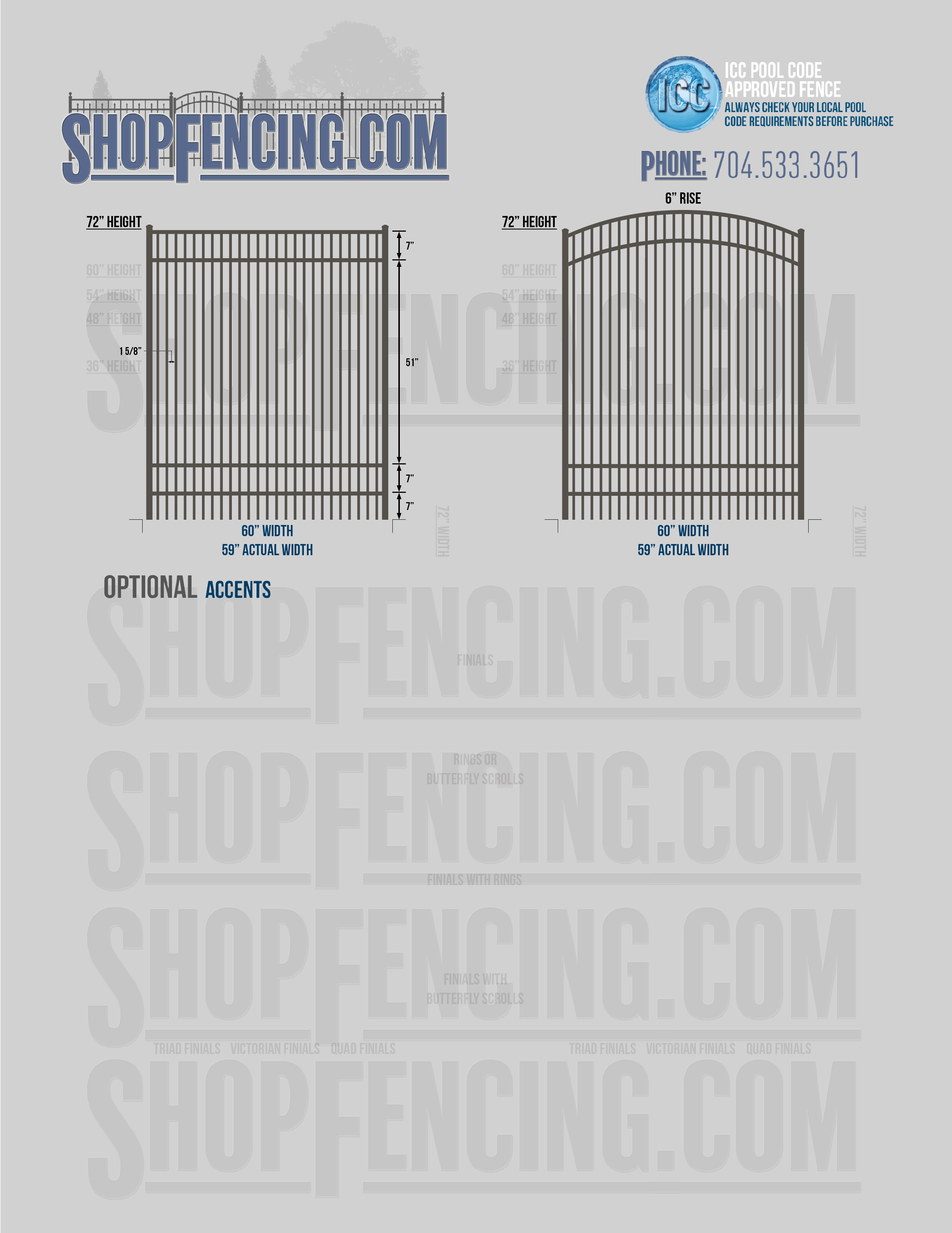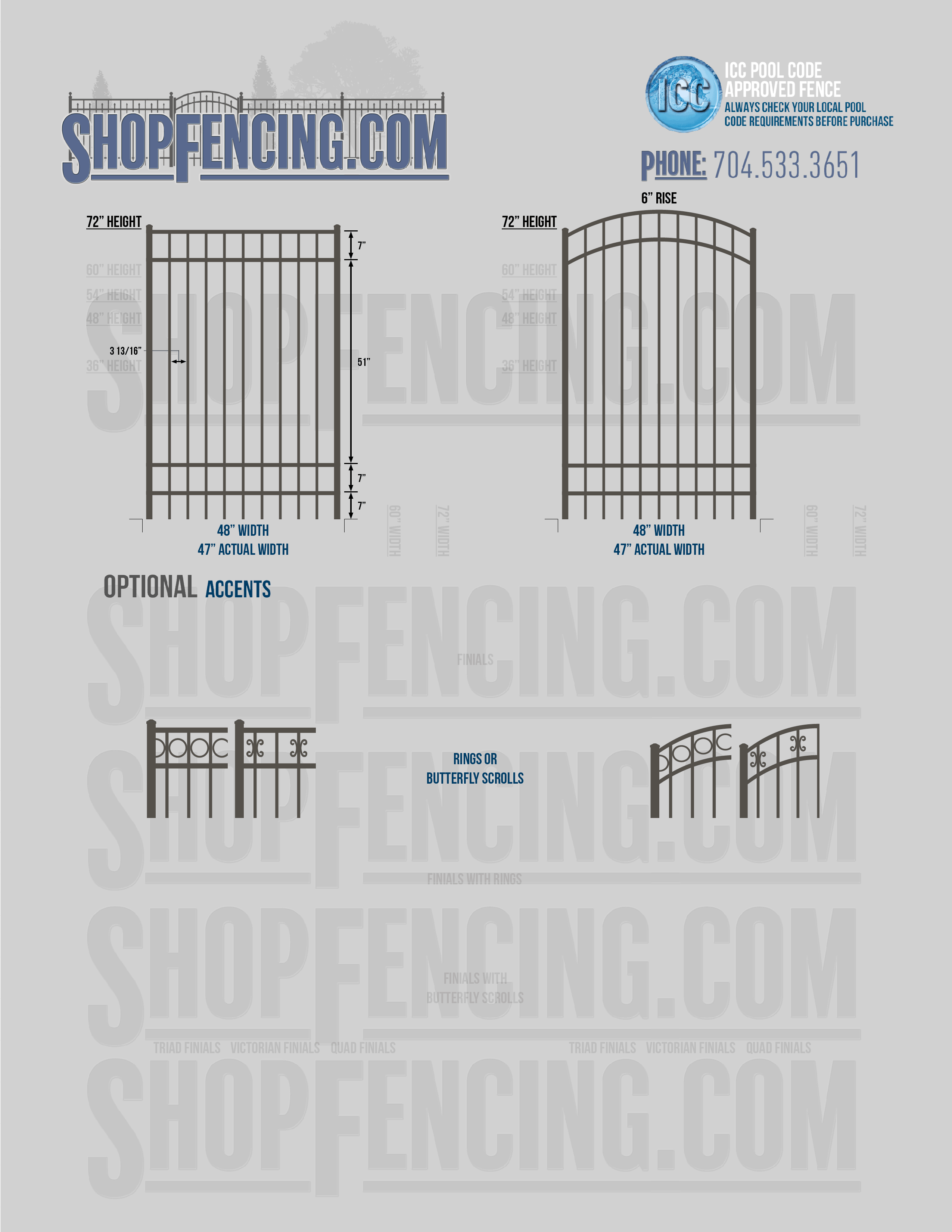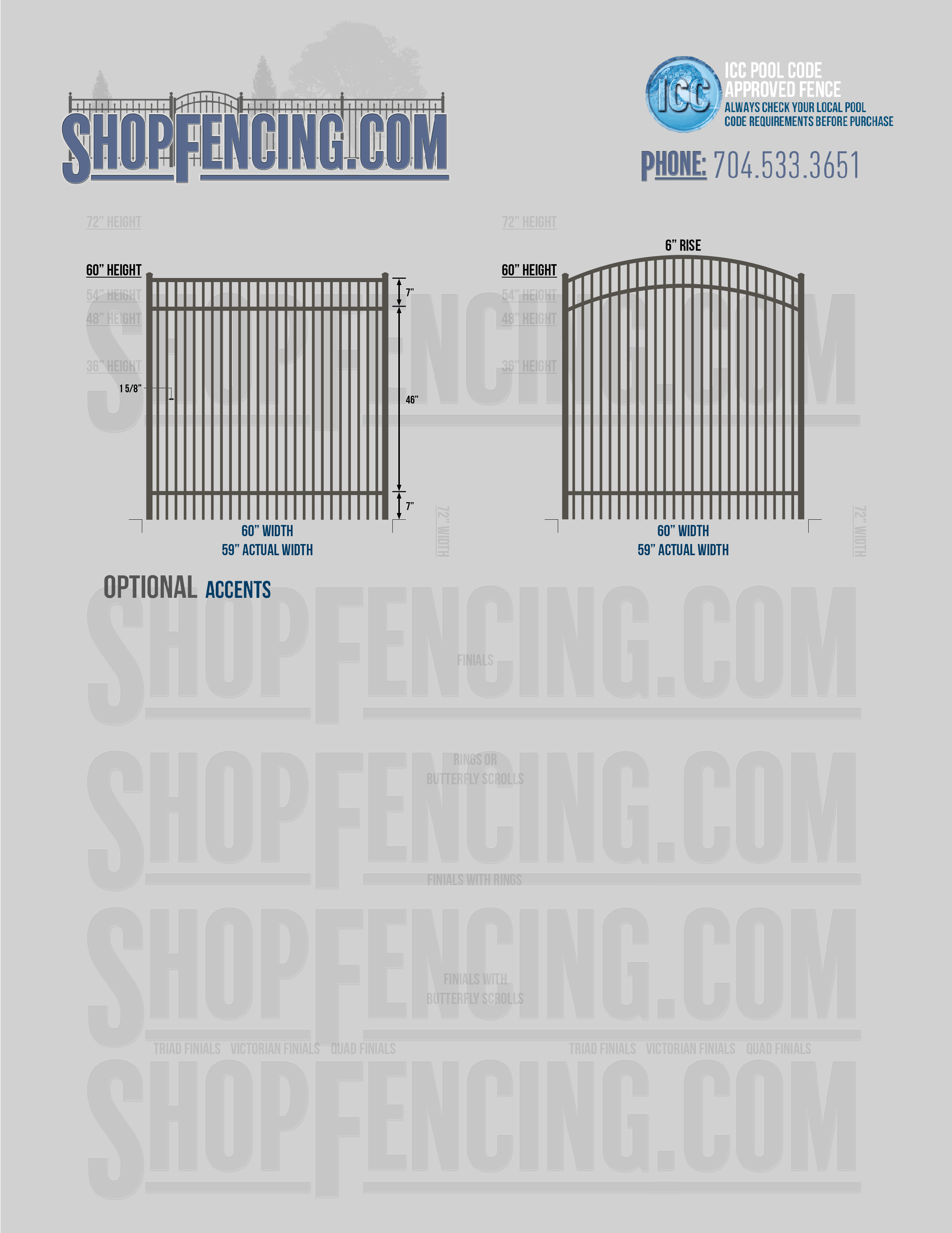 Accent Upgrades: When you add these options, gates will ship with the finials, rings or scrolls installed. PLEASE NOTE: Triad and Victorian finials cannot be installed on double picket fence sections and gates. Rings and scrolls cannot be installed on double picket fence sections and gates.