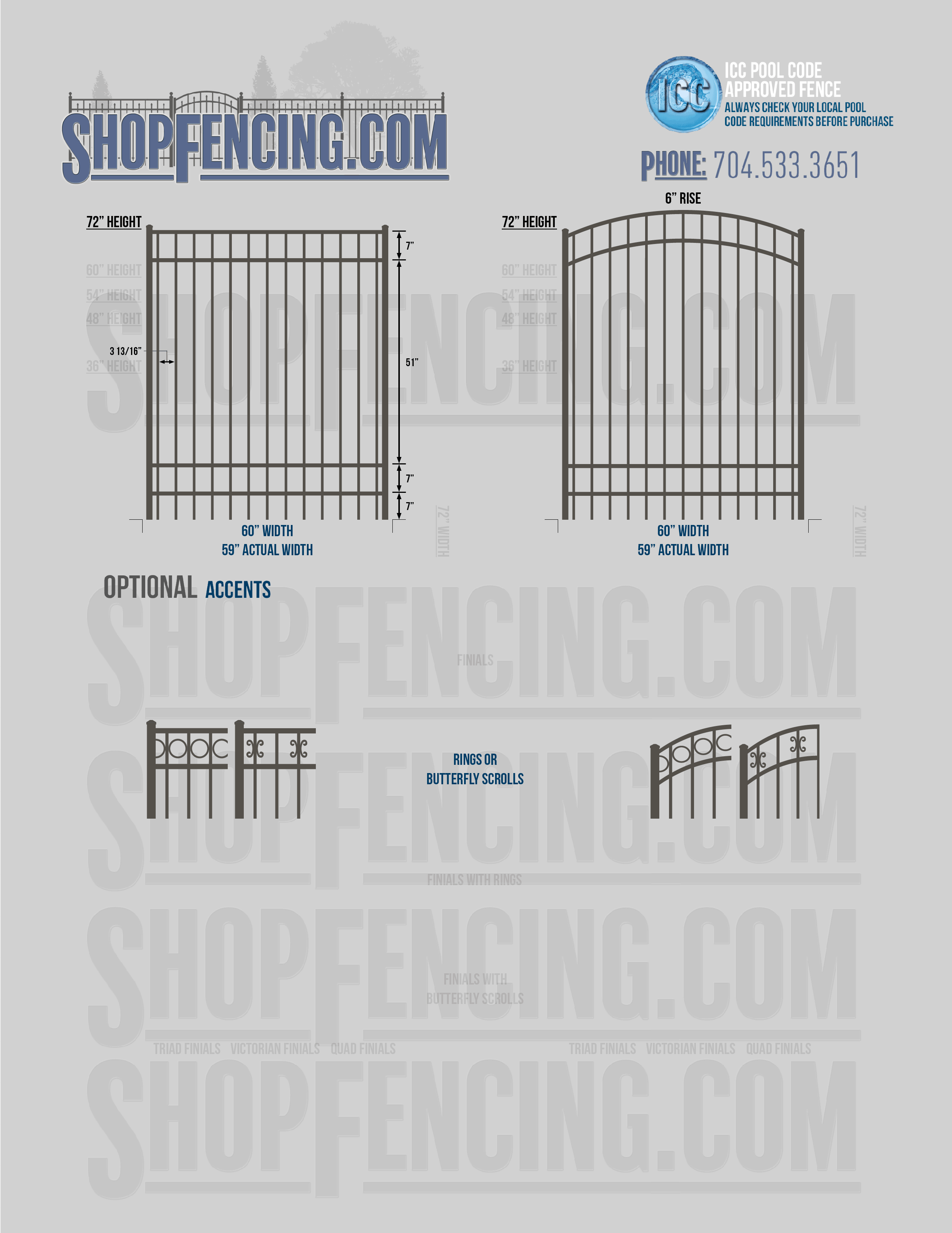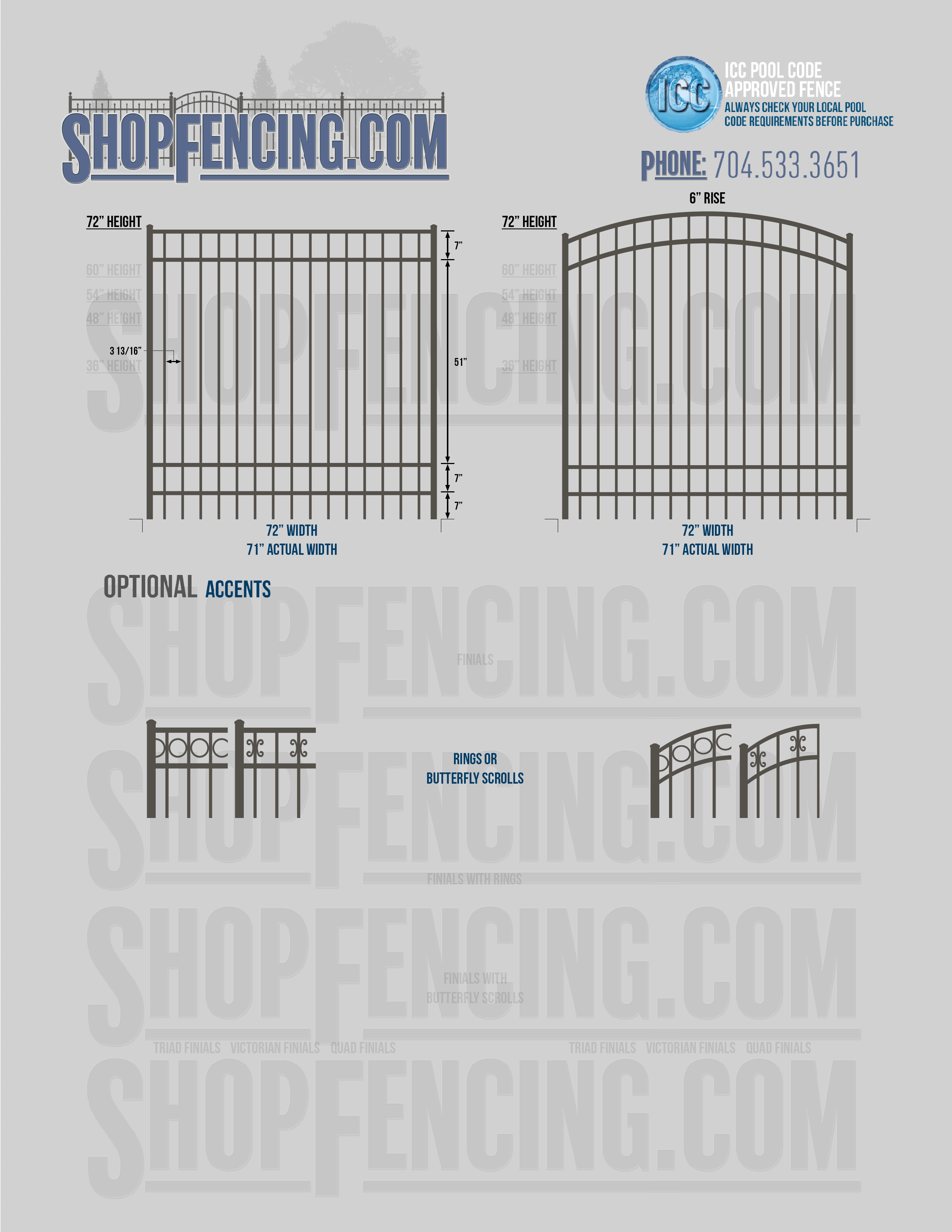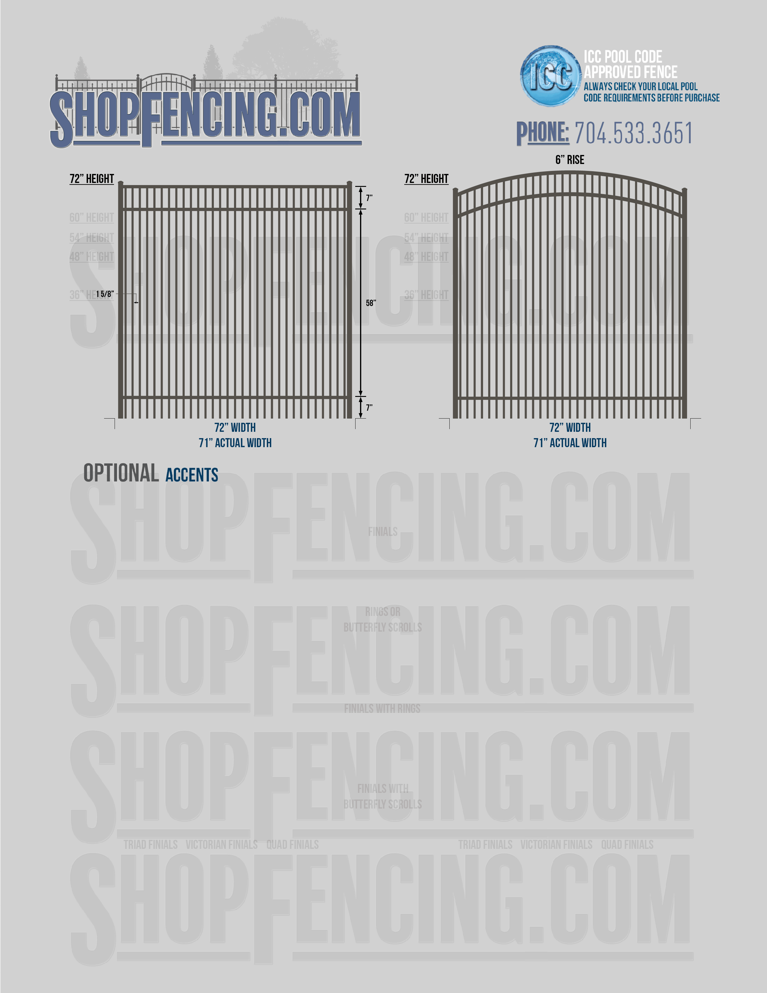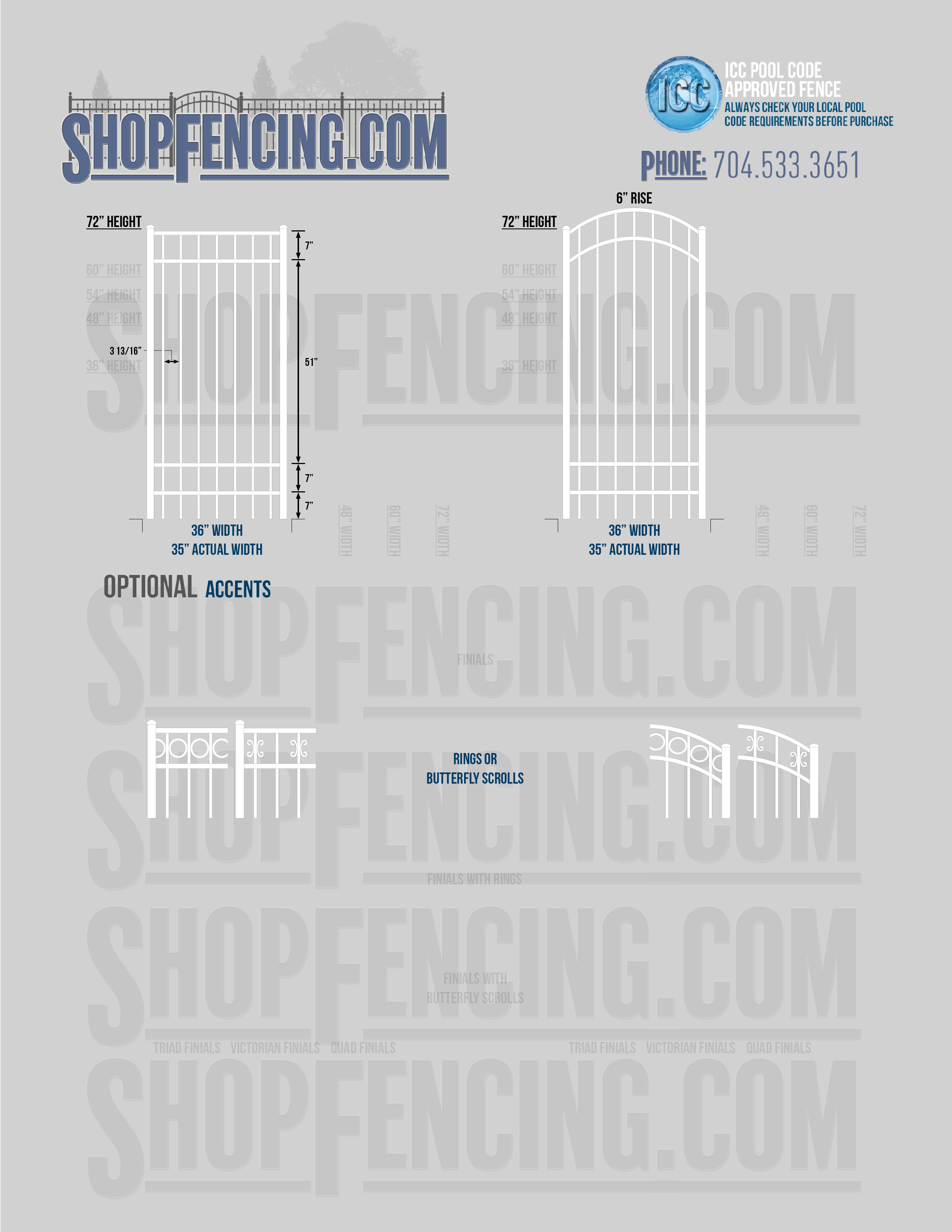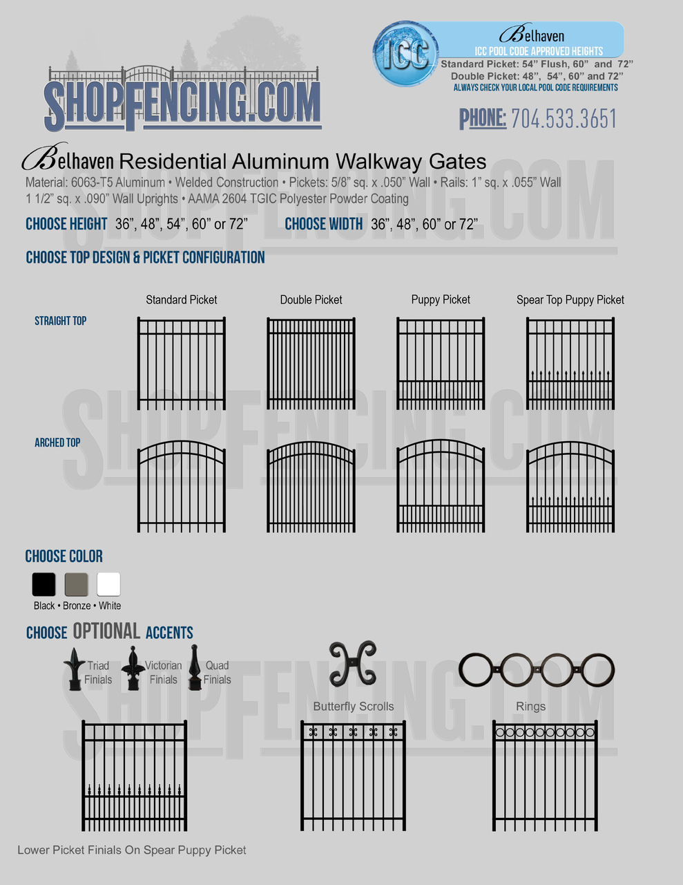 Accent Upgrades: When you add these options, gates will ship with the finials, rings or scrolls installed. PLEASE NOTE: Triad and Victorian finials cannot be installed on double picket fence sections and gates. Rings and scrolls cannot be installed on double picket fence sections and gates.