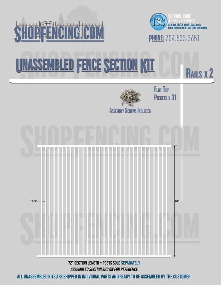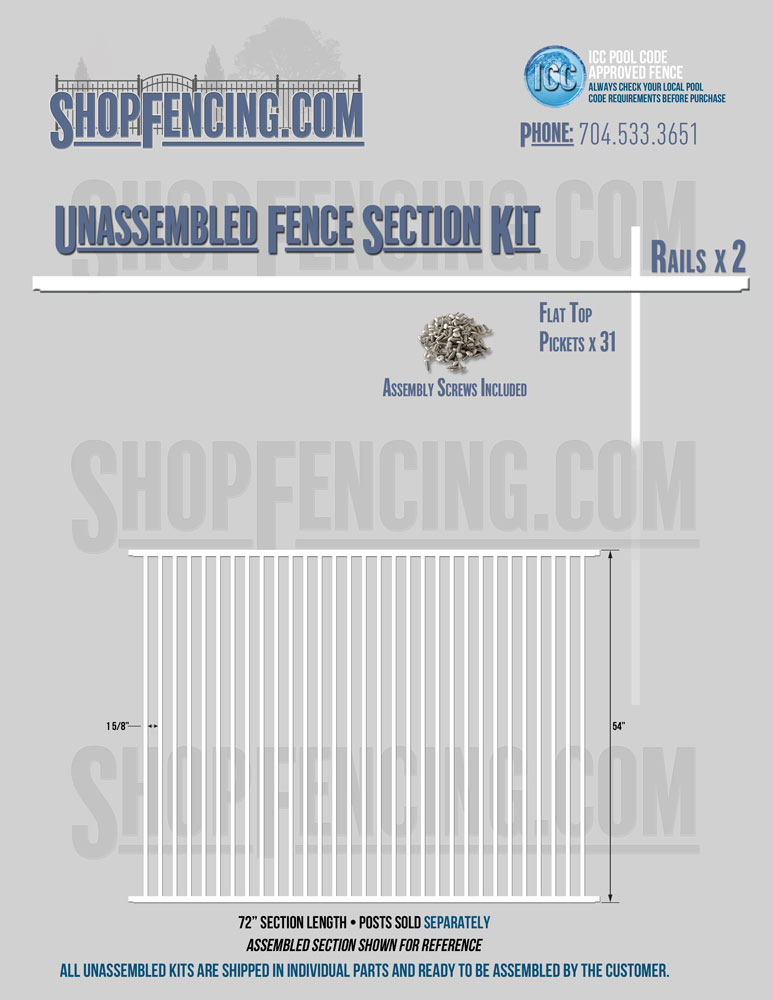 Assembled Fence Sections are completed fence sections ready for installation. All pickets are fastened to the rails and all rails are spaced to fit the matching style posts. Unassembled Fence Sections are shipped to you in kit form. Each kit will include rails, pickets and screws. For example, a Standard Picket, 3 Rail Fence Section kit would include, 3 Rails, 15 Pickets and 45 Screws. Please note that the assembly of fence sections is a labor intensive process. See our Assembly Instructions HERE.